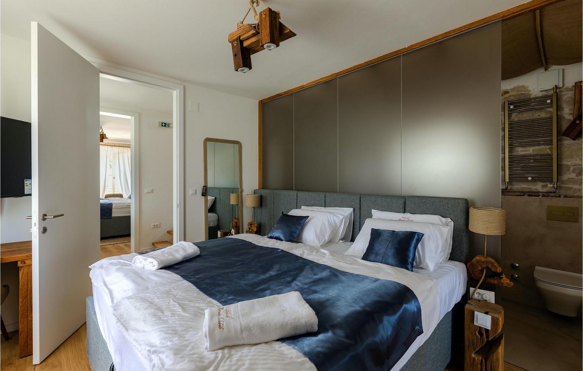 Villa Blazeni Miroslav Bulesic ligger i Istria i den lille landsbyen Zudetici, bare en kort kjøretur fra kystbyen Porec. Den velholdte eiendommen har et privat utendørsbasseng som innbyr til forfriskninger på varme sommerdager. Her kan du slappe av på solsengene rundt bassenget. Bassenget kan varmes opp på kaldere dager. En kullgrill står til din disposisjon for å tilberede deilige måltider. Villaen har plass til opptil 8 personer fordelt på 4 soverom. Det eksepsjonelle og stilige interiøret vil umiddelbart fange blikket ditt. Første etasje består av et fullt utstyrt kjøkken, en spiseplass og en stue med peis som gir en koselig atmosfære. Fra stuen har du direkte utgang til den overbygde terrassen. Dette er det perfekte stedet å nyte morgenkaffen. Sportsentusiaster kan glede seg til et treningsrom. Det er to komfortable soverom i første etasje. I andre etasje er det ytterligere to soverom. Alle soverommene har eget bad, TV og klimaanlegg. Det er en privat parkeringsplass for opptil 3 biler. Villaen har aircondition og Internett-tilgang. Bestill Villa Blazeni Miroslav Bulesic og oppdag Istrias skjønnhet! Villa Blazeni Miroslav Bulesics beliggenhet gjør den til et utmerket utgangspunkt for å oppdage Istrias skatter. Istria byr på en rekke vakre rullesteinstrender og skjulte bukter med krystallklart vann. En kort kjøretur unna ligger kystbyen Porec. Her finner du et utmerket kulinarisk tilbud, en rekke restauranter, kafeer og butikker. Vi anbefaler et besøk til byen Umag. Området rundt byen er kjent for sin vin- og olivenoljeproduksjon. Her arrangeres det mange sportsbegivenheter, blant annet ATP Croatia Open. Umag og omegn er kjent for sin vin- og olivenoljeproduksjon. Her arrangeres det mange sportsbegivenheter, blant annet ATP Croatia Open. Du finner flere tips i MyIstria-guiden vår.