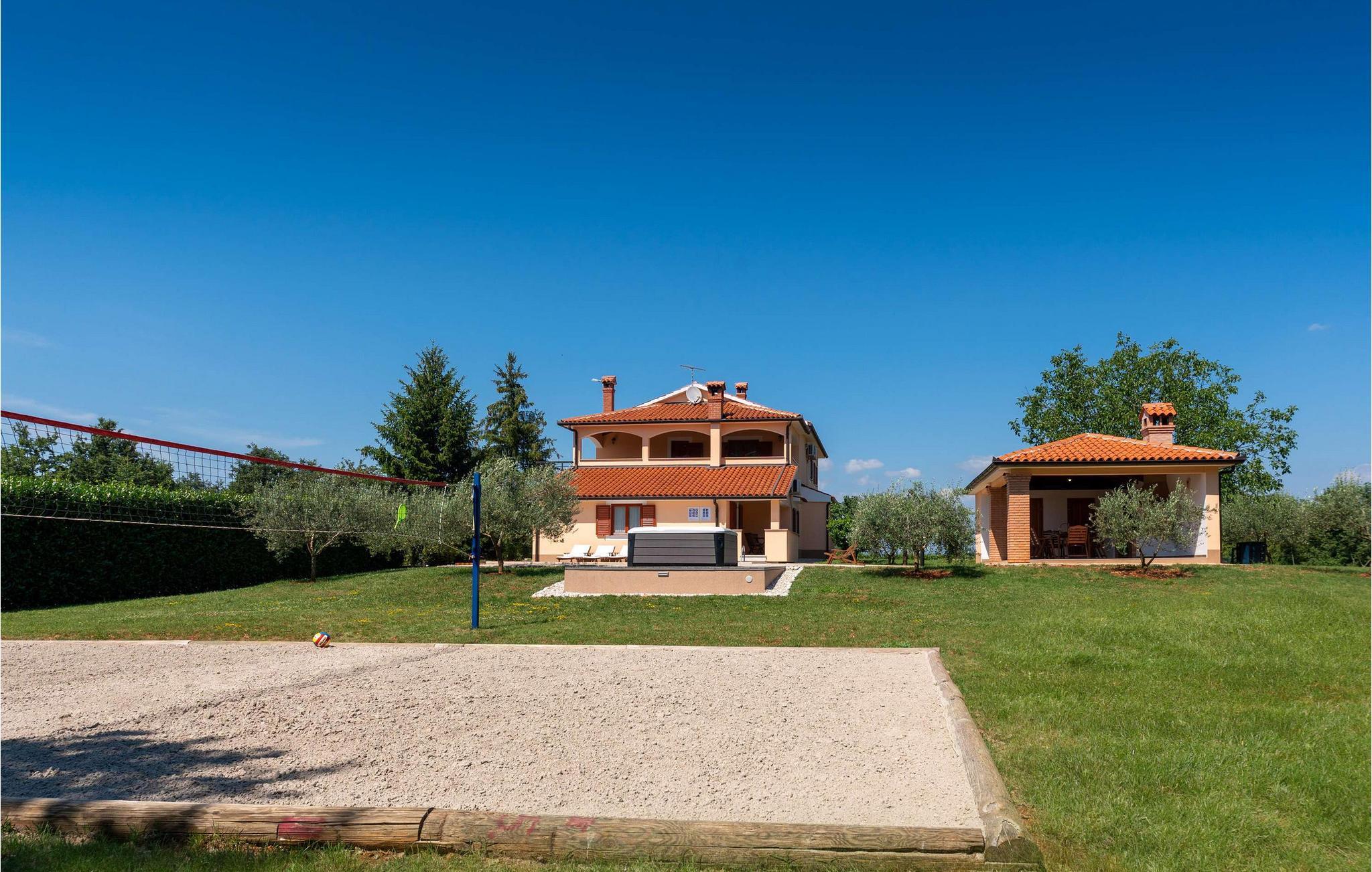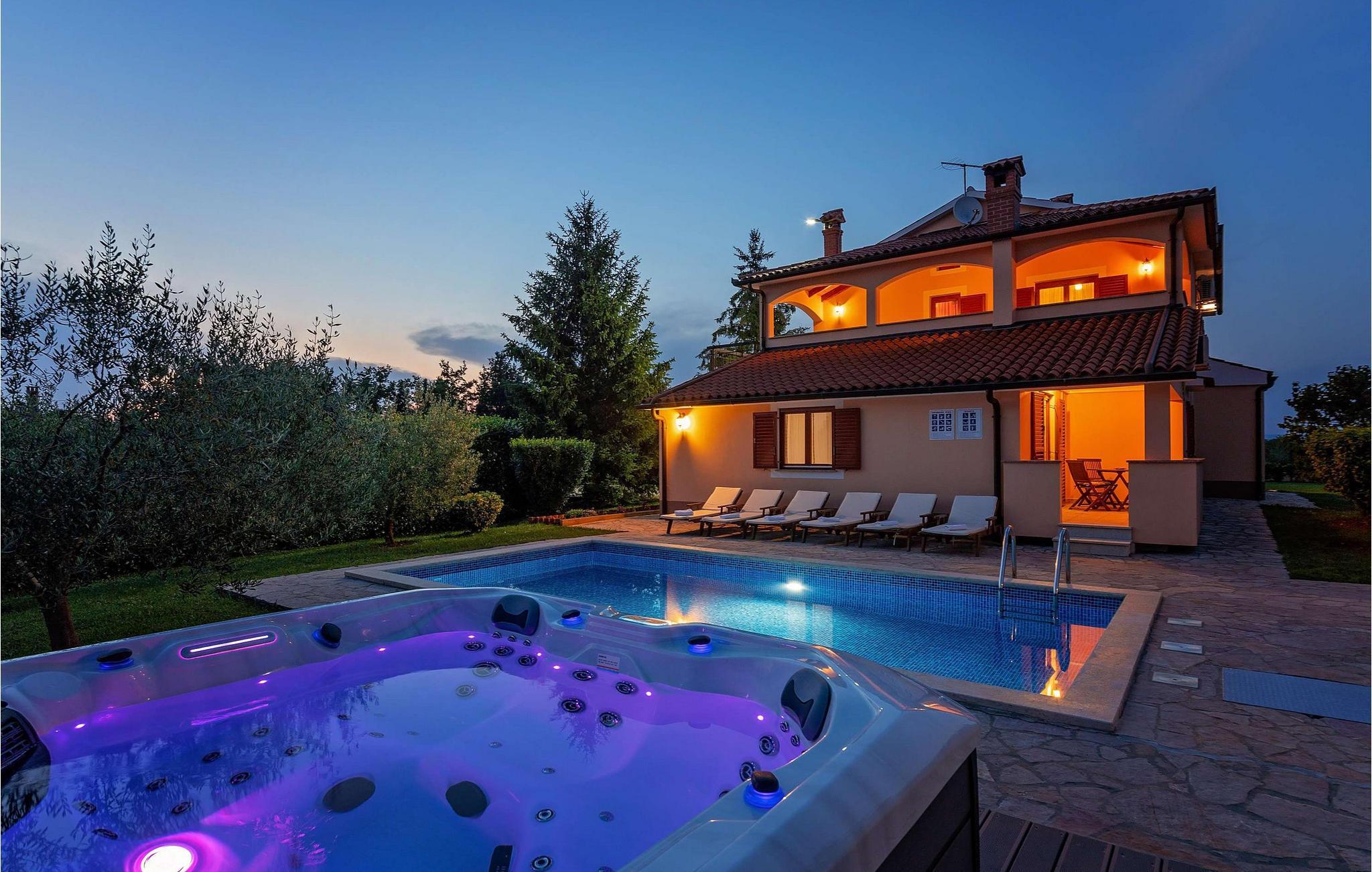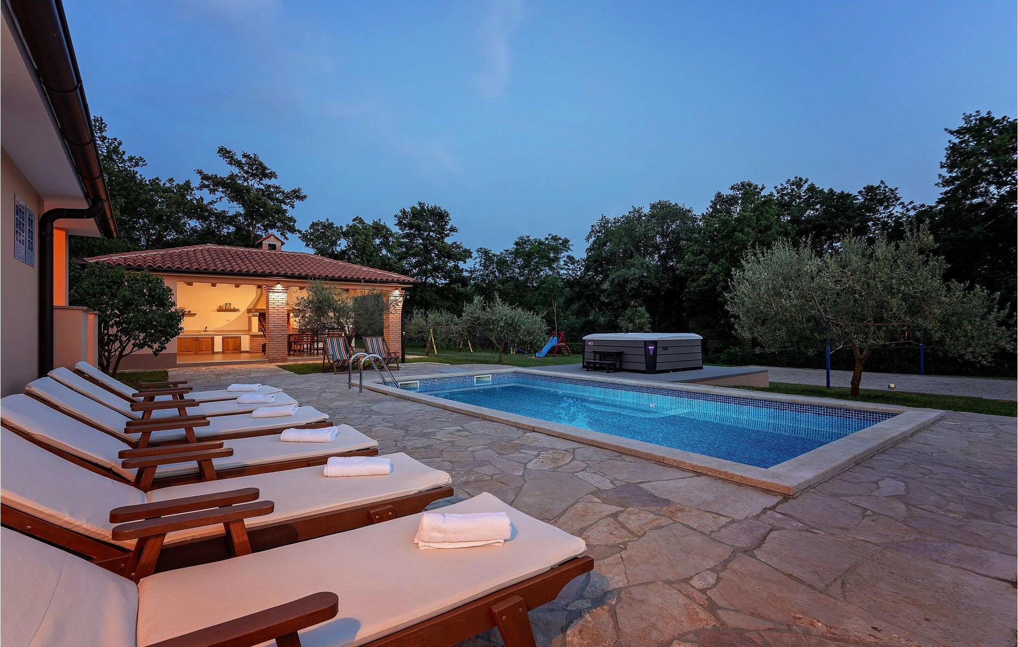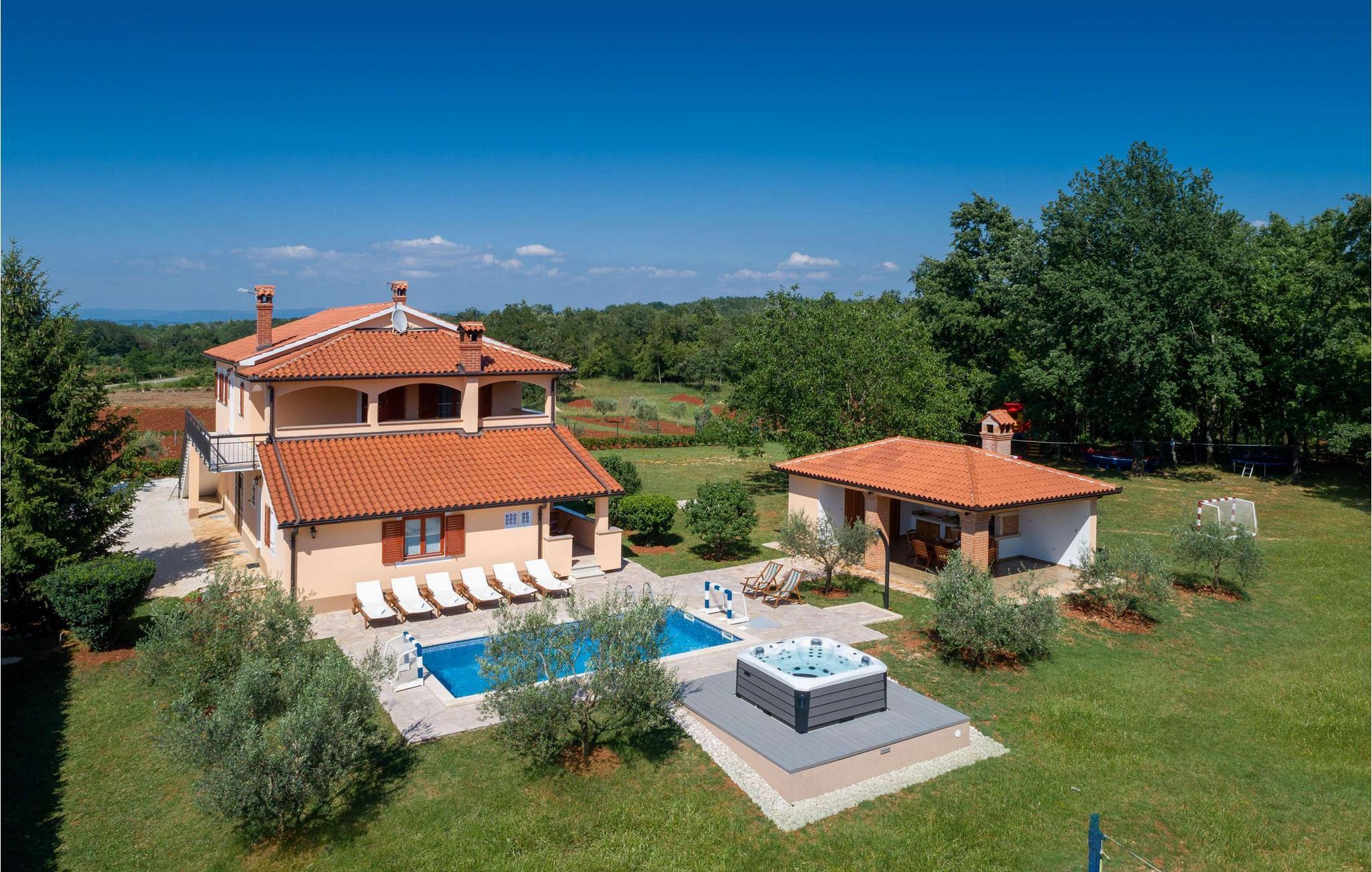 Denne sjarmerende villaen ligger i den pittoreske landsbyen Vrani?i, bare 15 km fra turistsenteret Pore? og bare 5 km fra den fantastiske byen Motovun. Markeder, restauranter, apotek og andre fasiliteter ligger i disse byene og er innen rekkevidde. Den vakre villaen Vrani?i består av to pent innredede soverom med dobbeltsenger og to mindre soverom med separate enkeltsenger som kan settes sammen ved behov. Her er det optimal soveplass for 8 personer, men det er også plass til ytterligere 2 gjester i den komfortable uttrekkbare sofaen i en av de sjarmerende stuene. Det 150 m² store oppholdsrommet i Villa Vrani?i har klimaanlegg, to velutstyrte kjøkken, to bad og to sjarmerende stuer, i tillegg til en 25 m² stor balkong og en 4000 m² stor hage. Det vakre bassenget er oppvarmet, og det finnes også et utendørs boblebad for ekstra avslapning. Underholdningsfasilitetene på Villa Vrani?i omfatter dessuten en lekeplass med sand, akebakke, husker, trampoline og trehytte. En badmintonbane med utstyr og 6 sykler er tilgjengelig kostnadsfritt. Kjæledyr er tillatt på dette overnattingsstedet etter eierens skjønn eller mot en avgift. Vær oppmerksom på at dette overnattingsstedet ikke tar imot ungdomsgrupper eller utdrikningslag. En ungdomsgruppe på dette overnattingsstedet består av personer under 30 år. Du må ikke booke dette overnattingsstedet hvis du er en ungdomsgruppe eller et utdrikningslag, da bookingen din vil bli avvist etter bestilling, noe som også kan være tilfelle ved ankomst til overnattingsstedet eller under oppholdet, og du vil ikke få refusjon.