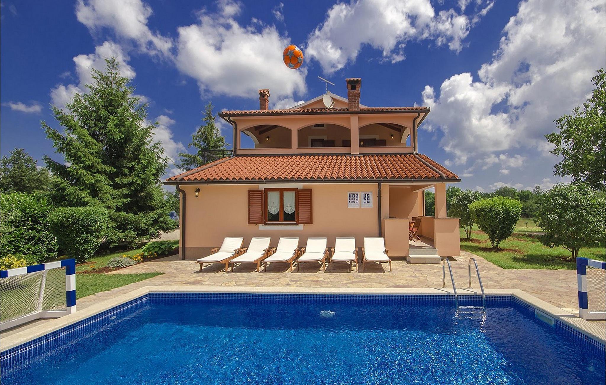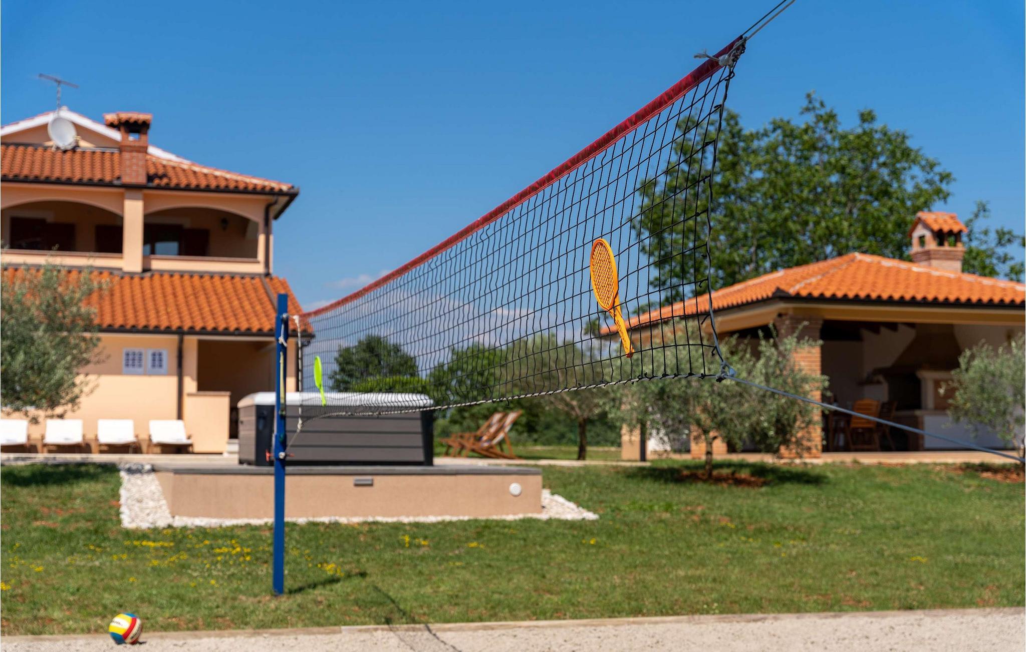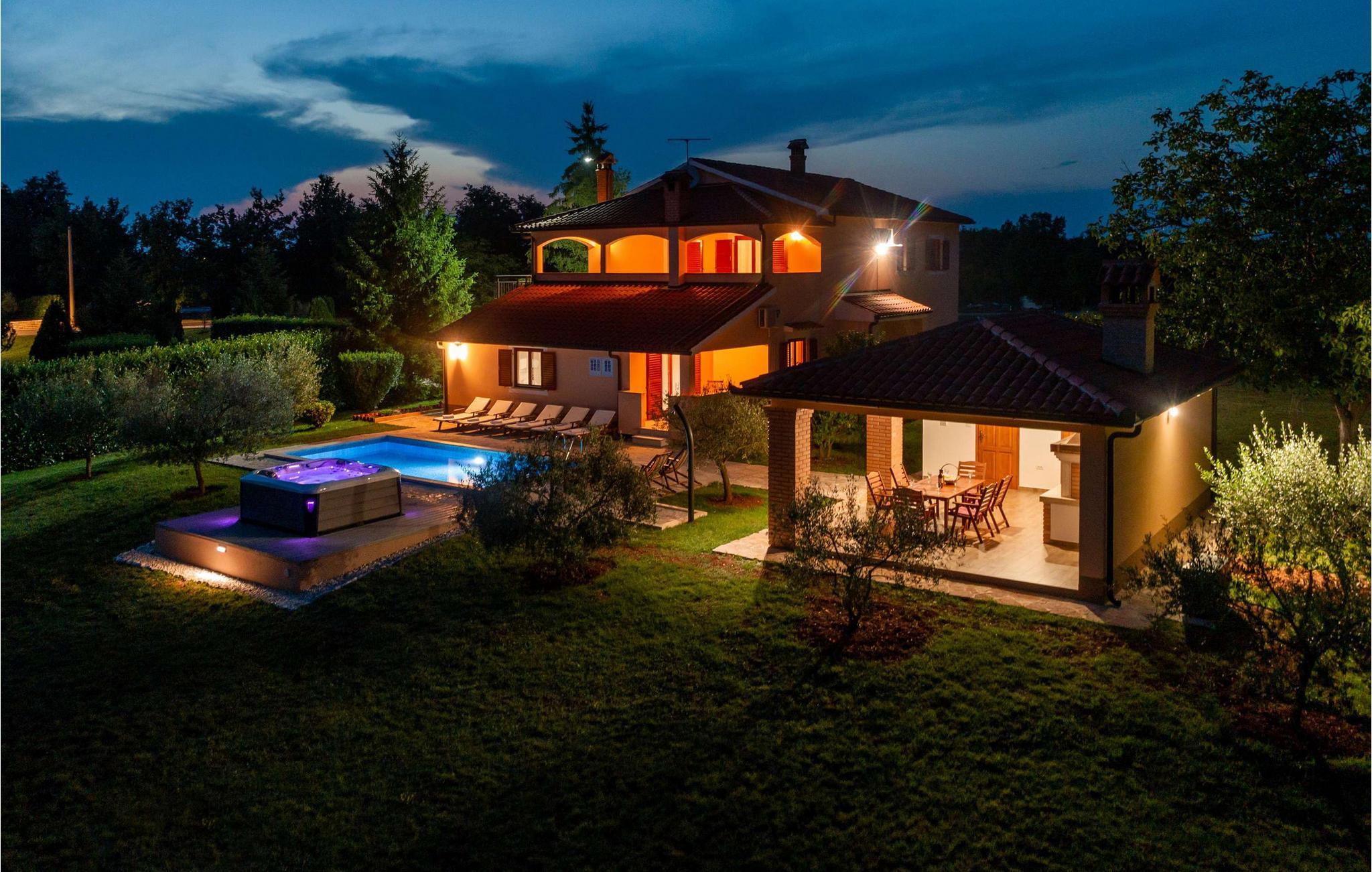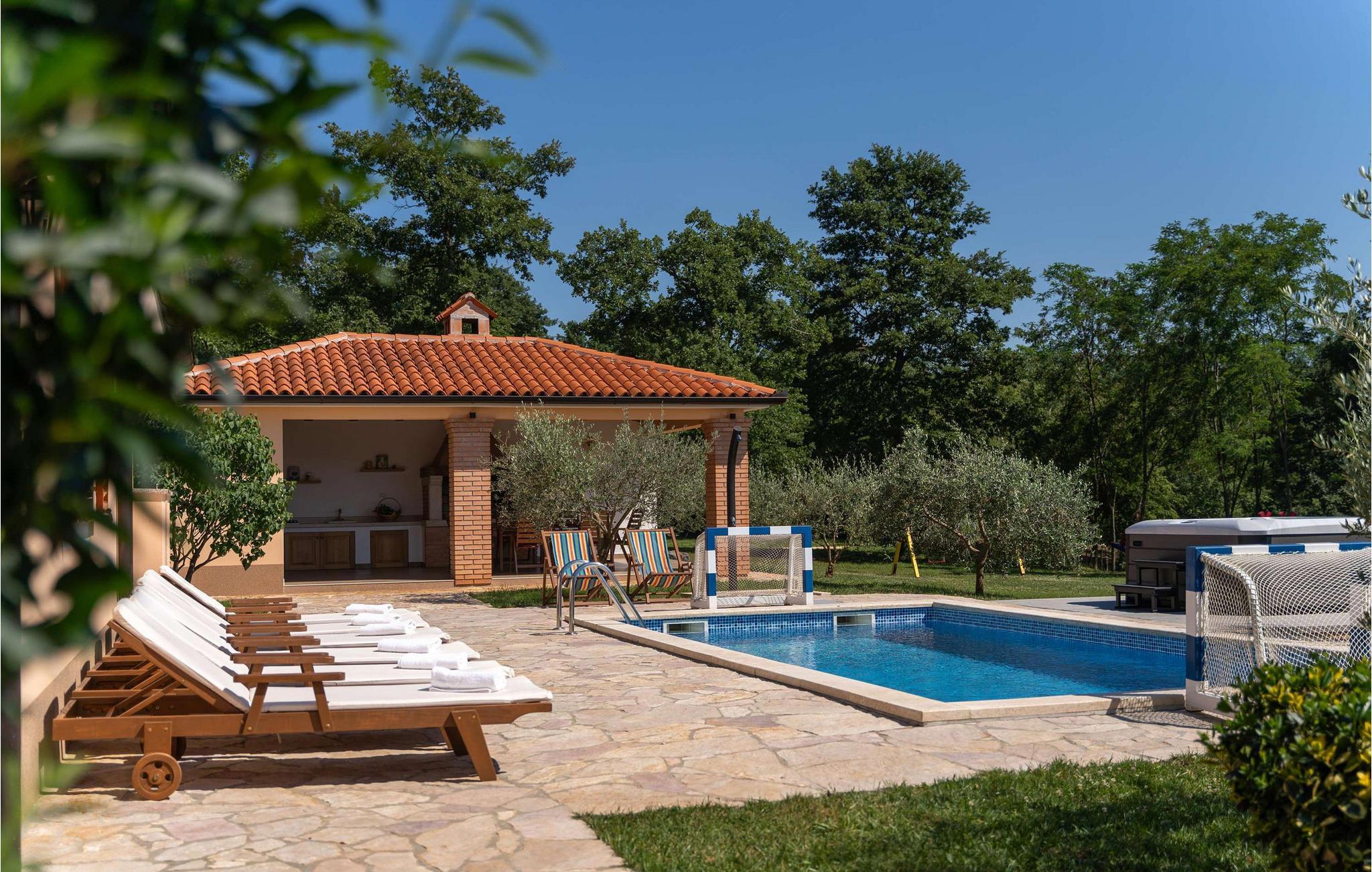 Denne sjarmerende villaen ligger i den pittoreske landsbyen Vrani?i, bare 15 km fra turistsenteret Pore? og bare 5 km fra den fantastiske byen Motovun. Markeder, restauranter, apotek og andre fasiliteter ligger i disse byene og er innen rekkevidde. Den vakre villaen Vrani?i består av to pent innredede soverom med dobbeltsenger og to mindre soverom med separate enkeltsenger som kan settes sammen ved behov. Her er det optimal soveplass for 8 personer, men det er også plass til ytterligere 2 gjester i den komfortable uttrekkbare sofaen i en av de sjarmerende stuene. Det 150 m² store oppholdsrommet i Villa Vrani?i har klimaanlegg, to velutstyrte kjøkken, to bad og to sjarmerende stuer, i tillegg til en 25 m² stor balkong og en 4000 m² stor hage. Det vakre bassenget er oppvarmet, og det finnes også et utendørs boblebad for ekstra avslapning. Underholdningsfasilitetene på Villa Vrani?i omfatter dessuten en lekeplass med sand, akebakke, husker, trampoline og trehytte. En badmintonbane med utstyr og 6 sykler er tilgjengelig kostnadsfritt. Kjæledyr er tillatt på dette overnattingsstedet etter eierens skjønn eller mot en avgift. Vær oppmerksom på at dette overnattingsstedet ikke tar imot ungdomsgrupper eller utdrikningslag. En ungdomsgruppe på dette overnattingsstedet består av personer under 30 år. Du må ikke booke dette overnattingsstedet hvis du er en ungdomsgruppe eller et utdrikningslag, da bookingen din vil bli avvist etter bestilling, noe som også kan være tilfelle ved ankomst til overnattingsstedet eller under oppholdet, og du vil ikke få refusjon.