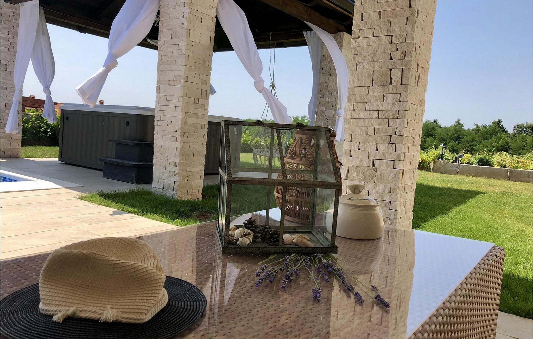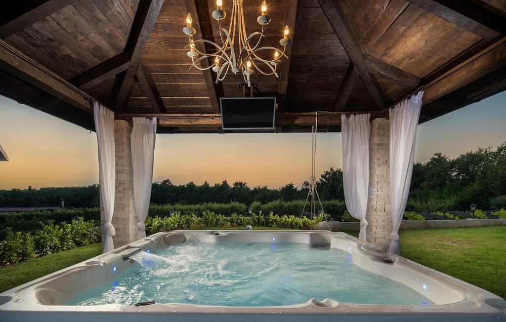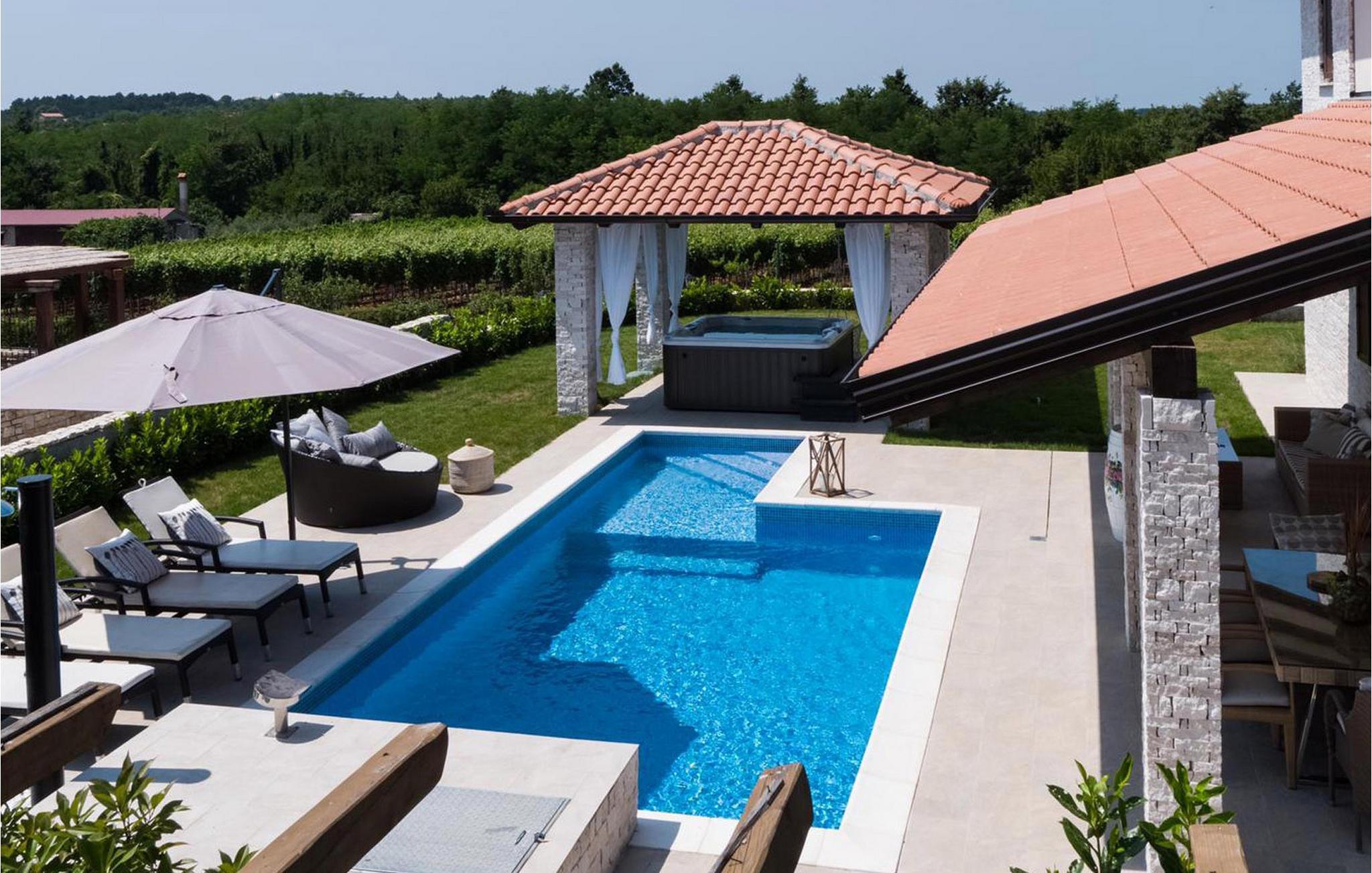 Villa Theo ligger i den pittoreske byen Vi?njan i den vestlige delen av Istria og er et godt valg for en familieferie. Hvis du vil nyte vakker natur, førsteklasses gastronomiske tilbud, mange aktiviteter og et luksuriøst hus, vil denne villaen gi deg ferien du venter på. Dette elegante huset med utsikt over sjarmerende istriske hus og vingårder kan være det midlertidige drømmehjemmet for 6 + 2 gjester. I første etasje finner du et fullt utstyrt kjøkken av høyeste kvalitet, en spisestue med plass til 8 personer og en koselig stue med peis. I den klimatiserte stuen kan du kose deg med hjemmekino eller PlayStation 4. I første etasje kan du slappe av i den infrarøde badstuen med egen dusj. Ovenpå er det 3 soverom med komfortable king-size-senger, og to av rommene har en sovesofa som ekstraseng. Alle rommene har aircondition og TV med internett og Netflix-abonnement. I andre etasje er det 3 elegante bad ? 2 bad med dusj og vask og ett med to vasker og badekar. I samme etasje er det et vaskerom med vaskemaskin og tørketrommel. På en inngjerdet tomt på 650 m2 er det en vakker hage hvor du kan slappe av med familie og venner. Her kan du forfriske deg i det 30 m² store bassenget med fossefall eller se på favorittserien din i boblebadet, som har TV med internettforbindelse. Rundt bassenget er det 4 solsenger og 1 rund solseng for avslappende dager - den andre står på terrassen til et av soverommene. Under den overbygde terrassen er det et utendørsbord med plass til 8 personer, som er et ideelt sted å nyte deilige måltider tilberedt på gass- og kullgrillen. Barna kan kose seg med ulike rekvisitter til bassenget, leker og rutsjebanen. Villaen har 2 overbygde parkeringsplasser. Den sjarmerende byen Vi?njan er en av de mange pittoreske byene i Istria og er mest kjent for sitt astronomiske observatorium. Den lille byen ligger 15 km fra Pore? og 20 km fra Novigrad. Fornøyelsesparkene Aquacolours og Aquapark Istralandia ligger i nærheten. Baredine-grotten ligger bare 7 km fra Visnjan og er et geomorfologisk naturmonument. Naturen i dette området byr på mange muligheter for utflukter, fotturer og sykling, og du vil bli begeistret over de berømte vin- og olivenoljerutene, samt det gastronomiske tilbudet med trøfler. Vær oppmerksom på at dette overnattingsstedet ikke tar imot ungdomsgrupper eller utdrikningslag. En ungdomsgruppe på dette overnattingsstedet består av personer under 30 år. Ikke bestill dette overnattingsstedet hvis du er en ungdomsgruppe eller et utdrikningslag, da bestillingen din vil bli avvist etter bestilling, noe som også kan være tilfelle ved ankomst til overnattingsstedet eller under oppholdet, og du vil ikke få refusjon.