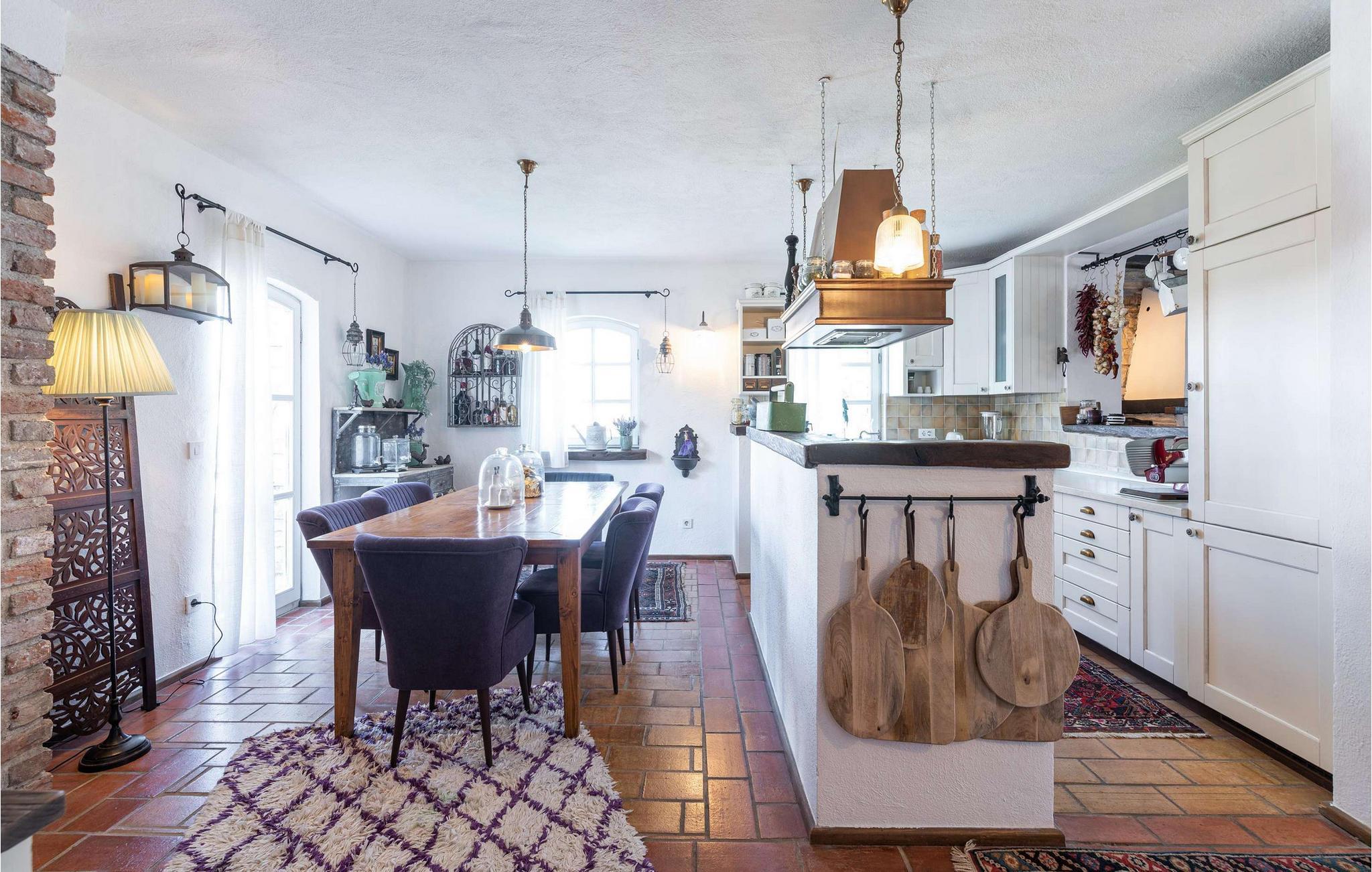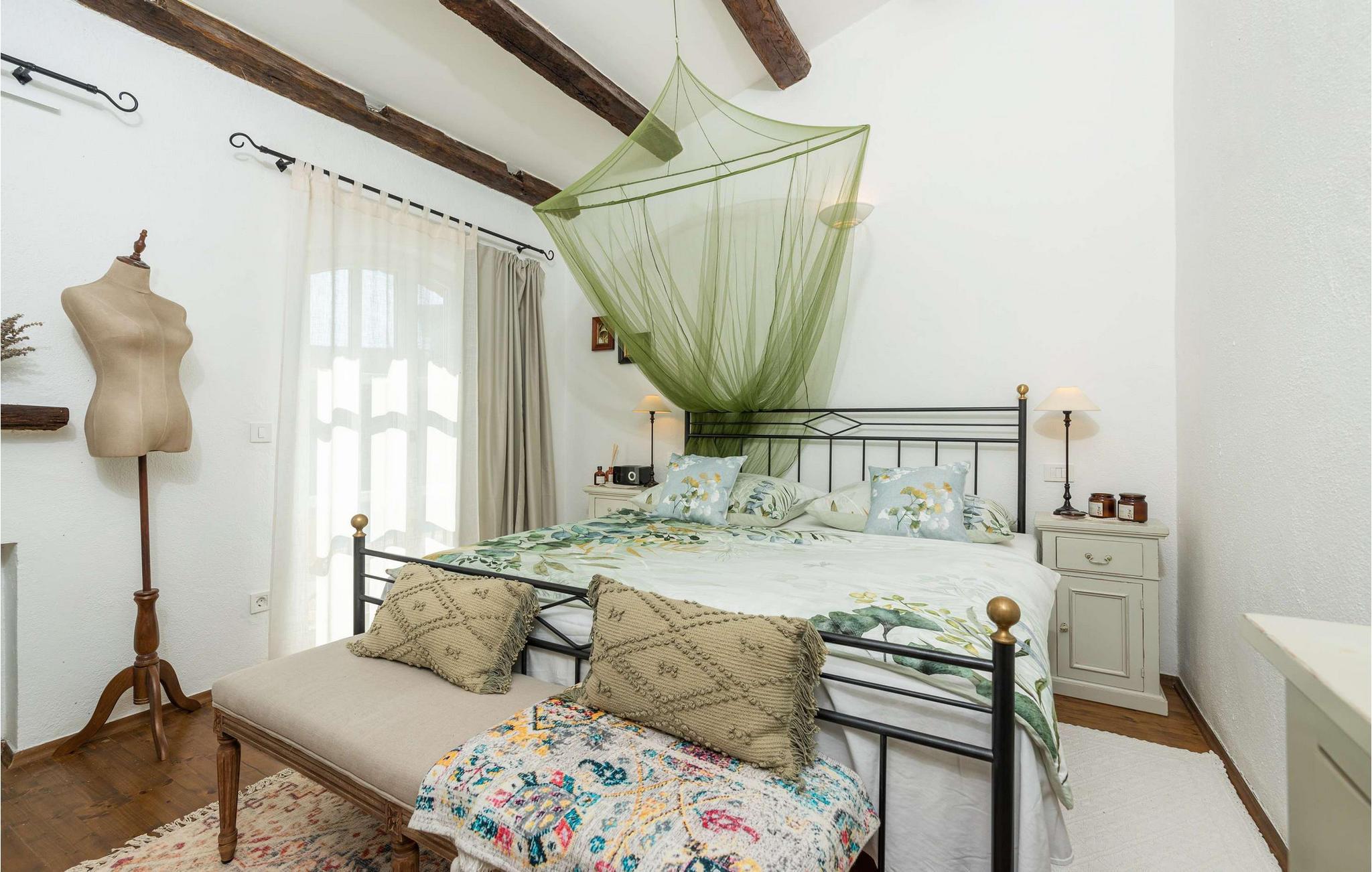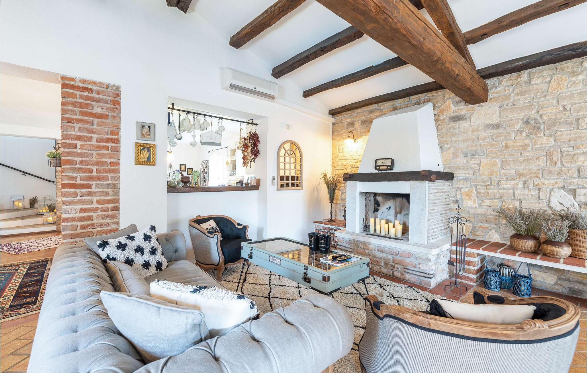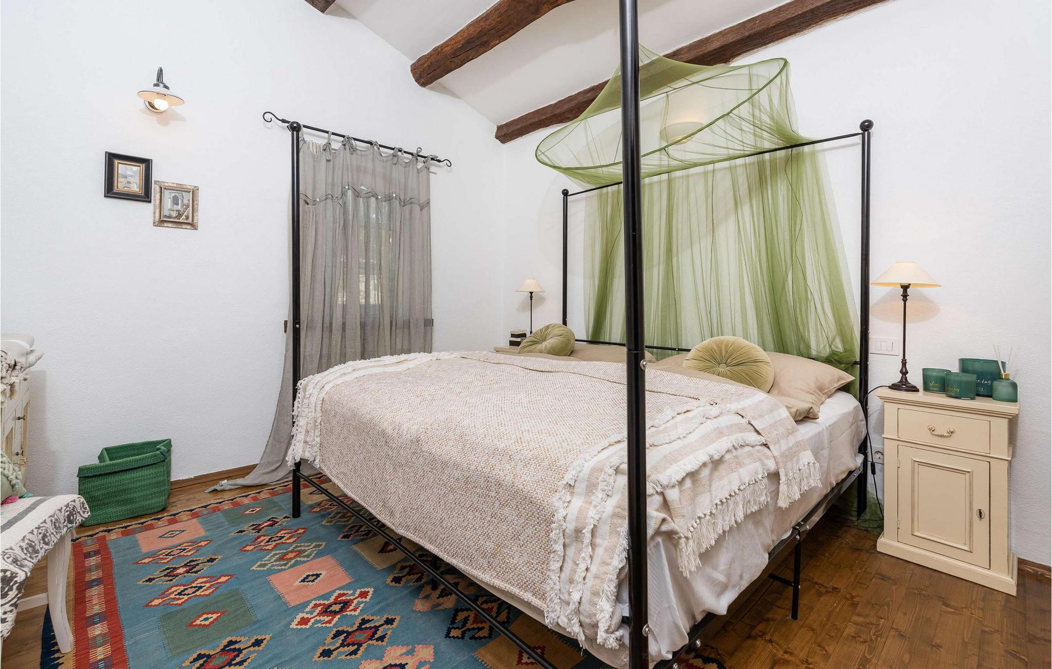 Villa Novel ligger i landsbyen Barat, bare 3 km fra byen Vi?njan. Dette stedet er det perfekte valget for alle som elsker tradisjoner og et rikt turistprogram som vil glede enhver gjest. Villa Novel vil tilby deg mer enn du trenger, og sammen med familie eller venner vil du nyte en perfekt ferie! Villa Novel ble renovert i 2022 i en rustikk arkitektonisk stil og tilbyr 165 m2 boareal, mens eiendommens totale areal er 750 m2. Villaen har aircondition og plass til maksimalt 9 personer, optimalt 8. Gjestene har første etasje og andre etasje til disposisjon. I første etasje er det to soverom med dobbeltsenger, og det er også to bad med badekar. Det rustikke og velutstyrte kjøkkenet vil glede deg med sitt utseende, og du vil nyte å tilberede måltider for hele familien der. Ved siden av kjøkkenet ligger spisestuen og stuen, som er utstyrt med en sofa, to lenestoler, et salongbord, en TV og en romantisk peis. Ovenpå er det ytterligere to soverom med dobbeltsenger og to bad med dusjkabinett. Fra samme etasje har Villa Novel utsikt over Adriaterhavet. På utendørsterrassen er det et 32 m2 stort svømmebasseng med en dybde på 1,8 meter. Ved siden av bassenget kan du sole deg på 9 solsenger, lese favorittboken din eller bare nyte solen. Terrassen har også et overbygd utendørs spisebord, en utendørs kull- eller vedgrill og uteservering. Villaen har også vaskemaskin og tørketrommel som kan være nyttige under oppholdet. I tillegg har villaen et separat toalett. Hvis du har barn med på ferie, er det et fôringskar og en barneseng tilgjengelig. Villaens gårdsplass er inngjerdet, så barna kan leke ubekymret i den vakkert anlagte hagen. Det er 3 private parkeringsplasser til disposisjon, og ytterligere to ligger utenfor. Vi?njan er en av Istrias vakreste byer med en spesiell sjarm og er kjent for sitt observatorium, som du kan besøke. Turistsentrene ? Pore? og Novigrad ? ligger ca. 20 km unna, og i nærheten finner du en rekke utmerkede vingårder og restauranter for de mest krevende gourmeter, som kan nyte spesialiteter med trøfler og andre istriske delikatesser. I Vi?njan kan du nyte romantiske kvelder med musikkonserter, filmvisninger, festivaler og messer om sommeren. Unn deg en ferie i Villa Novel og nyt et vakkert steinhus, eventyrlig natur og mange strender med et rikt turisttilbud. Velkommen til oss!