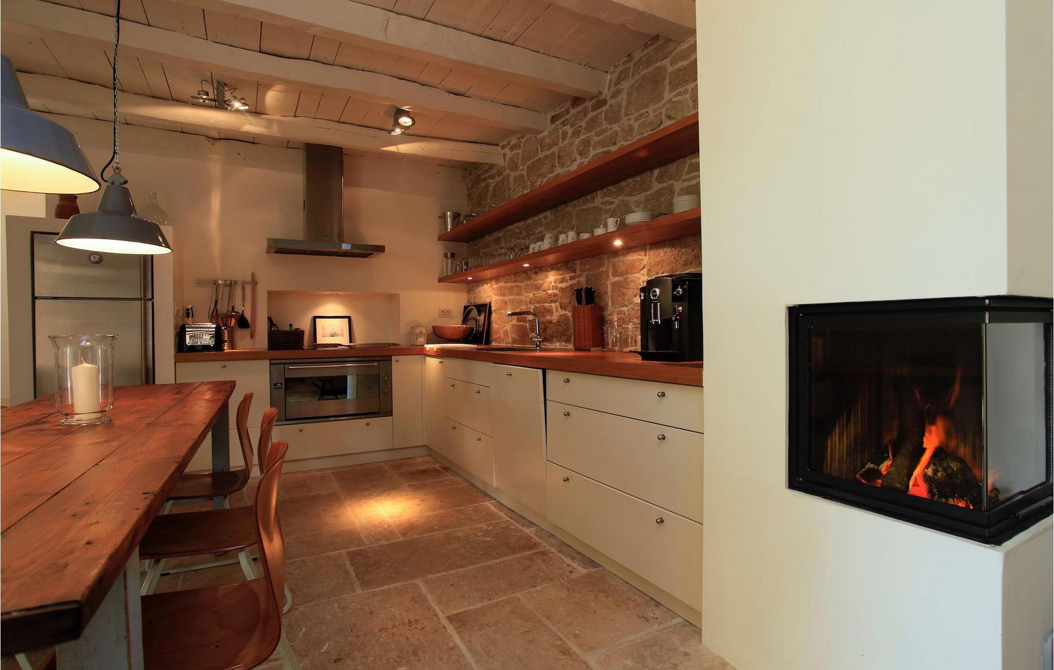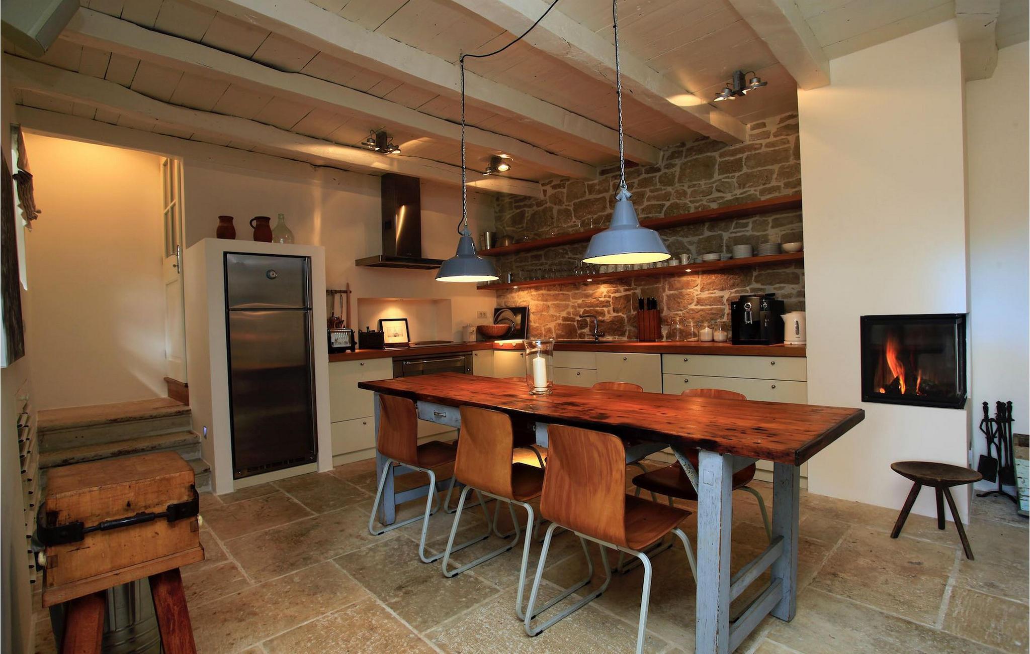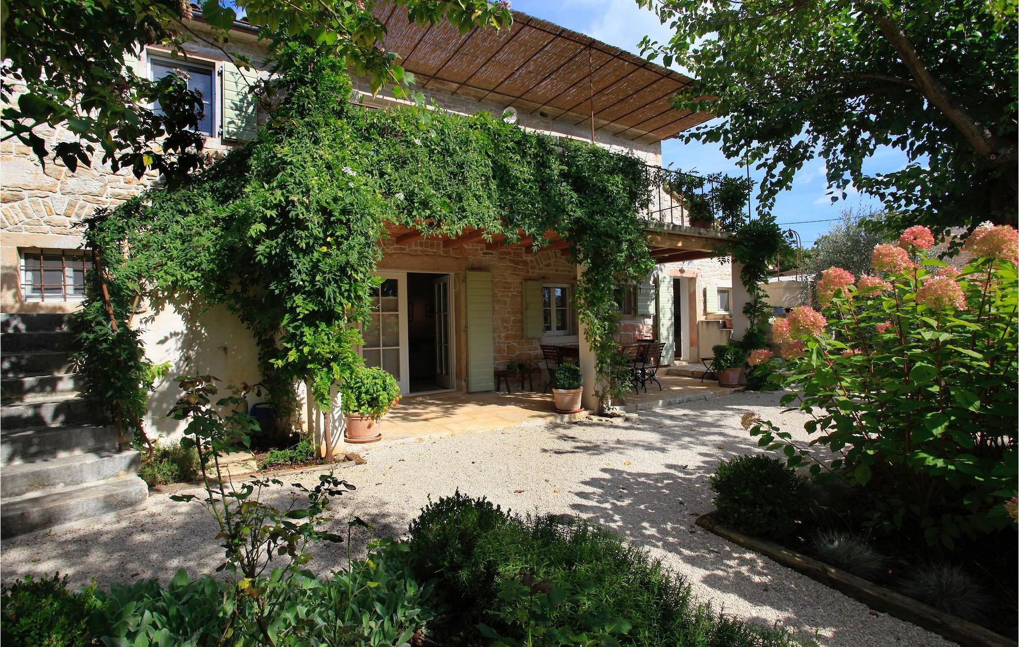 Villaen har plass til opptil fire personer. Det koselige interiøret er innredet i tradisjonell istrisk stil. Den sjarmerende kombinasjonen av tre og stein skaper en varm og koselig atmosfære som får deg til å føle deg som hjemme. Første etasje i denne vakre villaen består av et rustikt kjøkken i åpen planløsning med stue og spiseplass og et elegant innredet soverom med dobbeltseng og eget bad. I øverste etasje er det et annet koselig soverom med et romslig bad.