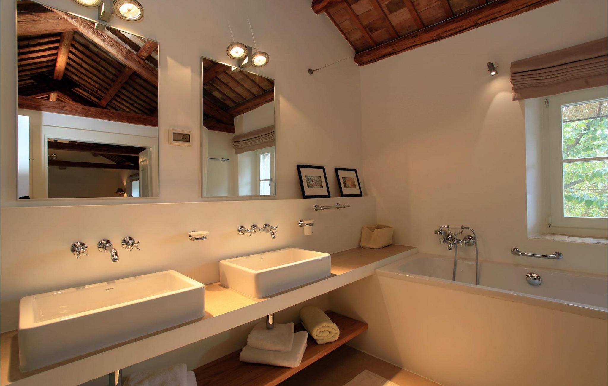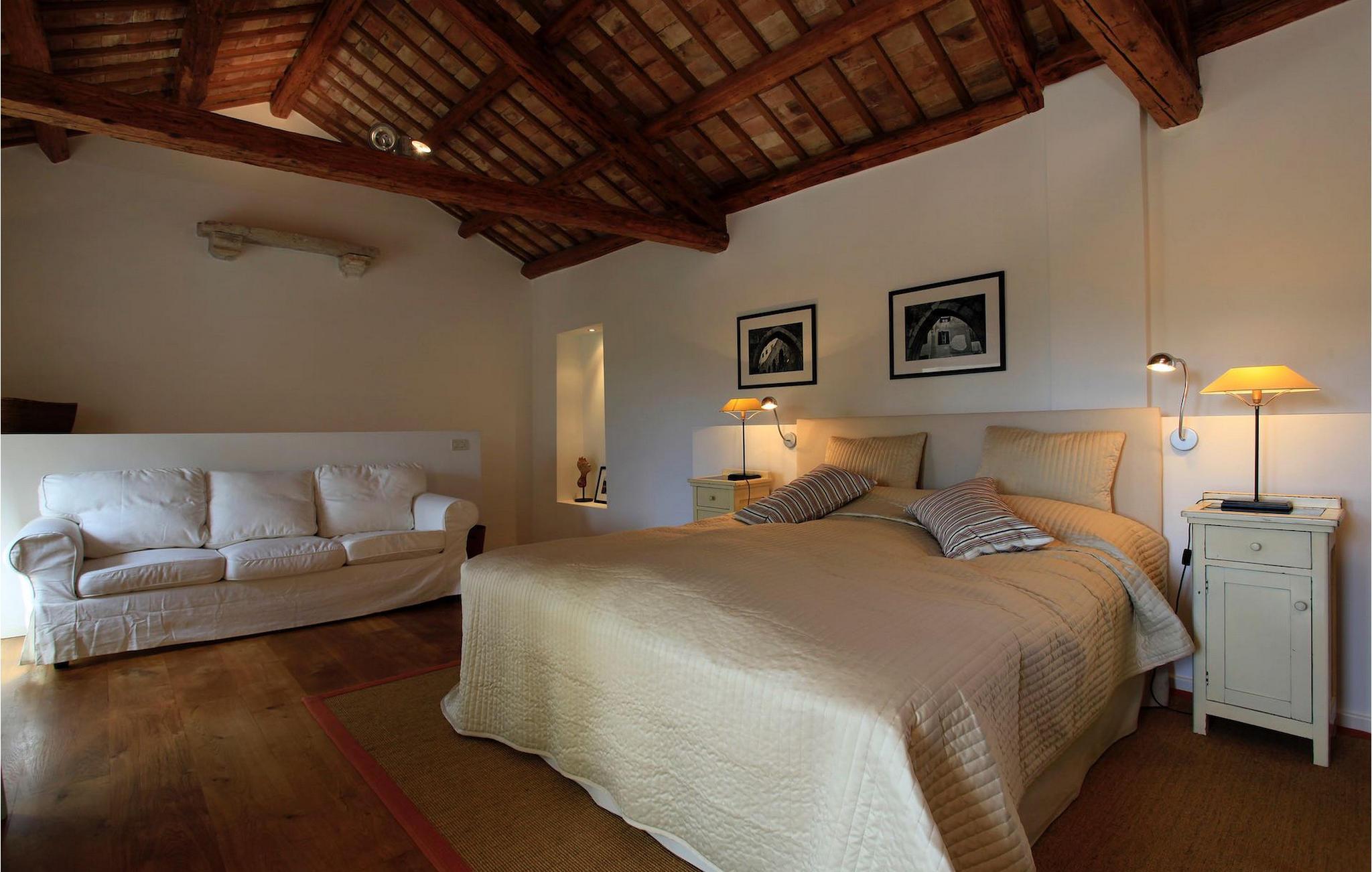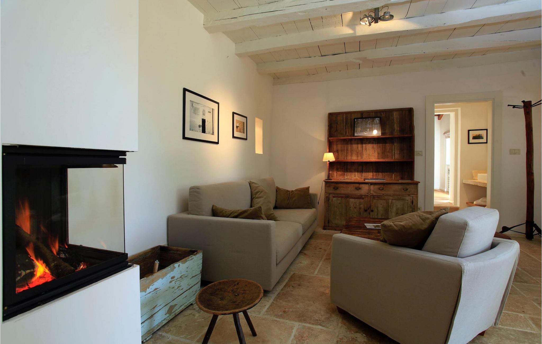 Villaen har plass til opptil fire personer. Det koselige interiøret er innredet i tradisjonell istrisk stil. Den sjarmerende kombinasjonen av tre og stein skaper en varm og koselig atmosfære som får deg til å føle deg som hjemme. Første etasje i denne vakre villaen består av et rustikt kjøkken i åpen planløsning med stue og spiseplass og et elegant innredet soverom med dobbeltseng og eget bad. I øverste etasje er det et annet koselig soverom med et romslig bad.