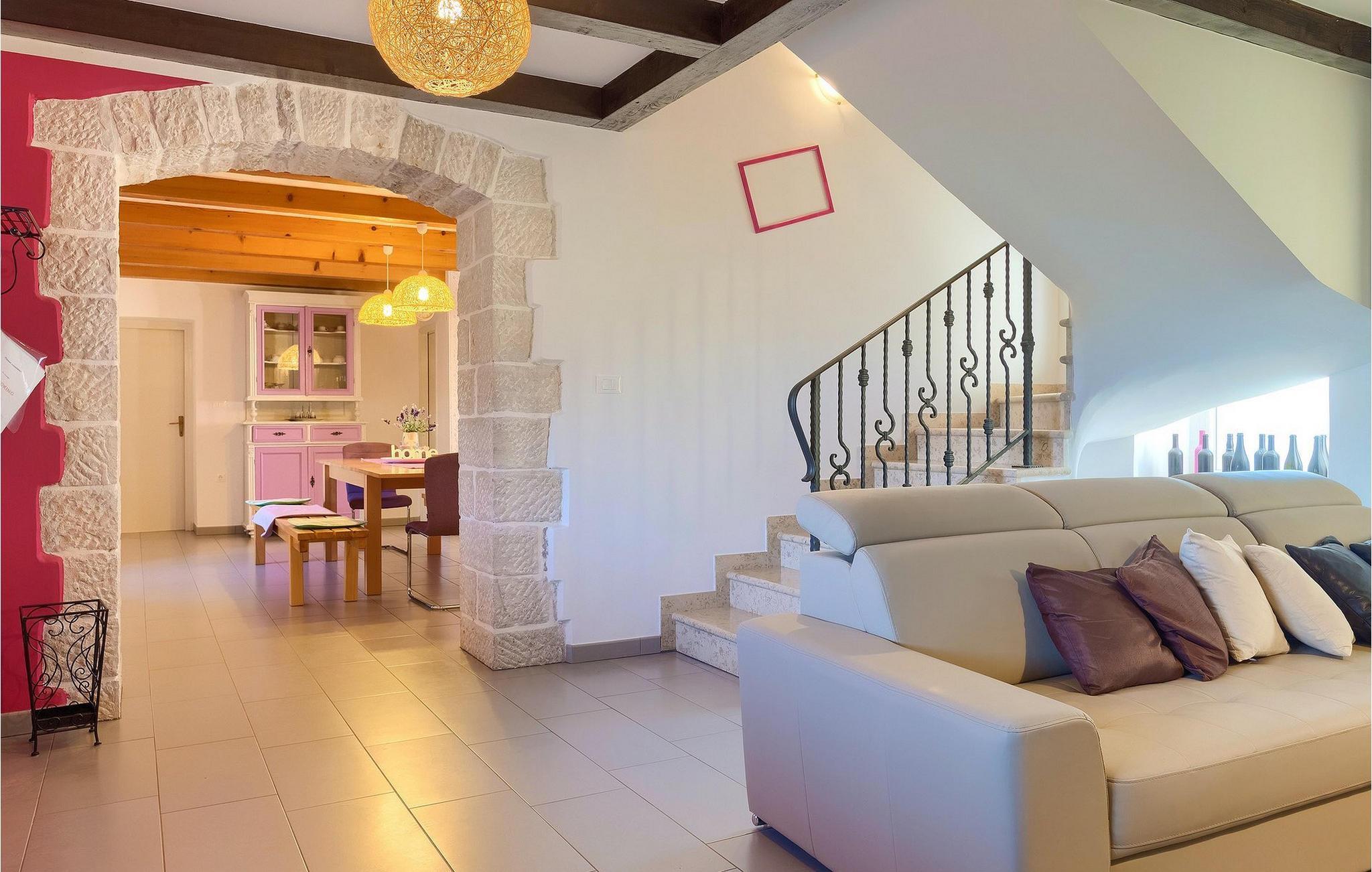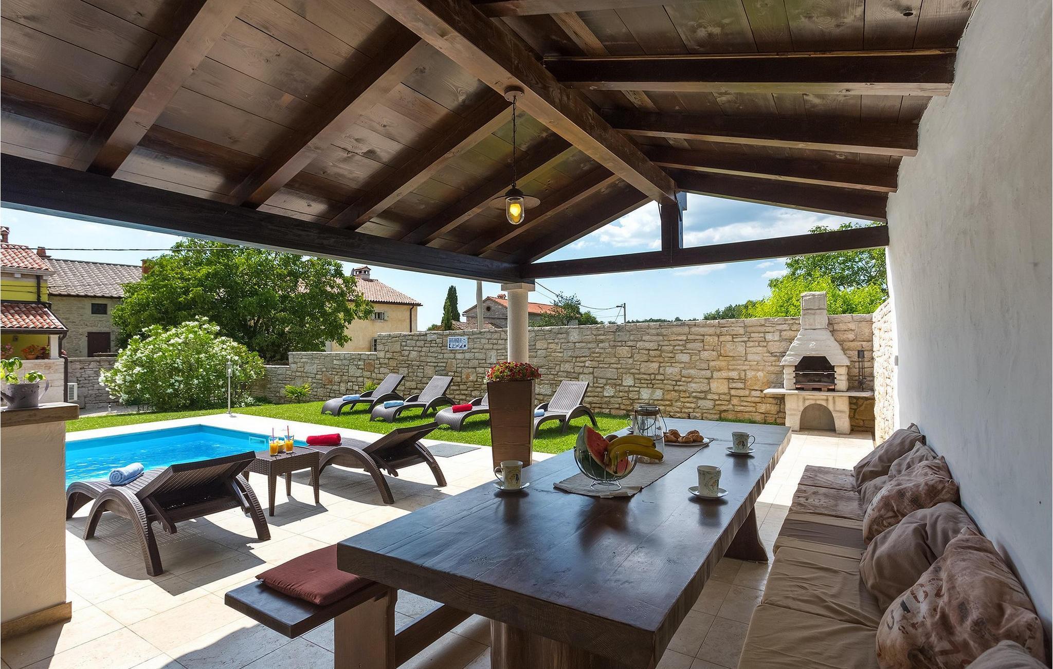 Dette vakre, typiske istriske steinhuset ligger i en liten landsby i nærheten av Vinjan. Huset er nylig renovert og pusset opp, og er et ideelt sted for en ferie fra hverdagens stress. Interiøret er moderne med matchende, forfriskende farger. Feriehuset har en inngjerdet hage, som er ideell for barn, og et svømmebasseng, som også vil glede barna. Ved siden av utendørsbassenget er det en overbygd terrasse med grill hvor du kan tilberede en rekke kjøtt- og fiskespesialiteter. Selve huset er veldig romslig, og i første etasje er det stue, kjøkken, spisestue og et soverom med direkte tilgang til badet. I andre etasje er det ytterligere tre soverom med bad, alle innredet i forskjellige farger. Feriehuset har aircondition, og våre gjester har tilgang til internett.Villa Jona ligger i en liten landsby i nærheten av Vinjan. Vinjan er en liten by i det sentrale Istria. Det sentrale Istria er kjent for sine små, pittoreske middelalderbyer som minner uimotståelig om Toscana eller Provence. Vinjan ligger på toppen av en ås. Den er omgitt av skog og ligger 10 km nordøst for Pore. I Vinjan finner du restauranter, supermarkeder, kafeer, bank, apotek, ambulanse og postkontor. I Vinjans omegn kan du spise på tradisjonelle istriske tavernaer og smake på typiske istriske spesialiteter samt de beste vinene fra regionen Malvasia og Teran. Vinjan er et spesielt interessant sted for astronomielskere på grunn av det internasjonalt anerkjente astronomiske observatoriet. Under oppholdet i Istria kan du besøke Eufrasius-basilikaen (Unesco-kulturarv) i den gamle bykjernen i Pore (18 km) eller kjøre til den første stranden for å nyte den.