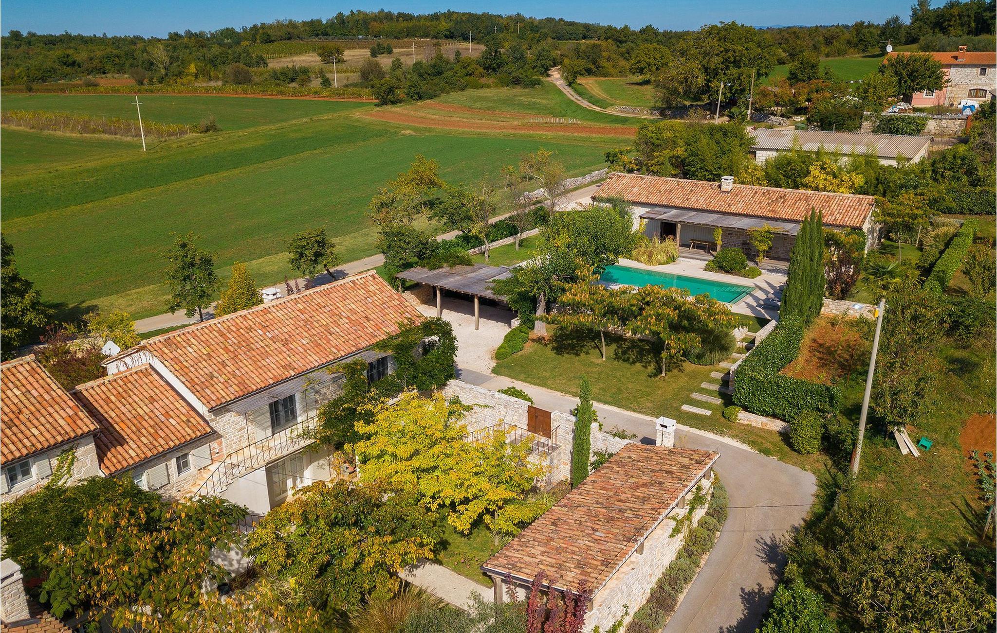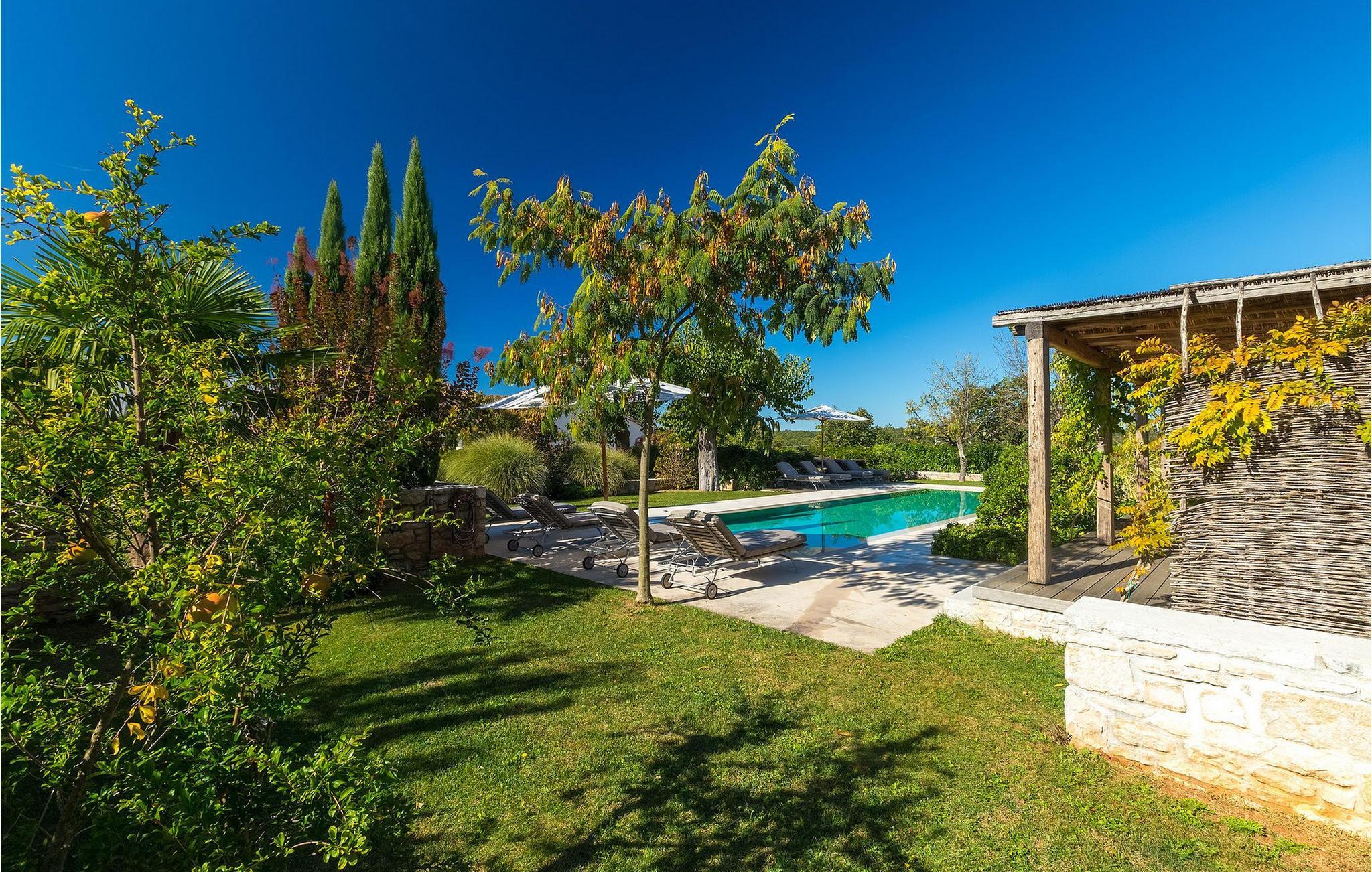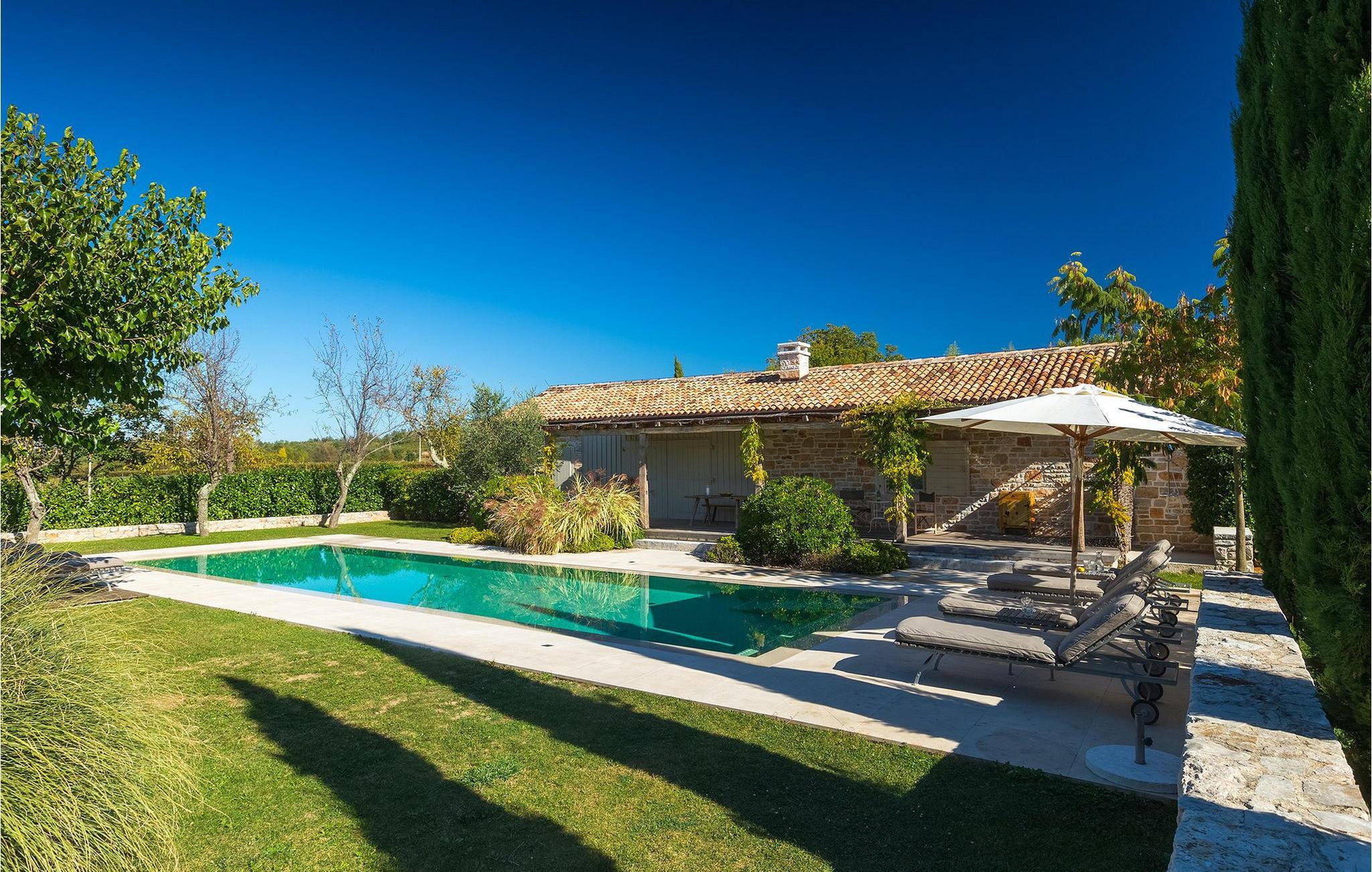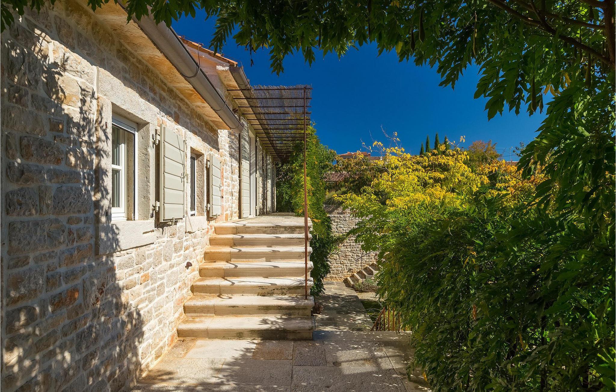 På varme sommerdager vil du nødig forlate bassenget og skyggen på den overbygde terrassen ved siden av. Den flotte hagen vedlikeholdes av en profesjonell gartner. Her kan du nyte måltidene dine ved det store uteserveringsbordet og nyte skjønnheten i den uberørte naturenI den lille landsbyen Prascari i Visnjan kommune ligger denne villaen i en eventyrlig landsby i hjertet av Istria. Landsbyen er omgitt av enger og skog, og består av noen få familiehus og feriehus. Den fullstendig restaurerte landsbyen, freden og roen på landsbygda, den uberørte naturen og den idylliske atmosfæren er bare en del av sjarmen ved dette stedet. Byen Visnjan ligger bare 5 kilometer fra Prascari. Helt siden venetianernes tid har Visnjan vært et velkjent handelssentrum der alle slags landbruksprodukter og redskaper ble solgt. Selv i dag arrangeres det et tradisjonelt marked den siste torsdagen i hver måned, noe som er en spesiell attraksjon for folk fra hele Istria. Fra den eldgamle terrassen på torget, som man kommer inn på gjennom en bue med motiv av en venetiansk løve, har man en fantastisk utsikt over havet. Visnjan er et spesielt interessant sted for astronomientusiaster på grunn av det internasjonalt anerkjente astronomiske observatoriet. Den populære turistbyen Porec ligger en kort kjøretur unna. Under oppholdet i villaene våre i nærheten av Porec må du ikke gå glipp av muligheten til å besøke Euphrasia-basilikaen. Den ble bygget på midten av 600-tallet og regnes som et av de vakreste kunstverkene i verden. Porec er en by rik på kulturarv, der den massive bymuren stopper tiden og ønsker besøkende velkommen.