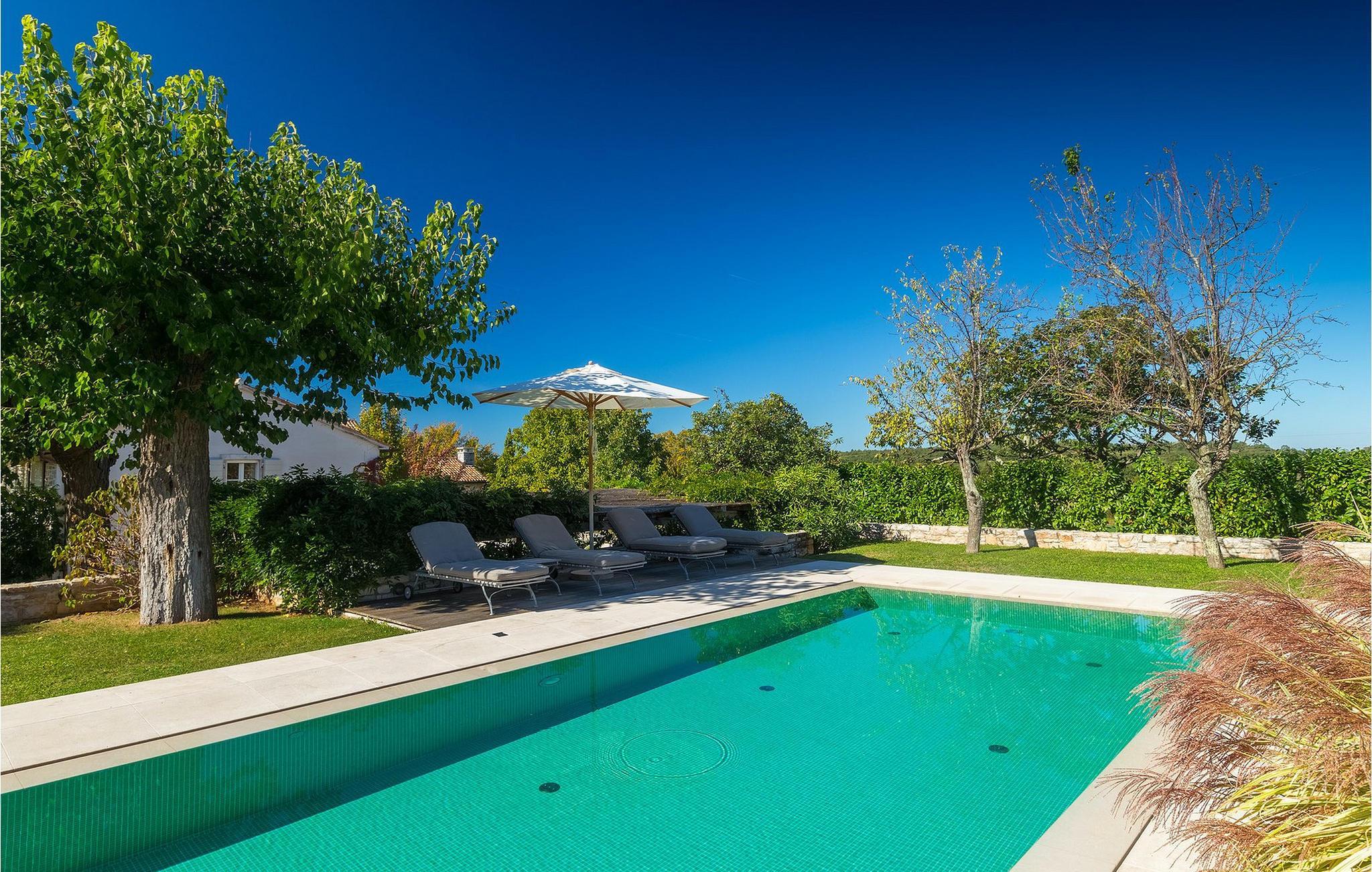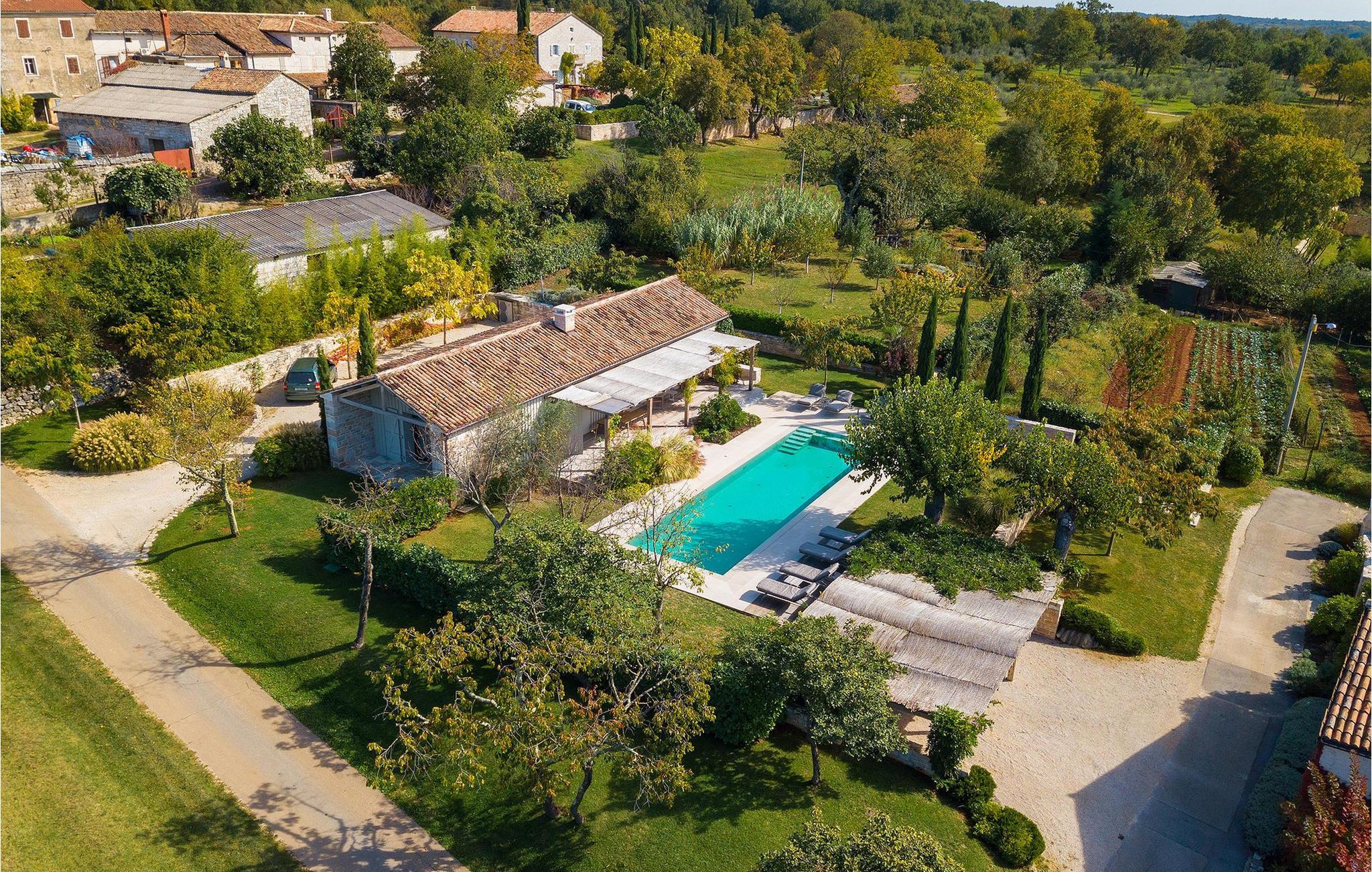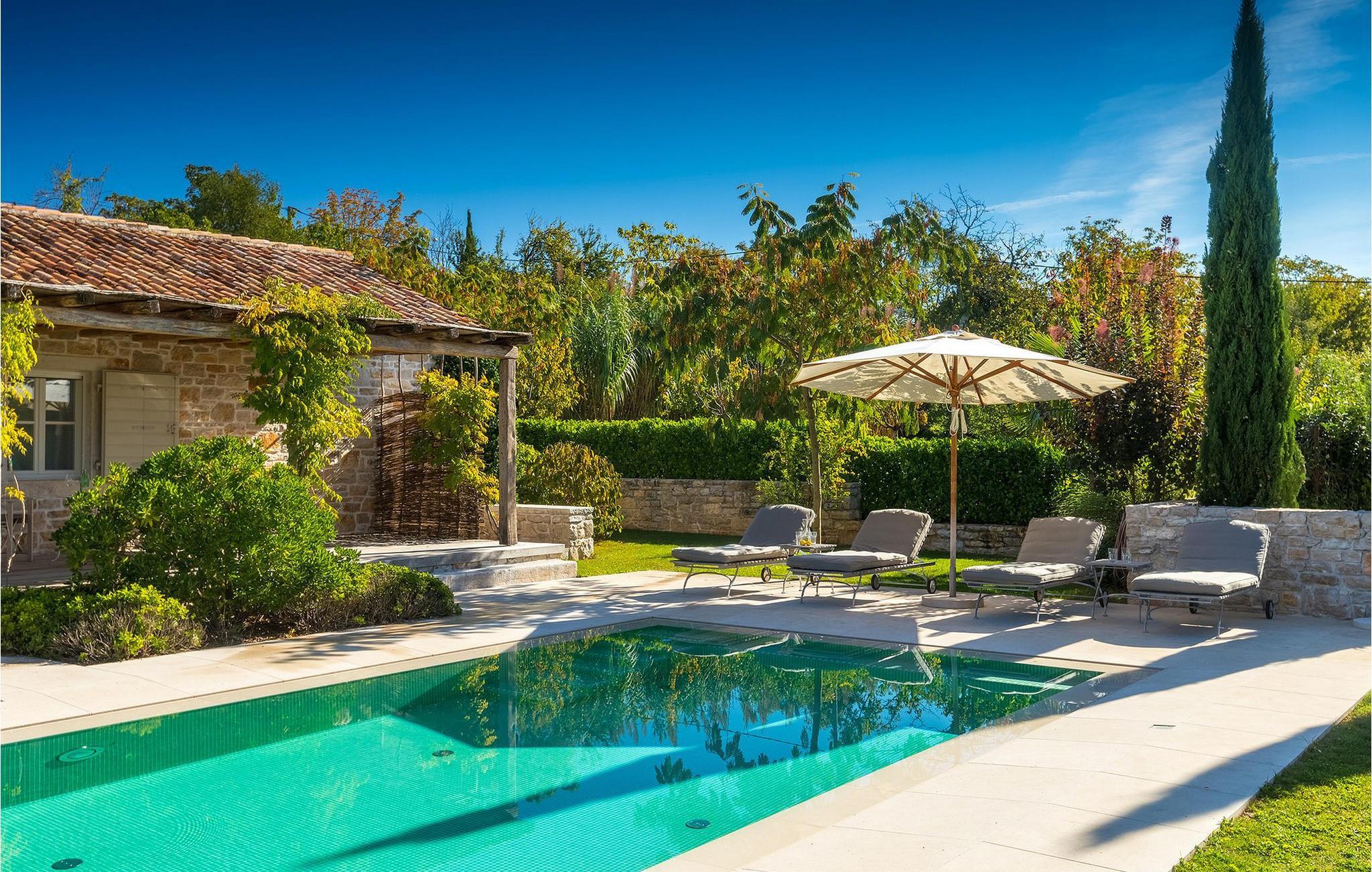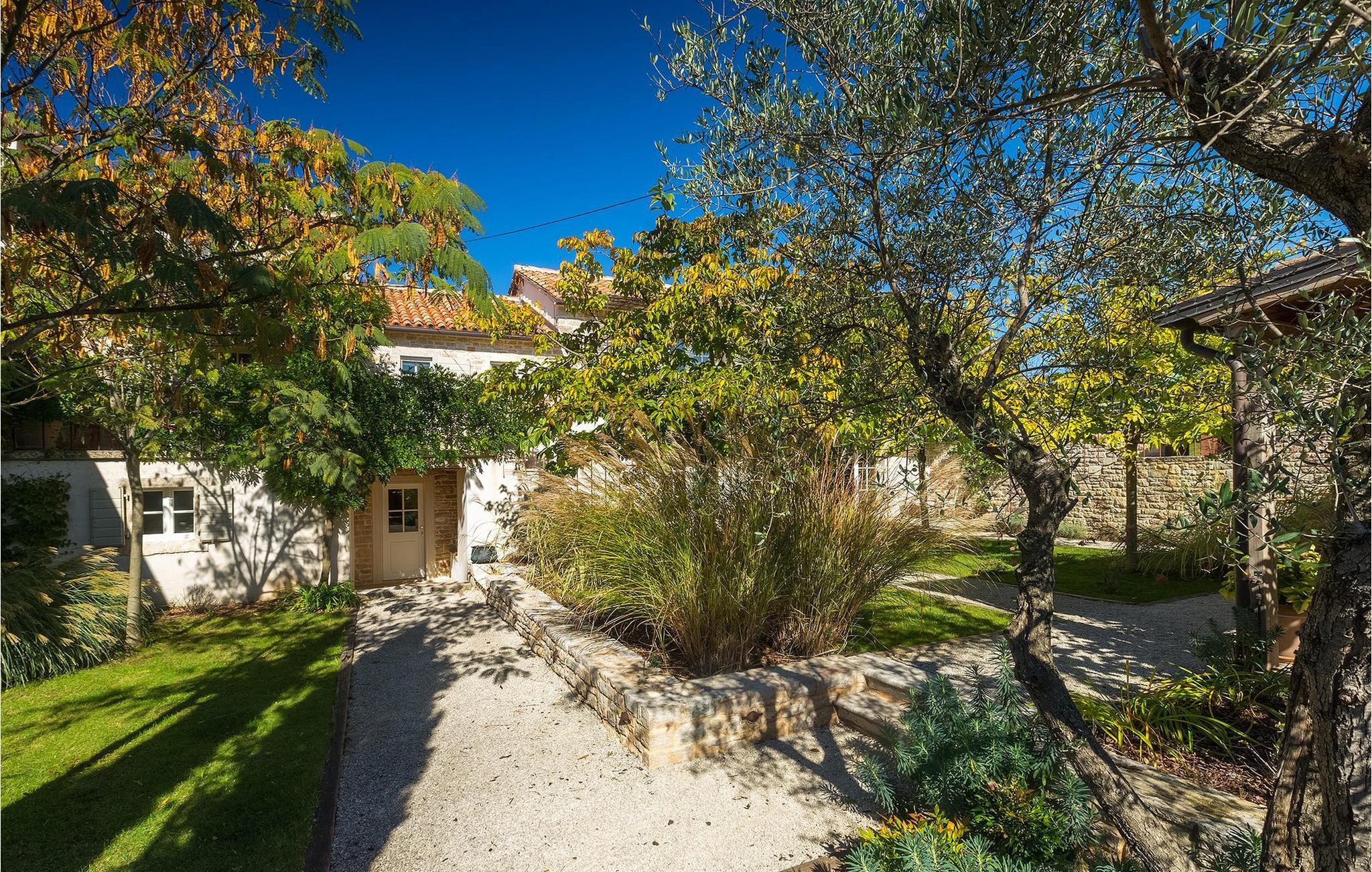 På varme sommerdager vil du nødig forlate bassenget og skyggen på den overbygde terrassen ved siden av. Den flotte hagen vedlikeholdes av en profesjonell gartner. Her kan du nyte måltidene dine ved det store uteserveringsbordet og nyte skjønnheten i den uberørte naturenI den lille landsbyen Prascari i Visnjan kommune ligger denne villaen i en eventyrlig landsby i hjertet av Istria. Landsbyen er omgitt av enger og skog, og består av noen få familiehus og feriehus. Den fullstendig restaurerte landsbyen, freden og roen på landsbygda, den uberørte naturen og den idylliske atmosfæren er bare en del av sjarmen ved dette stedet. Byen Visnjan ligger bare 5 kilometer fra Prascari. Helt siden venetianernes tid har Visnjan vært et velkjent handelssentrum der alle slags landbruksprodukter og redskaper ble solgt. Selv i dag arrangeres det et tradisjonelt marked den siste torsdagen i hver måned, noe som er en spesiell attraksjon for folk fra hele Istria. Fra den eldgamle terrassen på torget, som man kommer inn på gjennom en bue med motiv av en venetiansk løve, har man en fantastisk utsikt over havet. Visnjan er et spesielt interessant sted for astronomientusiaster på grunn av det internasjonalt anerkjente astronomiske observatoriet. Den populære turistbyen Porec ligger en kort kjøretur unna. Under oppholdet i villaene våre i nærheten av Porec må du ikke gå glipp av muligheten til å besøke Euphrasia-basilikaen. Den ble bygget på midten av 600-tallet og regnes som et av de vakreste kunstverkene i verden. Porec er en by rik på kulturarv, der den massive bymuren stopper tiden og ønsker besøkende velkommen.