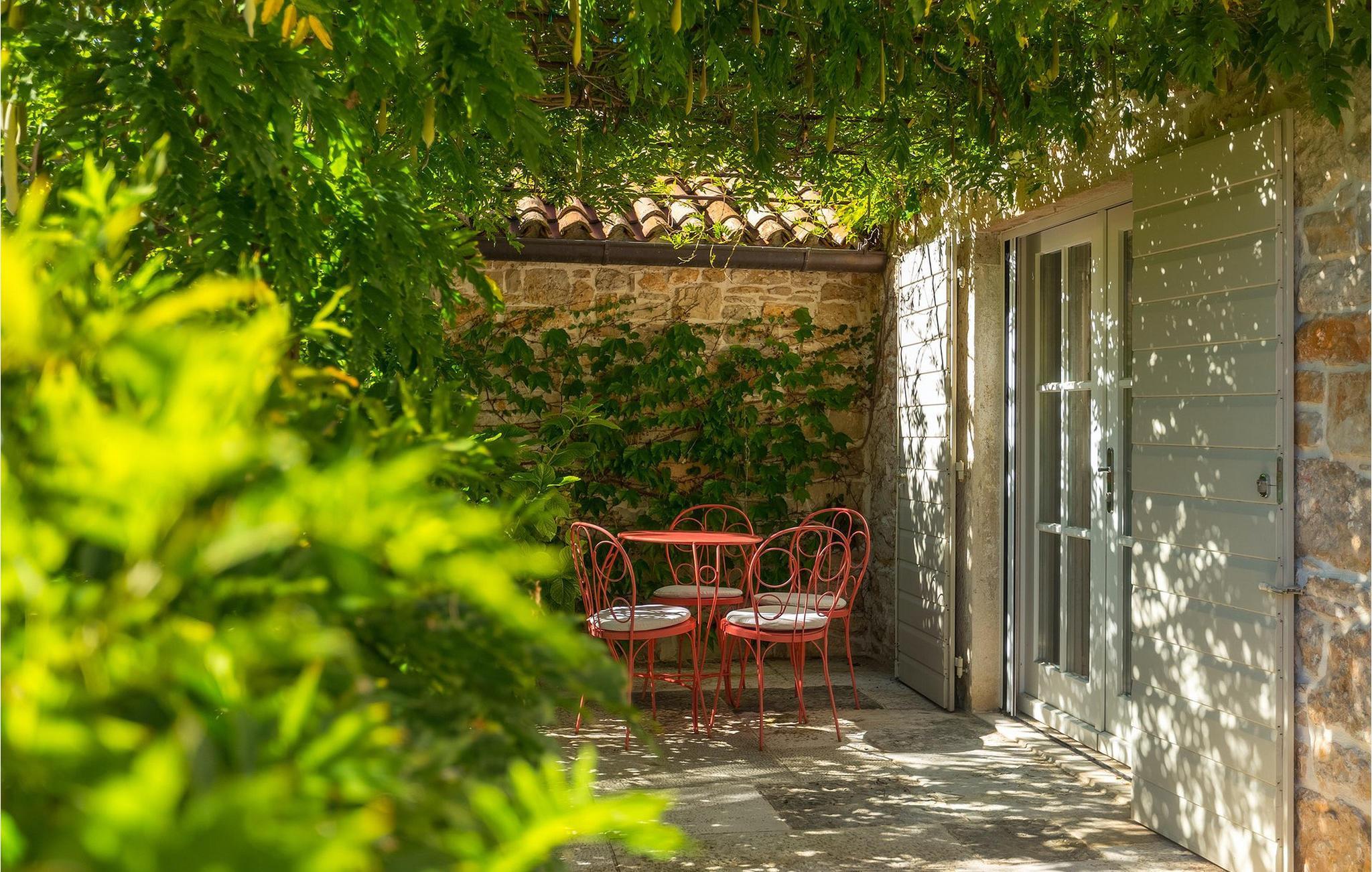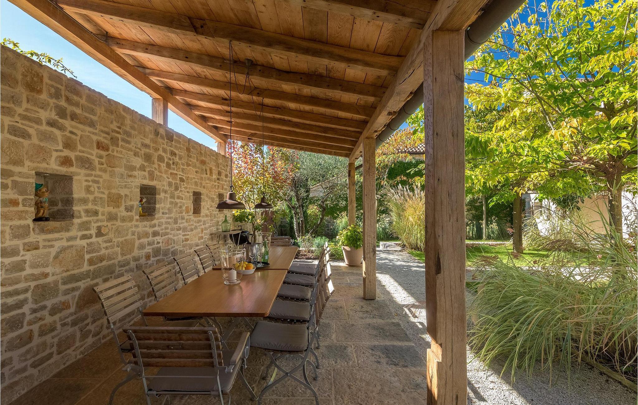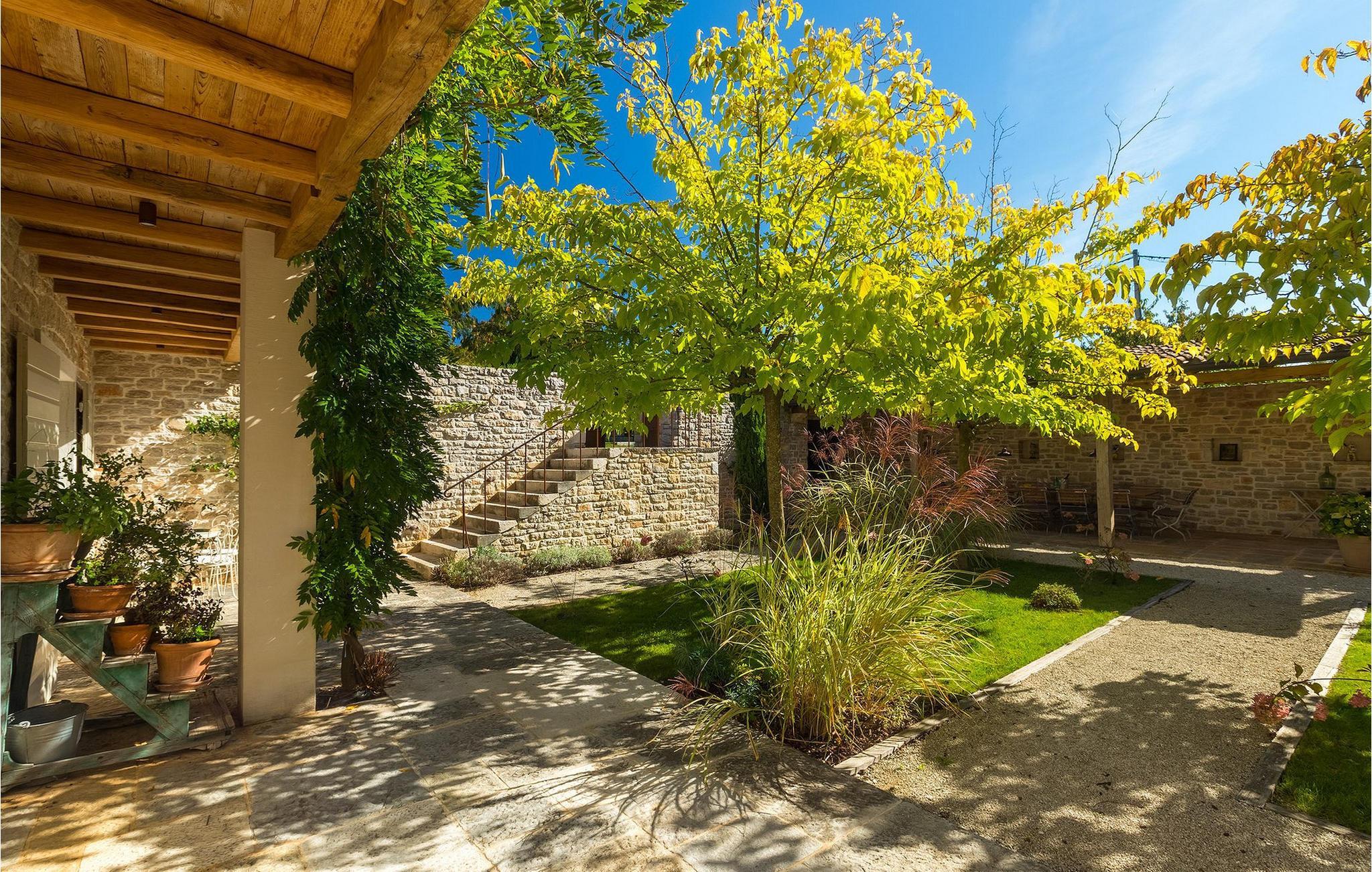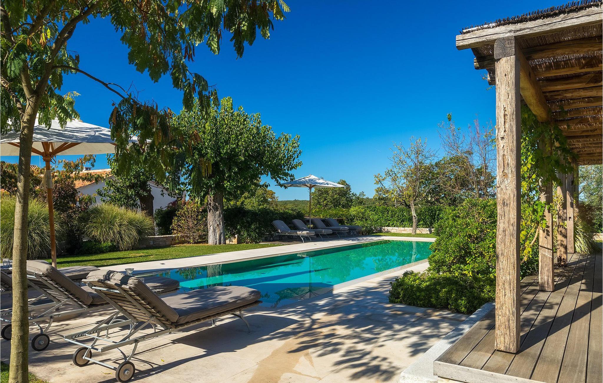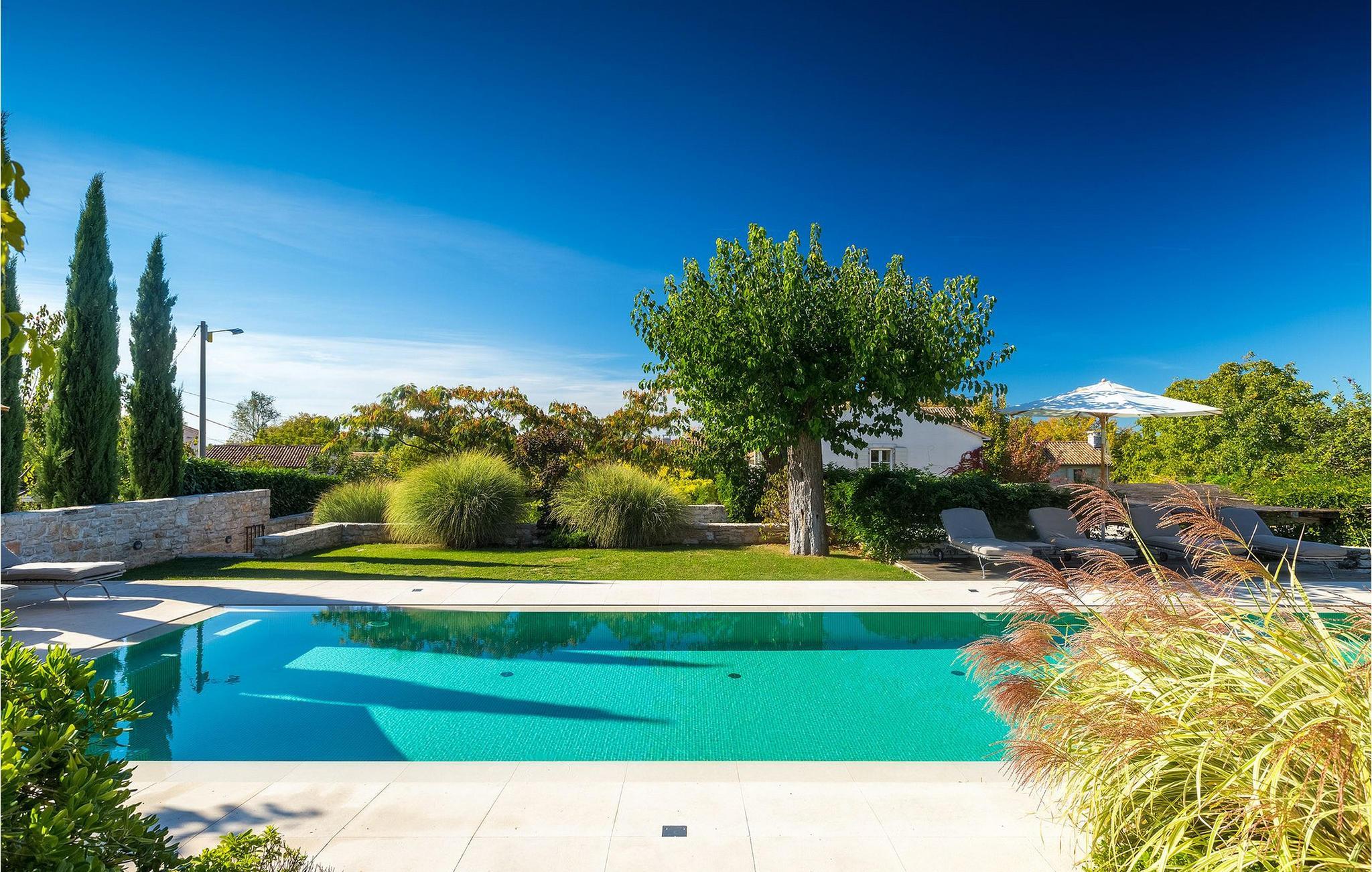 På varme sommerdager vil du nødig forlate bassenget og skyggen på den overbygde terrassen ved siden av. Den flotte hagen vedlikeholdes av en profesjonell gartner. Her kan du nyte måltidene dine ved det store uteserveringsbordet og nyte skjønnheten i den uberørte naturenI den lille landsbyen Prascari i Visnjan kommune ligger denne villaen i en eventyrlig landsby i hjertet av Istria. Landsbyen er omgitt av enger og skog, og består av noen få familiehus og feriehus. Den fullstendig restaurerte landsbyen, freden og roen på landsbygda, den uberørte naturen og den idylliske atmosfæren er bare en del av sjarmen ved dette stedet. Byen Visnjan ligger bare 5 kilometer fra Prascari. Helt siden venetianernes tid har Visnjan vært et velkjent handelssentrum der alle slags landbruksprodukter og redskaper ble solgt. Selv i dag arrangeres det et tradisjonelt marked den siste torsdagen i hver måned, noe som er en spesiell attraksjon for folk fra hele Istria. Fra den eldgamle terrassen på torget, som man kommer inn på gjennom en bue med motiv av en venetiansk løve, har man en fantastisk utsikt over havet. Visnjan er et spesielt interessant sted for astronomientusiaster på grunn av det internasjonalt anerkjente astronomiske observatoriet. Den populære turistbyen Porec ligger en kort kjøretur unna. Under oppholdet i villaene våre i nærheten av Porec må du ikke gå glipp av muligheten til å besøke Euphrasia-basilikaen. Den ble bygget på midten av 600-tallet og regnes som et av de vakreste kunstverkene i verden. Porec er en by rik på kulturarv, der den massive bymuren stopper tiden og ønsker besøkende velkommen.