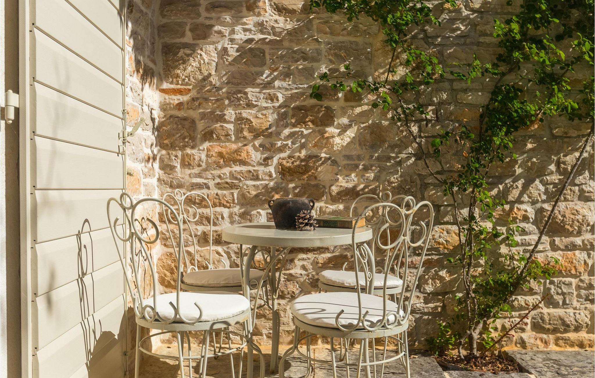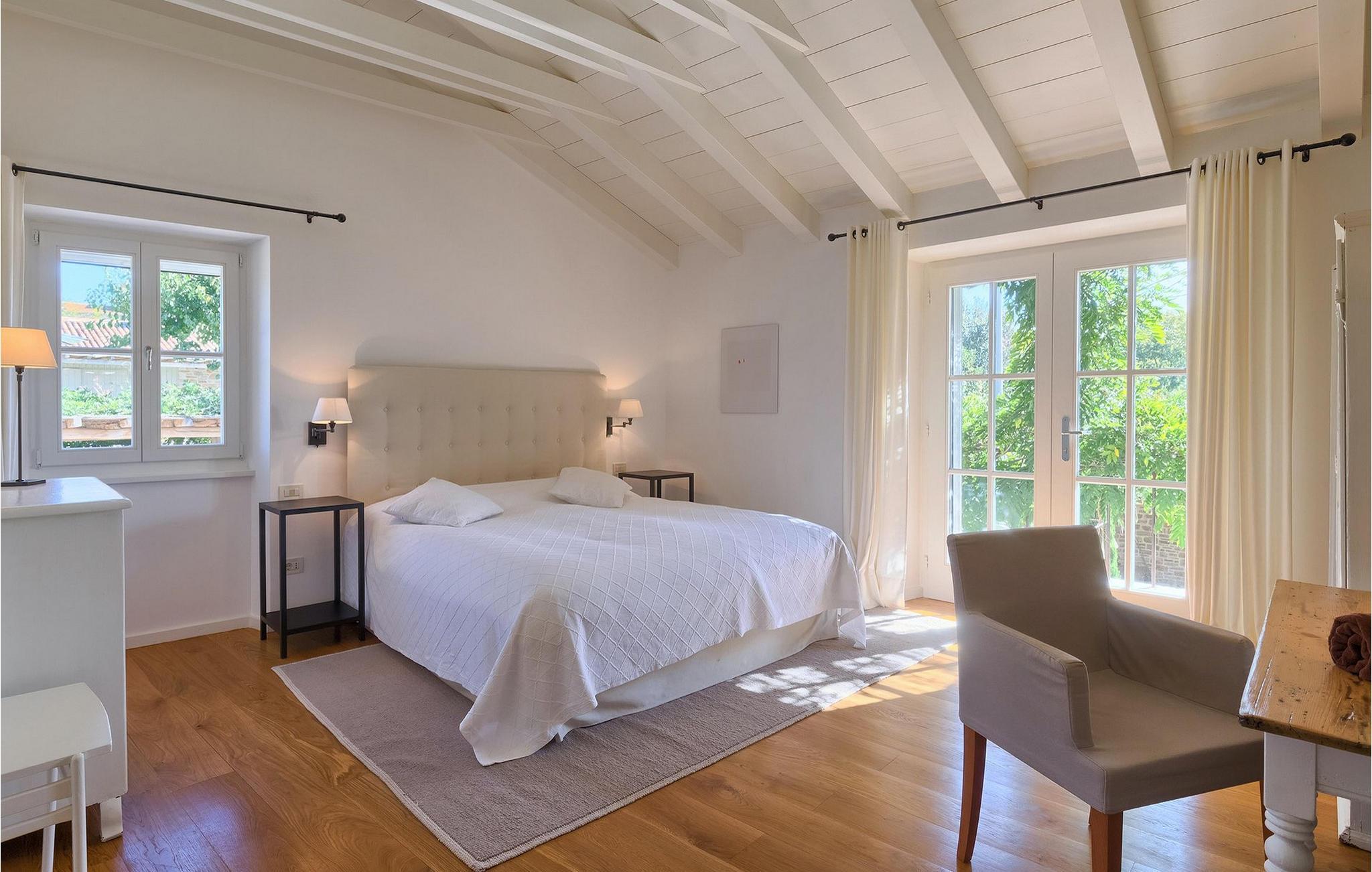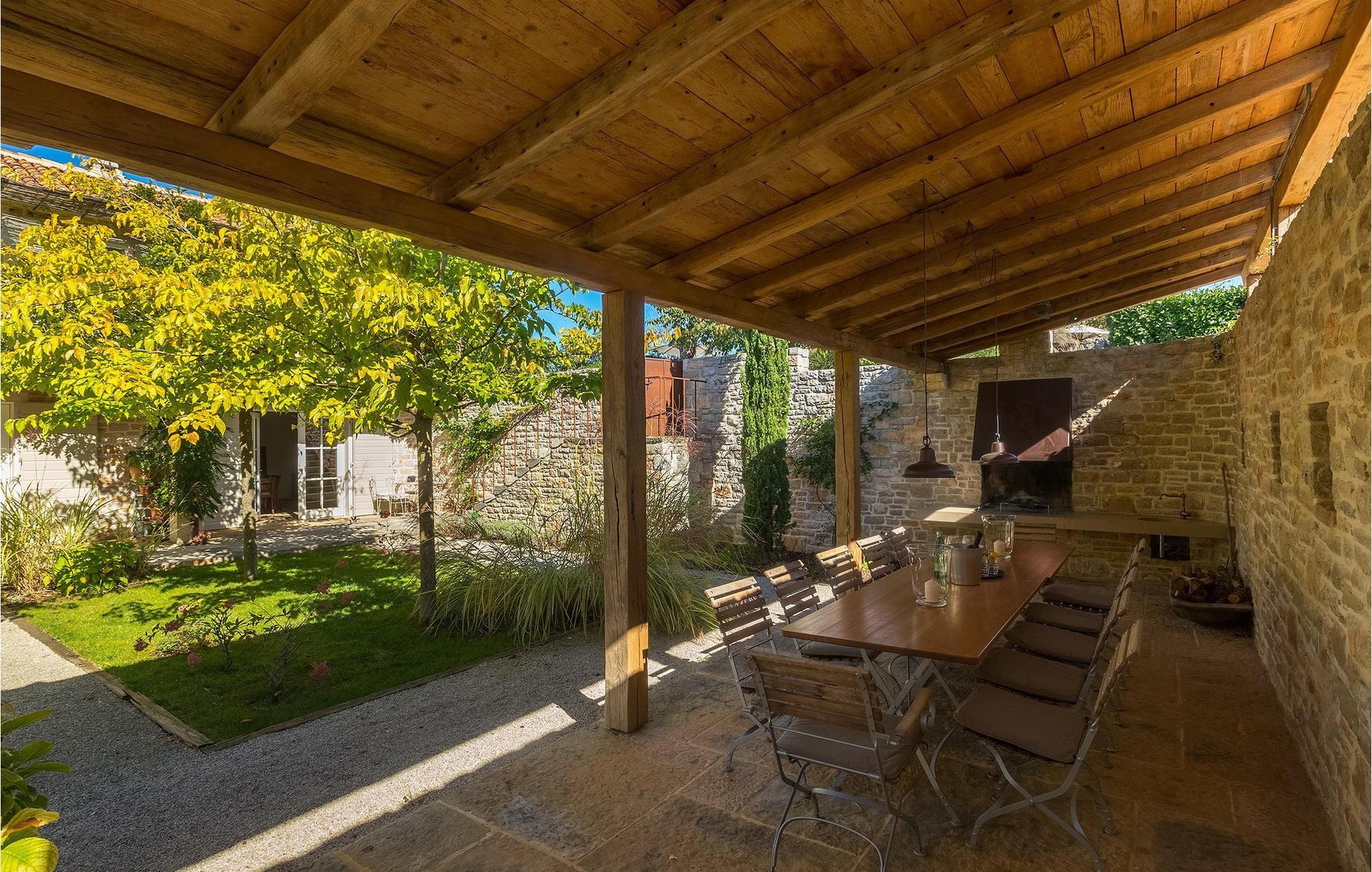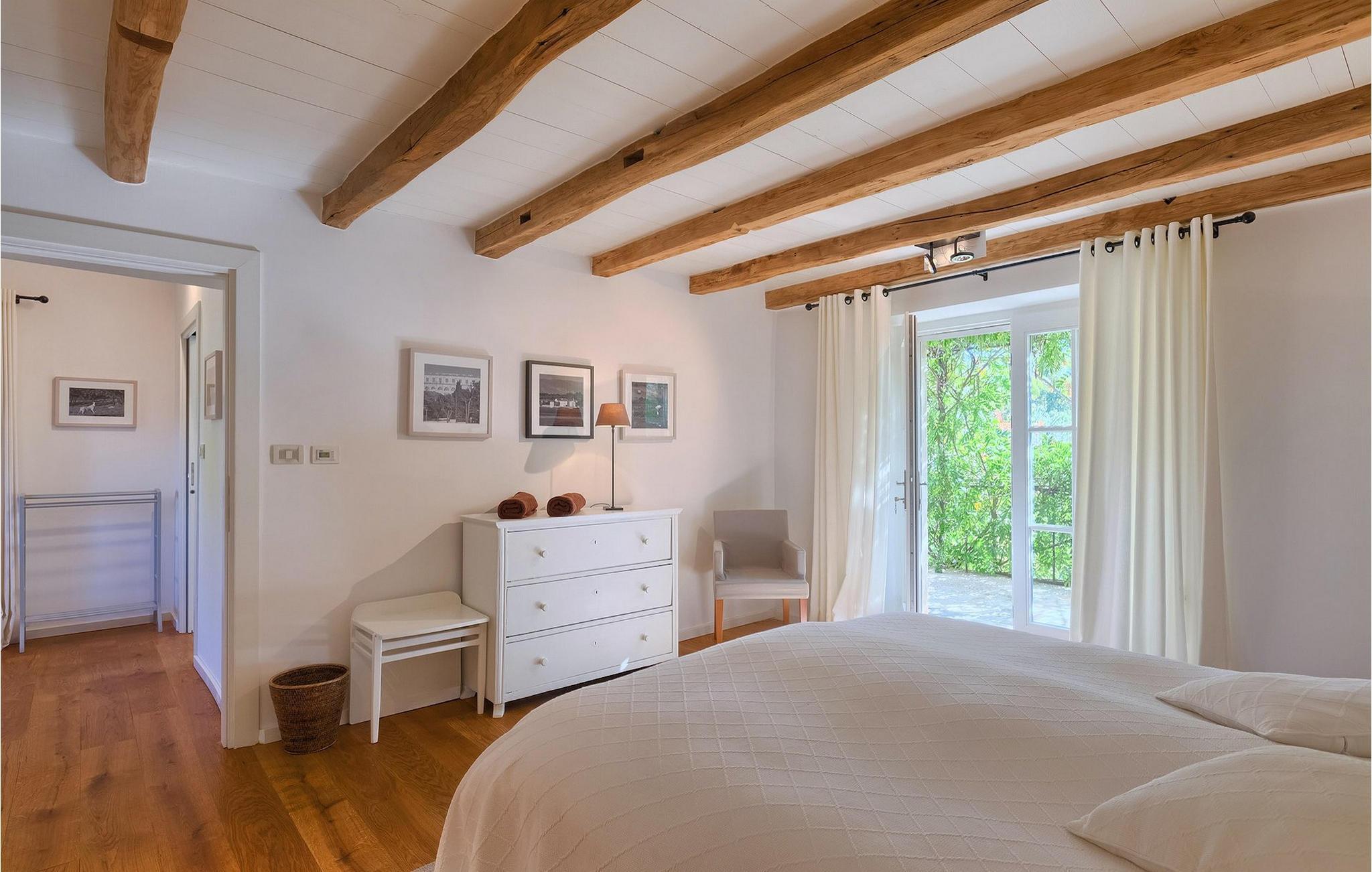 På varme sommerdager vil du nødig forlate bassenget og skyggen på den overbygde terrassen ved siden av. Den flotte hagen vedlikeholdes av en profesjonell gartner. Her kan du nyte måltidene dine ved det store uteserveringsbordet og nyte skjønnheten i den uberørte naturenI den lille landsbyen Prascari i Visnjan kommune ligger denne villaen i en eventyrlig landsby i hjertet av Istria. Landsbyen er omgitt av enger og skog, og består av noen få familiehus og feriehus. Den fullstendig restaurerte landsbyen, freden og roen på landsbygda, den uberørte naturen og den idylliske atmosfæren er bare en del av sjarmen ved dette stedet. Byen Visnjan ligger bare 5 kilometer fra Prascari. Helt siden venetianernes tid har Visnjan vært et velkjent handelssentrum der alle slags landbruksprodukter og redskaper ble solgt. Selv i dag arrangeres det et tradisjonelt marked den siste torsdagen i hver måned, noe som er en spesiell attraksjon for folk fra hele Istria. Fra den eldgamle terrassen på torget, som man kommer inn på gjennom en bue med motiv av en venetiansk løve, har man en fantastisk utsikt over havet. Visnjan er et spesielt interessant sted for astronomientusiaster på grunn av det internasjonalt anerkjente astronomiske observatoriet. Den populære turistbyen Porec ligger en kort kjøretur unna. Under oppholdet i villaene våre i nærheten av Porec må du ikke gå glipp av muligheten til å besøke Euphrasia-basilikaen. Den ble bygget på midten av 600-tallet og regnes som et av de vakreste kunstverkene i verden. Porec er en by rik på kulturarv, der den massive bymuren stopper tiden og ønsker besøkende velkommen.