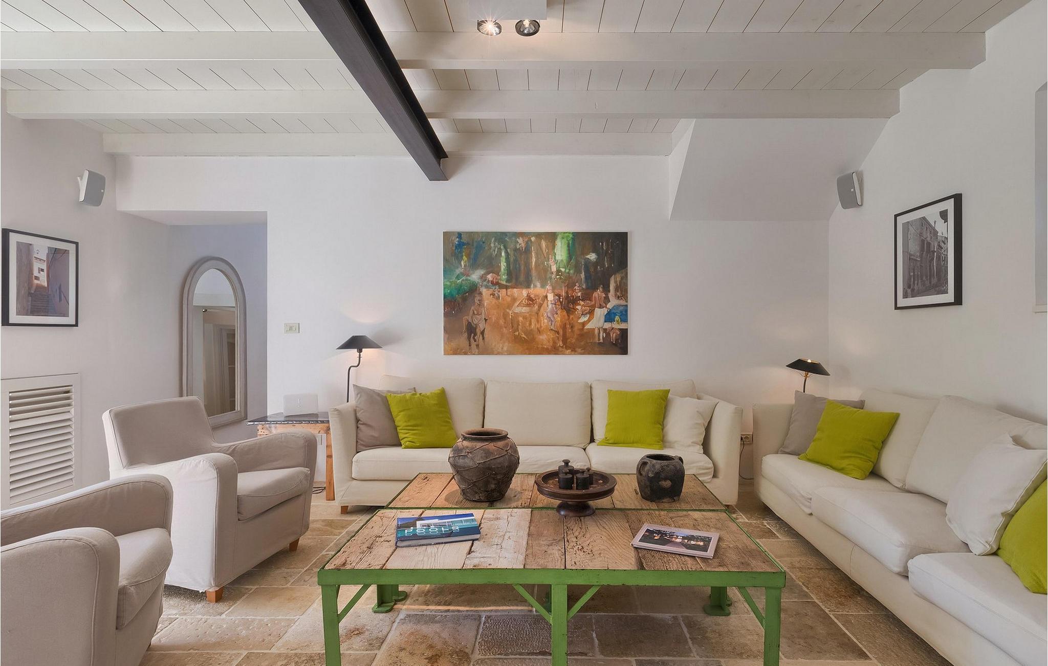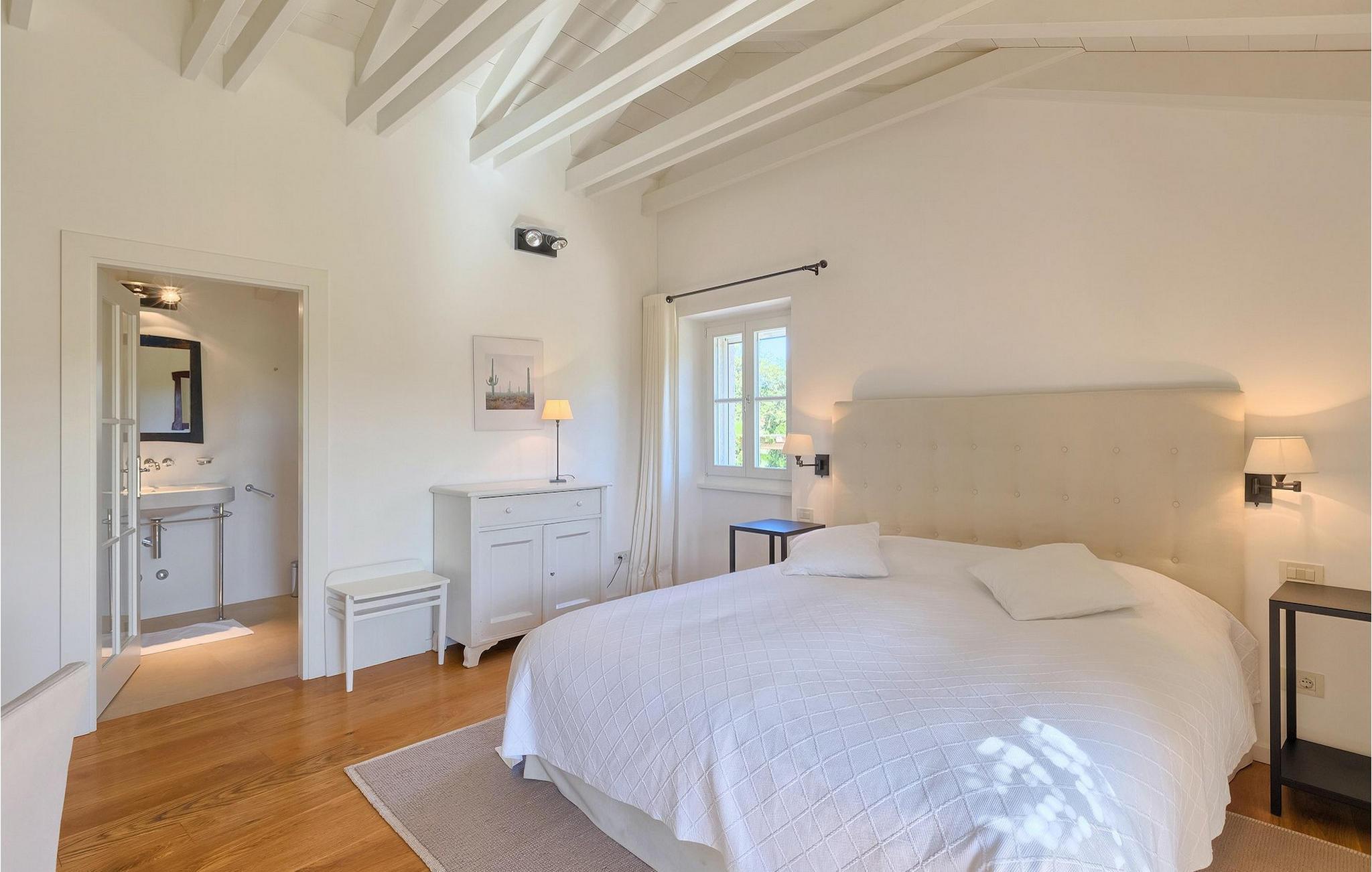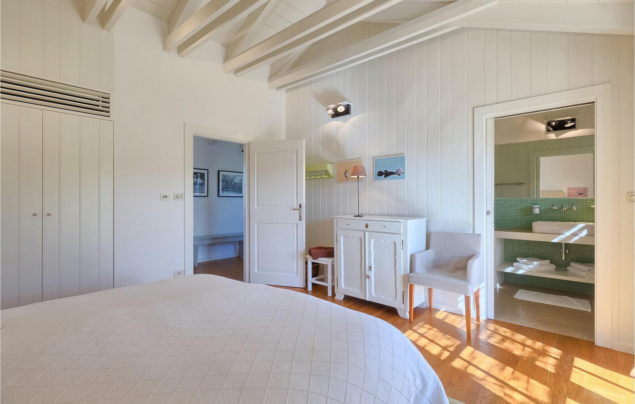 Villa Cipresso er smakfullt innredet med koselige farger, treelementer og sans for detaljer. Den luftige og lyse førsteetasjen domineres av en romslig, åpen planløsning med stue, spisestue og matlaging. Det er også et TV-rom, perfekt for felles kinokvelder. Kinorommet kan også enkelt brukes som et femte soverom, da det er et tilstøtende bad. I andre etasje finner du fire moderne og romslige soverom, to av dem med eget bad. De to andre soverommene deler bad.