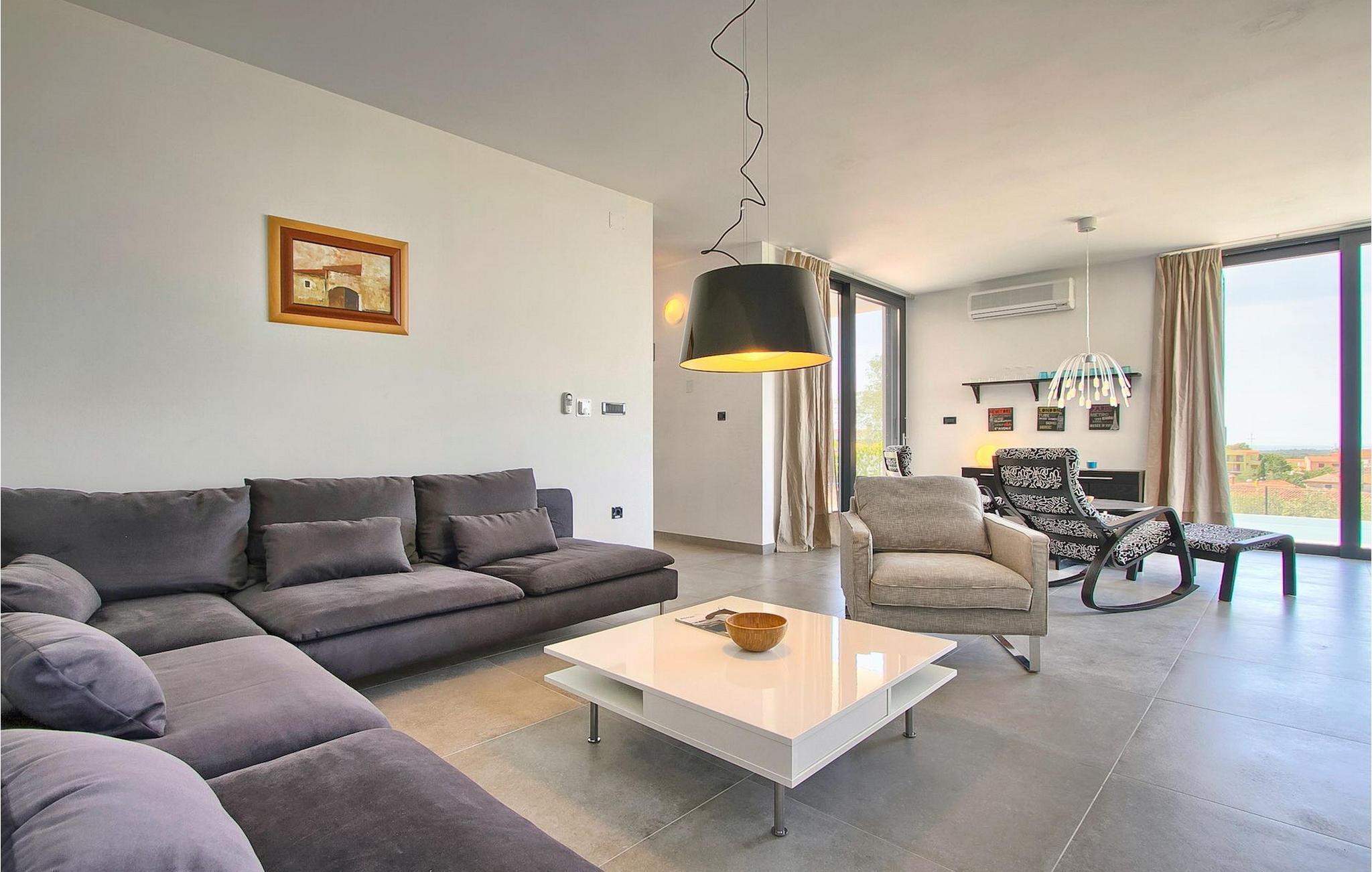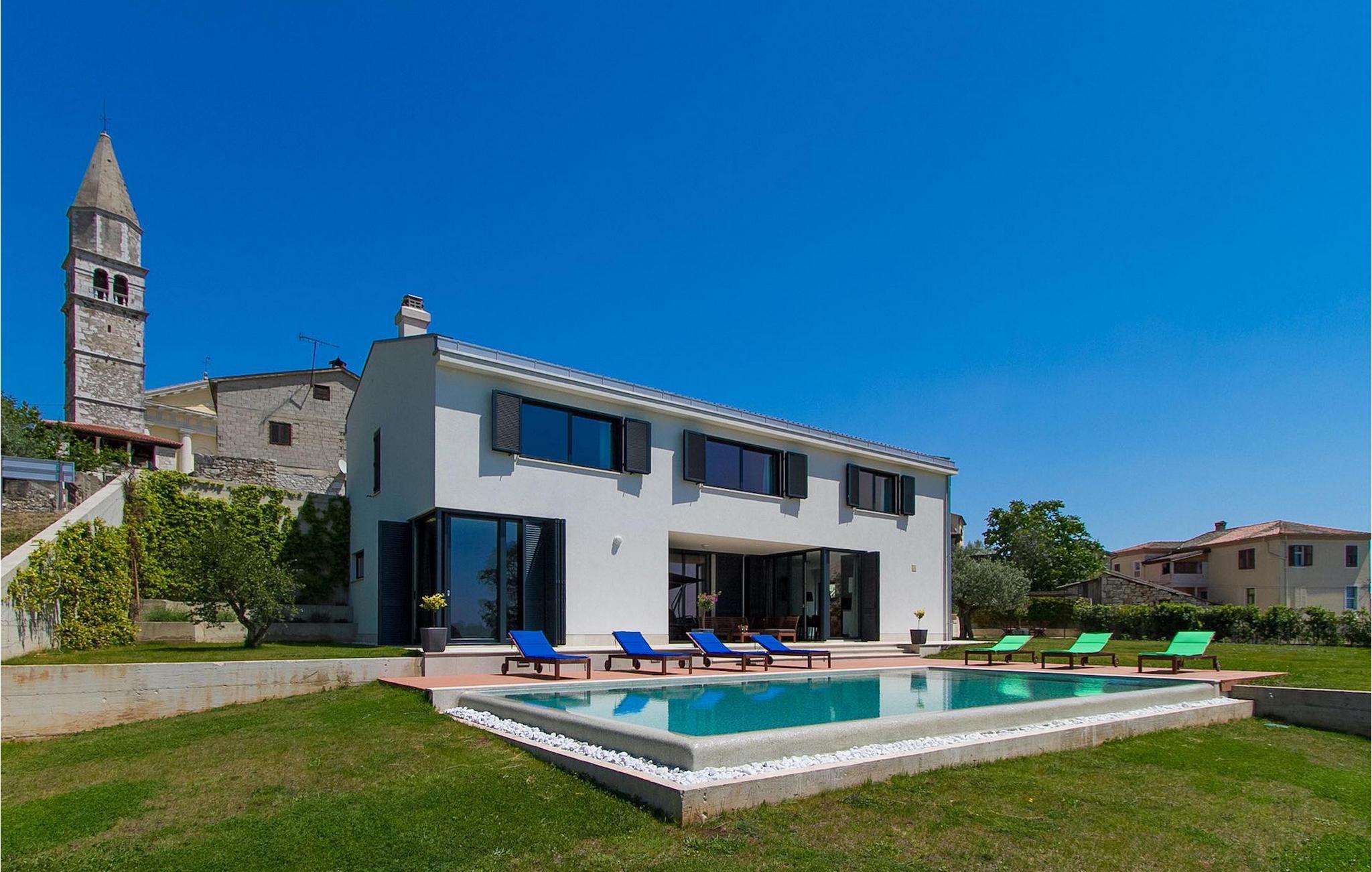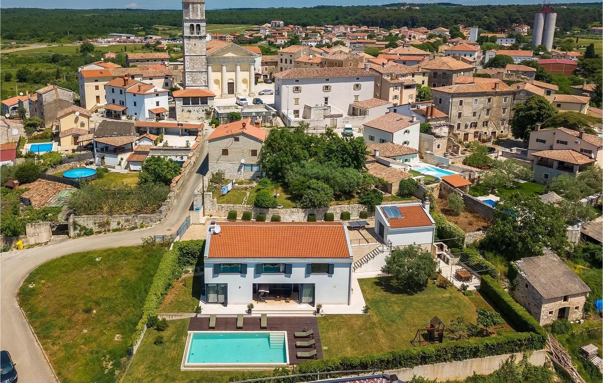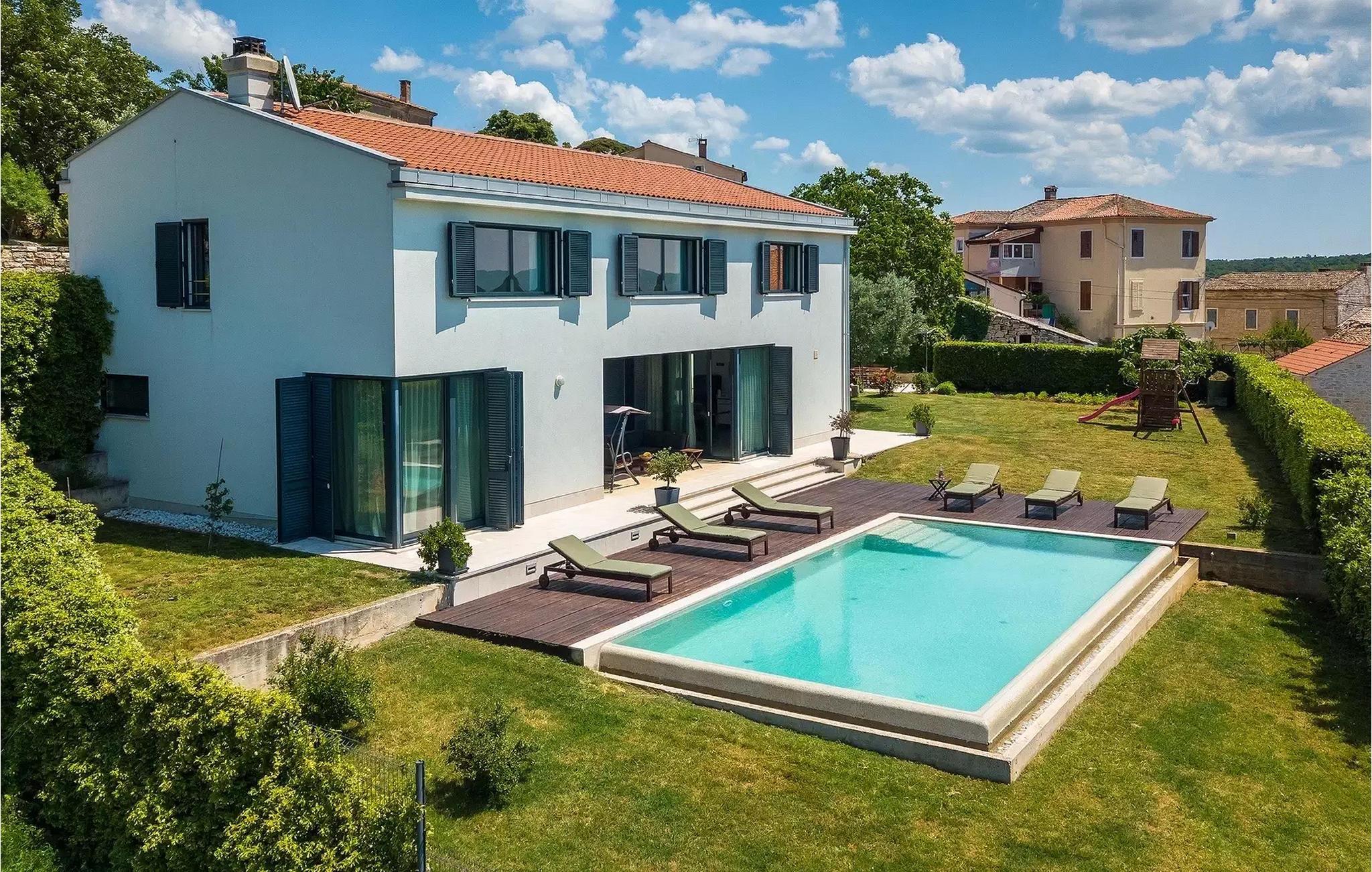 Villa Anna er en moderne og sjarmerende villa i Istria med plass til totalt 8 gjester, og er perfekt for en avslappende ferie i Kroatia. Villaen har flotte fasiliteter, både innendørs og utendørs. Du kan nyte den varme middelhavssolen på de komfortable solsengene ved bassenget og for eksempel lese en god bok eller løse kryssord. Etter solbadingen kan du forfriske deg med en dukkert i bassenget eller en kald drink. Den store fordelen med bassenget er selvfølgelig at barna holder seg opptatt i lang tid, og foreldrene kan slappe helt av. Tilbered deilige måltider på den elektriske grillen og nyt dem i den skyggefulle uteserveringen. Bare noen få skritt fra bassenget finner du et overbygd loungeområde og en huske, perfekt for å tilbringe avslappende sommerkvelder med familie og venner. Herfra kommer du inn i stuen, spisestuen og det fullt utstyrte kjøkkenet, som er gjennomstrømmet av naturlig lys takket være de store vinduene. I hele første etasje og underetasjen er gjestene omgitt av minimalistisk design og nyanser av grått, hvitt og brunt. Villaen består av totalt 3 soverom og 2 bad, som alle ligger i første etasje. 2 av soverommene har dobbeltsenger, og ett av dem har til og med eget bad med badekar. I denne etasjen finner du også et soverom med 2 enkeltsenger, et felles bad med dusj og en sovesofa på galleriet med plass til 2 personer. Villaen har klimaanlegg, Wi-Fi, og barna har også bordtennis og bordfotball for moro skyld. Hvis du er ute etter avslapning på ferien, men likevel ønsker å bo i en moderne og stilig villa i Istria, er Villa Anna akkurat det rette valget.Visnjan er en liten istrisk by på toppen av en ås. Den er omgitt av skog og ligger 10 kilometer nordøst for Porec. Den gamle terrassen på torget, som man kommer til gjennom en venetiansk bue, gir en fantastisk utsikt over havet. Helt siden venetianernes tid har Vinjan vært et velkjent handelssentrum der det ble solgt alle slags landbruksprodukter og redskaper. Selv i dag arrangeres det et tradisjonelt marked den siste torsdagen i hver måned, noe som er en spesiell attraksjon for folk fra hele Istria.