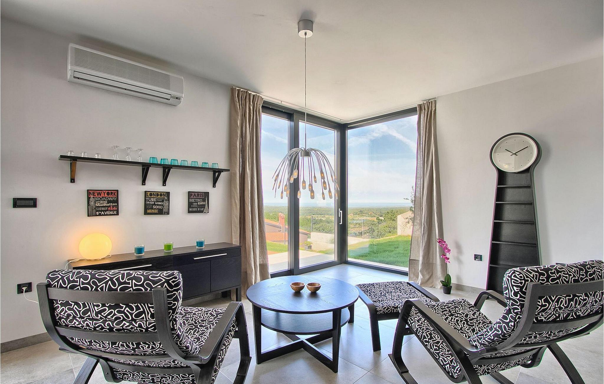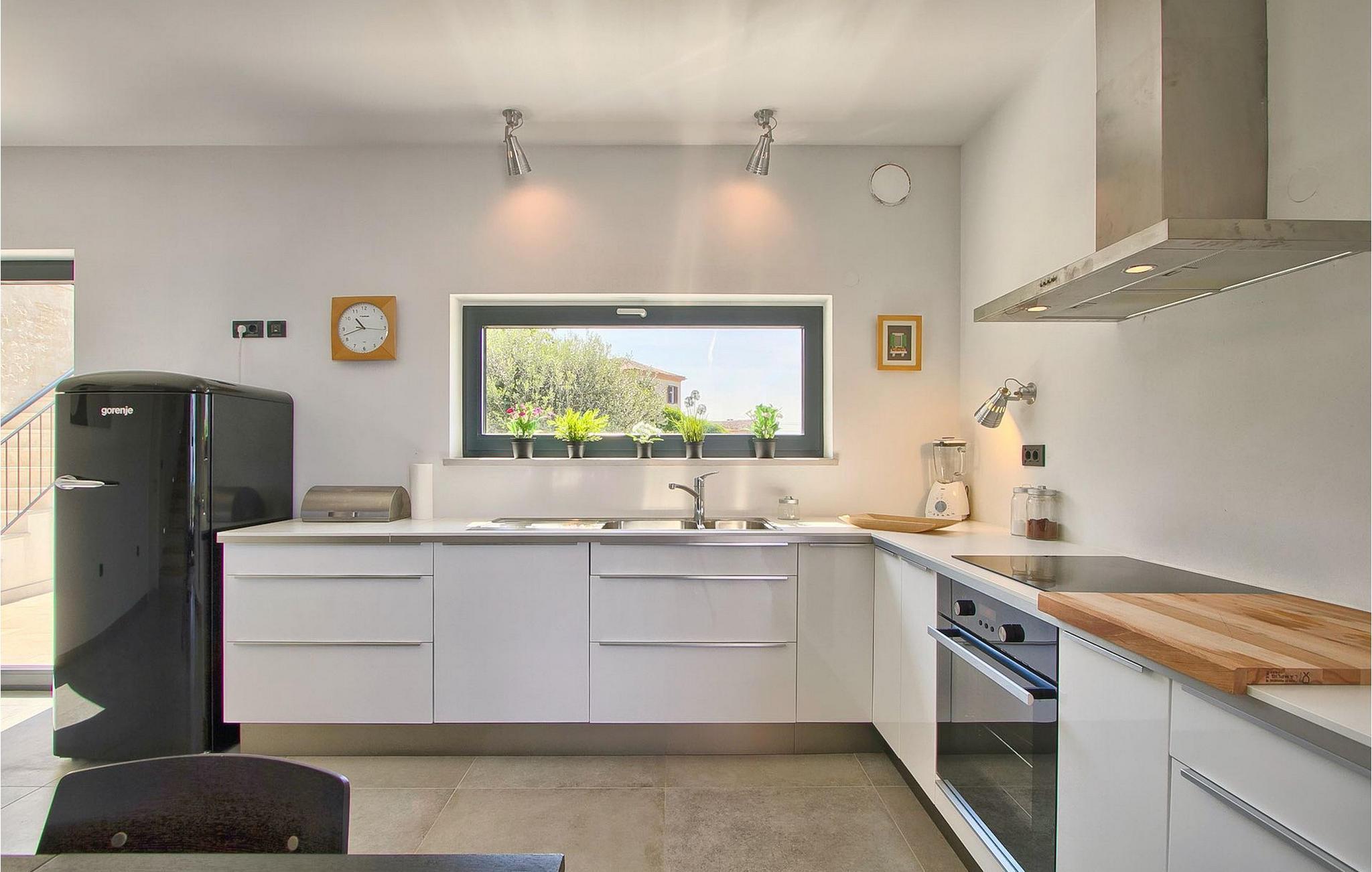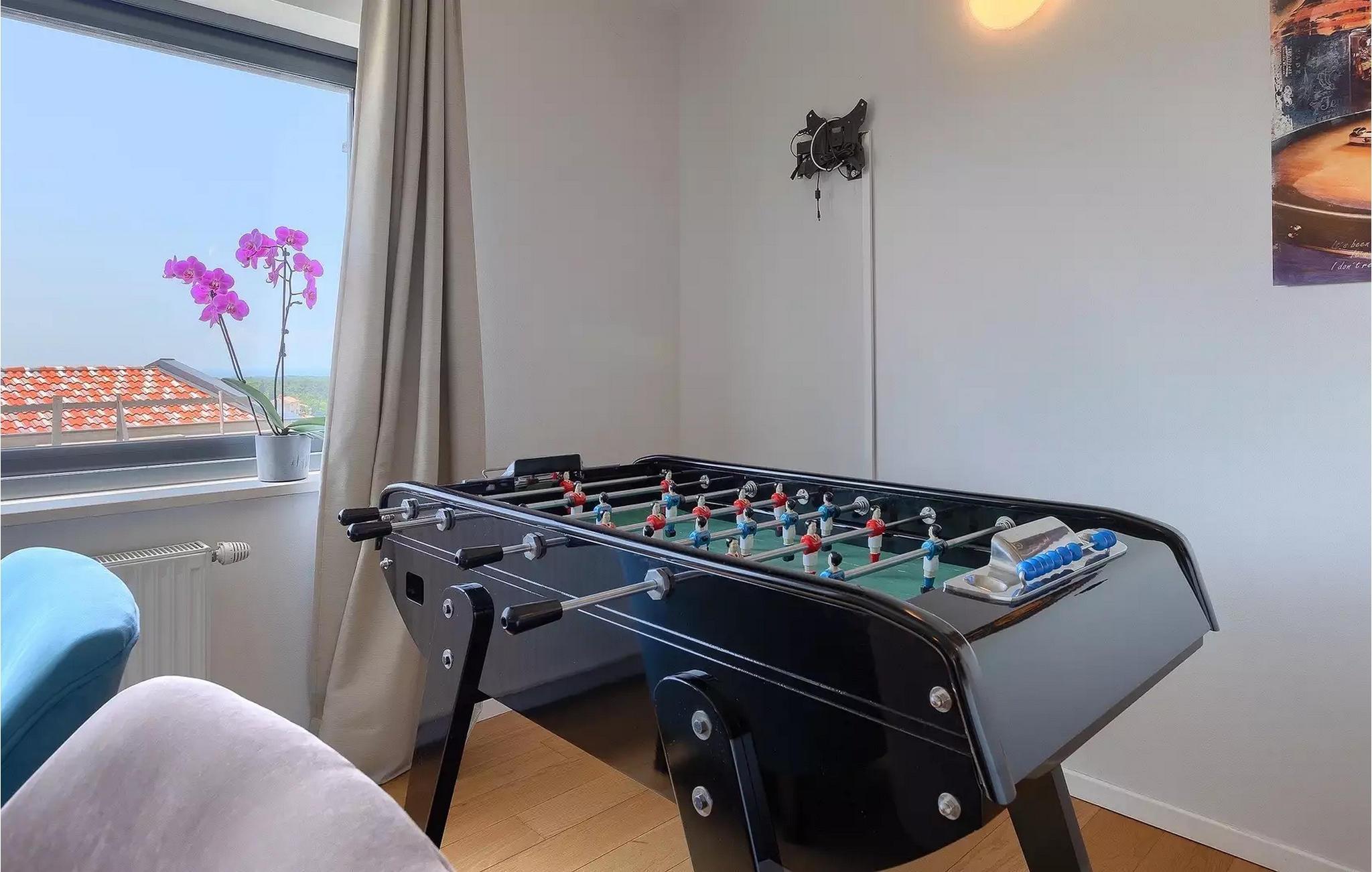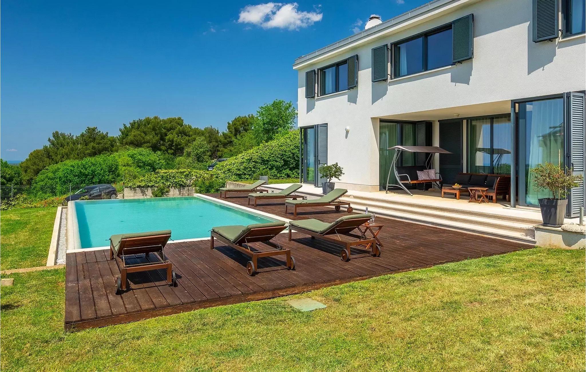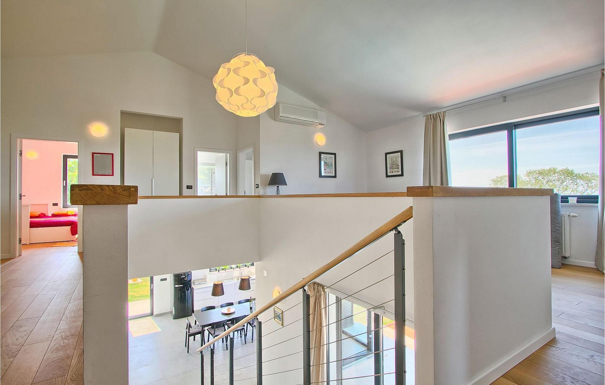 Villa Anna er en moderne og sjarmerende villa i Istria med plass til totalt 8 gjester, og er perfekt for en avslappende ferie i Kroatia. Villaen har flotte fasiliteter, både innendørs og utendørs. Du kan nyte den varme middelhavssolen på de komfortable solsengene ved bassenget og for eksempel lese en god bok eller løse kryssord. Etter solbadingen kan du forfriske deg med en dukkert i bassenget eller en kald drink. Den store fordelen med bassenget er selvfølgelig at barna holder seg opptatt i lang tid, og foreldrene kan slappe helt av. Tilbered deilige måltider på den elektriske grillen og nyt dem i den skyggefulle uteserveringen. Bare noen få skritt fra bassenget finner du et overbygd loungeområde og en huske, perfekt for å tilbringe avslappende sommerkvelder med familie og venner. Herfra kommer du inn i stuen, spisestuen og det fullt utstyrte kjøkkenet, som er gjennomstrømmet av naturlig lys takket være de store vinduene. I hele første etasje og underetasjen er gjestene omgitt av minimalistisk design og nyanser av grått, hvitt og brunt. Villaen består av totalt 3 soverom og 2 bad, som alle ligger i første etasje. 2 av soverommene har dobbeltsenger, og ett av dem har til og med eget bad med badekar. I denne etasjen finner du også et soverom med 2 enkeltsenger, et felles bad med dusj og en sovesofa på galleriet med plass til 2 personer. Villaen har klimaanlegg, Wi-Fi, og barna har også bordtennis og bordfotball for moro skyld. Hvis du er ute etter avslapning på ferien, men likevel ønsker å bo i en moderne og stilig villa i Istria, er Villa Anna akkurat det rette valget.Visnjan er en liten istrisk by på toppen av en ås. Den er omgitt av skog og ligger 10 kilometer nordøst for Porec. Den gamle terrassen på torget, som man kommer til gjennom en venetiansk bue, gir en fantastisk utsikt over havet. Helt siden venetianernes tid har Vinjan vært et velkjent handelssentrum der det ble solgt alle slags landbruksprodukter og redskaper. Selv i dag arrangeres det et tradisjonelt marked den siste torsdagen i hver måned, noe som er en spesiell attraksjon for folk fra hele Istria.