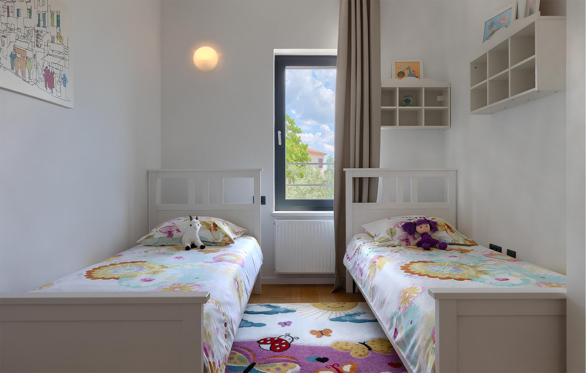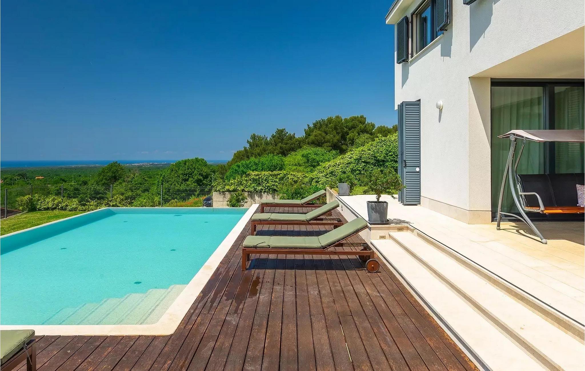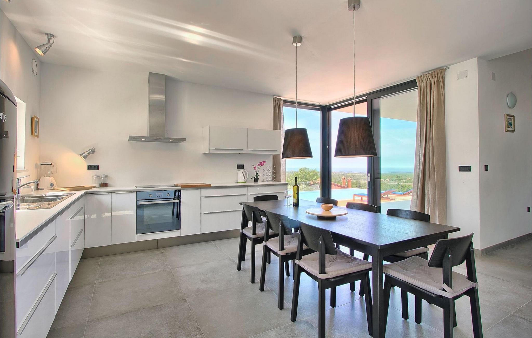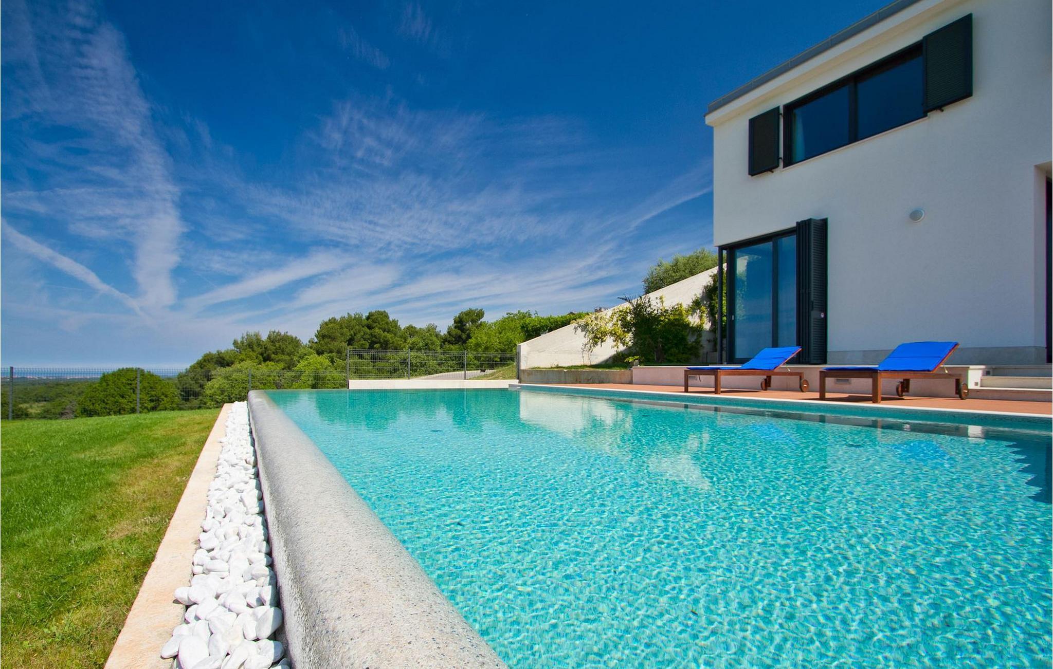 Villa Anna er en moderne og sjarmerende villa i Istria med plass til totalt 8 gjester, og er perfekt for en avslappende ferie i Kroatia. Villaen har flotte fasiliteter, både innendørs og utendørs. Du kan nyte den varme middelhavssolen på de komfortable solsengene ved bassenget og for eksempel lese en god bok eller løse kryssord. Etter solbadingen kan du forfriske deg med en dukkert i bassenget eller en kald drink. Den store fordelen med bassenget er selvfølgelig at barna holder seg opptatt i lang tid, og foreldrene kan slappe helt av. Tilbered deilige måltider på den elektriske grillen og nyt dem i den skyggefulle uteserveringen. Bare noen få skritt fra bassenget finner du et overbygd loungeområde og en huske, perfekt for å tilbringe avslappende sommerkvelder med familie og venner. Herfra kommer du inn i stuen, spisestuen og det fullt utstyrte kjøkkenet, som er gjennomstrømmet av naturlig lys takket være de store vinduene. I hele første etasje og underetasjen er gjestene omgitt av minimalistisk design og nyanser av grått, hvitt og brunt. Villaen består av totalt 3 soverom og 2 bad, som alle ligger i første etasje. 2 av soverommene har dobbeltsenger, og ett av dem har til og med eget bad med badekar. I denne etasjen finner du også et soverom med 2 enkeltsenger, et felles bad med dusj og en sovesofa på galleriet med plass til 2 personer. Villaen har klimaanlegg, Wi-Fi, og barna har også bordtennis og bordfotball for moro skyld. Hvis du er ute etter avslapning på ferien, men likevel ønsker å bo i en moderne og stilig villa i Istria, er Villa Anna akkurat det rette valget.Visnjan er en liten istrisk by på toppen av en ås. Den er omgitt av skog og ligger 10 kilometer nordøst for Porec. Den gamle terrassen på torget, som man kommer til gjennom en venetiansk bue, gir en fantastisk utsikt over havet. Helt siden venetianernes tid har Vinjan vært et velkjent handelssentrum der det ble solgt alle slags landbruksprodukter og redskaper. Selv i dag arrangeres det et tradisjonelt marked den siste torsdagen i hver måned, noe som er en spesiell attraksjon for folk fra hele Istria.