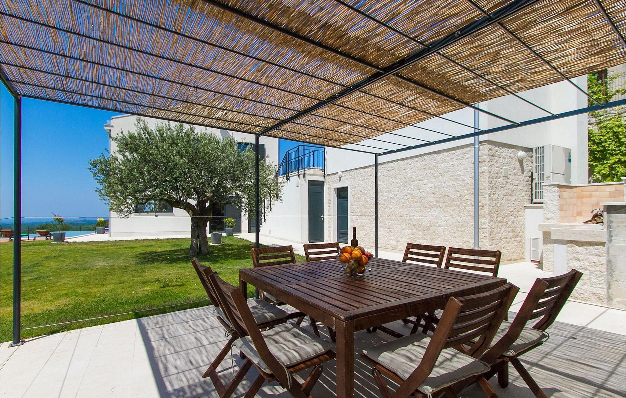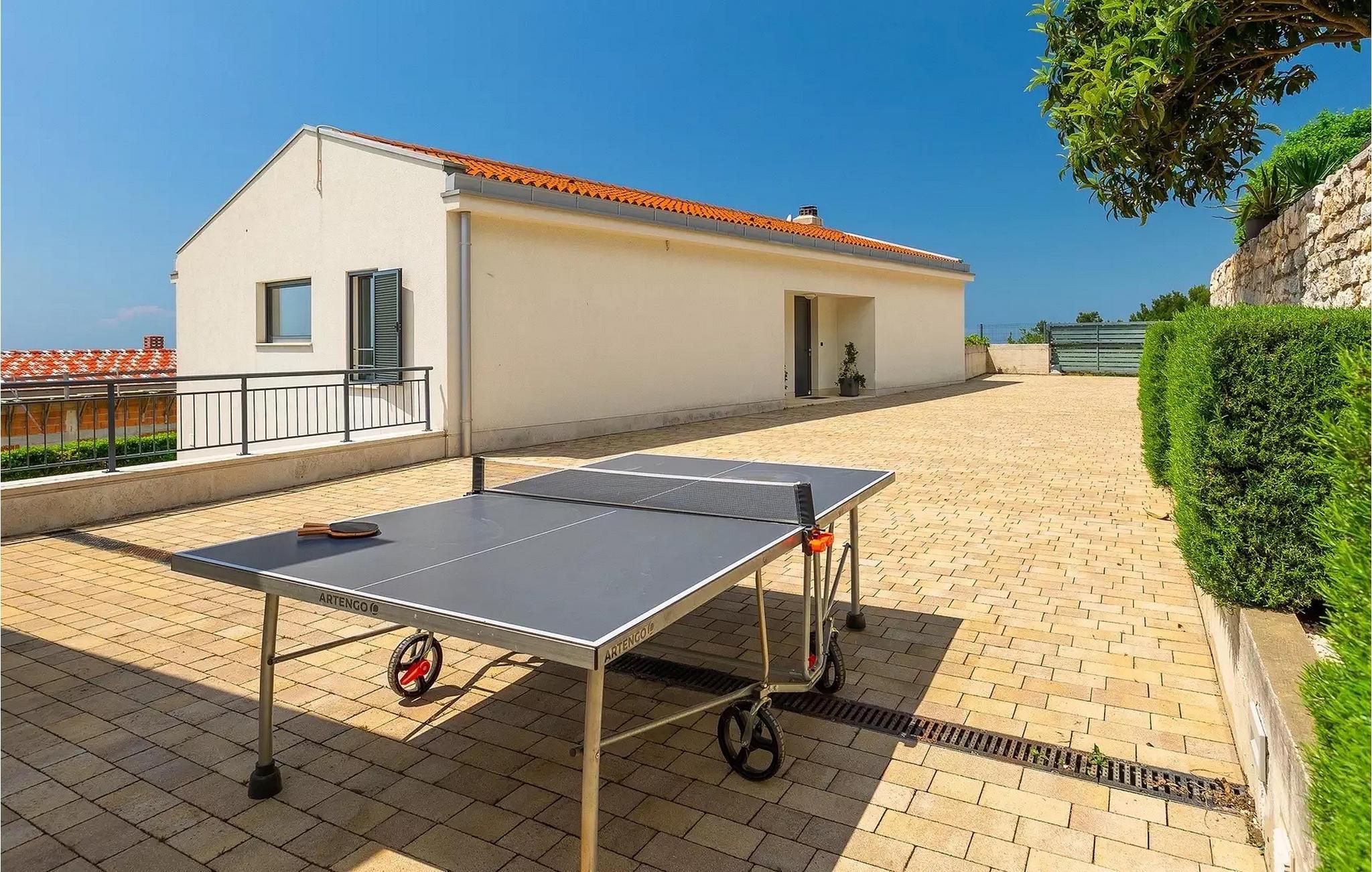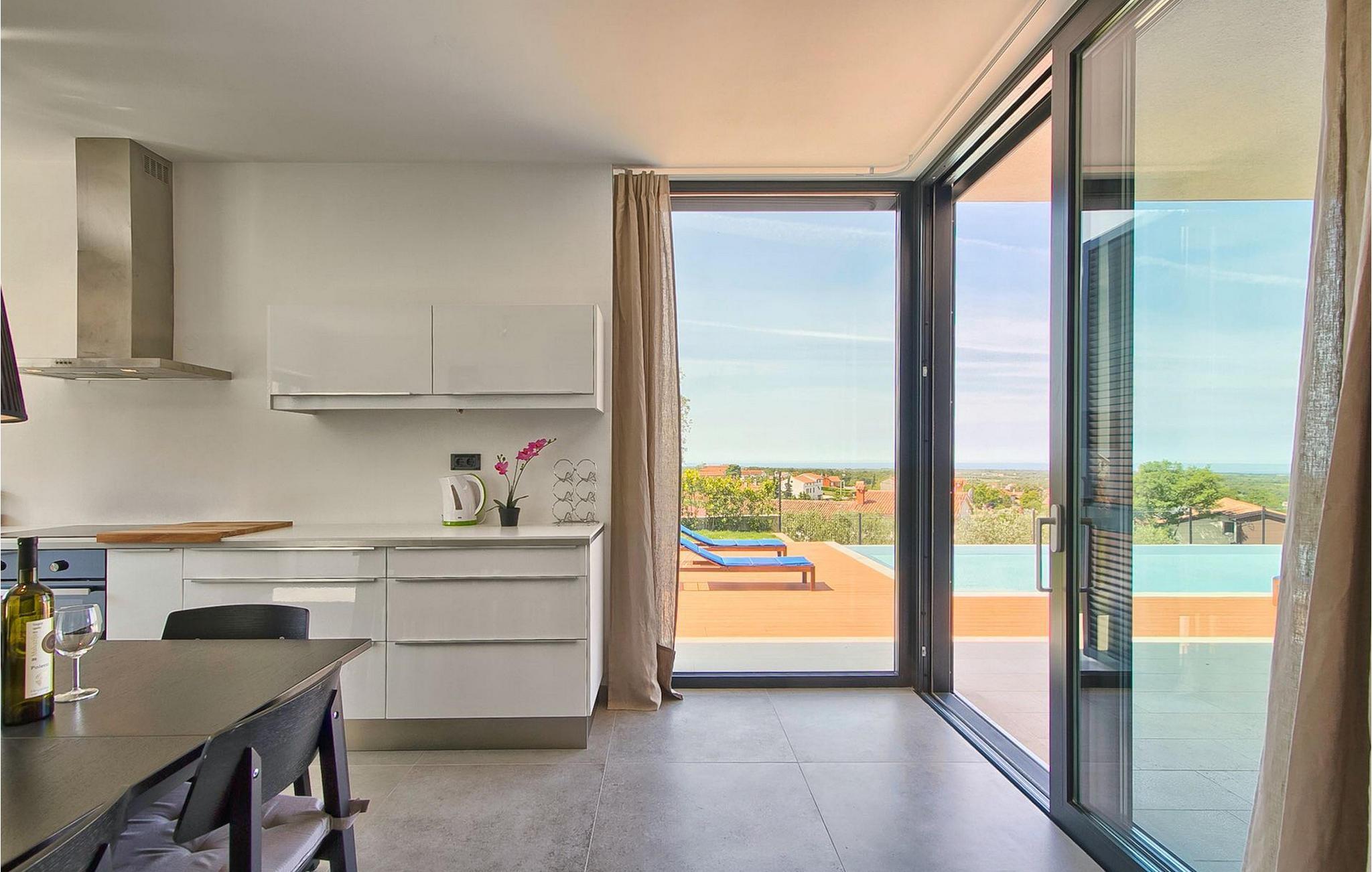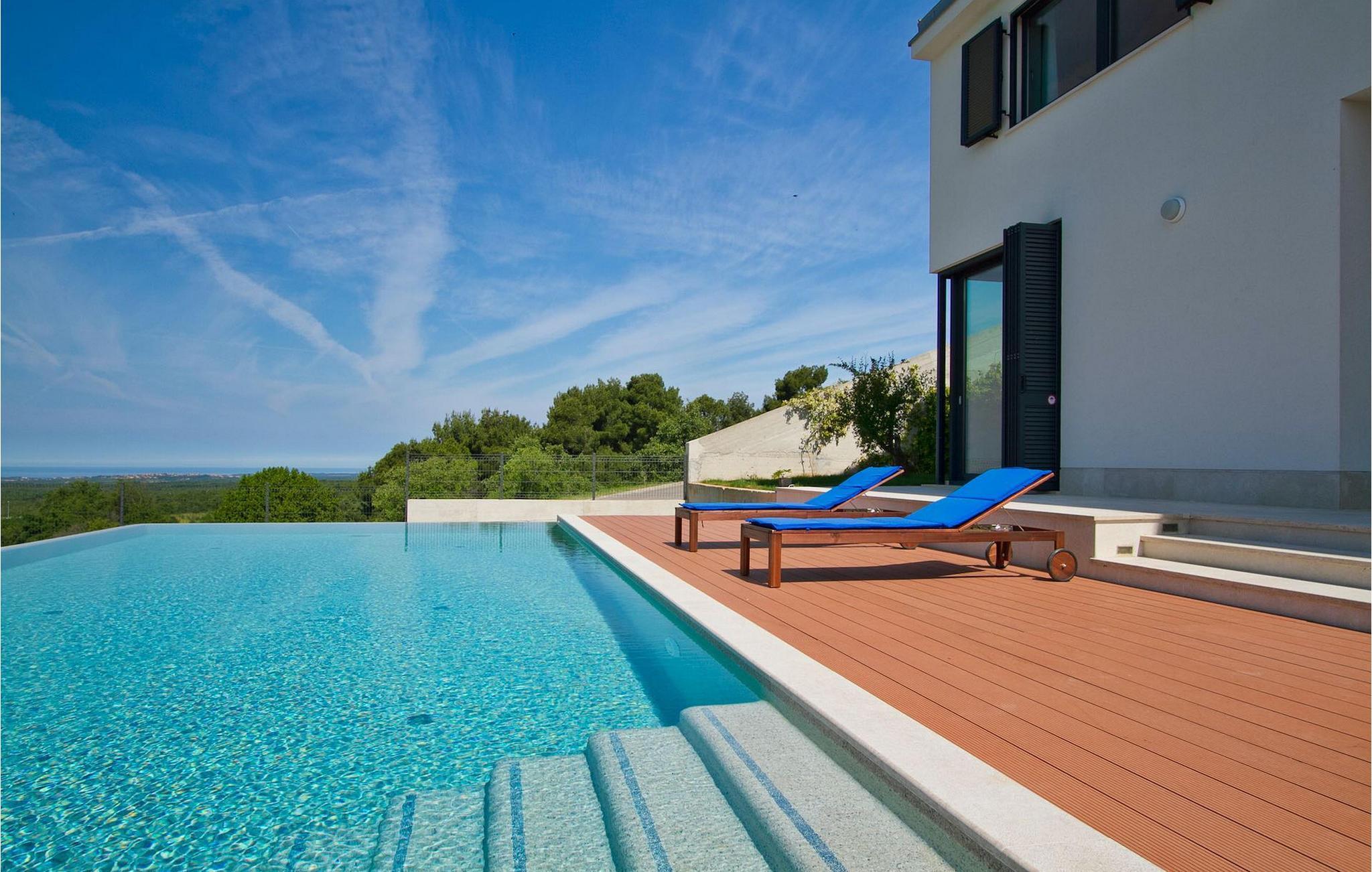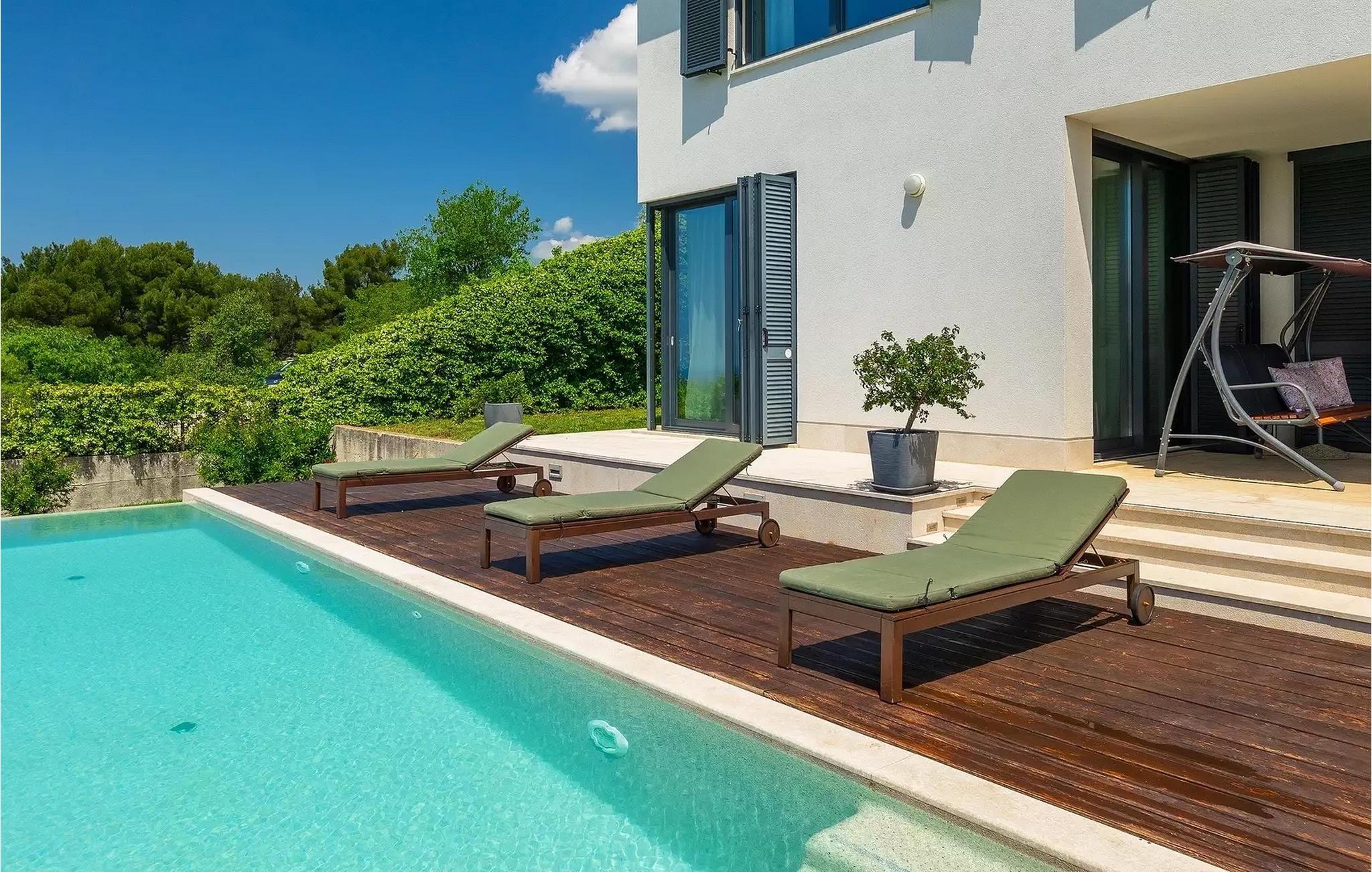 Villa Anna er en moderne og sjarmerende villa i Istria med plass til totalt 8 gjester, og er perfekt for en avslappende ferie i Kroatia. Villaen har flotte fasiliteter, både innendørs og utendørs. Du kan nyte den varme middelhavssolen på de komfortable solsengene ved bassenget og for eksempel lese en god bok eller løse kryssord. Etter solbadingen kan du forfriske deg med en dukkert i bassenget eller en kald drink. Den store fordelen med bassenget er selvfølgelig at barna holder seg opptatt i lang tid, og foreldrene kan slappe helt av. Tilbered deilige måltider på den elektriske grillen og nyt dem i den skyggefulle uteserveringen. Bare noen få skritt fra bassenget finner du et overbygd loungeområde og en huske, perfekt for å tilbringe avslappende sommerkvelder med familie og venner. Herfra kommer du inn i stuen, spisestuen og det fullt utstyrte kjøkkenet, som er gjennomstrømmet av naturlig lys takket være de store vinduene. I hele første etasje og underetasjen er gjestene omgitt av minimalistisk design og nyanser av grått, hvitt og brunt. Villaen består av totalt 3 soverom og 2 bad, som alle ligger i første etasje. 2 av soverommene har dobbeltsenger, og ett av dem har til og med eget bad med badekar. I denne etasjen finner du også et soverom med 2 enkeltsenger, et felles bad med dusj og en sovesofa på galleriet med plass til 2 personer. Villaen har klimaanlegg, Wi-Fi, og barna har også bordtennis og bordfotball for moro skyld. Hvis du er ute etter avslapning på ferien, men likevel ønsker å bo i en moderne og stilig villa i Istria, er Villa Anna akkurat det rette valget.Visnjan er en liten istrisk by på toppen av en ås. Den er omgitt av skog og ligger 10 kilometer nordøst for Porec. Den gamle terrassen på torget, som man kommer til gjennom en venetiansk bue, gir en fantastisk utsikt over havet. Helt siden venetianernes tid har Vinjan vært et velkjent handelssentrum der det ble solgt alle slags landbruksprodukter og redskaper. Selv i dag arrangeres det et tradisjonelt marked den siste torsdagen i hver måned, noe som er en spesiell attraksjon for folk fra hele Istria.