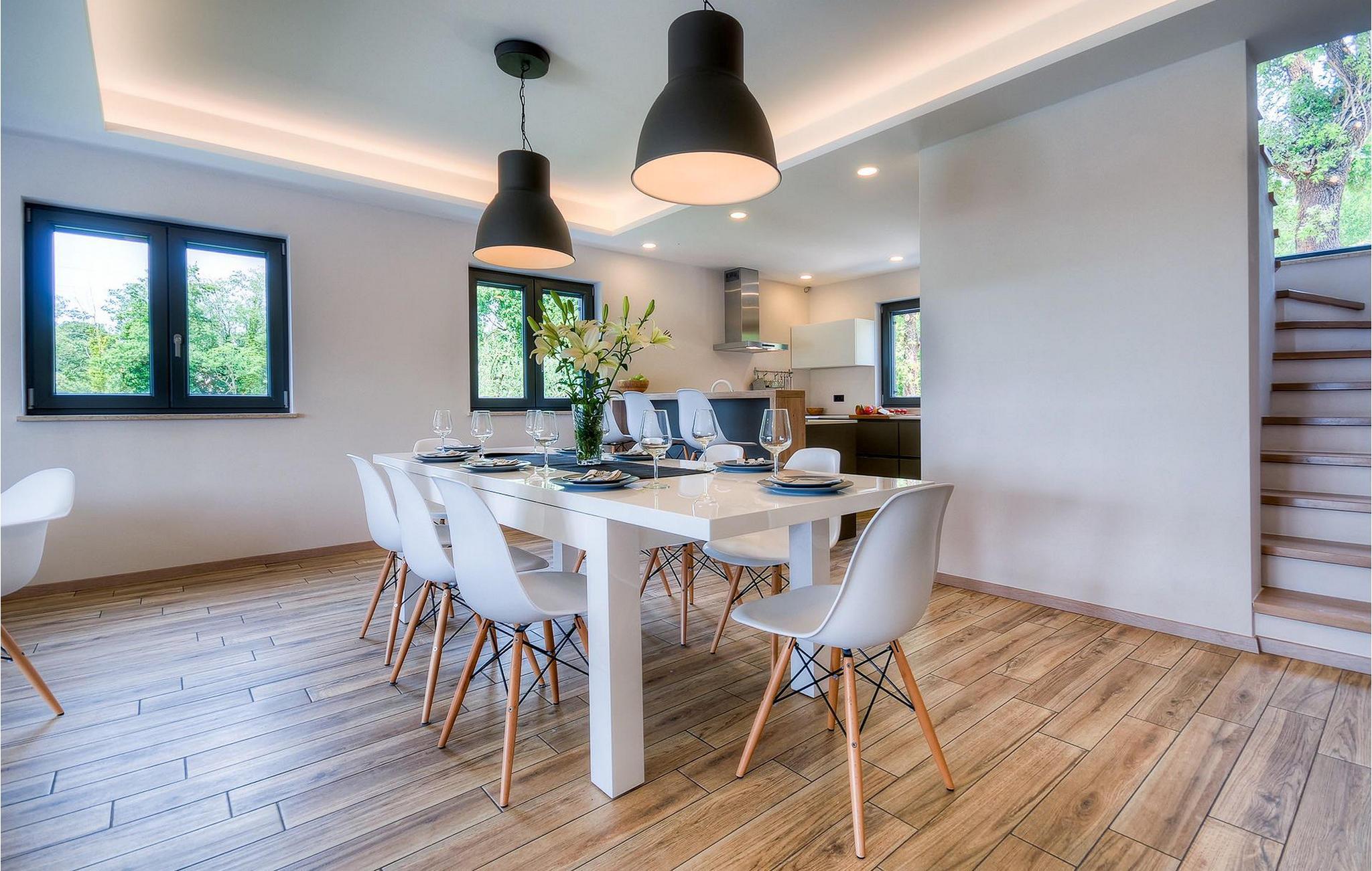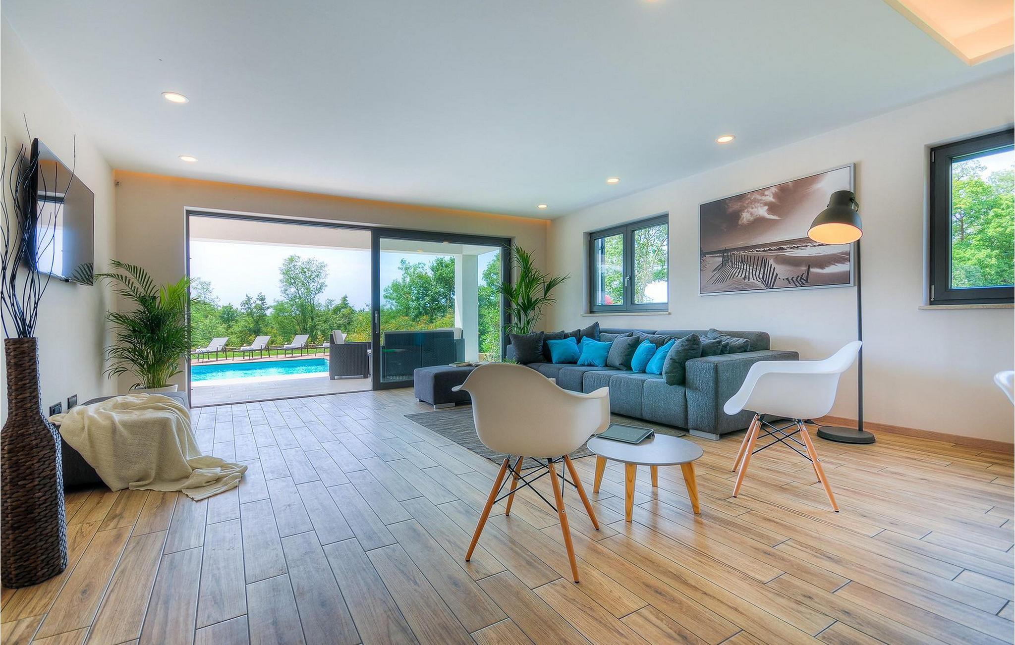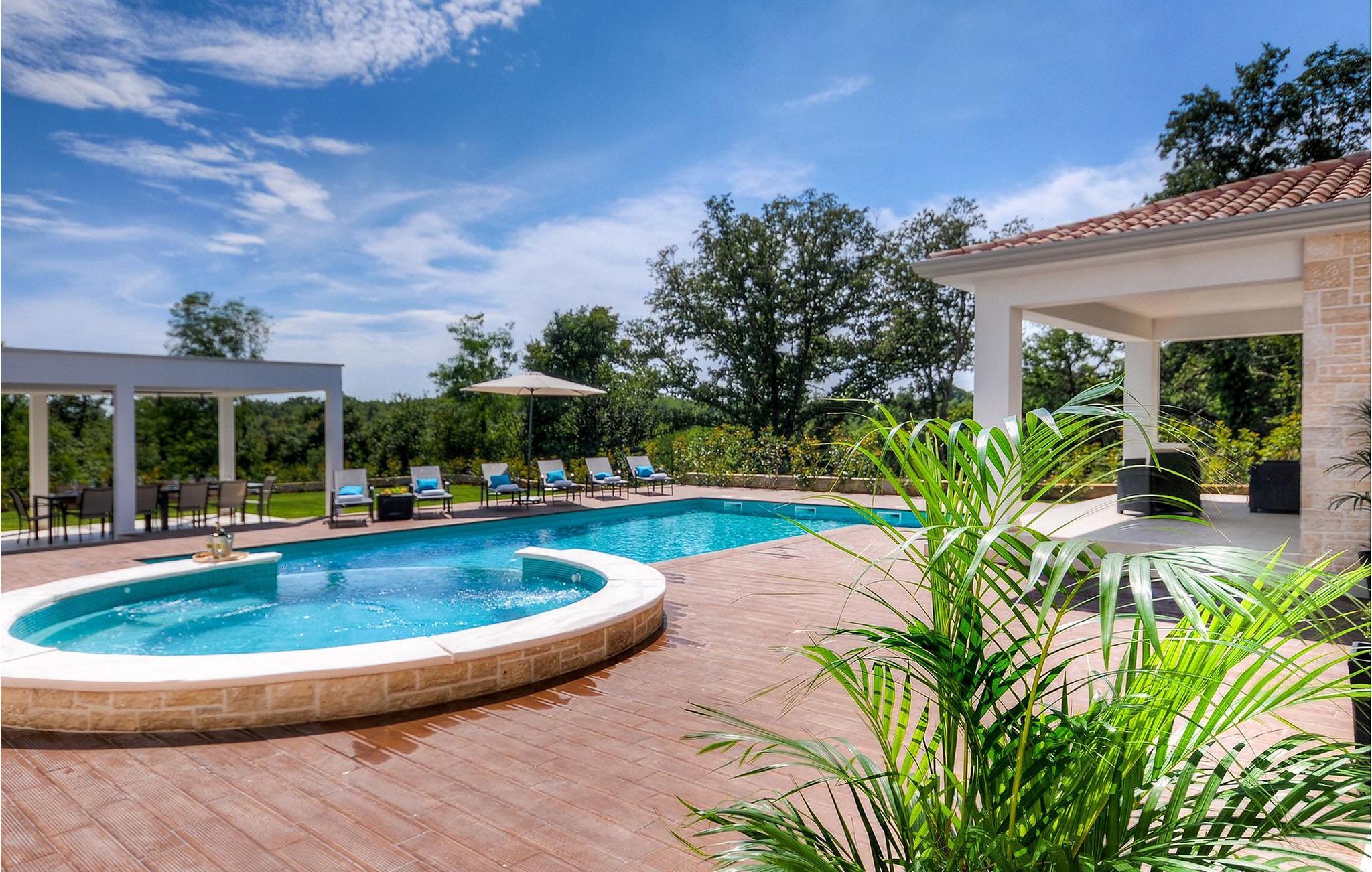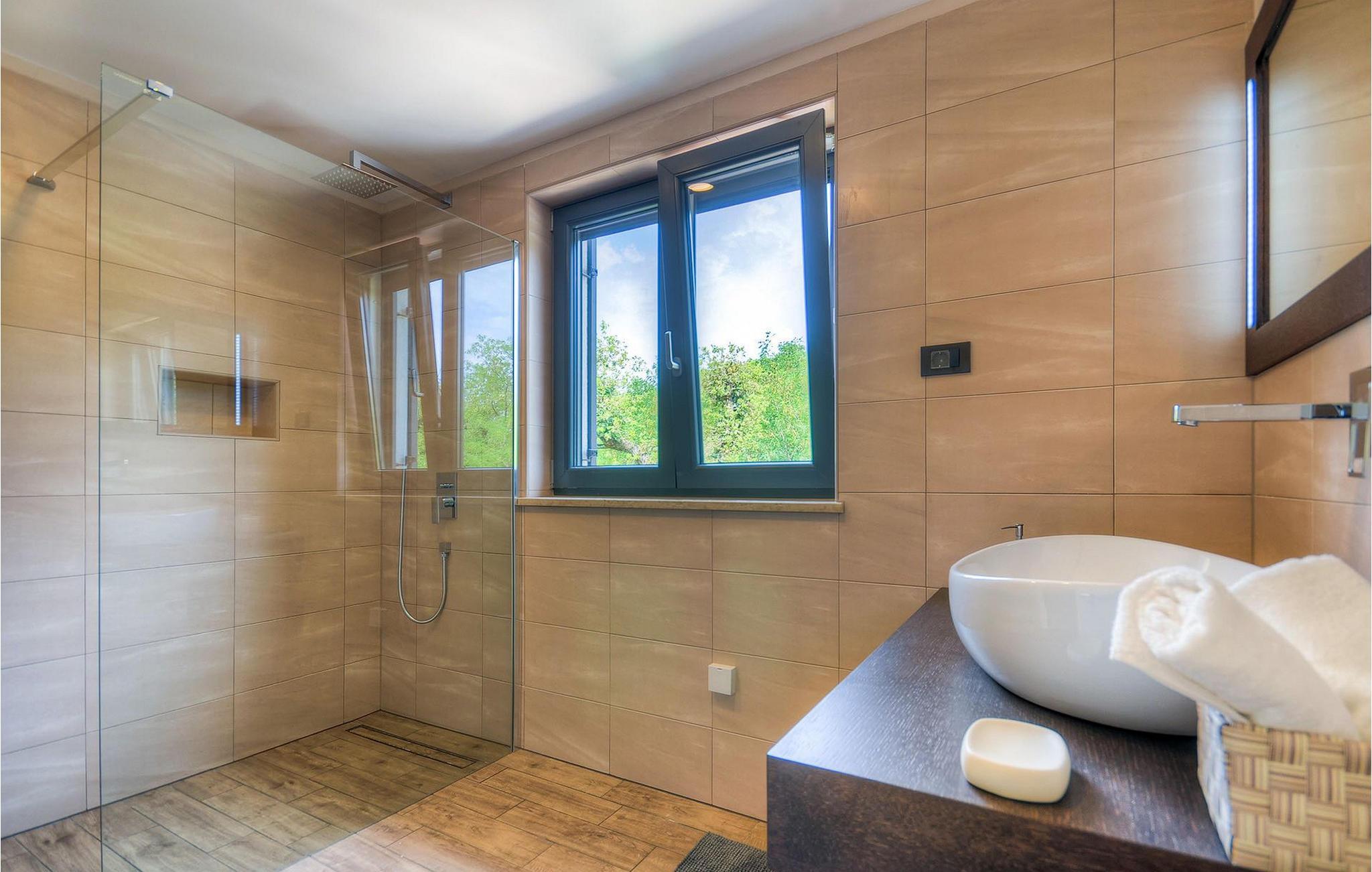 Denne luksuriøse villaen ligger i utkanten av en idyllisk liten landsby, midt i de skogkledde åsene på det pittoreske istriske landskapet, og er et drømmested for deg som ønsker å nyte et fredelig, uberørt, men likevel interessant miljø med høy komfort. Villaen har 5 soverom, 4 bad, en stue og et fullt utstyrt kjøkken med spiseplass.