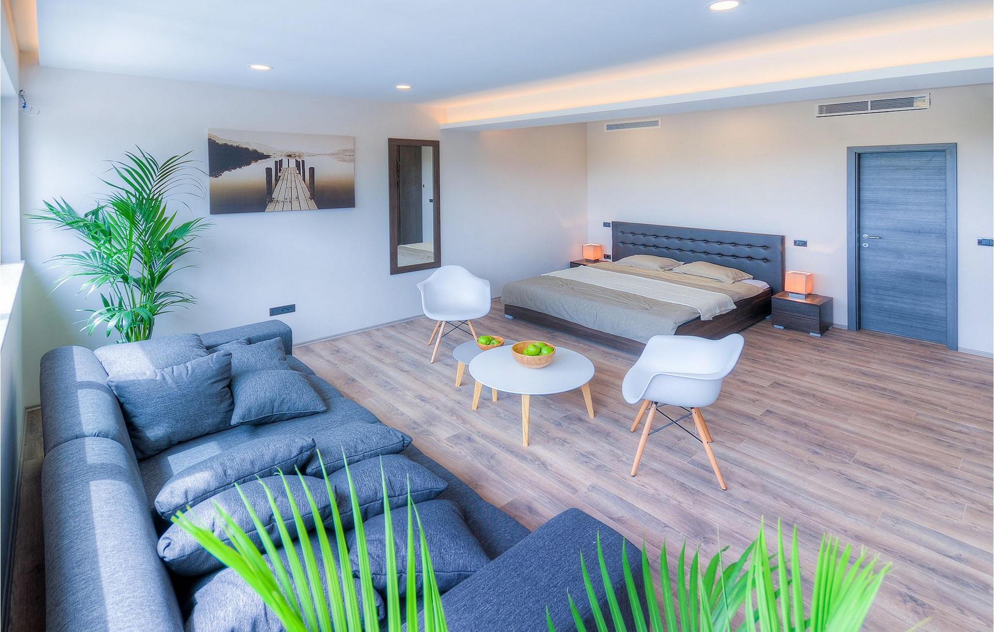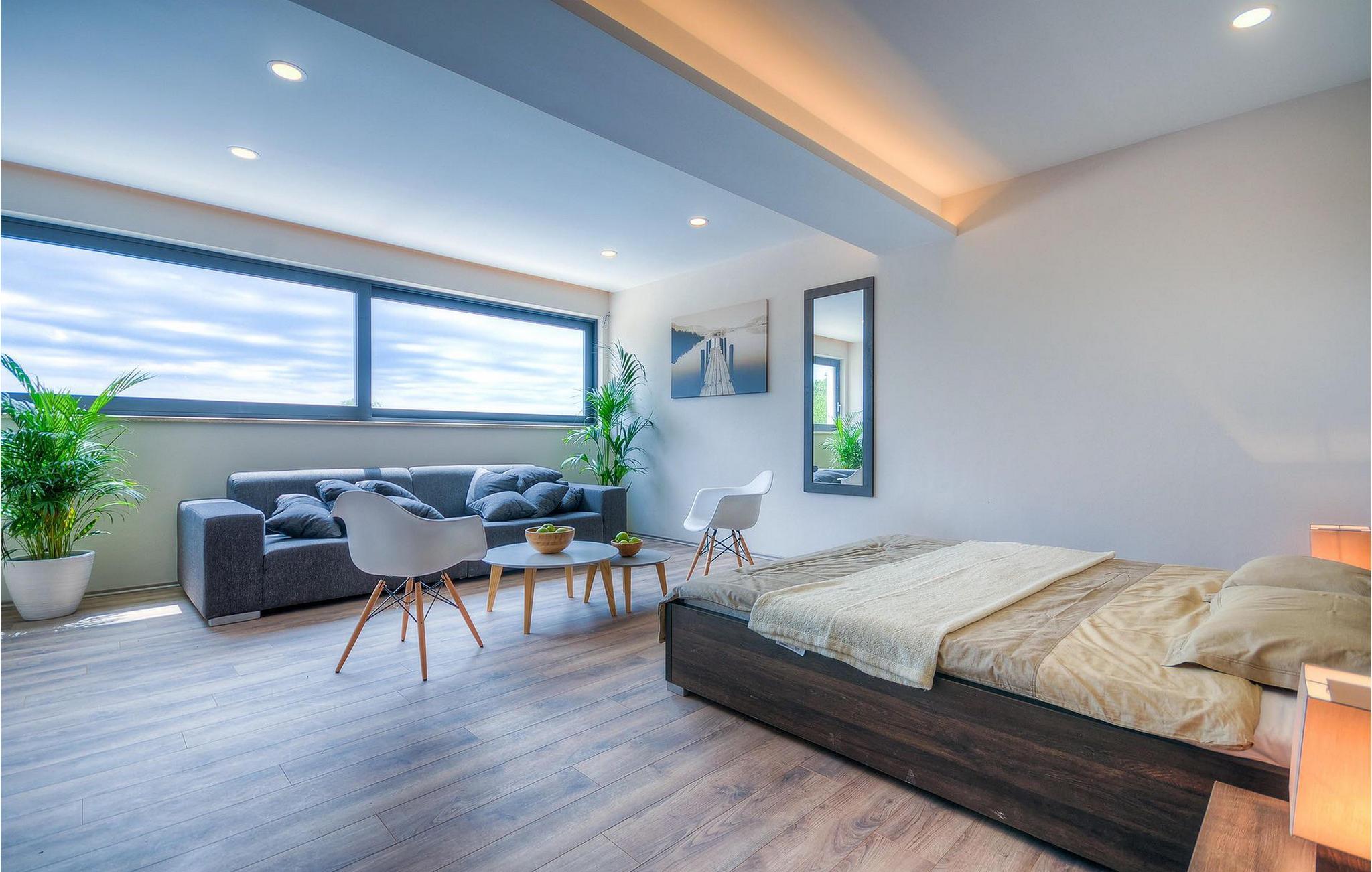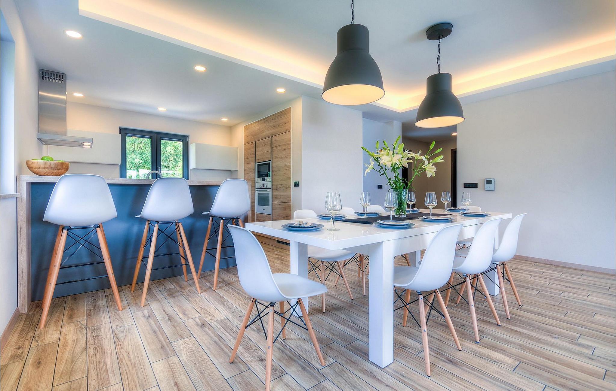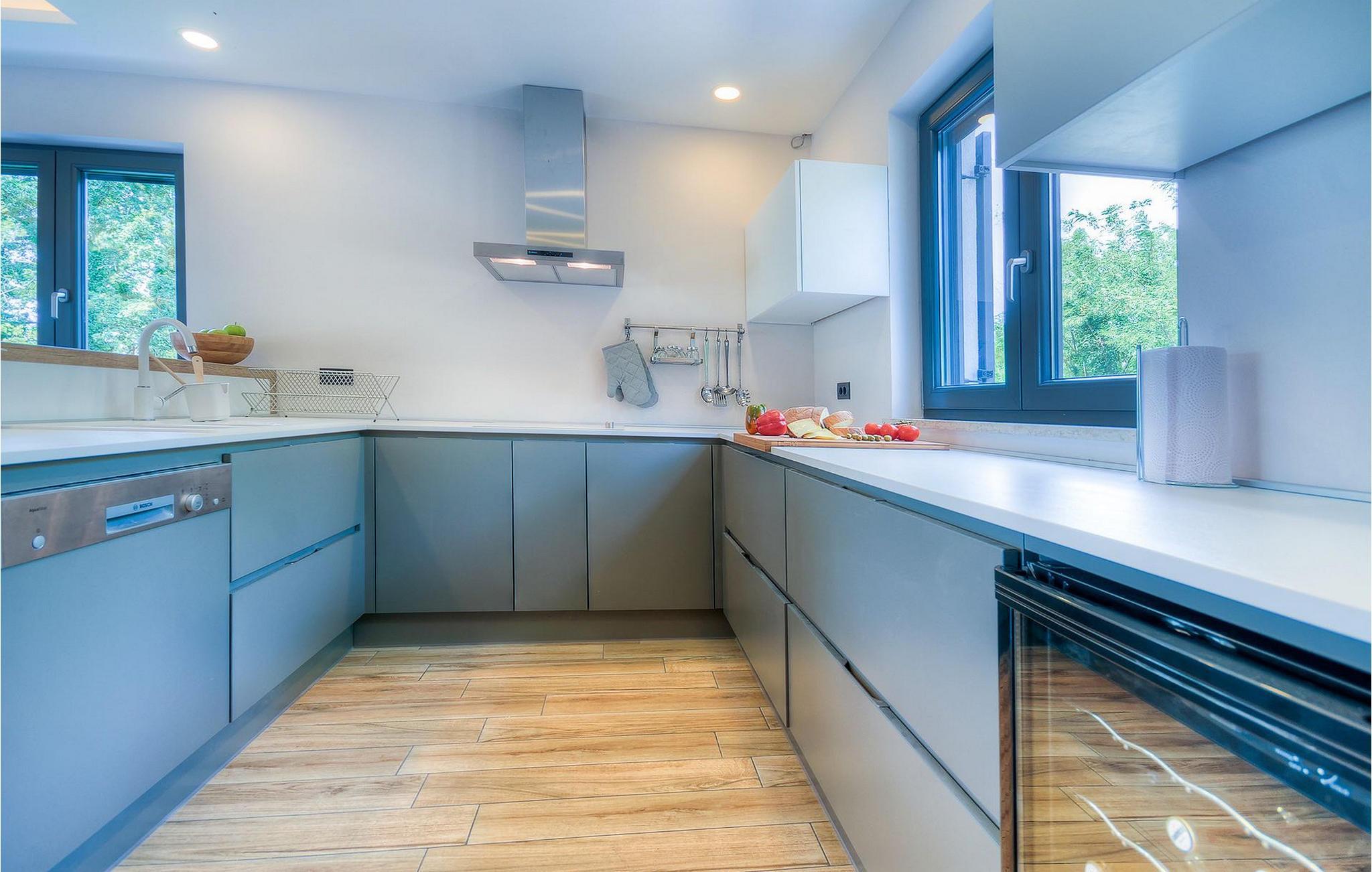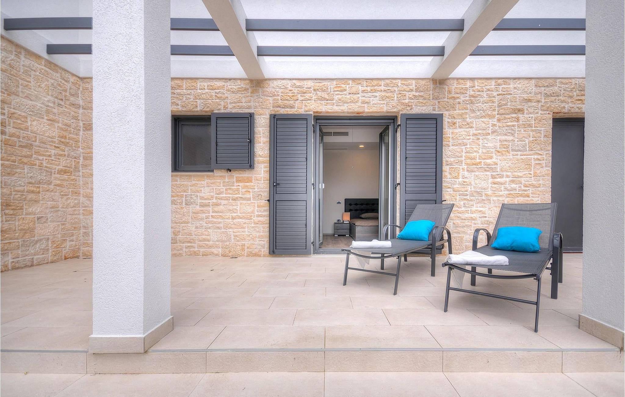 Uteområdet består av en inngjerdet, grønn hage hvor det doble bassenget med hydromassasje ligger. Terrassen har et vakkert sommerkjøkken med gassgrill og en annen uteservering hvor du kan tilberede deilige måltider. Villa Onyx har klimaanlegg, WiFi, privat parkering for 2 biler og alt du trenger for en hyggelig ferie. Denne moderne villaen ligger i rolige omgivelser og er et perfekt sted å trekke seg tilbake fra den moderne hverdagen. Likevel er det bare en kort kjøretur unna Istrias turistsentre og historiske steder. Strendene ligger 12 km fra villaen, og du kan velge mellom mange forskjellige strender i Porec-regionen. Turismen rundt Porec er mye mer enn bare hav, sol og turister. Det er lett å kjenne igjen at byen har bevart sitt historiske image. Her finner du museer, gallerier og mange severdigheter som er verdt å se. Hele sentrum er et levende kulturminne. I gatene ligger det mange gallerier og utstillingslokaler som tar vare på tradisjonen på en moderne måte. En fin måte å bli kjent med Istria på er gjennom den eksepsjonelle gastronomien.