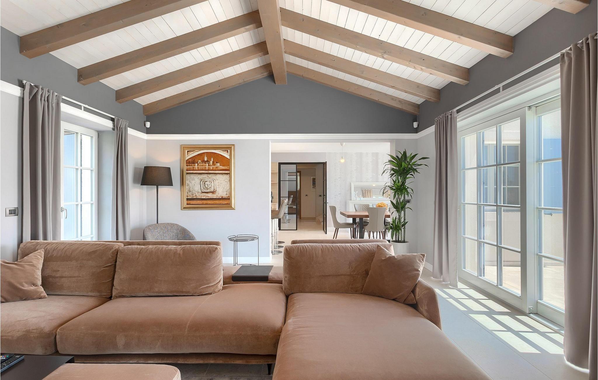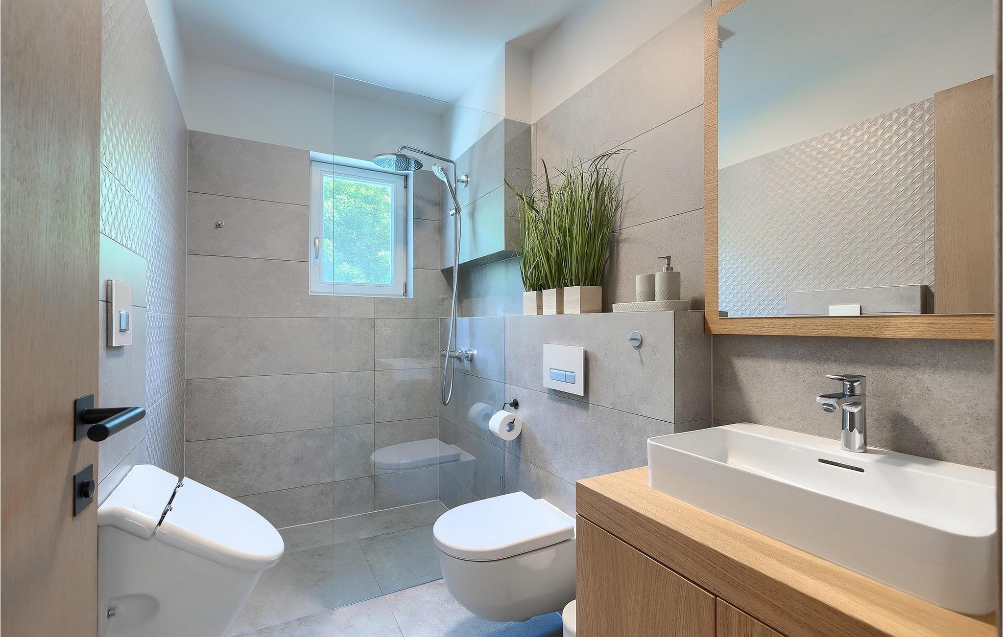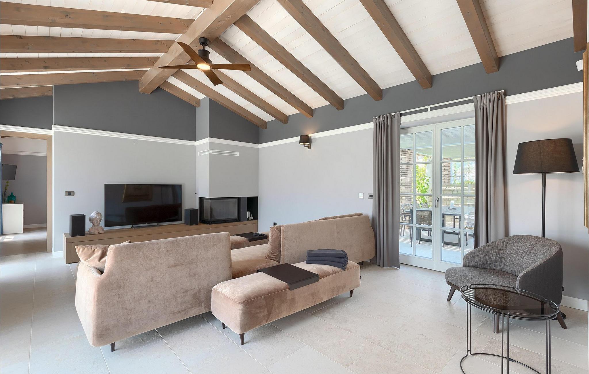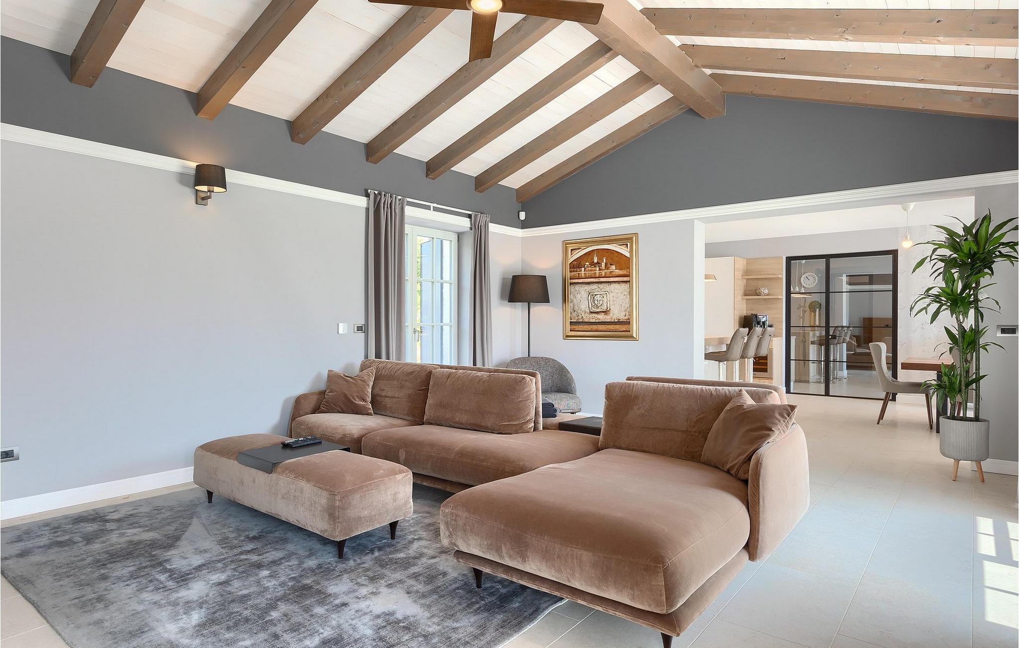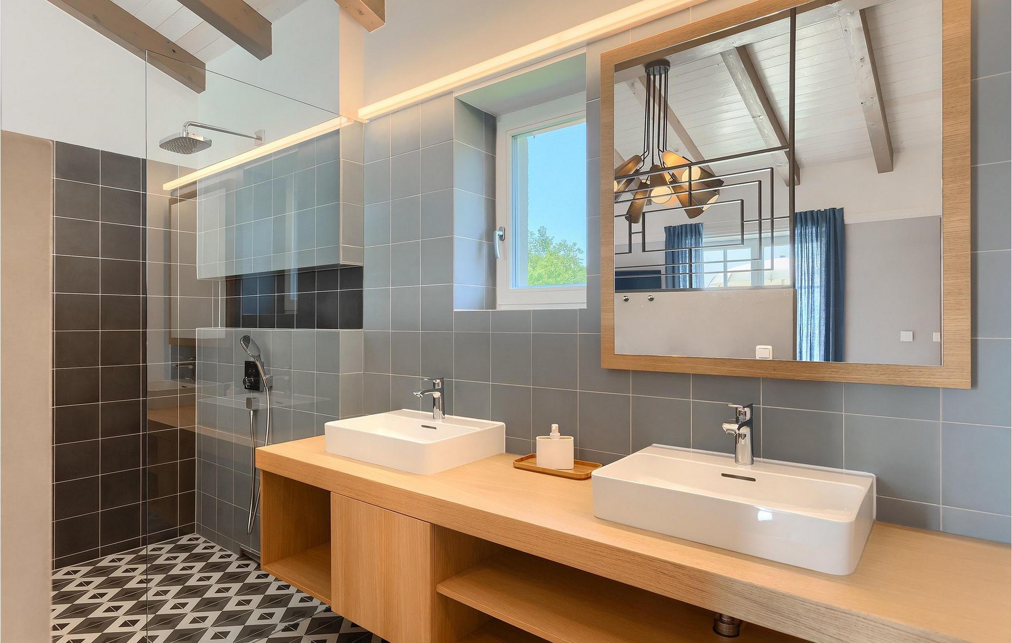 Første etasje har to soverom, begge med elegant privat bad integrert i rommet. Alle soverommene er elegant innredet med stilfulle, nøye utvalgte detaljer i harmoniske fargetoner. Trebjelkene på veggene gir det vakre interiøret i Villa Carinzia et rustikt preg med moderne stil, slik at du vil føle at drømmeferien i Istria starter riktig!