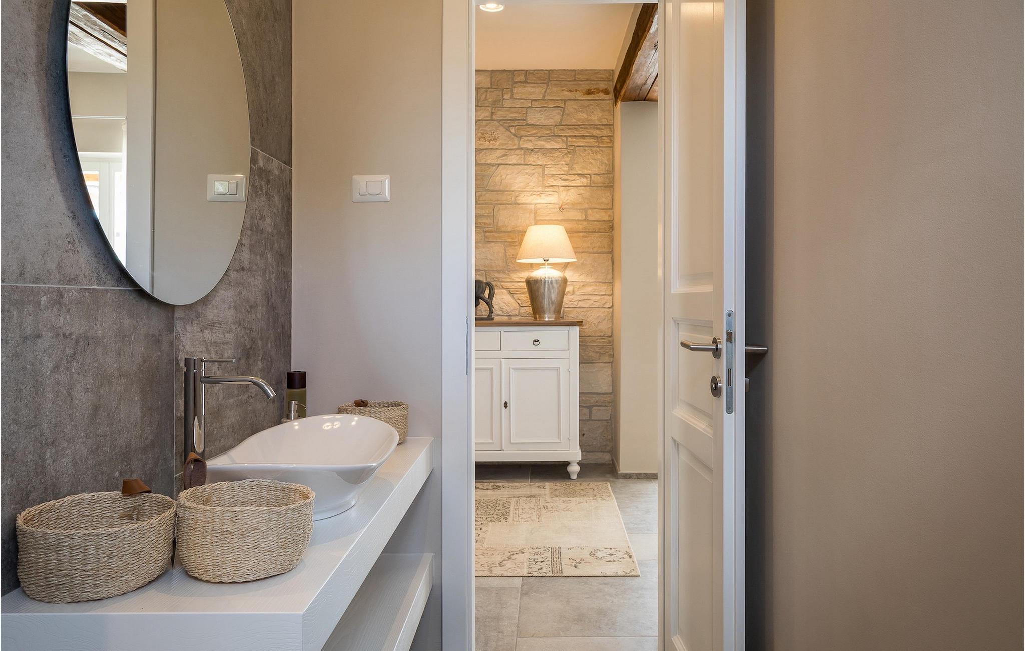 Interiøret er lyst og moderne. De rene linjene i den åpne planløsningen brytes kun av noen få tradisjonelle detaljer og møbler, og har en svært beroligende og koselig effekt. Det fullt utstyrte kjøkkenet etterlater lite å ønske. To komfortable soverom ligger i første etasje og ytterligere to i andre etasje. Hvert soverom har eget moderne bad med dusj, klimaanlegg og TV. Hovedsoverommet i øverste etasje har også egen overbygd balkong. Herfra kan du nyte den fantastiske utsikten og slappe av uforstyrret til favorittmusikken din eller en god bok. Villa Julia Marija er rett og slett et drømmehus, som gir deg en flott ferie med hele familien og venner i et typisk istrisk miljø. Denne vakre Villa Julia Marija ligger i Vinjan-området, ca. 12 km fra Pore. Ånden fra den rike historiske arven kan oppleves i gatene i det gamle sentrum av Vinjan. I Vinjans omgivelser kan du smake på deilige delikatesser og typiske istriske spesialiteter på de istriske tavernaene. Vinjan er også kjent for sitt internasjonalt anerkjente observatorium og som et av de siste stedene i Istria der det holdes stedegent istrisk storfe (Bokarin). Den vakre byen Pore er kjent for sin kultur, turisme, sport og fritid. Under oppholdet ditt i Istria kan du besøke Eufrasius-basilikaen (Unesco-kulturarv) i det gamle sentrum av Pore eller bare nyte en dag på stranden. Pore er et attraktivt feriemål med et bredt utvalg av sportsaktiviteter (tennis, strandvolleyball, fotball, ridning, sykling, fotturer, vannsport).