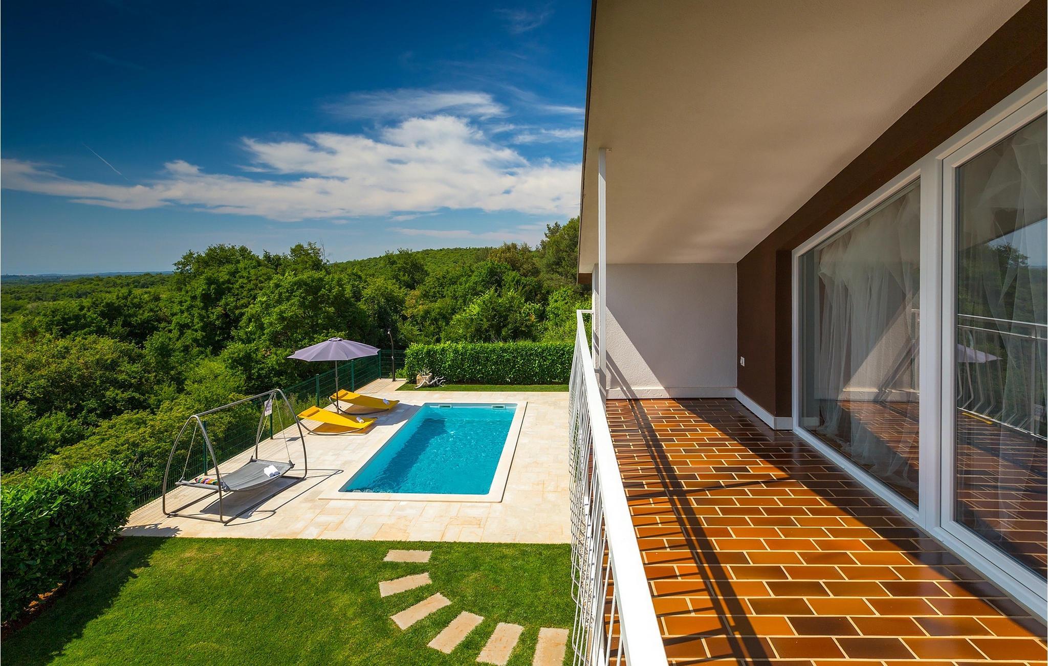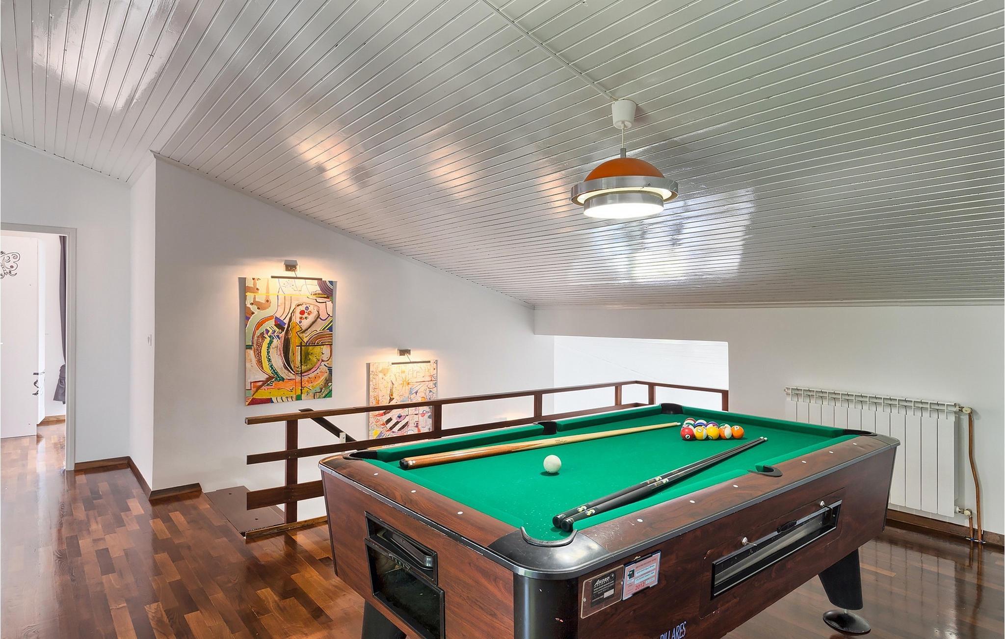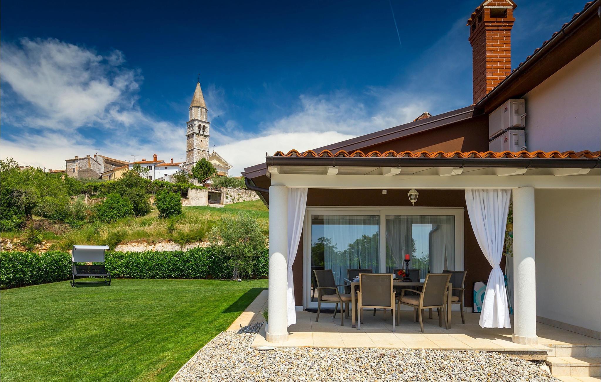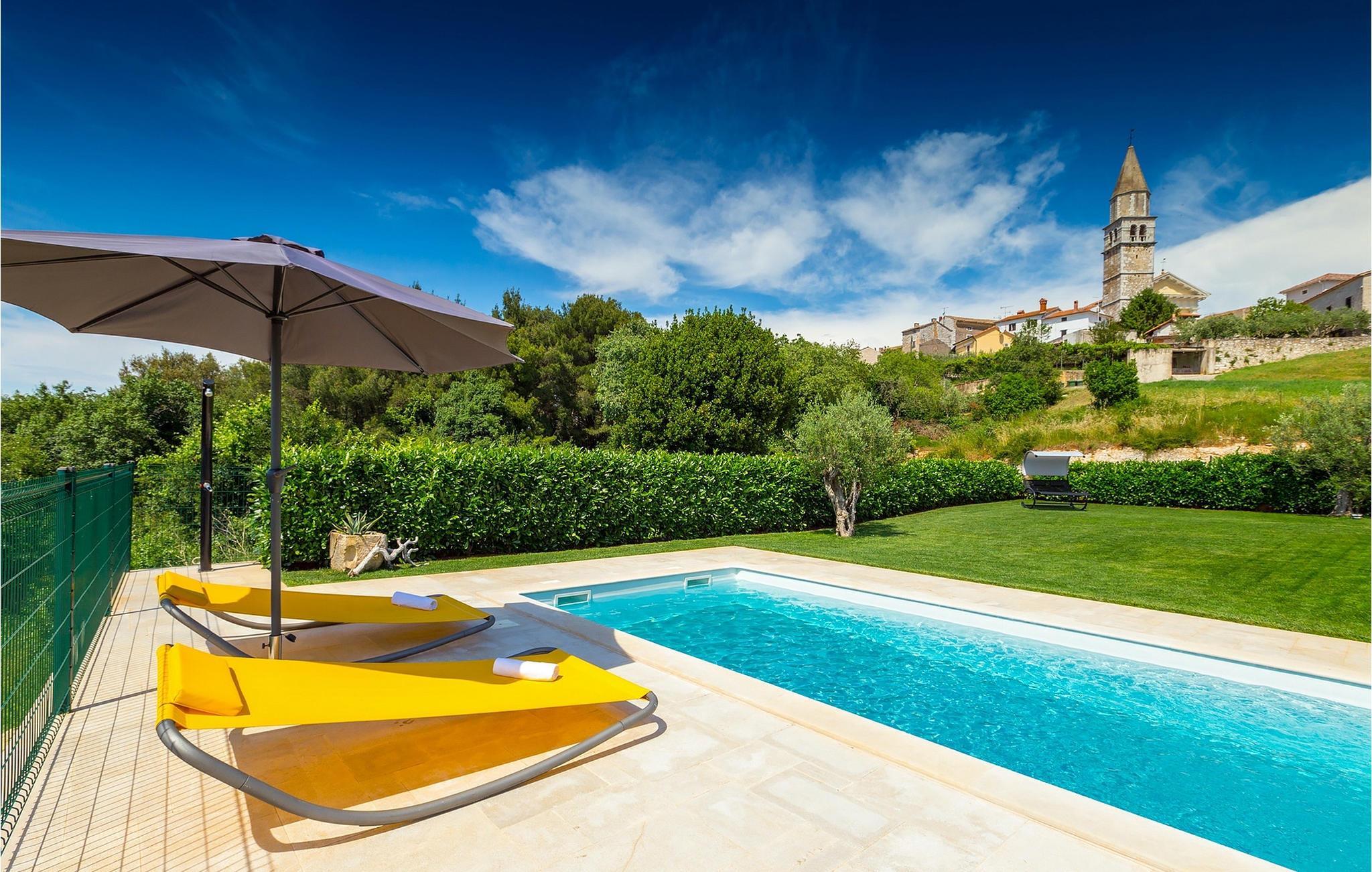 Villa Parenzana er oppkalt etter den berømte Parenzana-sykkelstien som forbinder noen av de vakre, tradisjonelle byene i det sentrale Istria, og er det ideelle valget for en ekstremt avslappende ferie. Villaen har plass til opptil 10 personer som utvilsomt vil nyte den uberørte naturen i denne regionen. Villaen har 5 soverom og 4 bad, et fullt utstyrt kjøkken, en moderne og koselig spisestue og en romslig hage som gir deg alt du trenger for en stressfri ferie. Det innbydende saltvannsbassenget gir hele eiendommen et middelhavspreg. Her kan du sole deg mens du nyter den fantastiske utsikten over omgivelsene. I hagen er det en terrasse som er ideell for uteservering. For moro skyld står biljardbordet og badmintonbanen til din disposisjon. Visnjan er en liten by i sentrum av det sentrale Istria. Byen er omgitt av bølgende åser, skog og andre historiske byer. Visnjan var tidligere et handelssentrum der man kunne kjøpe og selge alle slags landbruksprodukter. Siden byen ligger på en høyde, har du en fantastisk utsikt over den gotiske kirken, byporten med Venezia-symbolet og torget. Byen Visnjan har alt du trenger på en ferie: Restauranter og barer, bank, postkontor og apotek. Bare en kort kjøretur fra villaen ligger badelandet Istralandia, som garanterer høye doser adrenalin. Beliggenheten er ideell for de som liker å gå, jogge eller sykle.