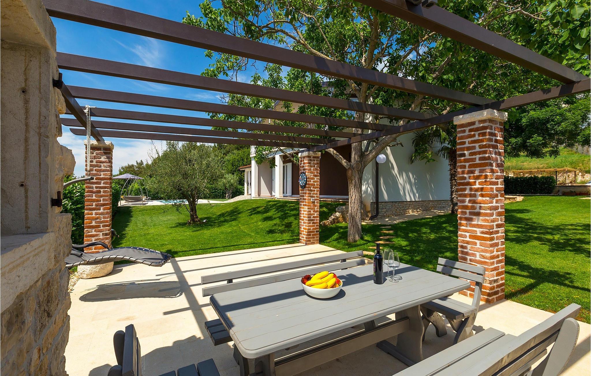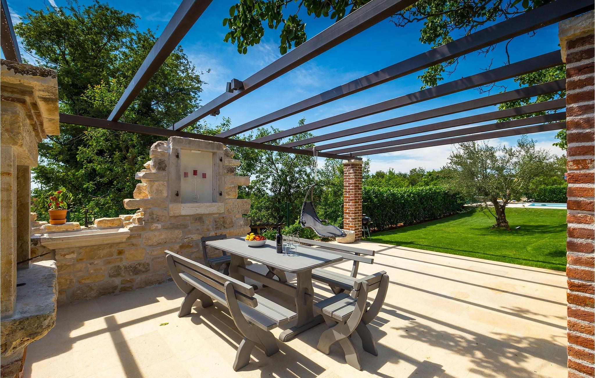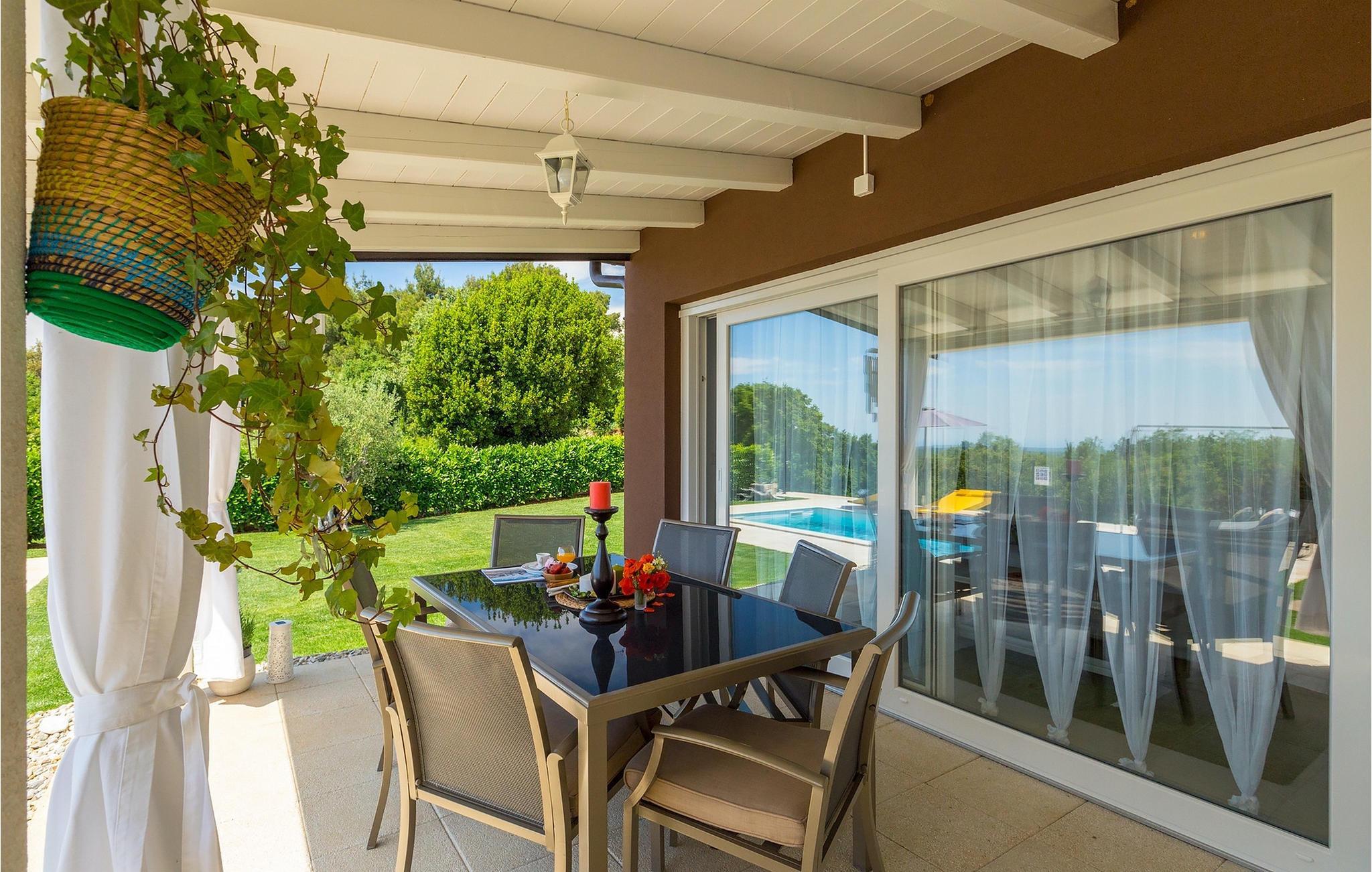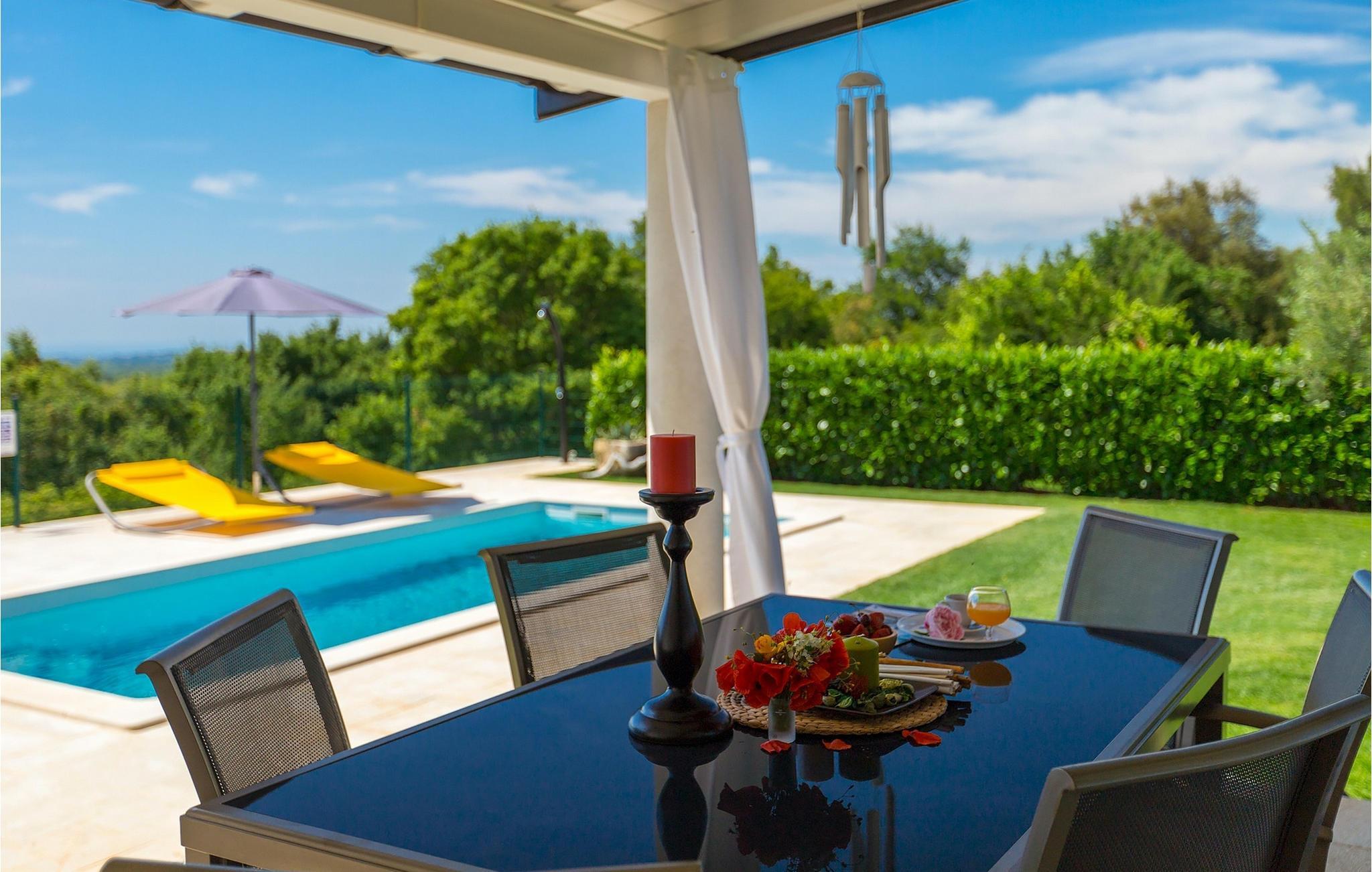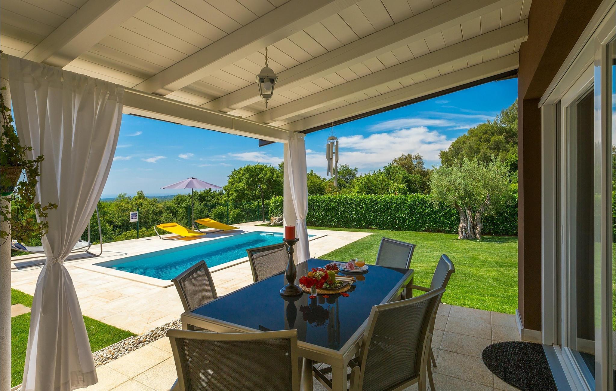Villa Parenzana er oppkalt etter den berømte Parenzana-sykkelstien som forbinder noen av de vakre, tradisjonelle byene i det sentrale Istria, og er det ideelle valget for en ekstremt avslappende ferie. Villaen har plass til opptil 10 personer som utvilsomt vil nyte den uberørte naturen i denne regionen. Villaen har 5 soverom og 4 bad, et fullt utstyrt kjøkken, en moderne og koselig spisestue og en romslig hage som gir deg alt du trenger for en stressfri ferie. Det innbydende saltvannsbassenget gir hele eiendommen et middelhavspreg. Her kan du sole deg mens du nyter den fantastiske utsikten over omgivelsene. I hagen er det en terrasse som er ideell for uteservering. For moro skyld står biljardbordet og badmintonbanen til din disposisjon. Visnjan er en liten by i sentrum av det sentrale Istria. Byen er omgitt av bølgende åser, skog og andre historiske byer. Visnjan var tidligere et handelssentrum der man kunne kjøpe og selge alle slags landbruksprodukter. Siden byen ligger på en høyde, har du en fantastisk utsikt over den gotiske kirken, byporten med Venezia-symbolet og torget. Byen Visnjan har alt du trenger på en ferie: Restauranter og barer, bank, postkontor og apotek. Bare en kort kjøretur fra villaen ligger badelandet Istralandia, som garanterer høye doser adrenalin. Beliggenheten er ideell for de som liker å gå, jogge eller sykle.