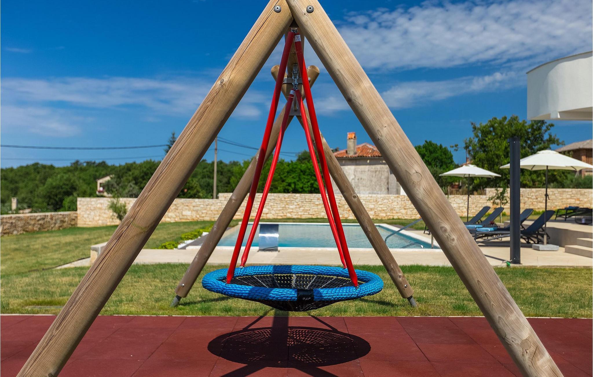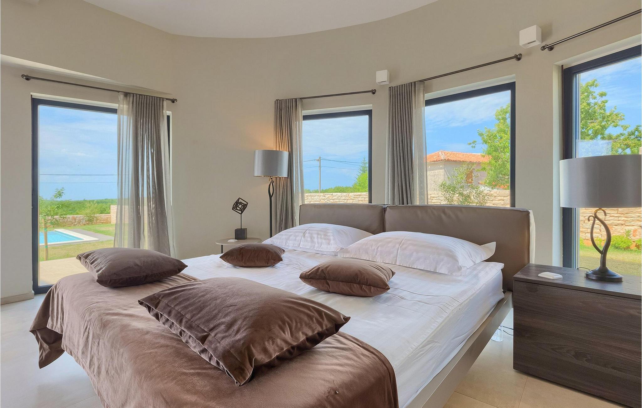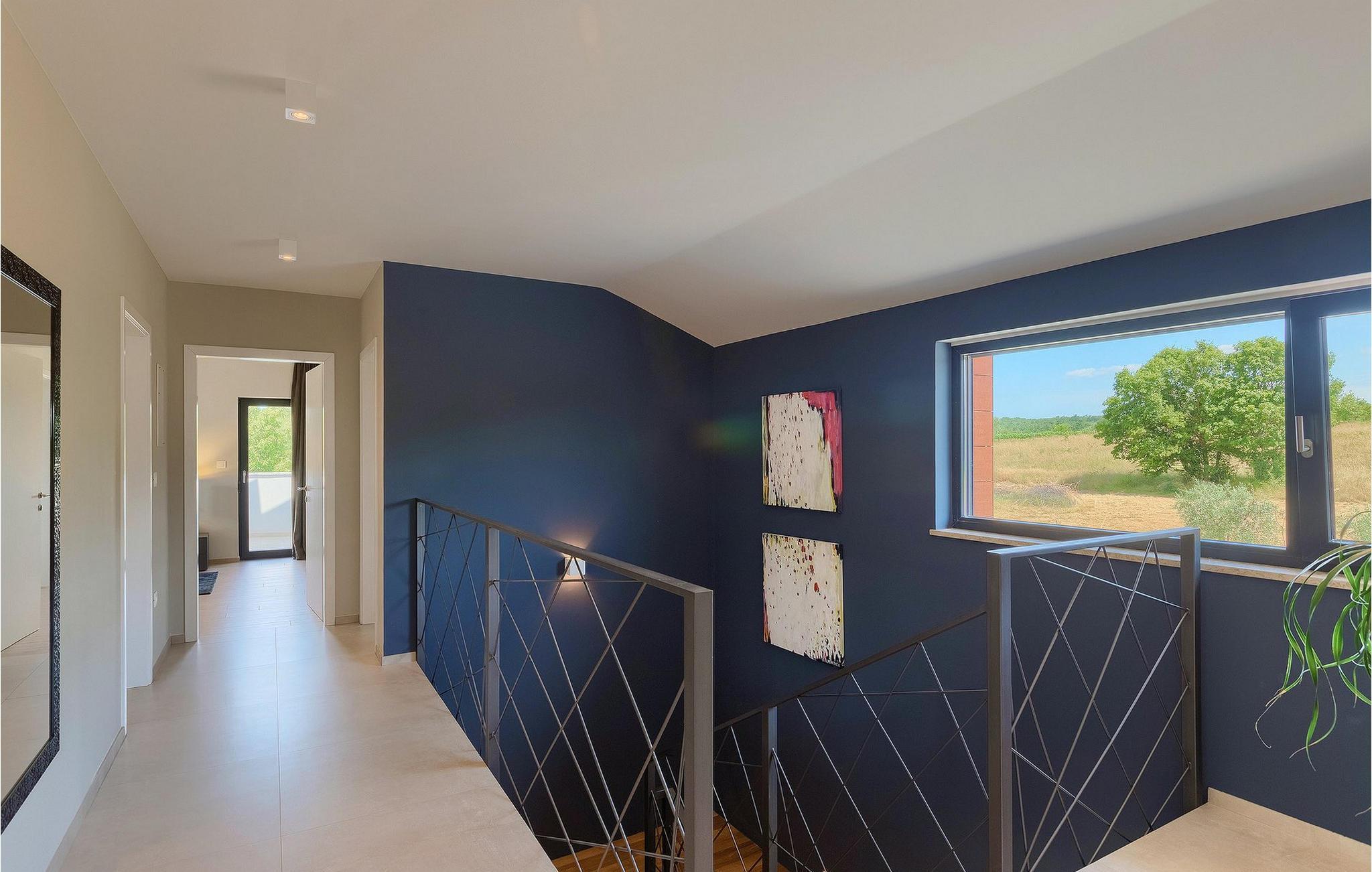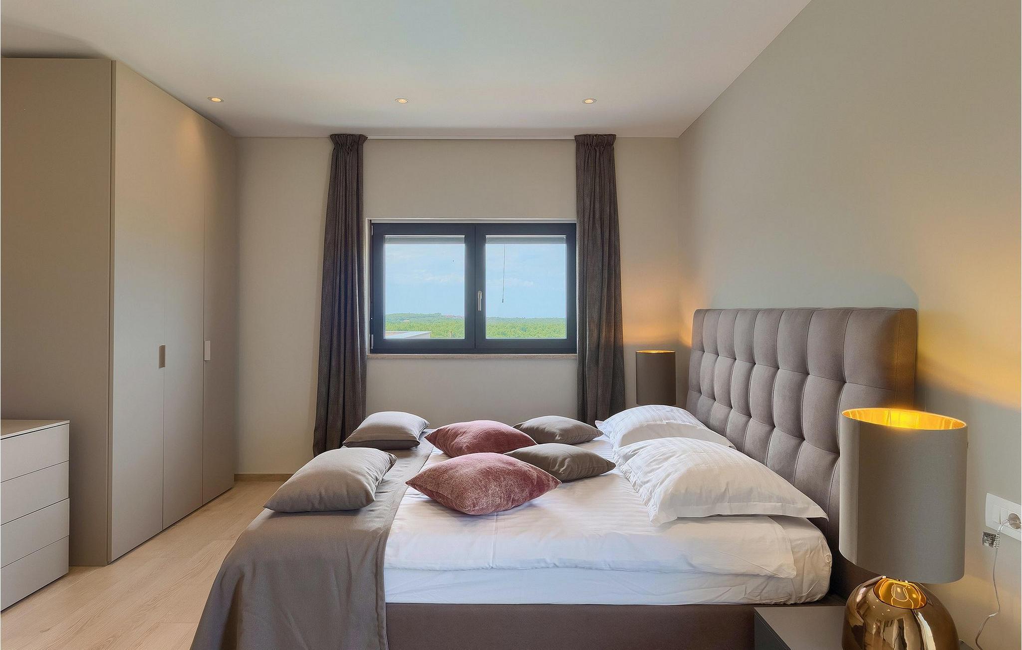 Kom inn i et fredelig sted i en liten, rolig landsby i sentrum av Istria. Villa Eleonora tilbyr et fredelig, avslappende miljø med et snev av moderne og mange måter å nyte - fra det store, private bassenget (50 m2) i den vakre, grønne hagen og en badstue. Når du kommer inn i villaen, føler du fargeharmonien i det moderne og minimalistiske interiøret. I første etasje er det også et soverom med dobbeltseng, badstue og eget bad. Tilbring tid sammen med venner og familie i stuen som ligger i åpen forbindelse med spisestuen og det moderne kjøkkenet. Herfra har du en vakker utsikt over hagen og bassenget. Mange slående, moderne malerier henger på veggene og gir liv til villaen. I første etasje er det tre vakre soverom med eget bad og balkong hvor du kan nyte utsikten. Hvis du reiser med barn, er det en liten lekeplass for de yngste, slik at du kan slappe av ved bassenget mens barna leker. To sykler står også til din disposisjon. I hagen kan du spise deilige måltider i det fri ved siden av grillen. Alle fasiliteter som butikker og restauranter ligger bare en spasertur unna. Hvis du vil til stranden, trenger du bare å kjøre 20 minutter med bil for å nyte ferien i Istria! Villa Eleonora ligger på et lite, rolig sted i den sentrale delen av Istria, nær den sjarmerende byen Visnjan. Hvis du vil utforske Istria, bør du absolutt besøke Motovun. Dette er et fantastisk middelalderbymonument med golfbane, naturlige kildevann og spa, ridning og en internasjonal filmfestival. De første butikkene, restaurantene og barene finner du i den lille, men vakre byen Visnjan, som også byr på et besøk til observatoriet og astronomisenteret. Dette området er kjent for sine vinkjellere. Den nærmeste stranden ligger bare 15 km fra villaen, og du kan nyte utsikten over havet fra balkongen. Hvis du vil utforske andre vakre byer i nærheten, anbefaler vi Porec (20 km) eller Rovinj (30-40 km).