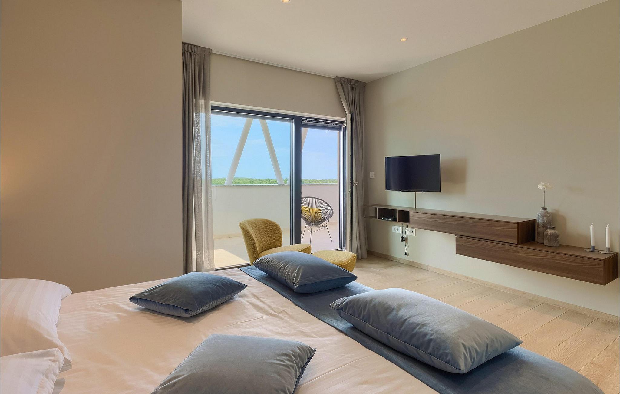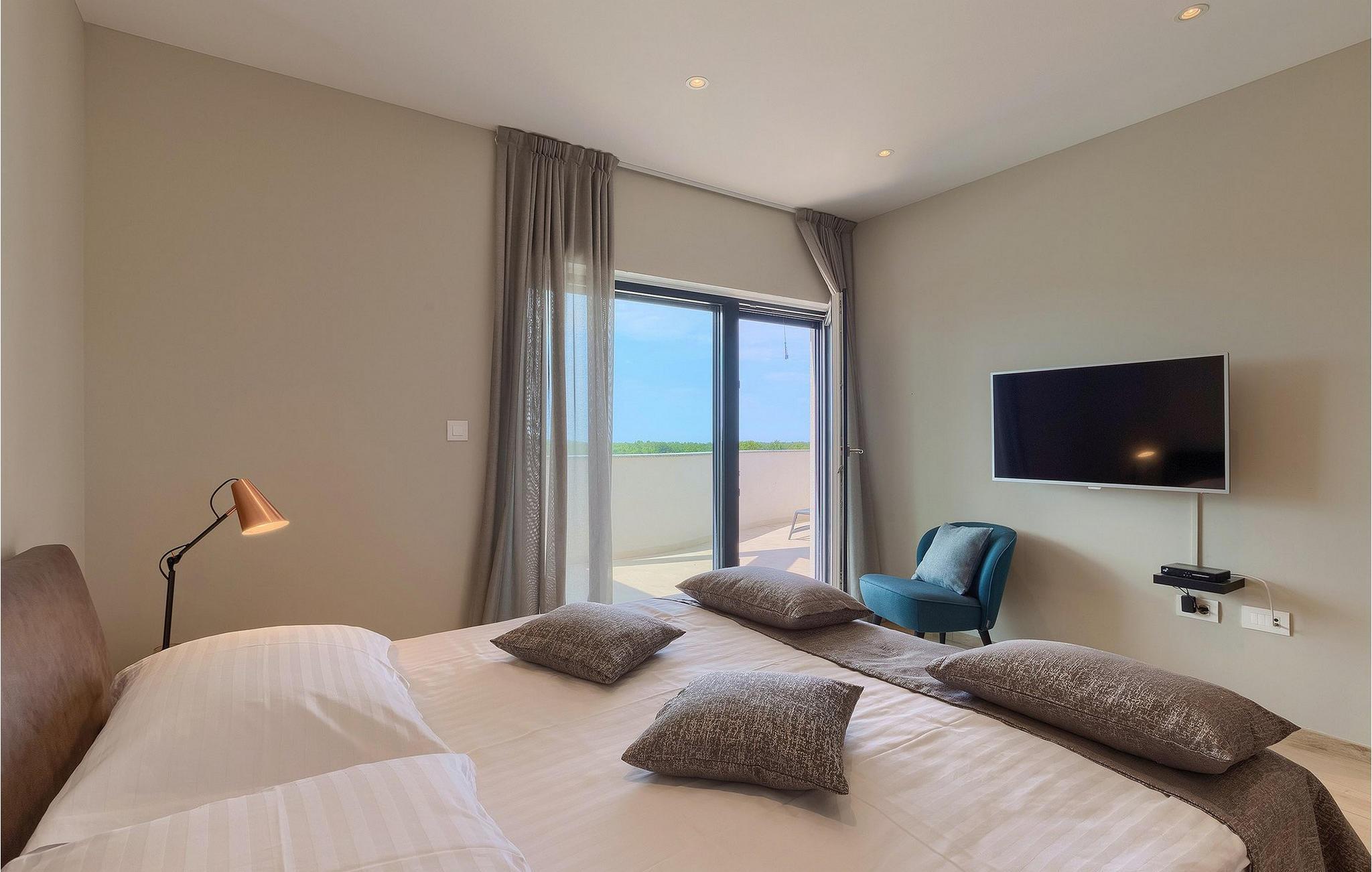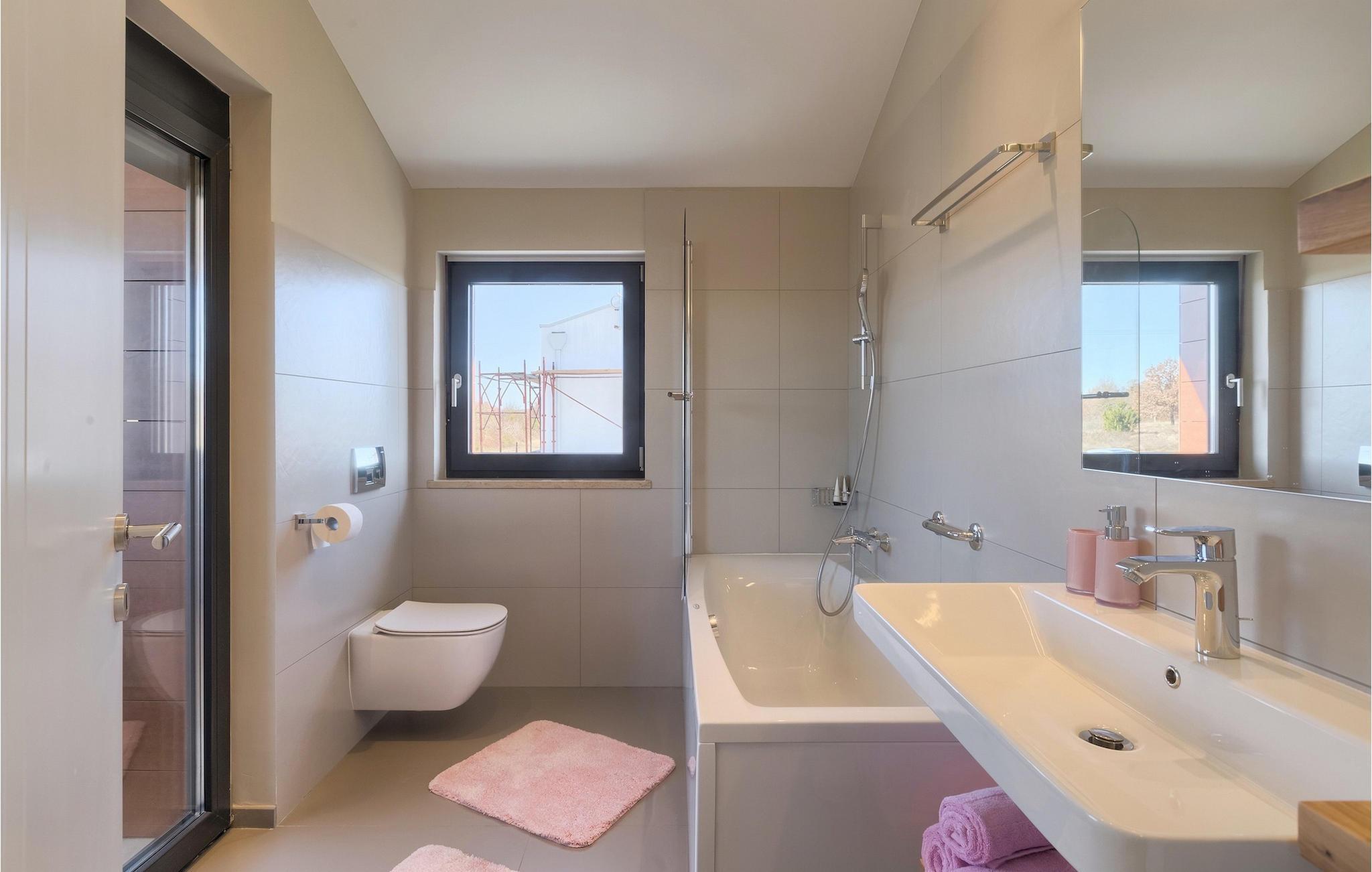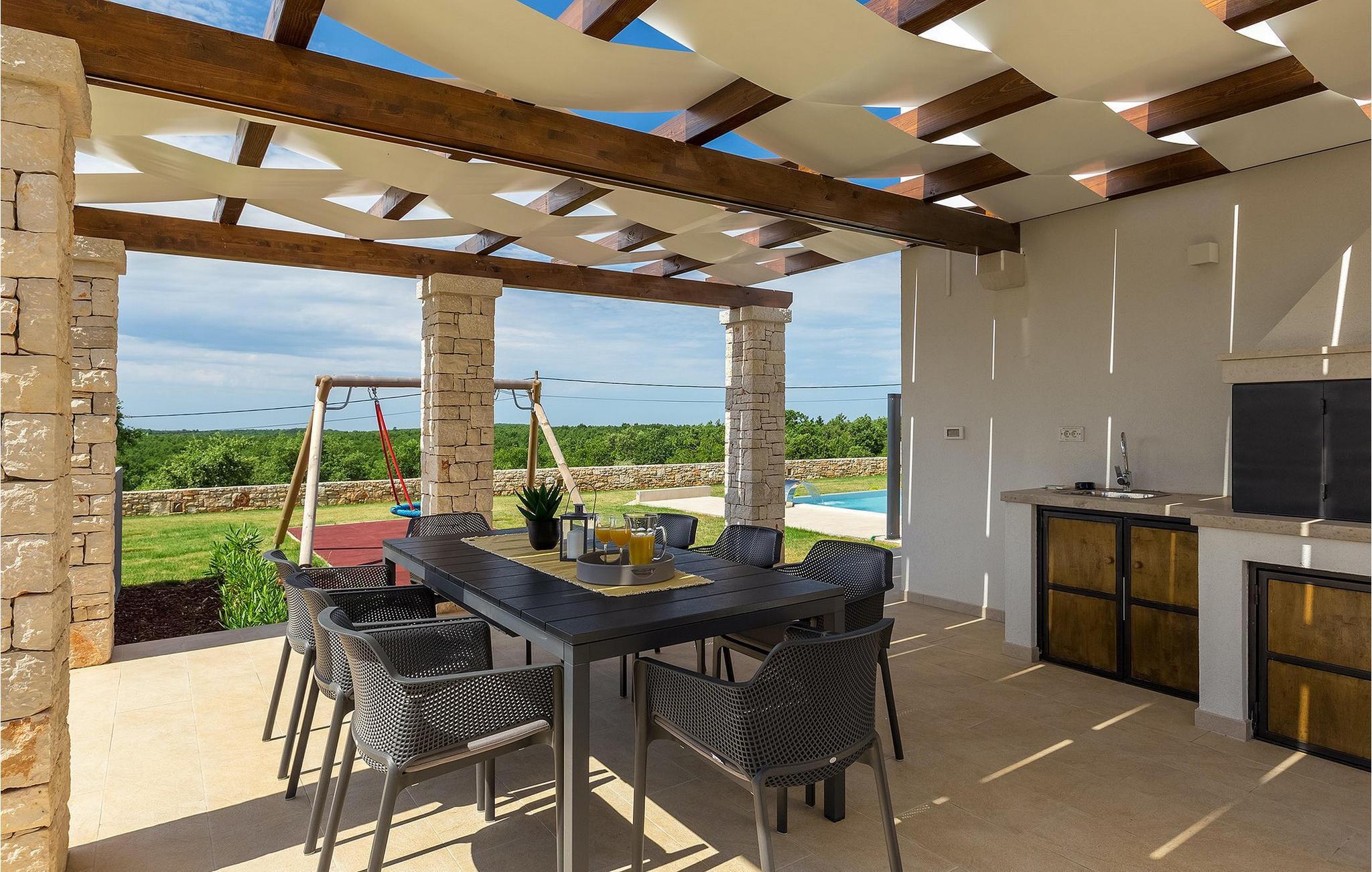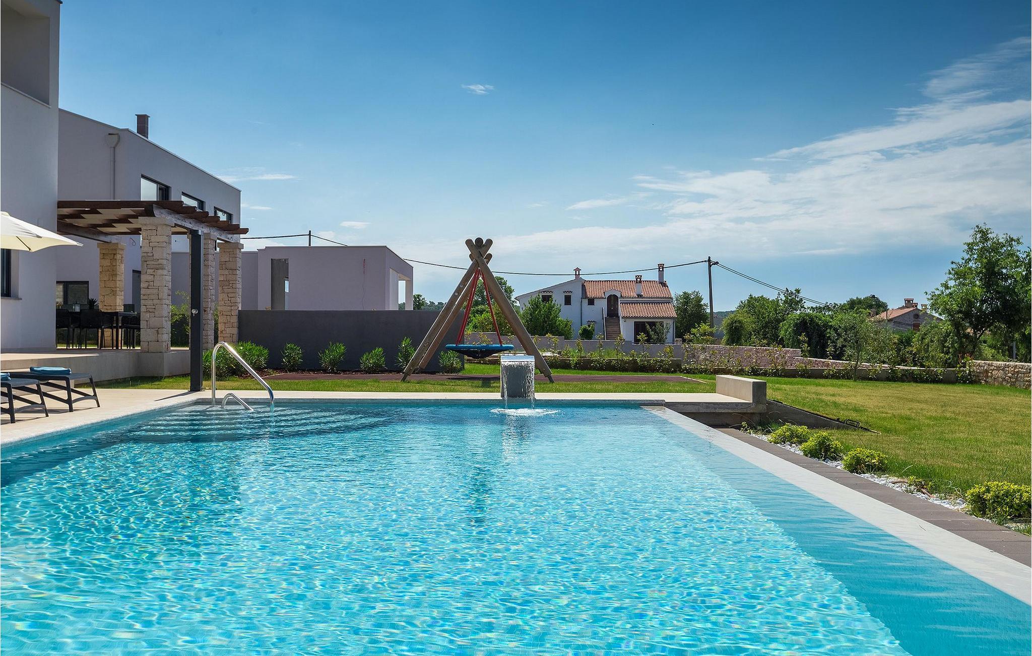 Kom inn i et fredelig sted i en liten, rolig landsby i sentrum av Istria. Villa Eleonora tilbyr et fredelig, avslappende miljø med et snev av moderne og mange måter å nyte - fra det store, private bassenget (50 m2) i den vakre, grønne hagen og en badstue. Når du kommer inn i villaen, føler du fargeharmonien i det moderne og minimalistiske interiøret. I første etasje er det også et soverom med dobbeltseng, badstue og eget bad. Tilbring tid sammen med venner og familie i stuen som ligger i åpen forbindelse med spisestuen og det moderne kjøkkenet. Herfra har du en vakker utsikt over hagen og bassenget. Mange slående, moderne malerier henger på veggene og gir liv til villaen. I første etasje er det tre vakre soverom med eget bad og balkong hvor du kan nyte utsikten. Hvis du reiser med barn, er det en liten lekeplass for de yngste, slik at du kan slappe av ved bassenget mens barna leker. To sykler står også til din disposisjon. I hagen kan du spise deilige måltider i det fri ved siden av grillen. Alle fasiliteter som butikker og restauranter ligger bare en spasertur unna. Hvis du vil til stranden, trenger du bare å kjøre 20 minutter med bil for å nyte ferien i Istria! Villa Eleonora ligger på et lite, rolig sted i den sentrale delen av Istria, nær den sjarmerende byen Visnjan. Hvis du vil utforske Istria, bør du absolutt besøke Motovun. Dette er et fantastisk middelalderbymonument med golfbane, naturlige kildevann og spa, ridning og en internasjonal filmfestival. De første butikkene, restaurantene og barene finner du i den lille, men vakre byen Visnjan, som også byr på et besøk til observatoriet og astronomisenteret. Dette området er kjent for sine vinkjellere. Den nærmeste stranden ligger bare 15 km fra villaen, og du kan nyte utsikten over havet fra balkongen. Hvis du vil utforske andre vakre byer i nærheten, anbefaler vi Porec (20 km) eller Rovinj (30-40 km).