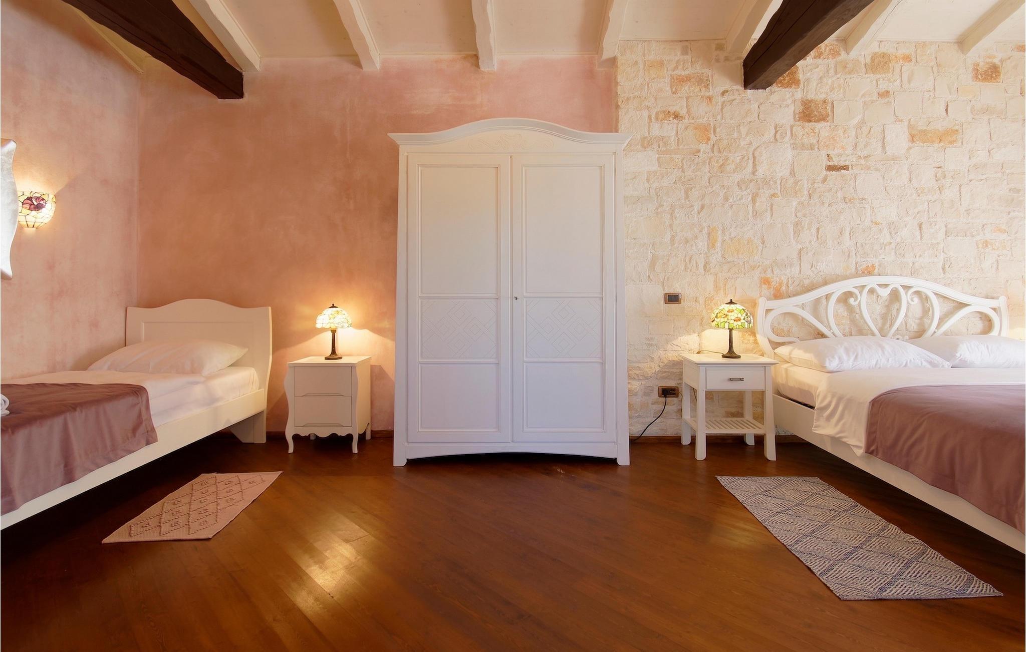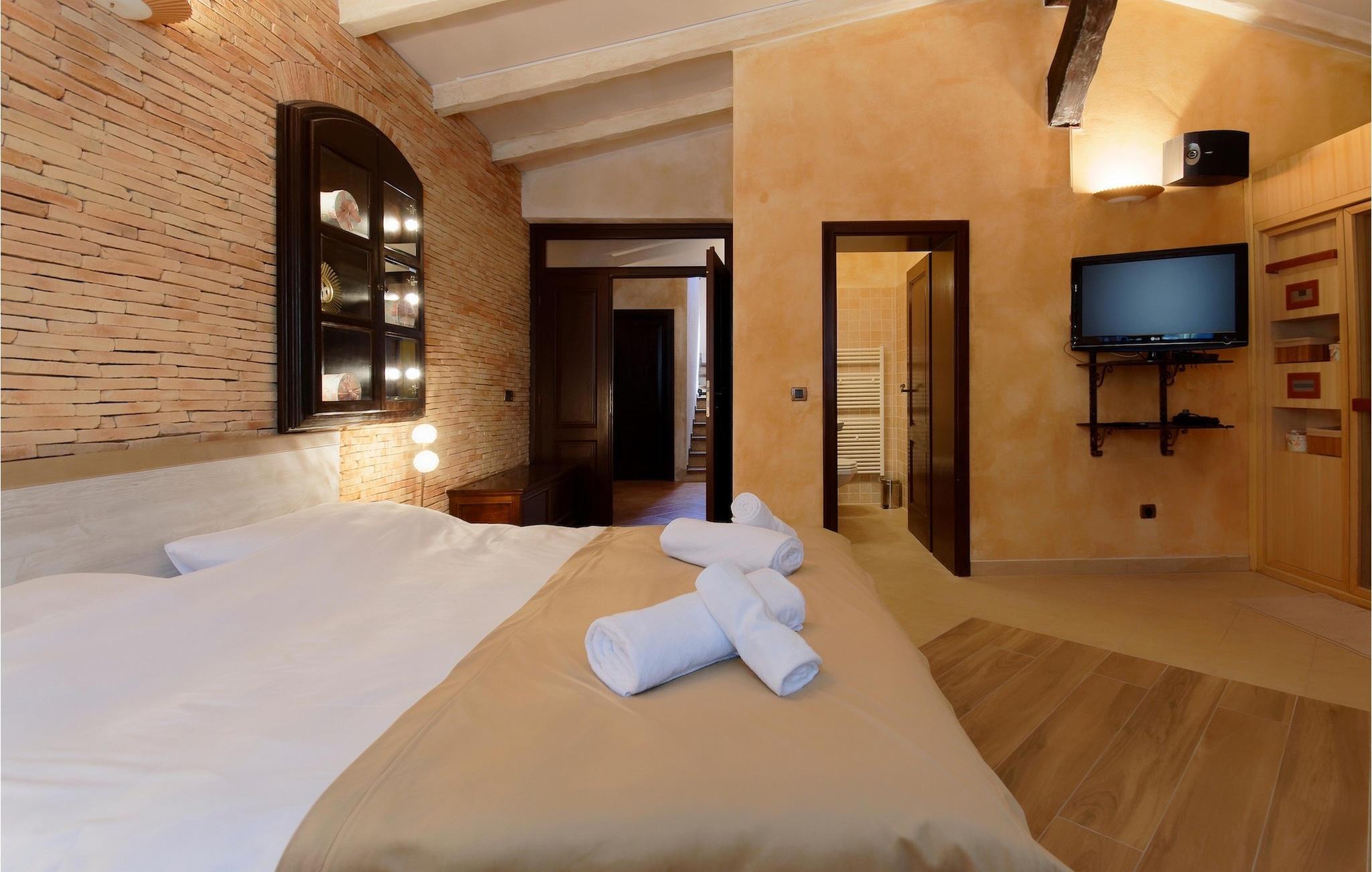 Denne vakre villaen i provençalsk stil kombinerer natur, avslapning og ulike fritidsaktiviteter. Villaen har et innbydende privat basseng. Første etasje er samlingspunktet for alle felles- og familieaktiviteter - fra kjøkken, spisestue og stue til de to soverommene. Det ene soverommet har til og med sin egen badstue. Kjøkkenet er utvidet med et ekstra sommerkjøkken for de som liker å spise utendørs. I første etasje i Villa La Quercia finner du vakre, gamle soverom som sammen med soverommene i første etasje gir plass til 9+2 personer. Alle soverommene har klimaanlegg, TV og eget bad. For mer avslapping og ekte feriefølelse kan du slappe av i den vakre, velstelte hagen, hvor du finner 8 solsenger, et lysthus og stedegne middelhavsurter. Her kan du også beundre 3 hundre år gamle oliven- og eiketrær, som beskytter deg mot solbrenthet i den naturlige skyggen. Alle rommene i første etasje har utgang til bassenget og hagen. Hvis du reiser med barn, er det nok av aktiviteter for alle - fra bordtennis til sportsutstyr for volleyball i bassenget eller fotball. For spesielle kvelder og sammenkomster skjuler kjelleren en romslig taverna med bar, TV og en vinkjeller for å holde de smakfulle vinene dine kjølige. Dette området, med en ekstra dusj for de som ønsker å friske seg opp fra bassenget, ligger i den nedre delen av første etasje.
