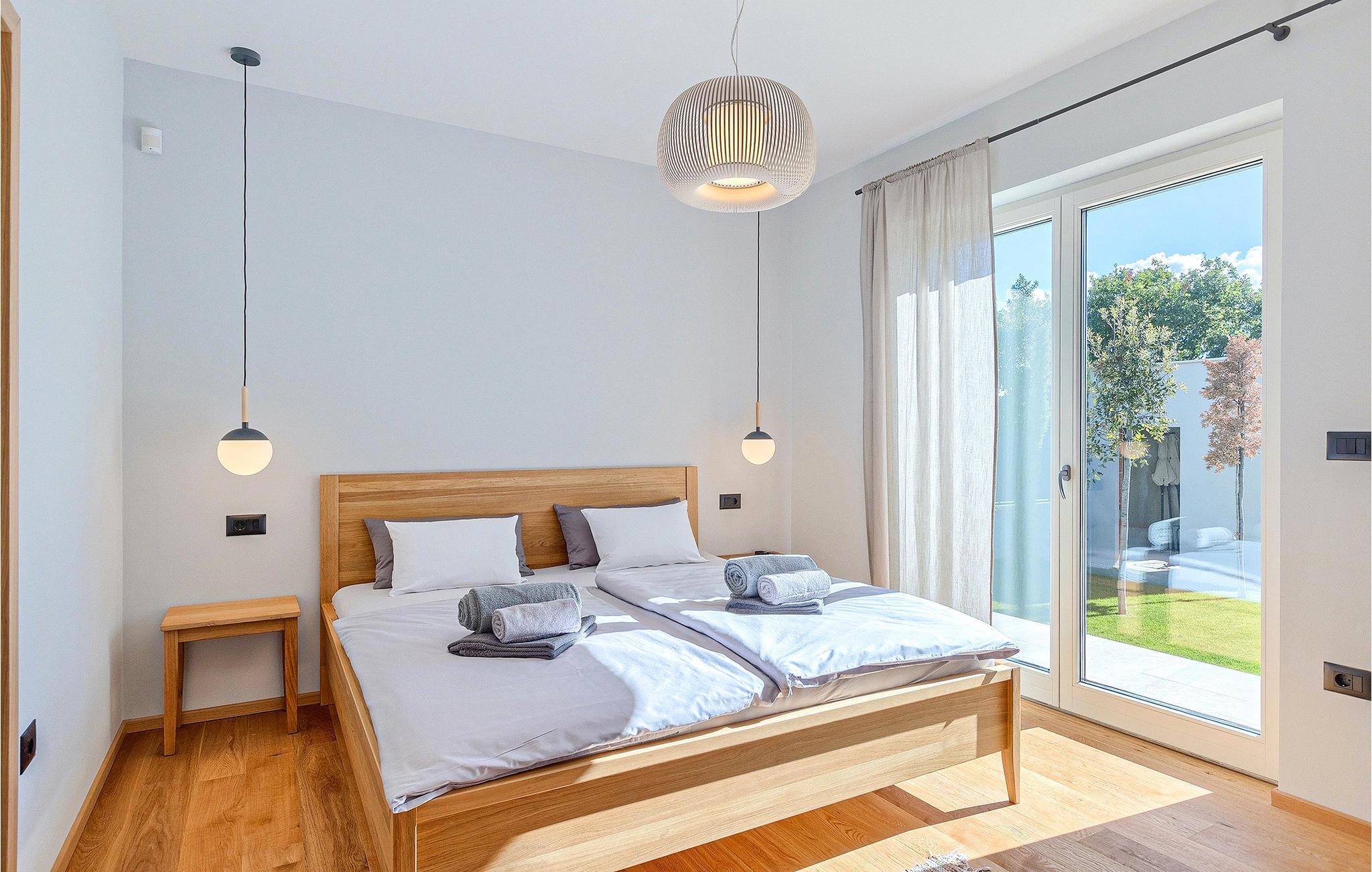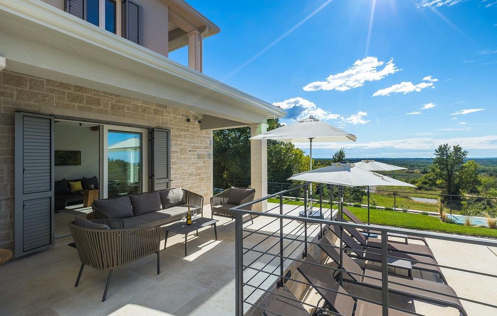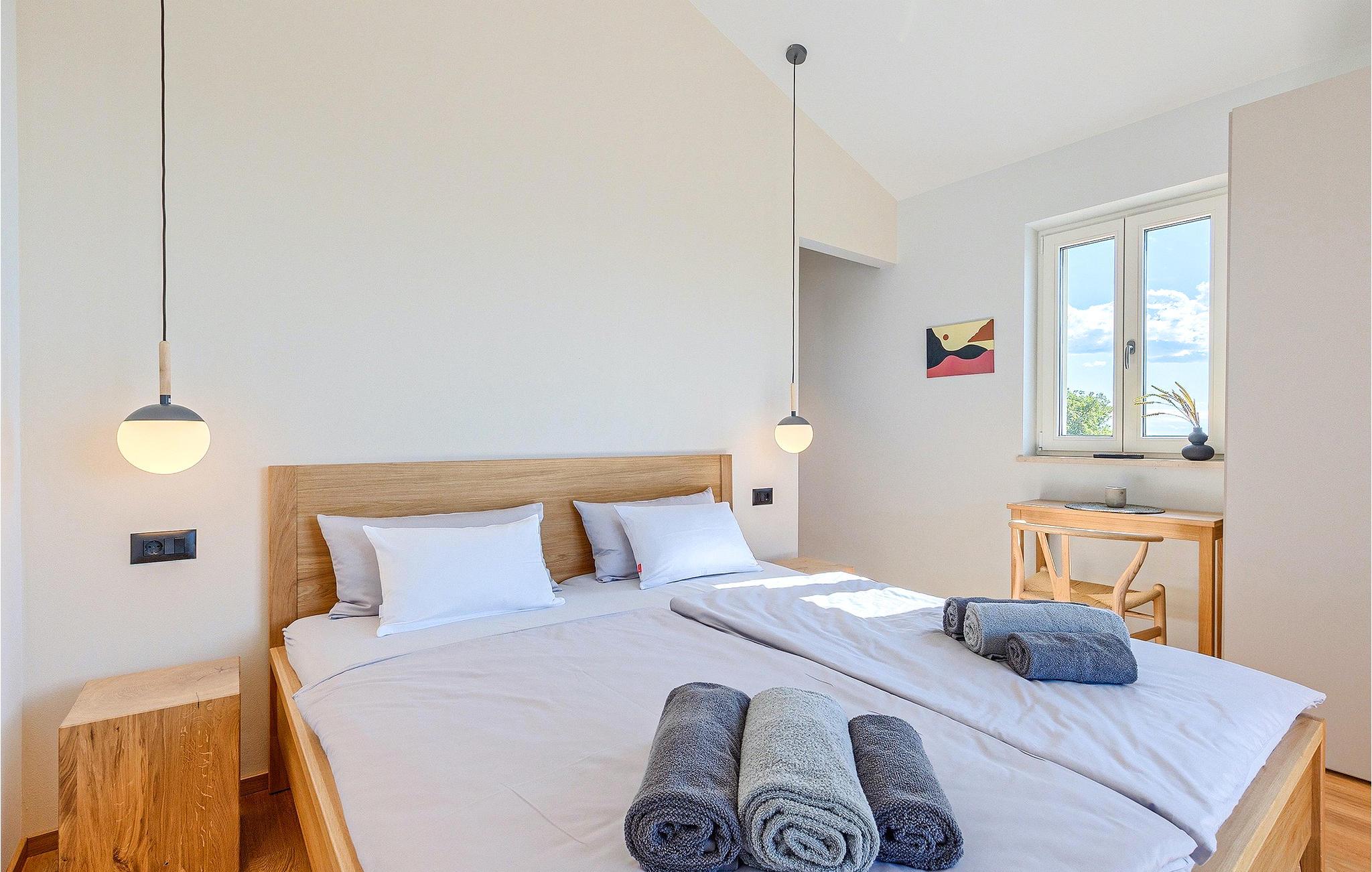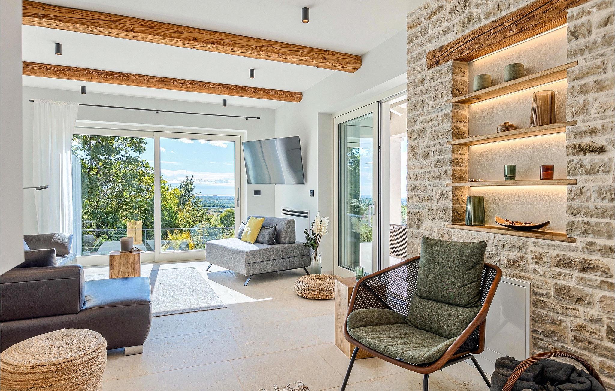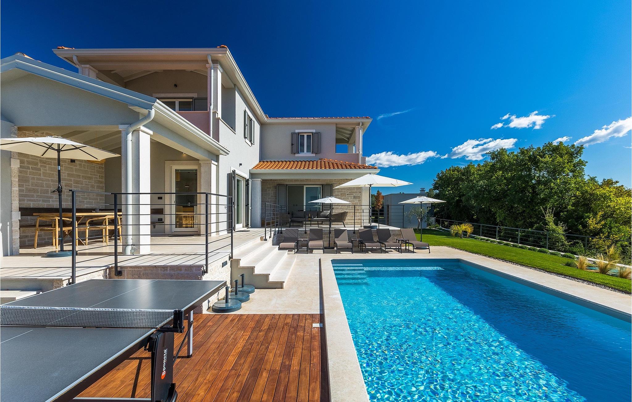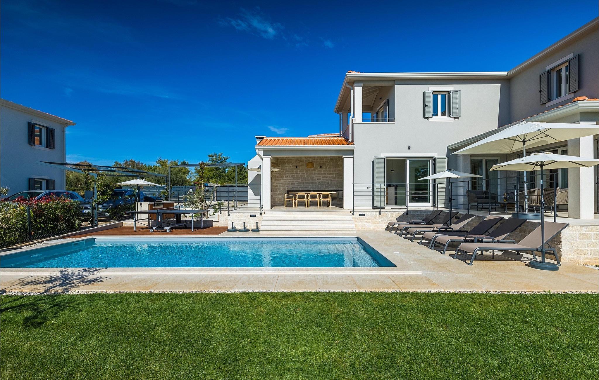 Fra første etasje kommer du ut på den store terrassen med en overbygd uteservering med et stort spisebord og åpen peis for kjøligere kvelder. Her kan du kjøle deg ned i bassenget, slappe av i den overbygde salongen eller spille et slag bordtennis. Vis frem grillferdighetene dine på gassgrillen på utekjøkkenet, som ligger rett ved siden av den overbygde uteserveringen, og nyt måltidene du har tilberedt ute i det fri. De resterende soverommene ligger i første etasje, to med dobbeltseng og overbygd balkong og ett med to enkeltsenger. Ett av dobbeltrommene har eget bad, mens de to andre rommene deler bad. Du kan også nyte den vakre havutsikten fra soverommene. Det er gulvvarme i hele første etasje og på badene for de kjøligere årstidene. Villa Regina er det beste valget for en uforglemmelig ferie med familie og venner. Bestill Villa Regina og nyt omgivelsene i PorecVilla Regina ligger i den rolige landsbyen Markovac, som hører til den sjarmerende byen Visnjan. Visnjan ligger på en høyde med spektakulær utsikt over havet. Hvis du vil ta en uforstyrret titt på stjernene, må du besøke observatoriet i Visnjan. Spaser gjennom de svingete brosteinsbelagte gatene og nyt den rike kulturarven i denne byen. På restaurantene i gamlebyen kan du dessuten nyte deilige retter tilberedt etter tradisjonelle oppskrifter. En tur til den historiske middelalderbyen Porec, bare en kort kjøretur fra villaen, anbefales på det sterkeste. Den UNESCO-listede Eufrasius-basilikaen, det historiske sentrum av Porec, mange attraktive strender og utmerkede restauranter er bare noen av grunnene til at Porec er et av de viktigste turistmålene i Istria. Hvis du foretrekker roligere steder, er byen Novigrad et must for deg. Fiskebyen fortryller alle besøkende med sine bymurer og tårn. Novigrad er også kjent for sitt rike gastronomiske tilbud. Alle sykkelelskere vil definitivt få valuta for pengene i denne villaen, da den ligger bare 30 meter fra den berømte sykkelveien Parenzana.