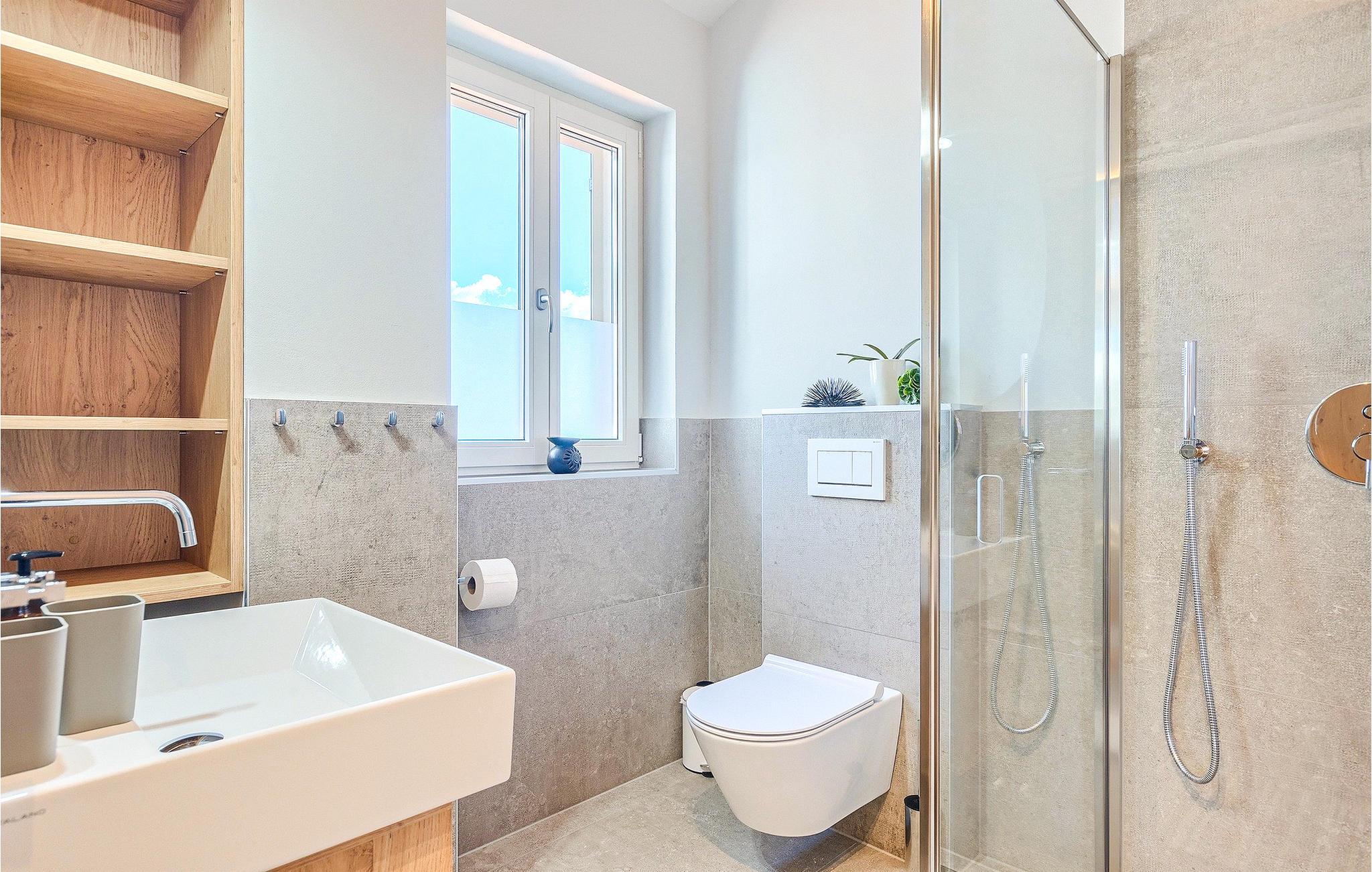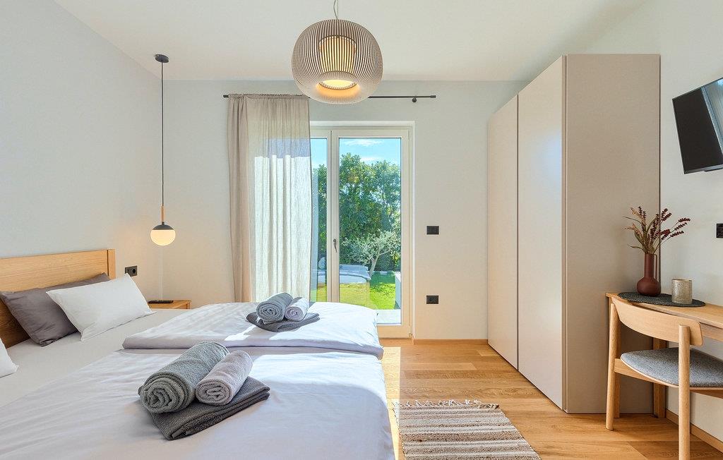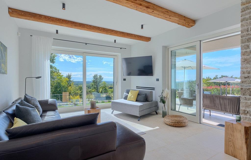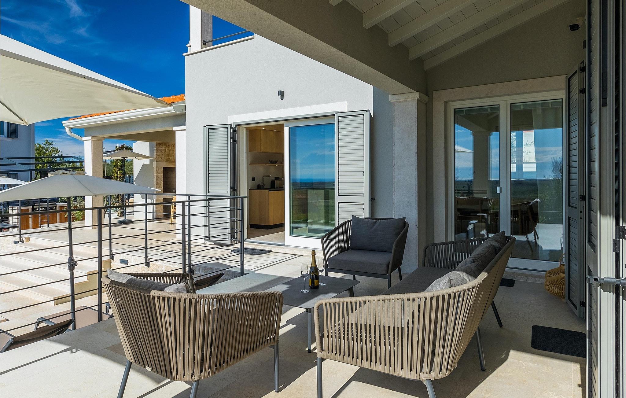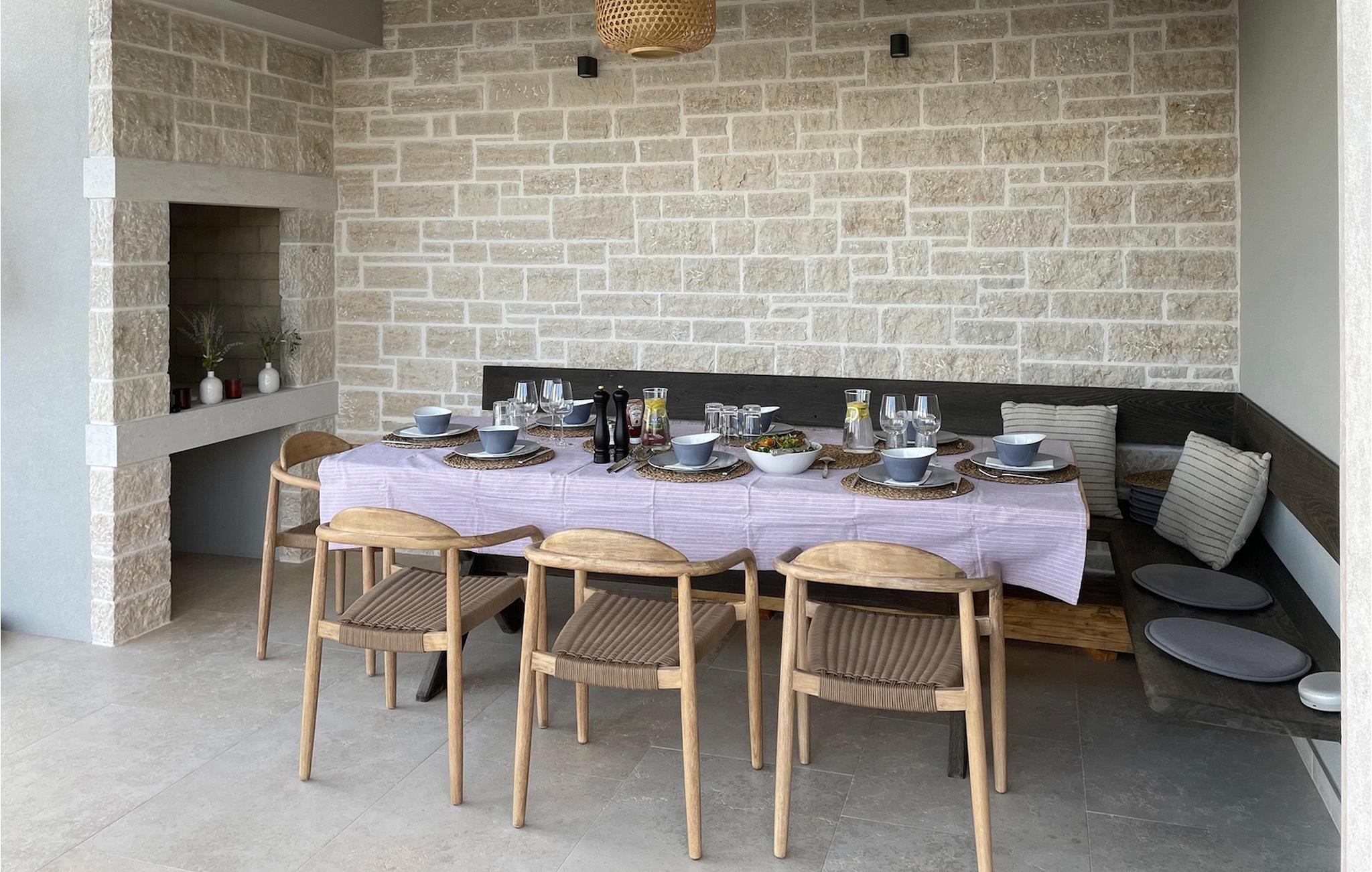 Fra første etasje kommer du ut på den store terrassen med en overbygd uteservering med et stort spisebord og åpen peis for kjøligere kvelder. Her kan du kjøle deg ned i bassenget, slappe av i den overbygde salongen eller spille et slag bordtennis. Vis frem grillferdighetene dine på gassgrillen på utekjøkkenet, som ligger rett ved siden av den overbygde uteserveringen, og nyt måltidene du har tilberedt ute i det fri. De resterende soverommene ligger i første etasje, to med dobbeltseng og overbygd balkong og ett med to enkeltsenger. Ett av dobbeltrommene har eget bad, mens de to andre rommene deler bad. Du kan også nyte den vakre havutsikten fra soverommene. Det er gulvvarme i hele første etasje og på badene for de kjøligere årstidene. Villa Regina er det beste valget for en uforglemmelig ferie med familie og venner. Bestill Villa Regina og nyt omgivelsene i PorecVilla Regina ligger i den rolige landsbyen Markovac, som hører til den sjarmerende byen Visnjan. Visnjan ligger på en høyde med spektakulær utsikt over havet. Hvis du vil ta en uforstyrret titt på stjernene, må du besøke observatoriet i Visnjan. Spaser gjennom de svingete brosteinsbelagte gatene og nyt den rike kulturarven i denne byen. På restaurantene i gamlebyen kan du dessuten nyte deilige retter tilberedt etter tradisjonelle oppskrifter. En tur til den historiske middelalderbyen Porec, bare en kort kjøretur fra villaen, anbefales på det sterkeste. Den UNESCO-listede Eufrasius-basilikaen, det historiske sentrum av Porec, mange attraktive strender og utmerkede restauranter er bare noen av grunnene til at Porec er et av de viktigste turistmålene i Istria. Hvis du foretrekker roligere steder, er byen Novigrad et must for deg. Fiskebyen fortryller alle besøkende med sine bymurer og tårn. Novigrad er også kjent for sitt rike gastronomiske tilbud. Alle sykkelelskere vil definitivt få valuta for pengene i denne villaen, da den ligger bare 30 meter fra den berømte sykkelveien Parenzana.