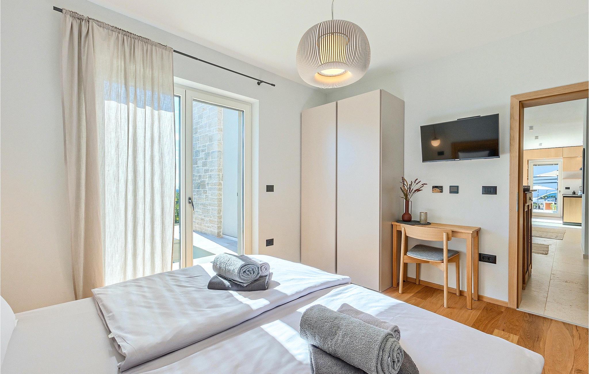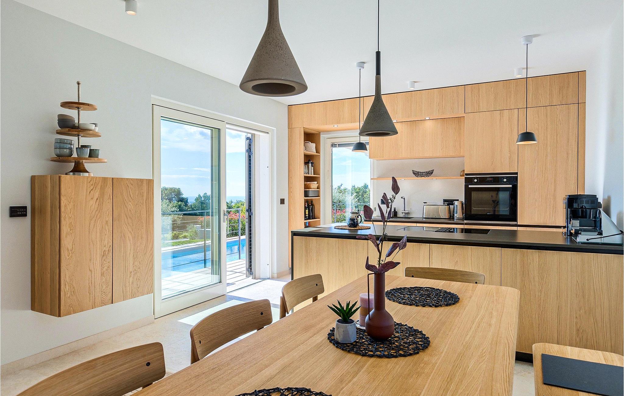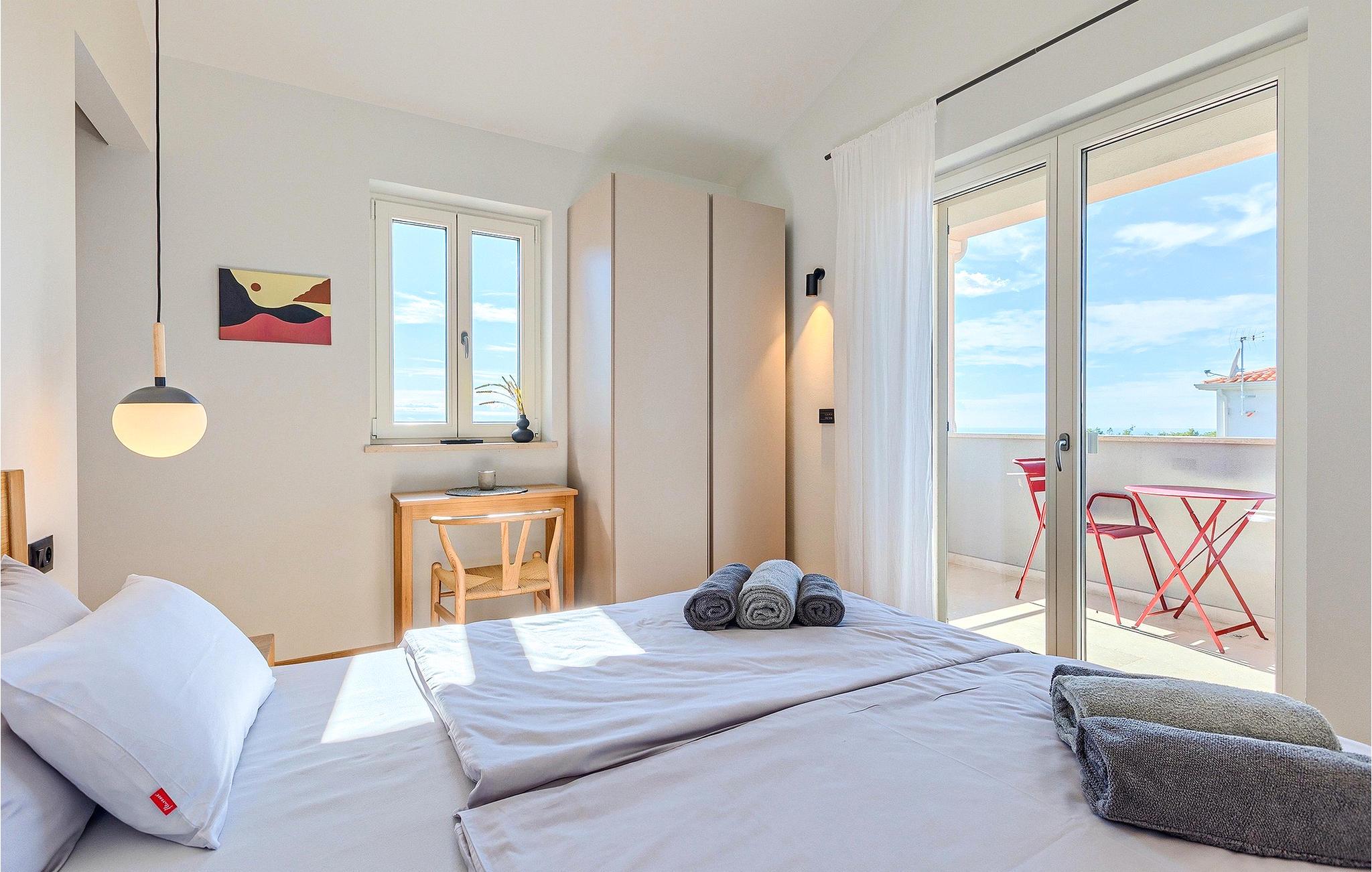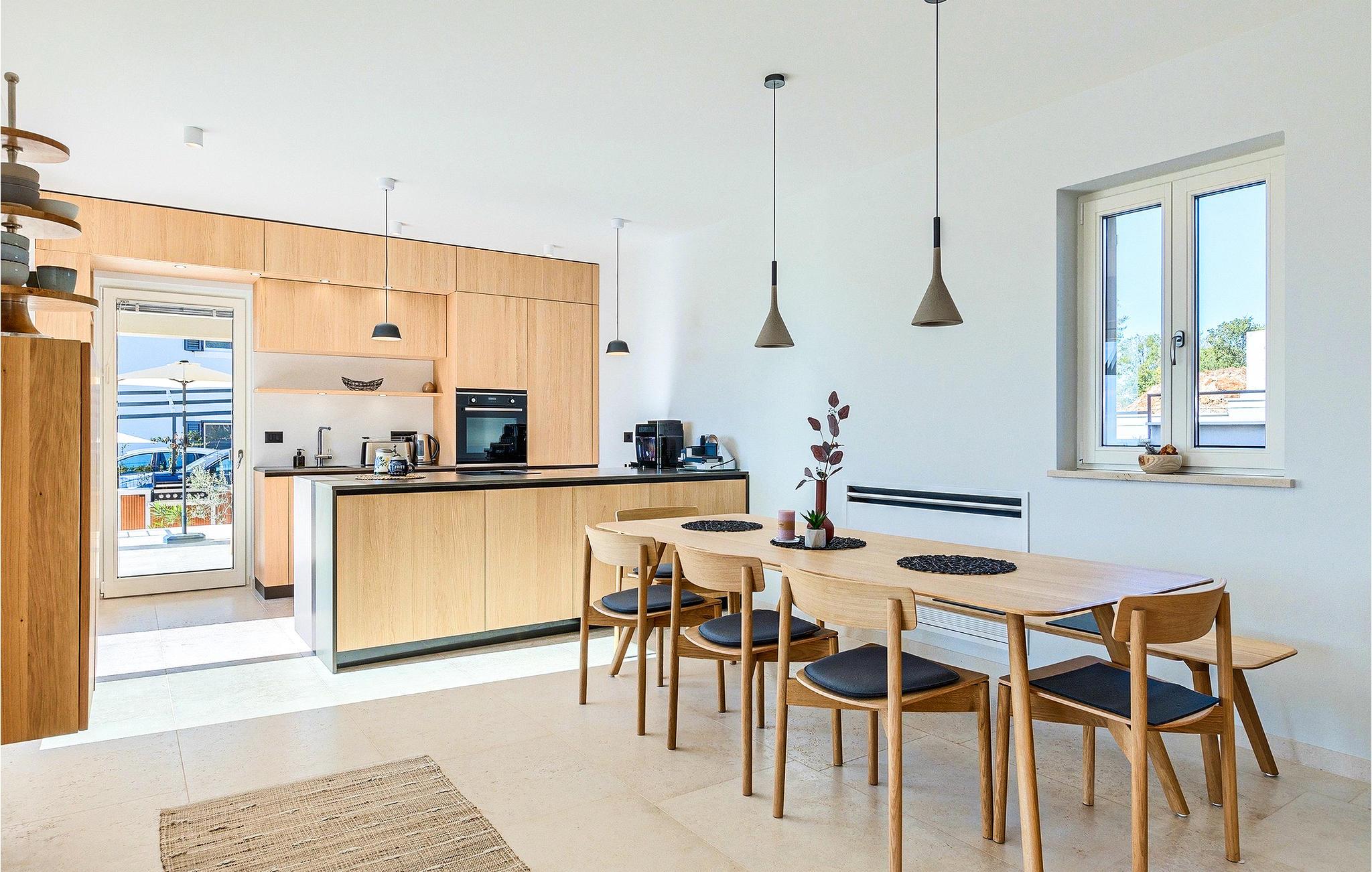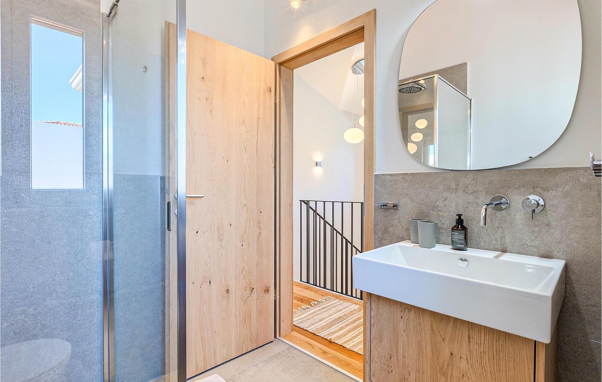 Fra første etasje kommer du ut på den store terrassen med en overbygd uteservering med et stort spisebord og åpen peis for kjøligere kvelder. Her kan du kjøle deg ned i bassenget, slappe av i den overbygde salongen eller spille et slag bordtennis. Vis frem grillferdighetene dine på gassgrillen på utekjøkkenet, som ligger rett ved siden av den overbygde uteserveringen, og nyt måltidene du har tilberedt ute i det fri. De resterende soverommene ligger i første etasje, to med dobbeltseng og overbygd balkong og ett med to enkeltsenger. Ett av dobbeltrommene har eget bad, mens de to andre rommene deler bad. Du kan også nyte den vakre havutsikten fra soverommene. Det er gulvvarme i hele første etasje og på badene for de kjøligere årstidene. Villa Regina er det beste valget for en uforglemmelig ferie med familie og venner. Bestill Villa Regina og nyt omgivelsene i PorecVilla Regina ligger i den rolige landsbyen Markovac, som hører til den sjarmerende byen Visnjan. Visnjan ligger på en høyde med spektakulær utsikt over havet. Hvis du vil ta en uforstyrret titt på stjernene, må du besøke observatoriet i Visnjan. Spaser gjennom de svingete brosteinsbelagte gatene og nyt den rike kulturarven i denne byen. På restaurantene i gamlebyen kan du dessuten nyte deilige retter tilberedt etter tradisjonelle oppskrifter. En tur til den historiske middelalderbyen Porec, bare en kort kjøretur fra villaen, anbefales på det sterkeste. Den UNESCO-listede Eufrasius-basilikaen, det historiske sentrum av Porec, mange attraktive strender og utmerkede restauranter er bare noen av grunnene til at Porec er et av de viktigste turistmålene i Istria. Hvis du foretrekker roligere steder, er byen Novigrad et must for deg. Fiskebyen fortryller alle besøkende med sine bymurer og tårn. Novigrad er også kjent for sitt rike gastronomiske tilbud. Alle sykkelelskere vil definitivt få valuta for pengene i denne villaen, da den ligger bare 30 meter fra den berømte sykkelveien Parenzana.