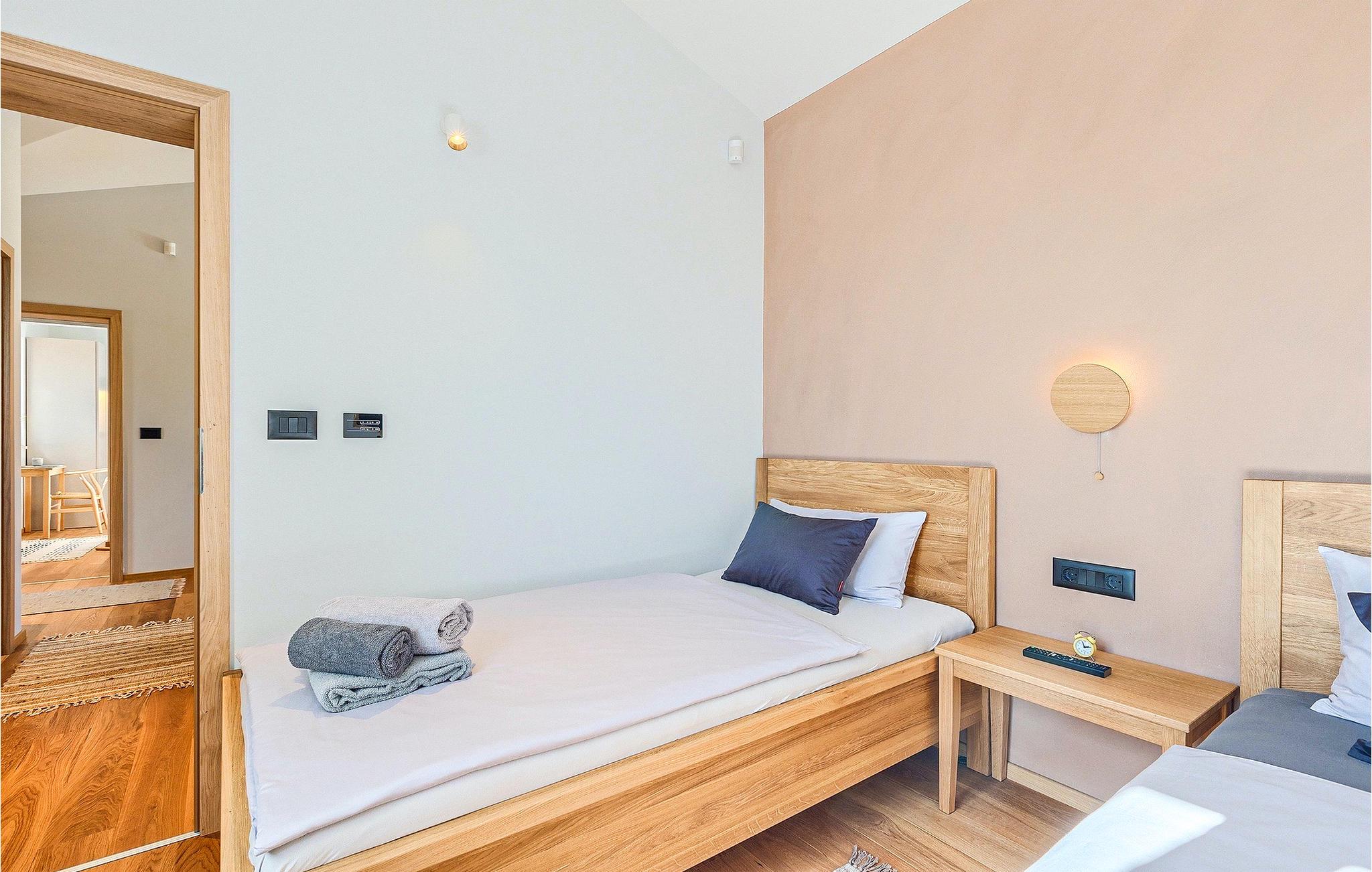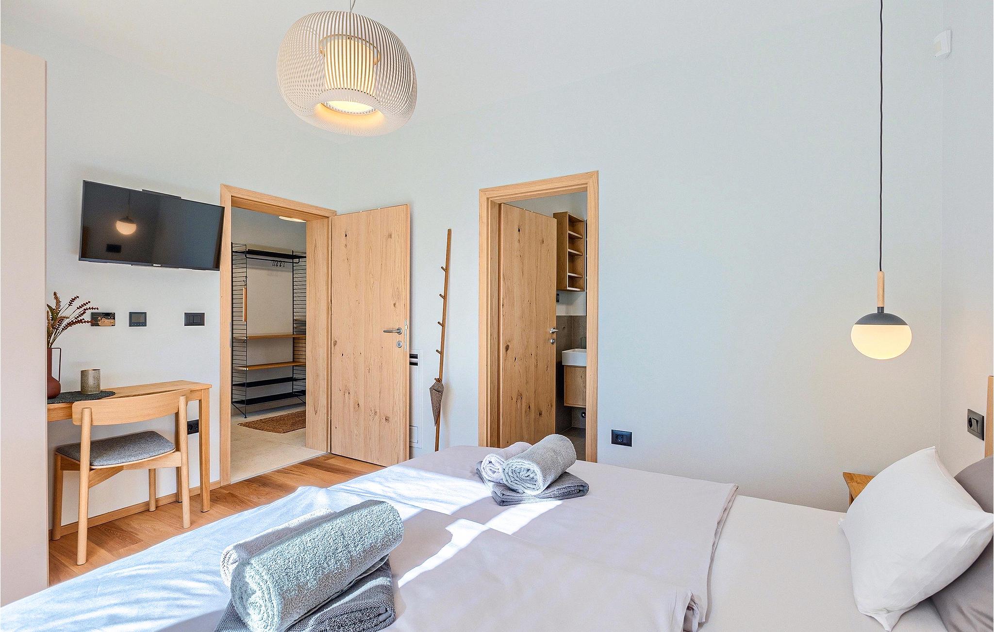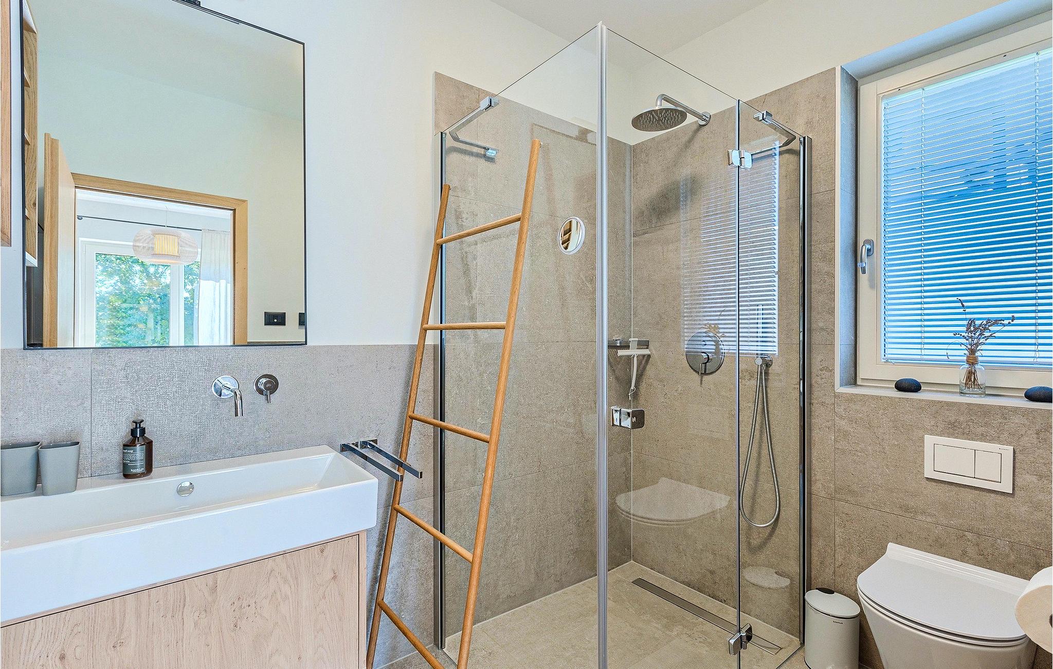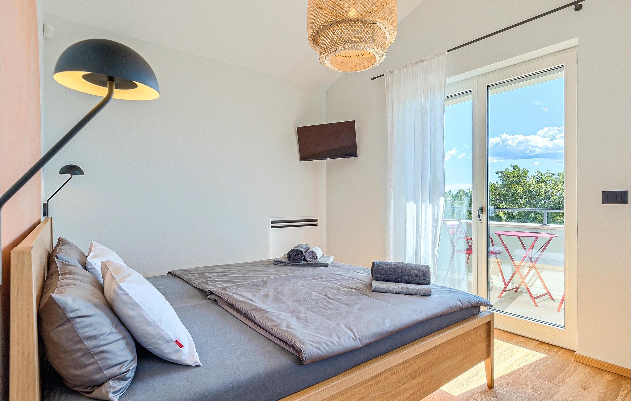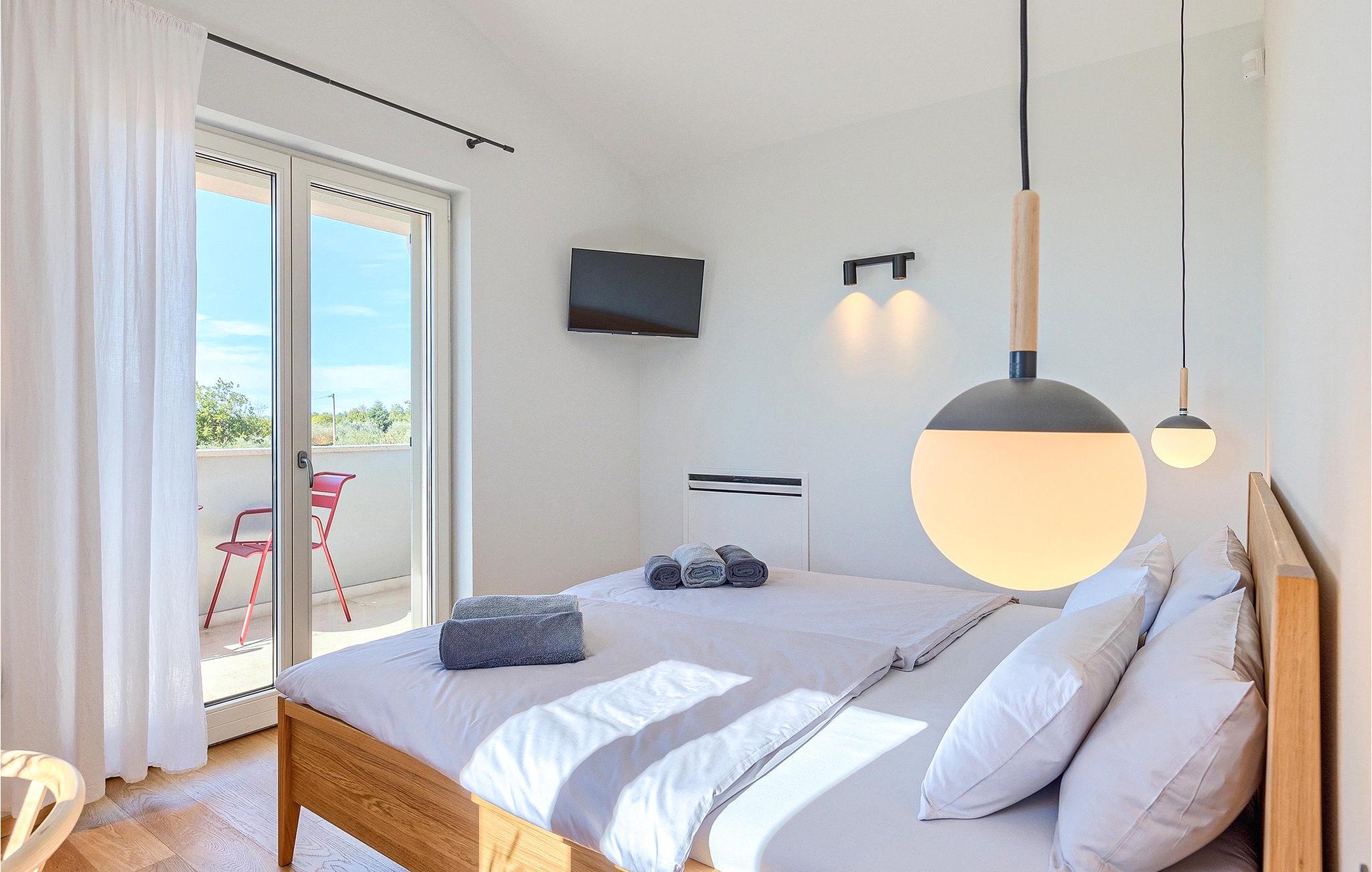 Fra første etasje kommer du ut på den store terrassen med en overbygd uteservering med et stort spisebord og åpen peis for kjøligere kvelder. Her kan du kjøle deg ned i bassenget, slappe av i den overbygde salongen eller spille et slag bordtennis. Vis frem grillferdighetene dine på gassgrillen på utekjøkkenet, som ligger rett ved siden av den overbygde uteserveringen, og nyt måltidene du har tilberedt ute i det fri. De resterende soverommene ligger i første etasje, to med dobbeltseng og overbygd balkong og ett med to enkeltsenger. Ett av dobbeltrommene har eget bad, mens de to andre rommene deler bad. Du kan også nyte den vakre havutsikten fra soverommene. Det er gulvvarme i hele første etasje og på badene for de kjøligere årstidene. Villa Regina er det beste valget for en uforglemmelig ferie med familie og venner. Bestill Villa Regina og nyt omgivelsene i PorecVilla Regina ligger i den rolige landsbyen Markovac, som hører til den sjarmerende byen Visnjan. Visnjan ligger på en høyde med spektakulær utsikt over havet. Hvis du vil ta en uforstyrret titt på stjernene, må du besøke observatoriet i Visnjan. Spaser gjennom de svingete brosteinsbelagte gatene og nyt den rike kulturarven i denne byen. På restaurantene i gamlebyen kan du dessuten nyte deilige retter tilberedt etter tradisjonelle oppskrifter. En tur til den historiske middelalderbyen Porec, bare en kort kjøretur fra villaen, anbefales på det sterkeste. Den UNESCO-listede Eufrasius-basilikaen, det historiske sentrum av Porec, mange attraktive strender og utmerkede restauranter er bare noen av grunnene til at Porec er et av de viktigste turistmålene i Istria. Hvis du foretrekker roligere steder, er byen Novigrad et must for deg. Fiskebyen fortryller alle besøkende med sine bymurer og tårn. Novigrad er også kjent for sitt rike gastronomiske tilbud. Alle sykkelelskere vil definitivt få valuta for pengene i denne villaen, da den ligger bare 30 meter fra den berømte sykkelveien Parenzana.