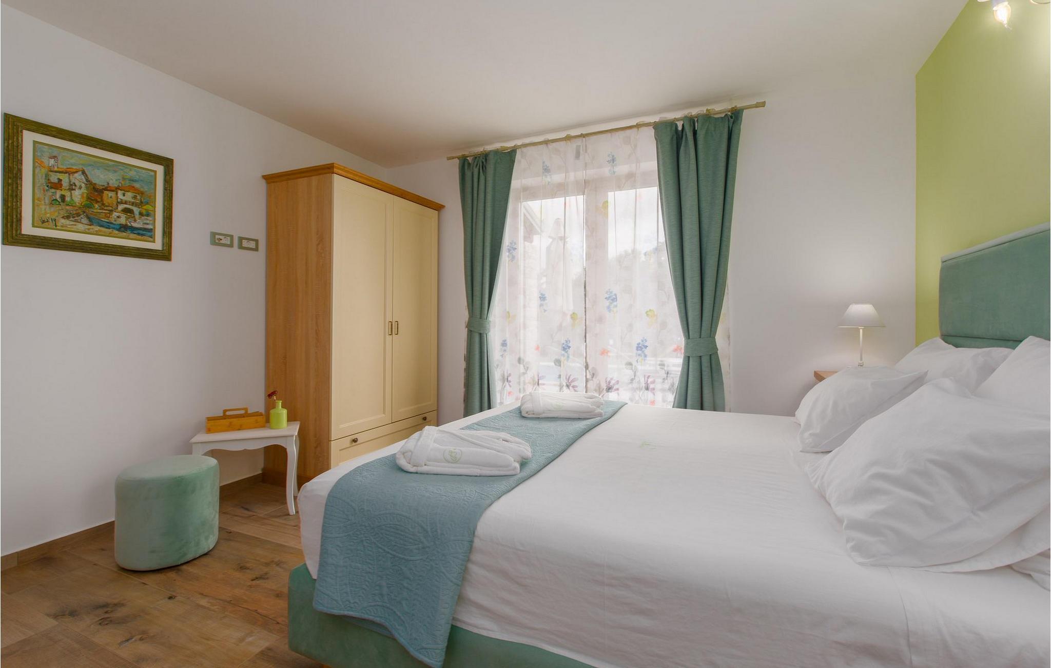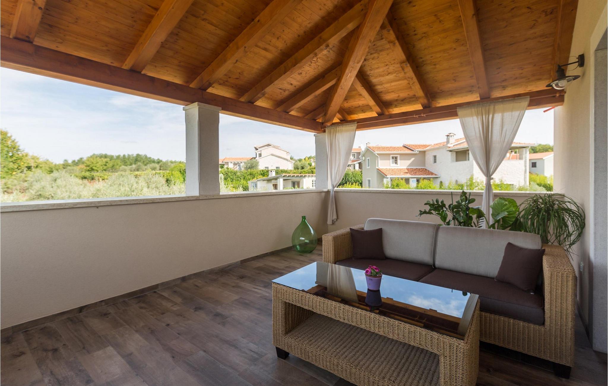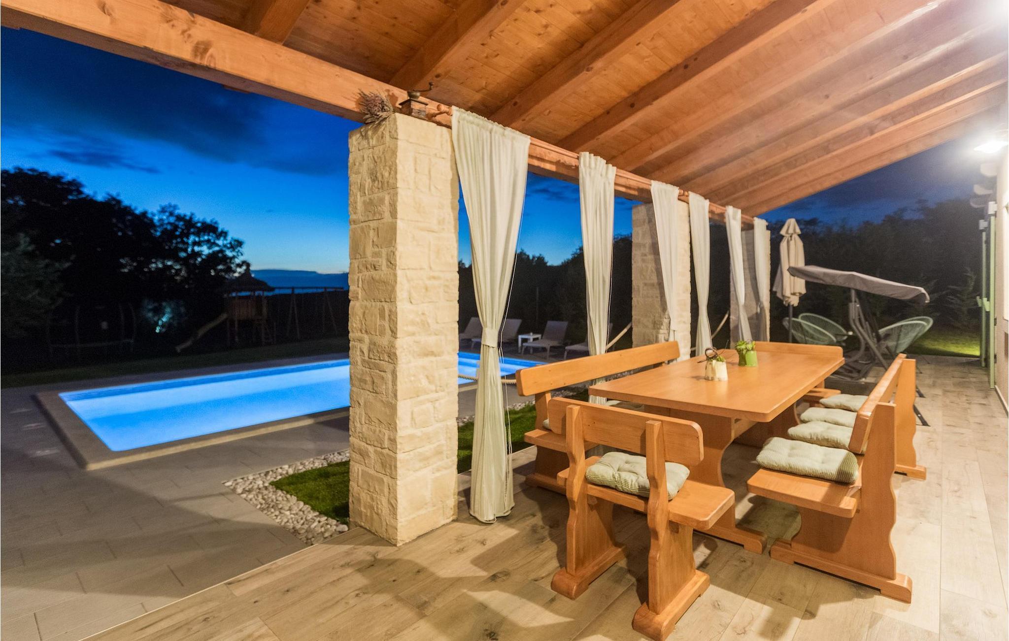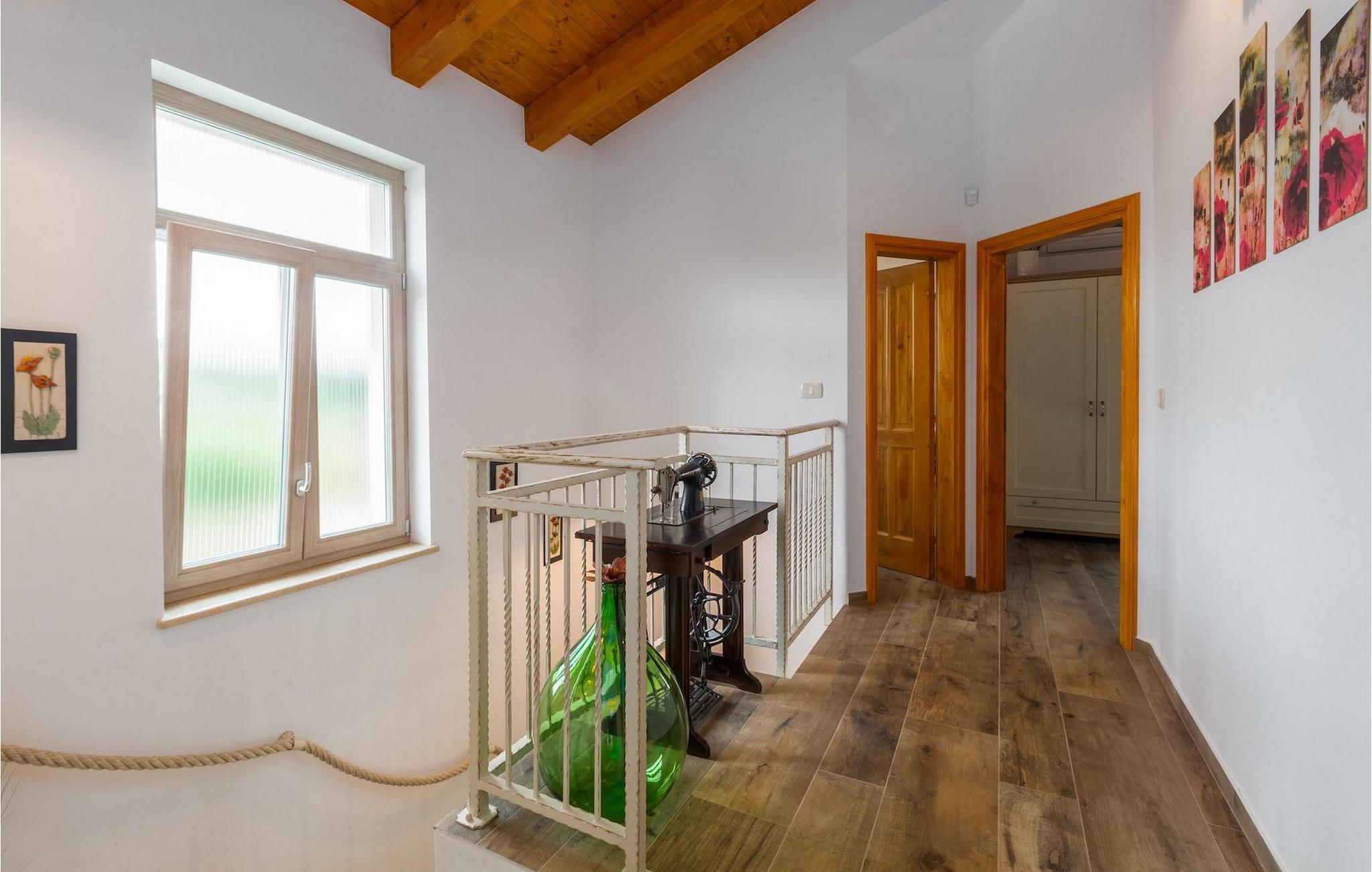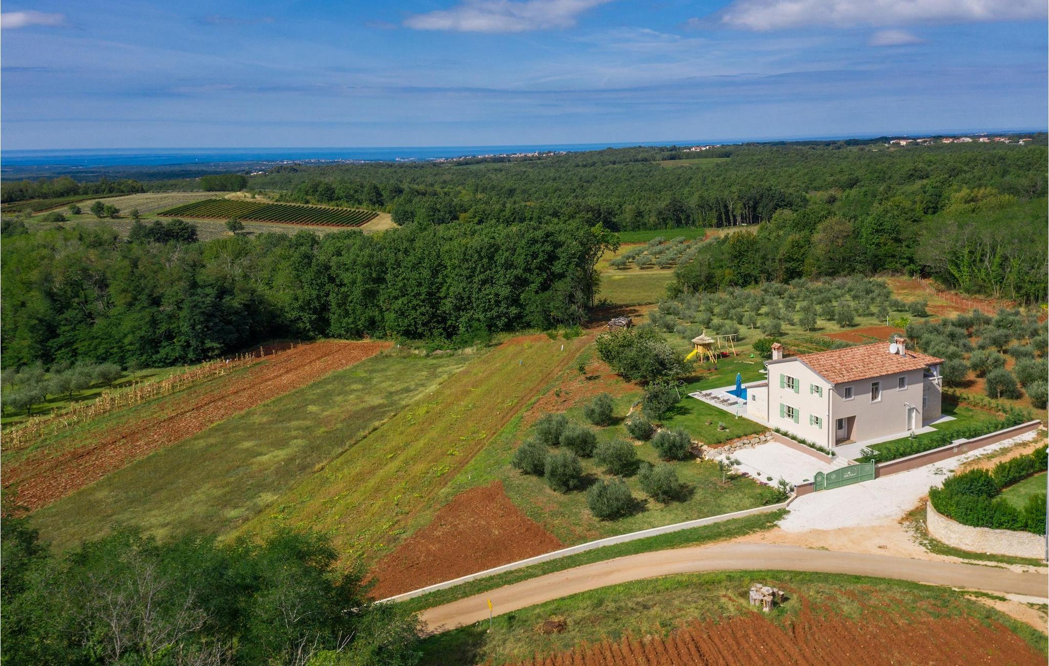 Er du på utkikk etter en koselig villa på Istria-halvøya med plass til opptil 8 personer? Da bør du definitivt vurdere Villa Stella Polaris for din kommende ferie. Når du nærmer deg villaen, vil du legge merke til de vakre, uberørte omgivelsene - perfekt for en avslappende stund borte fra byens kjas og mas. Det er også en olivenlund på eiendommen, noe som gir villaen et typisk middelhavspreg. Inne i villaen ønsker den varmt innredede første etasje deg velkommen til feriehuset. Den åpne planløsningen, som omfatter kjøkken, spisestue og stue, vil med sin gjennomtenkte innredning vekke din sans for detaljer. Det fullt utstyrte kjøkkenet er innredet i en moderne landlig stil som matcher spisestuen. I stuen kan du sette deg godt til rette i sofaen og lytte til musikk eller slå på TV-en. Det er også en peis for de kaldere dagene. I tillegg har første etasje et soverom med eget bad. I øverste etasje er det et soverom i rustikk stil. Dette har ikke bare eget bad, men også en romslig balkong med sittegruppe og vakker utsikt. Ytterligere to soverom med separate dobbeltsenger deler bad. Alle badene i villaen har dusjkabinett med regndusj. På terrassen kan du enten slå deg ned på den romantiske hagegyngen, i salonghjørnet eller i uteserveringen - sistnevnte spesielt hvis du foretrekker å nyte måltidene i frisk luft. Du kan også tilberede delikatessene dine på terrassen takket være sommerkjøkkenet med steingrill. For å nyte det hele kan du legge deg på solsengene ved siden av det forfriskende bassenget og nyte de varme solstrålene. Hagen har også noe for de minste - en egen lekeplass og en trampoline. Tilbring en avslappende ferie full av uforglemmelige øyeblikk og bestill Villa Stella Polaris nåI den vestlige delen av Istria, nær Porec, finner du den lille landsbyen Visnjan. Her kan du spasere gjennom de brosteinsbelagte gatene i gamlebyen og beundre den historiske arven. Spør gjerne lokalbefolkningen om en liten leksjon i Visnjans historie - de forteller deg gjerne legender om landsbyen sin. Når du rusler gjennom gamlebyen eller utforsker området rundt Visnjan, vil du støte på tradisjonelle vertshus der du kan smake på delikatesser fra det istriske kjøkkenet og kvalitetsviner. Noen av dem faller inn under kategorien agriturisme, noe som betyr at de kun tilbyr produkter fra egen gård - det er en helt spesiell opplevelse å spise der. Glem ikke å besøke det berømte observatoriet. La deg inspirere til å se opp på himmelen og bare nyte. Ikke langt fra Visnjan kan du også besøke Baredine-hulen og fossen Zarecki krov - du vil bli forbløffet over synet. Og selvfølgelig må du ikke gå glipp av muligheten til å besøke to av de mest populære stedene på Istrias kyst - Porec og Novigrad. Her kan du nyte en avslappende dag på stranden eller en hyggelig kveld i sentrum av byene.