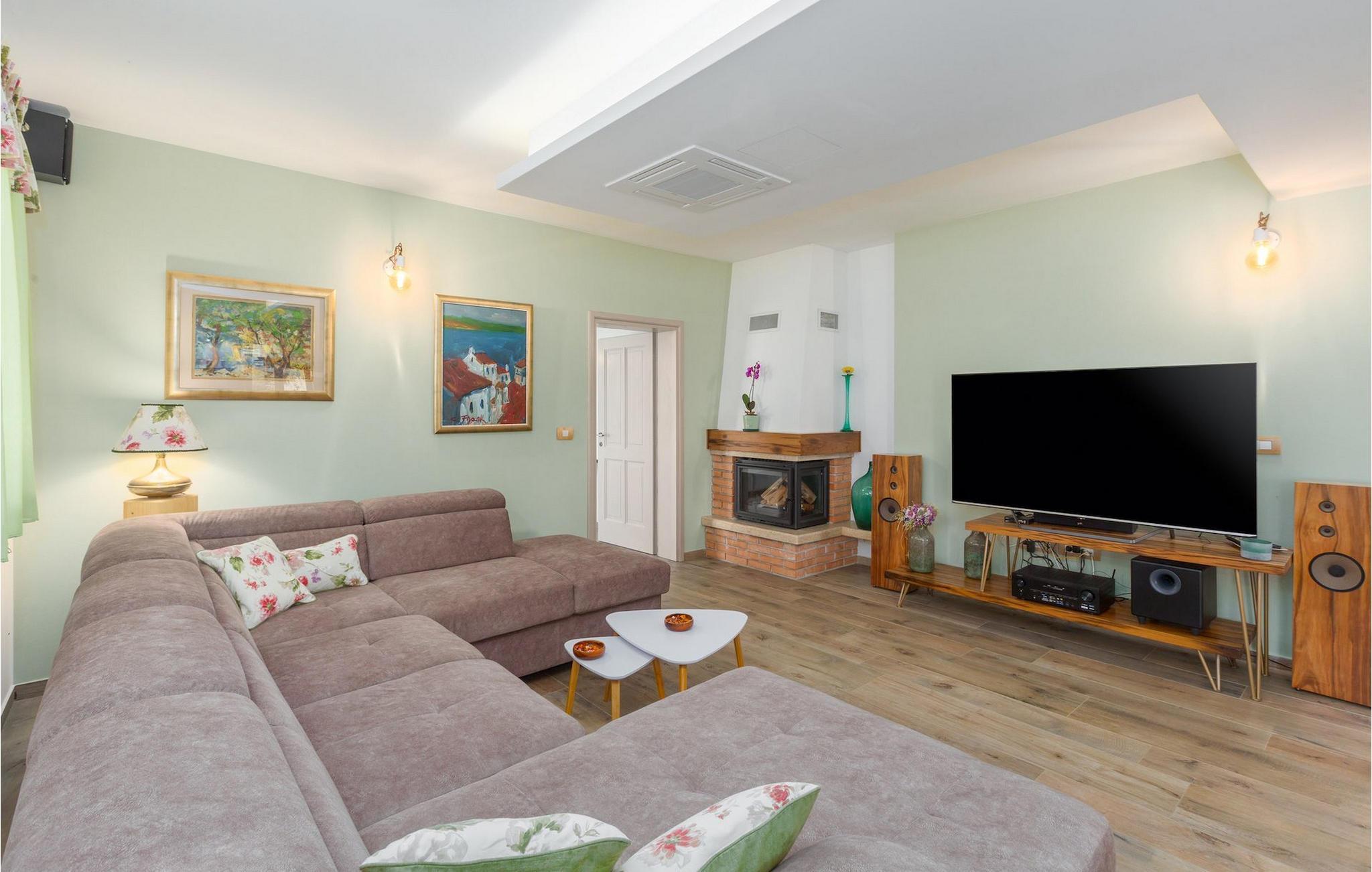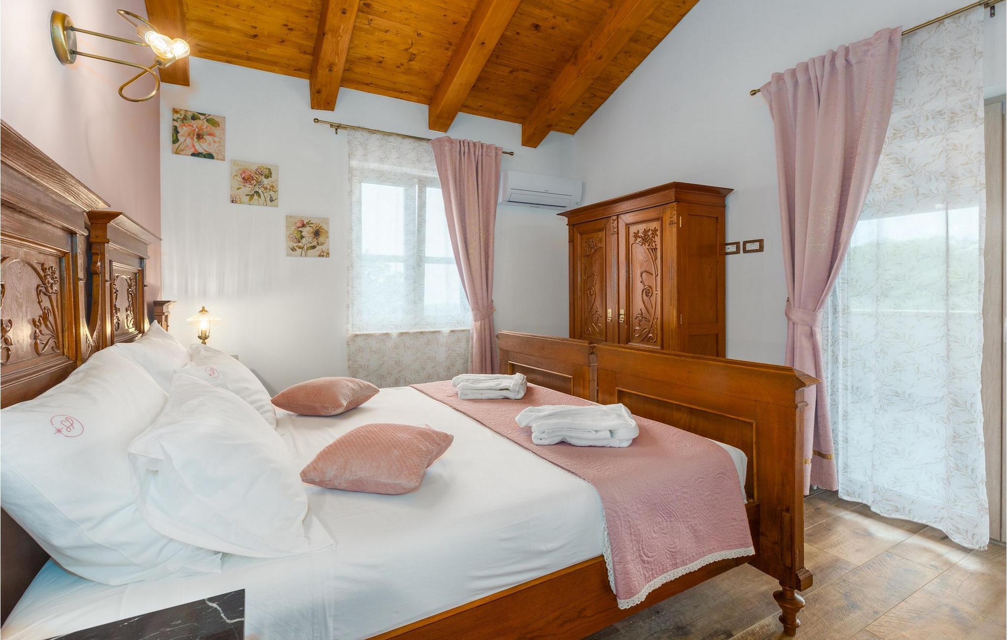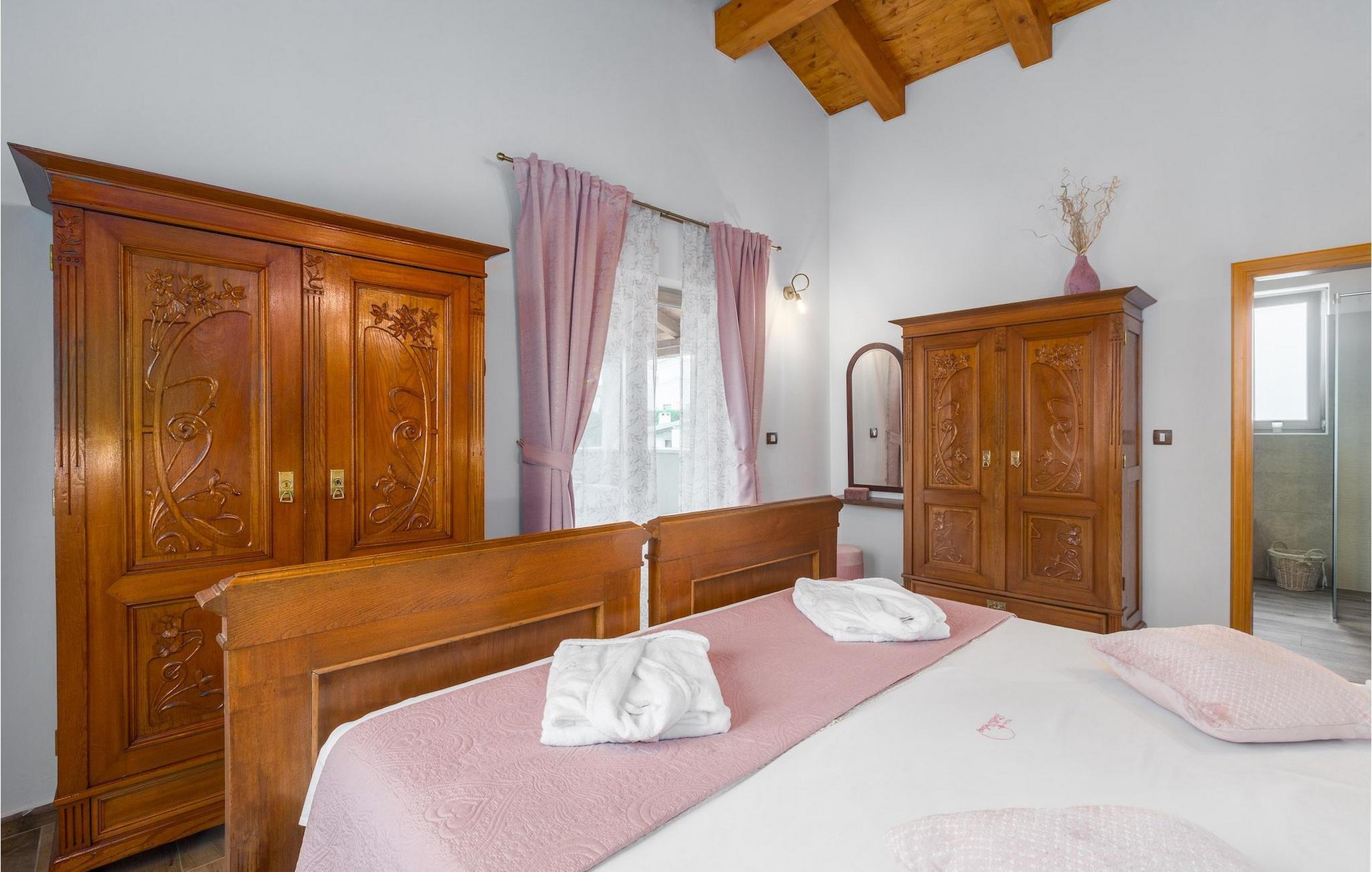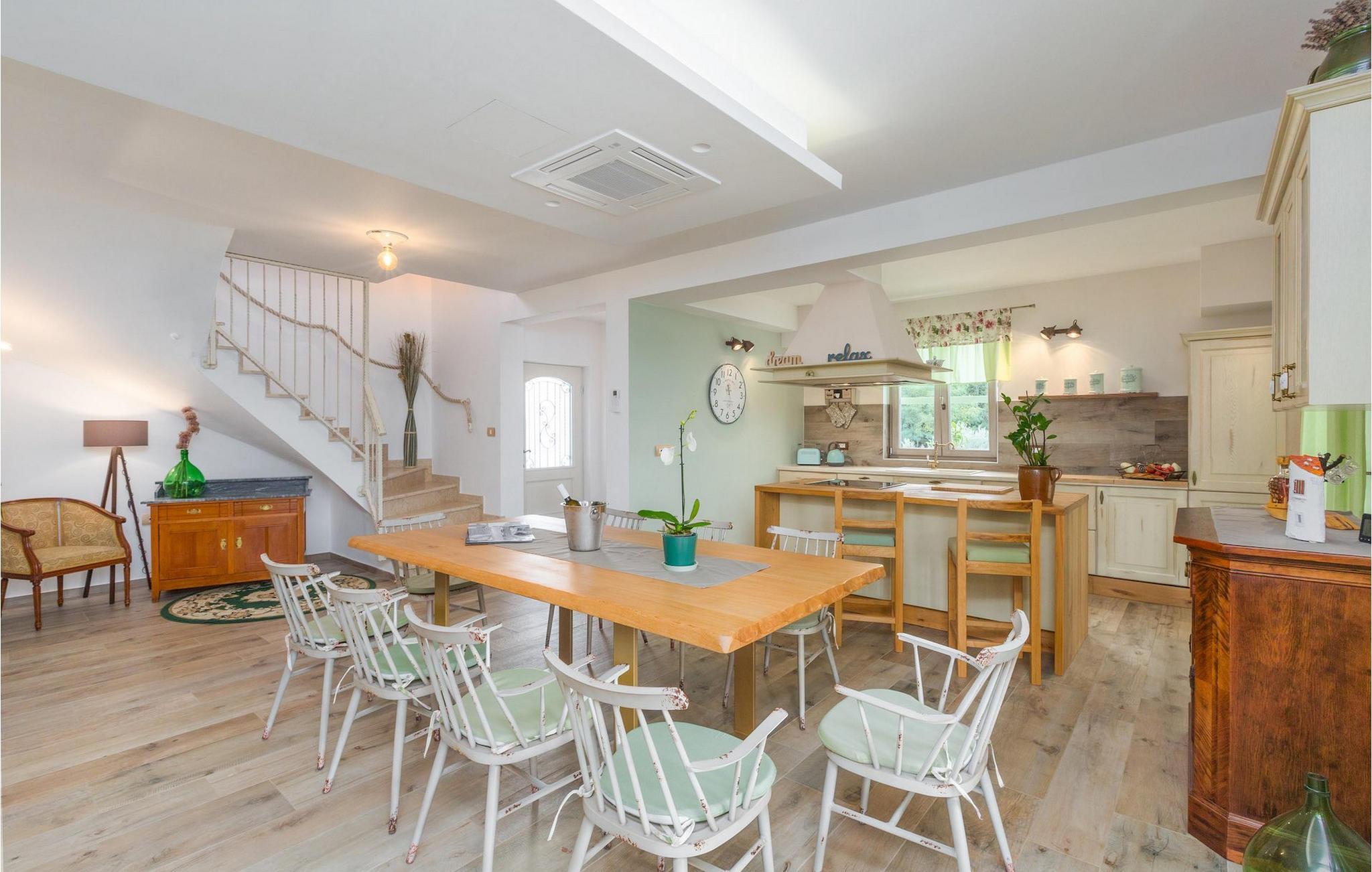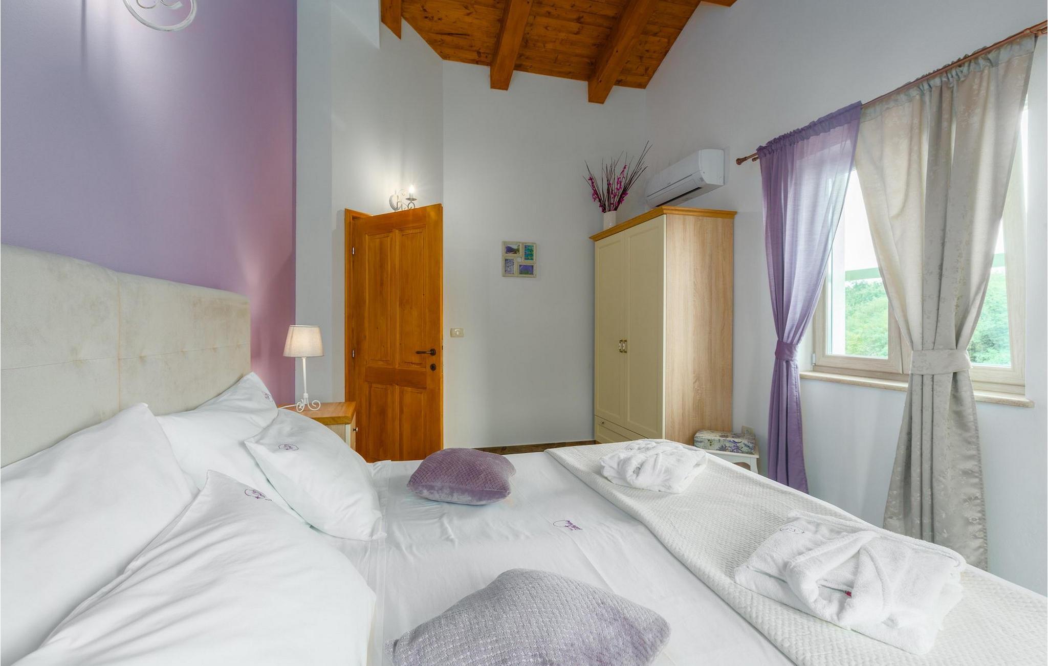 Er du på utkikk etter en koselig villa på Istria-halvøya med plass til opptil 8 personer? Da bør du definitivt vurdere Villa Stella Polaris for din kommende ferie. Når du nærmer deg villaen, vil du legge merke til de vakre, uberørte omgivelsene - perfekt for en avslappende stund borte fra byens kjas og mas. Det er også en olivenlund på eiendommen, noe som gir villaen et typisk middelhavspreg. Inne i villaen ønsker den varmt innredede første etasje deg velkommen til feriehuset. Den åpne planløsningen, som omfatter kjøkken, spisestue og stue, vil med sin gjennomtenkte innredning vekke din sans for detaljer. Det fullt utstyrte kjøkkenet er innredet i en moderne landlig stil som matcher spisestuen. I stuen kan du sette deg godt til rette i sofaen og lytte til musikk eller slå på TV-en. Det er også en peis for de kaldere dagene. I tillegg har første etasje et soverom med eget bad. I øverste etasje er det et soverom i rustikk stil. Dette har ikke bare eget bad, men også en romslig balkong med sittegruppe og vakker utsikt. Ytterligere to soverom med separate dobbeltsenger deler bad. Alle badene i villaen har dusjkabinett med regndusj. På terrassen kan du enten slå deg ned på den romantiske hagegyngen, i salonghjørnet eller i uteserveringen - sistnevnte spesielt hvis du foretrekker å nyte måltidene i frisk luft. Du kan også tilberede delikatessene dine på terrassen takket være sommerkjøkkenet med steingrill. For å nyte det hele kan du legge deg på solsengene ved siden av det forfriskende bassenget og nyte de varme solstrålene. Hagen har også noe for de minste - en egen lekeplass og en trampoline. Tilbring en avslappende ferie full av uforglemmelige øyeblikk og bestill Villa Stella Polaris nåI den vestlige delen av Istria, nær Porec, finner du den lille landsbyen Visnjan. Her kan du spasere gjennom de brosteinsbelagte gatene i gamlebyen og beundre den historiske arven. Spør gjerne lokalbefolkningen om en liten leksjon i Visnjans historie - de forteller deg gjerne legender om landsbyen sin. Når du rusler gjennom gamlebyen eller utforsker området rundt Visnjan, vil du støte på tradisjonelle vertshus der du kan smake på delikatesser fra det istriske kjøkkenet og kvalitetsviner. Noen av dem faller inn under kategorien agriturisme, noe som betyr at de kun tilbyr produkter fra egen gård - det er en helt spesiell opplevelse å spise der. Glem ikke å besøke det berømte observatoriet. La deg inspirere til å se opp på himmelen og bare nyte. Ikke langt fra Visnjan kan du også besøke Baredine-hulen og fossen Zarecki krov - du vil bli forbløffet over synet. Og selvfølgelig må du ikke gå glipp av muligheten til å besøke to av de mest populære stedene på Istrias kyst - Porec og Novigrad. Her kan du nyte en avslappende dag på stranden eller en hyggelig kveld i sentrum av byene.
