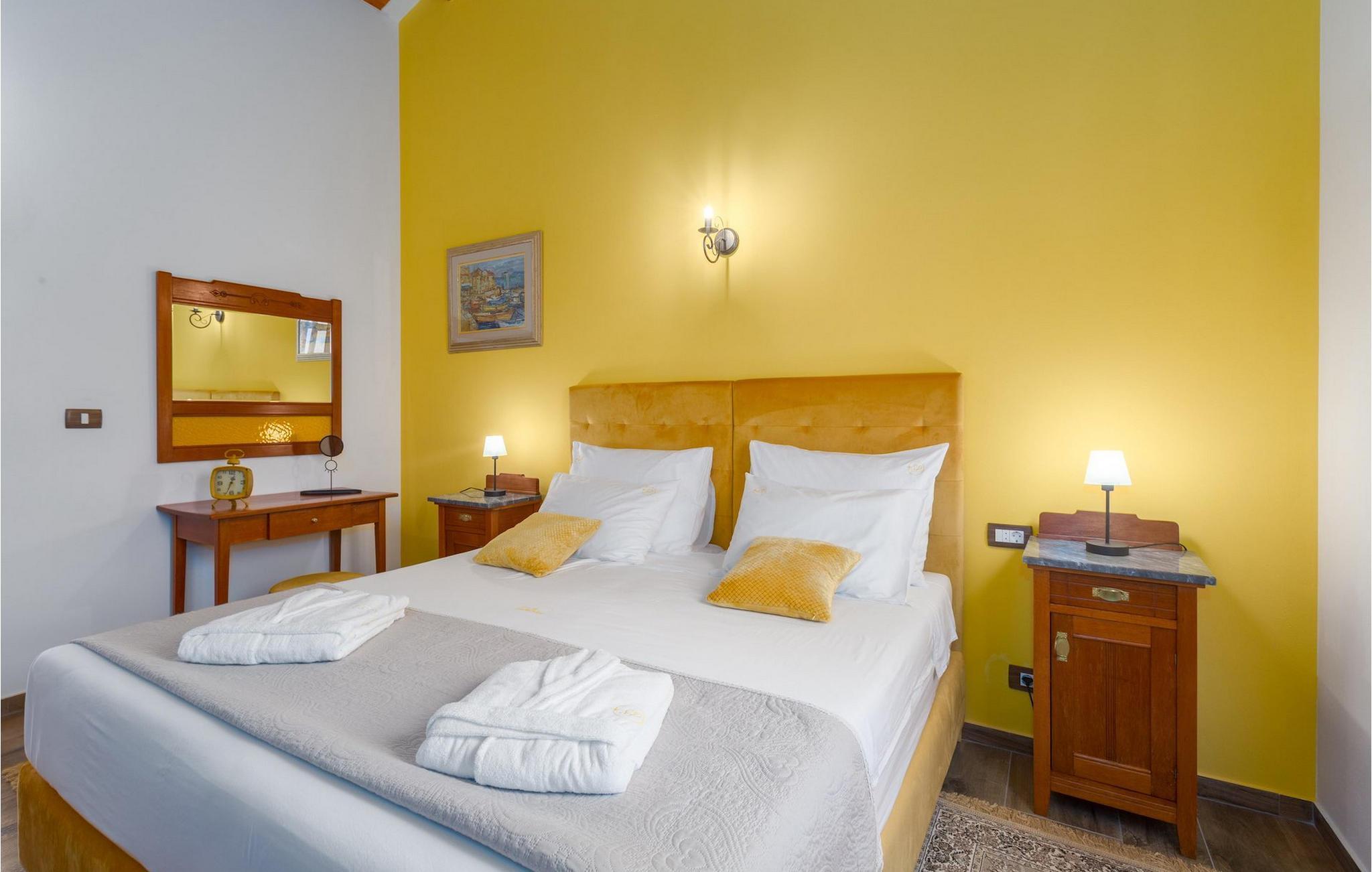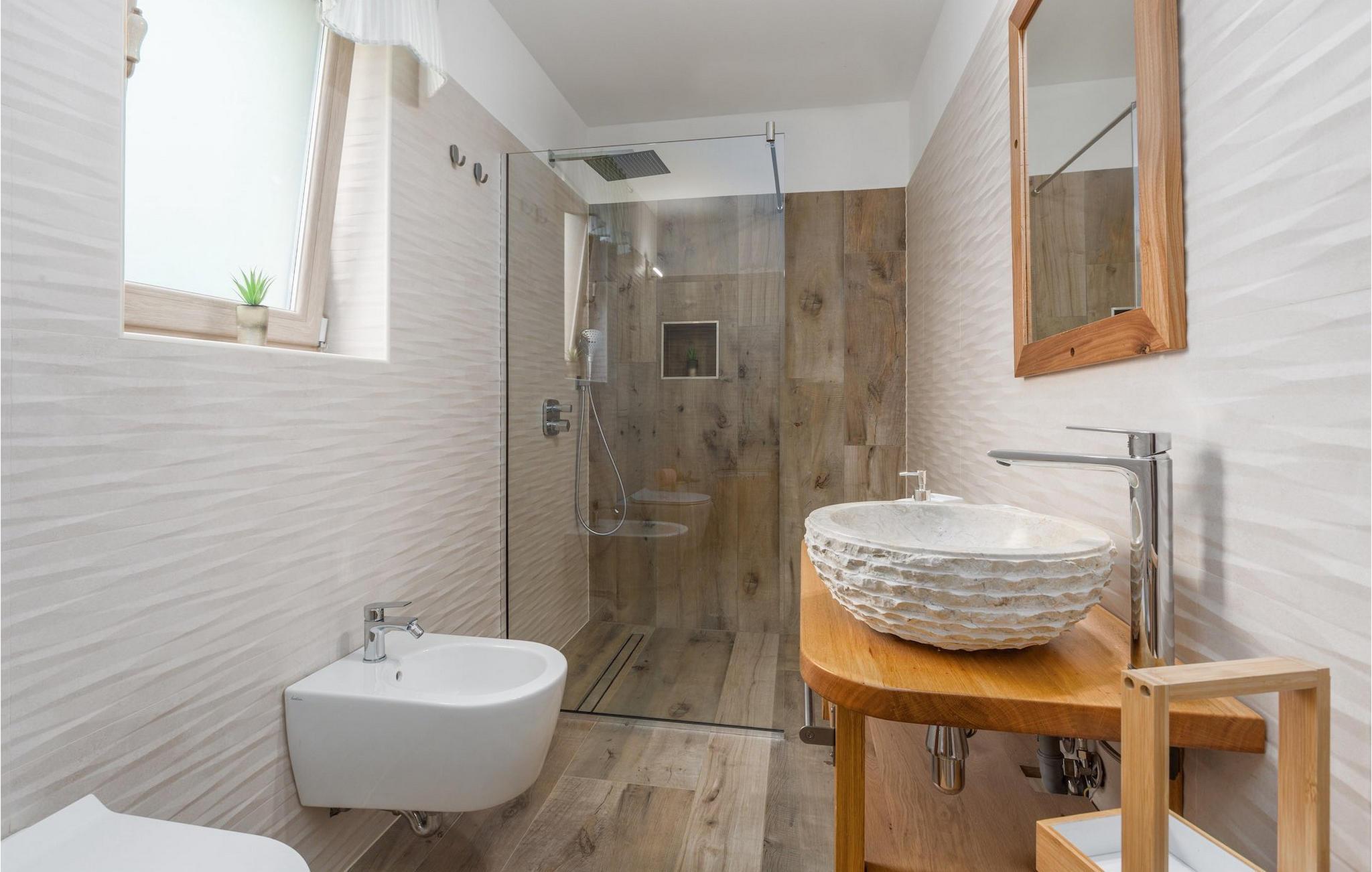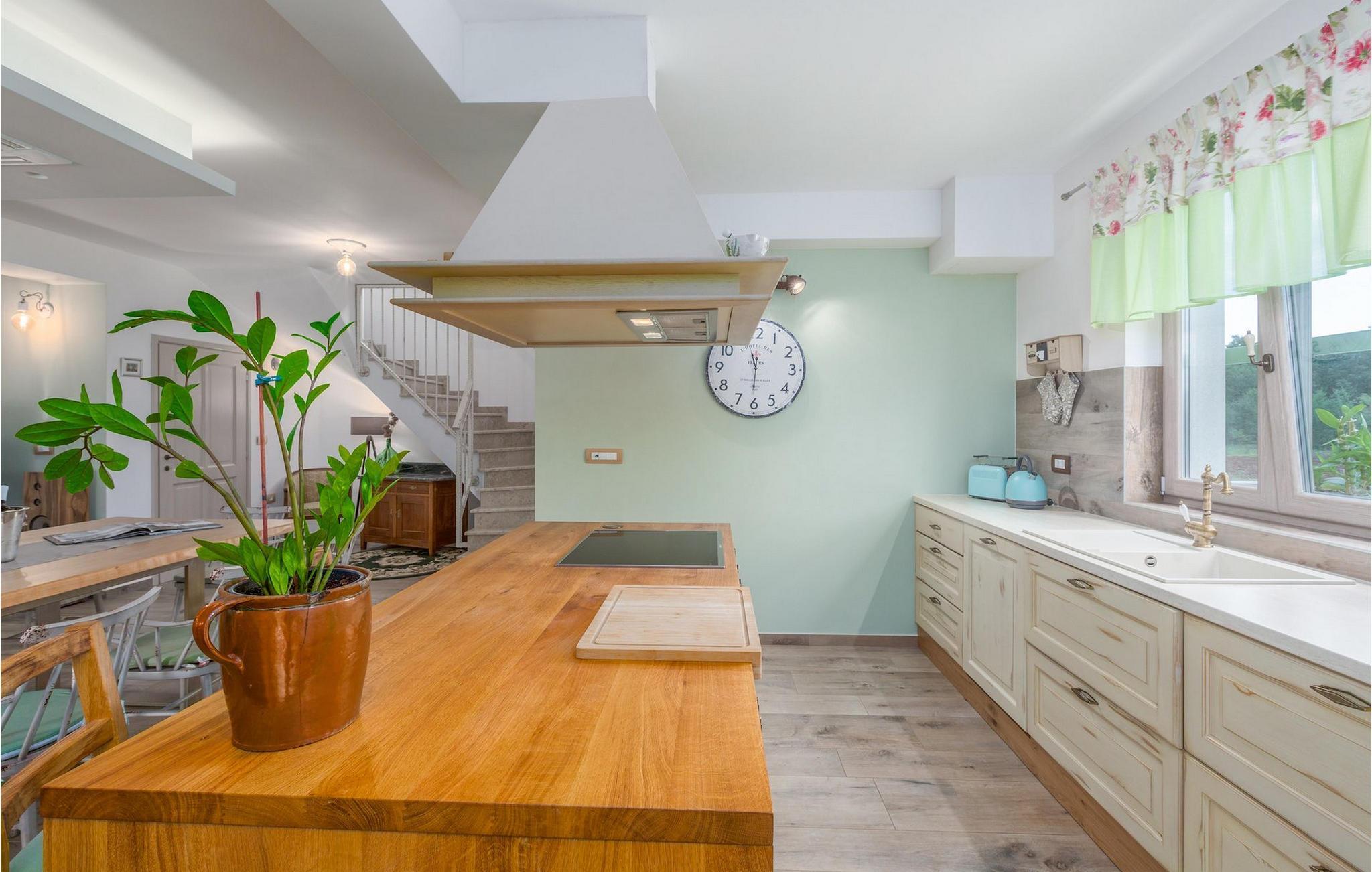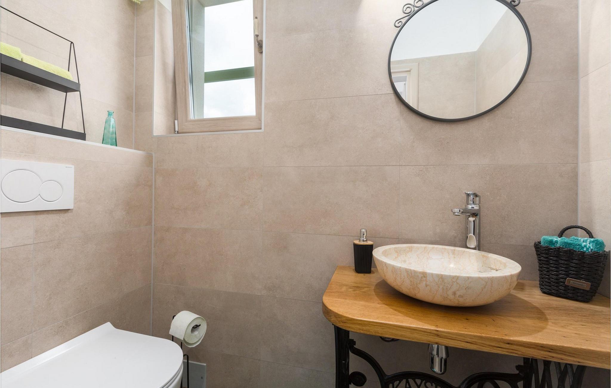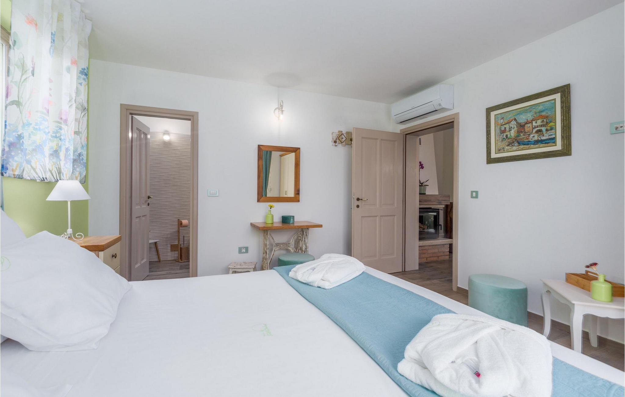 Er du på utkikk etter en koselig villa på Istria-halvøya med plass til opptil 8 personer? Da bør du definitivt vurdere Villa Stella Polaris for din kommende ferie. Når du nærmer deg villaen, vil du legge merke til de vakre, uberørte omgivelsene - perfekt for en avslappende stund borte fra byens kjas og mas. Det er også en olivenlund på eiendommen, noe som gir villaen et typisk middelhavspreg. Inne i villaen ønsker den varmt innredede første etasje deg velkommen til feriehuset. Den åpne planløsningen, som omfatter kjøkken, spisestue og stue, vil med sin gjennomtenkte innredning vekke din sans for detaljer. Det fullt utstyrte kjøkkenet er innredet i en moderne landlig stil som matcher spisestuen. I stuen kan du sette deg godt til rette i sofaen og lytte til musikk eller slå på TV-en. Det er også en peis for de kaldere dagene. I tillegg har første etasje et soverom med eget bad. I øverste etasje er det et soverom i rustikk stil. Dette har ikke bare eget bad, men også en romslig balkong med sittegruppe og vakker utsikt. Ytterligere to soverom med separate dobbeltsenger deler bad. Alle badene i villaen har dusjkabinett med regndusj. På terrassen kan du enten slå deg ned på den romantiske hagegyngen, i salonghjørnet eller i uteserveringen - sistnevnte spesielt hvis du foretrekker å nyte måltidene i frisk luft. Du kan også tilberede delikatessene dine på terrassen takket være sommerkjøkkenet med steingrill. For å nyte det hele kan du legge deg på solsengene ved siden av det forfriskende bassenget og nyte de varme solstrålene. Hagen har også noe for de minste - en egen lekeplass og en trampoline. Tilbring en avslappende ferie full av uforglemmelige øyeblikk og bestill Villa Stella Polaris nåI den vestlige delen av Istria, nær Porec, finner du den lille landsbyen Visnjan. Her kan du spasere gjennom de brosteinsbelagte gatene i gamlebyen og beundre den historiske arven. Spør gjerne lokalbefolkningen om en liten leksjon i Visnjans historie - de forteller deg gjerne legender om landsbyen sin. Når du rusler gjennom gamlebyen eller utforsker området rundt Visnjan, vil du støte på tradisjonelle vertshus der du kan smake på delikatesser fra det istriske kjøkkenet og kvalitetsviner. Noen av dem faller inn under kategorien agriturisme, noe som betyr at de kun tilbyr produkter fra egen gård - det er en helt spesiell opplevelse å spise der. Glem ikke å besøke det berømte observatoriet. La deg inspirere til å se opp på himmelen og bare nyte. Ikke langt fra Visnjan kan du også besøke Baredine-hulen og fossen Zarecki krov - du vil bli forbløffet over synet. Og selvfølgelig må du ikke gå glipp av muligheten til å besøke to av de mest populære stedene på Istrias kyst - Porec og Novigrad. Her kan du nyte en avslappende dag på stranden eller en hyggelig kveld i sentrum av byene.