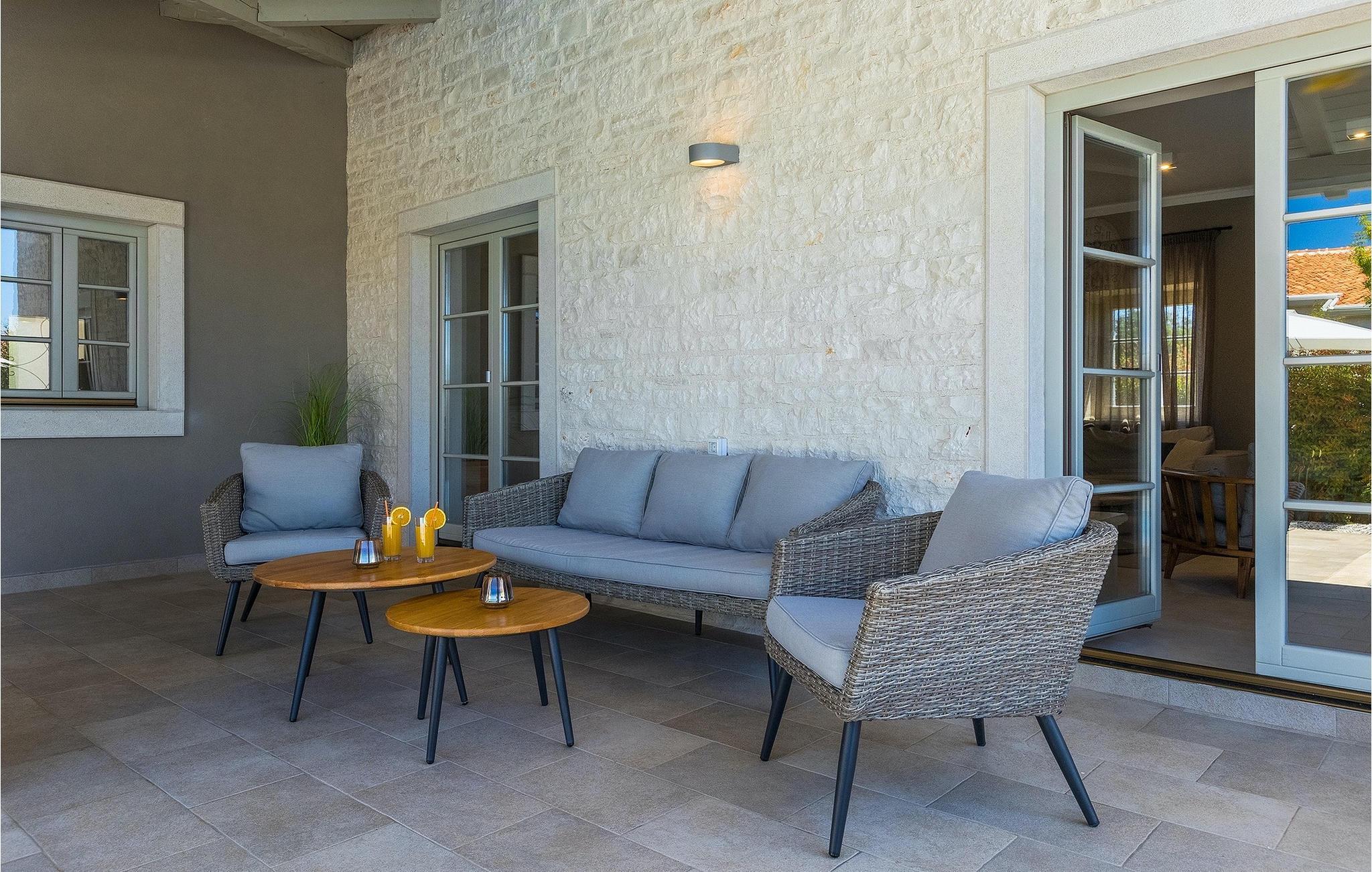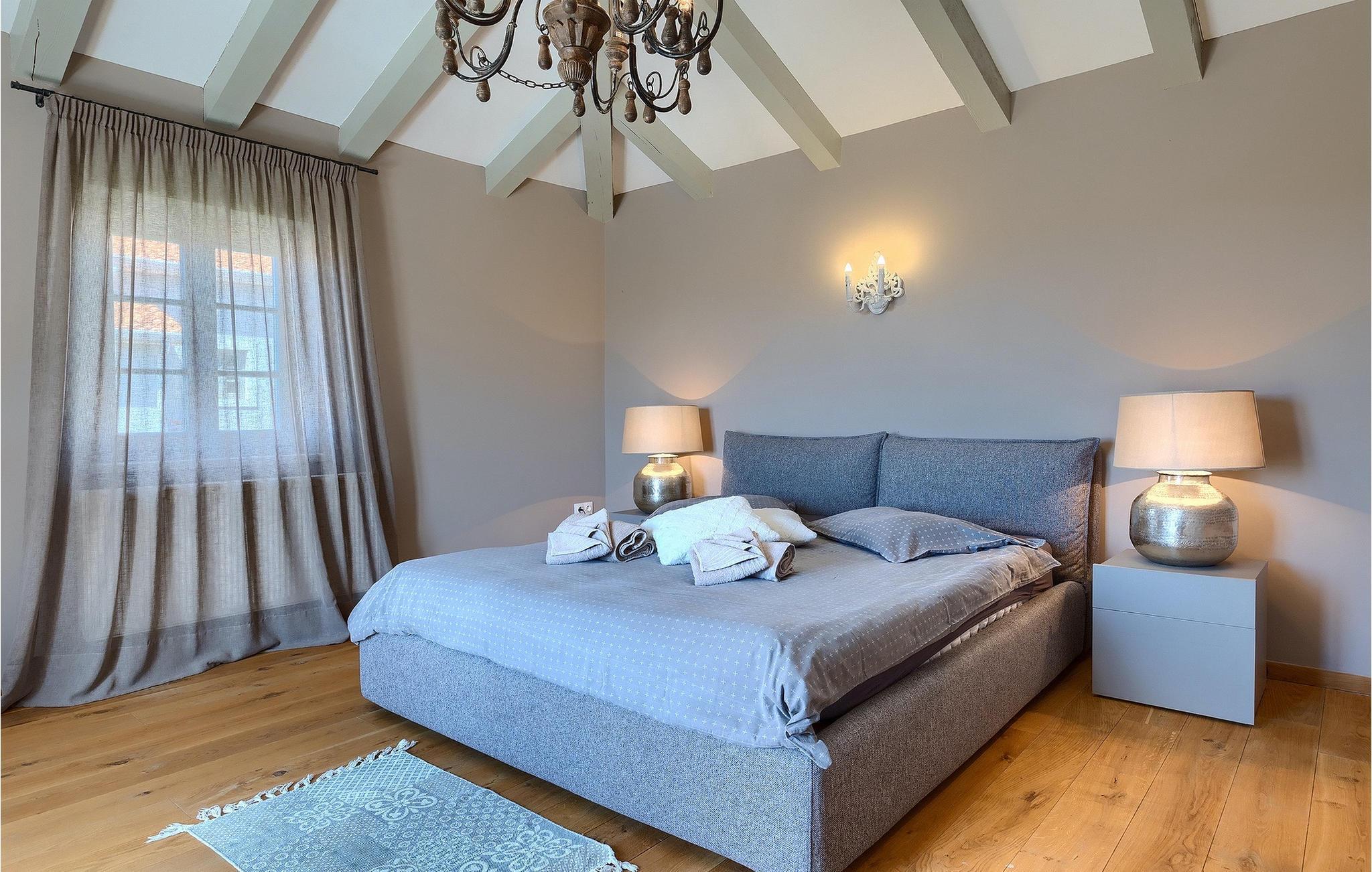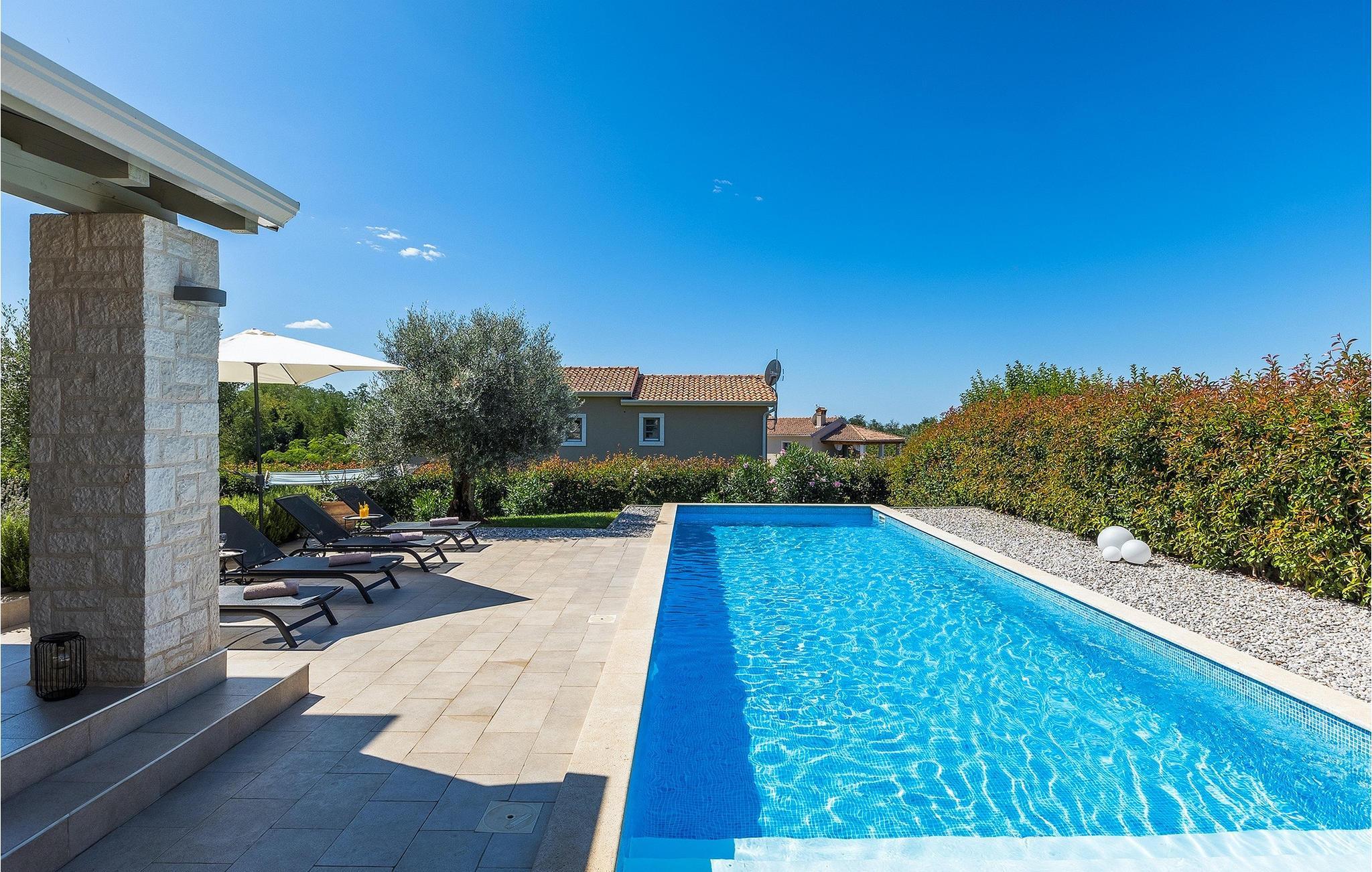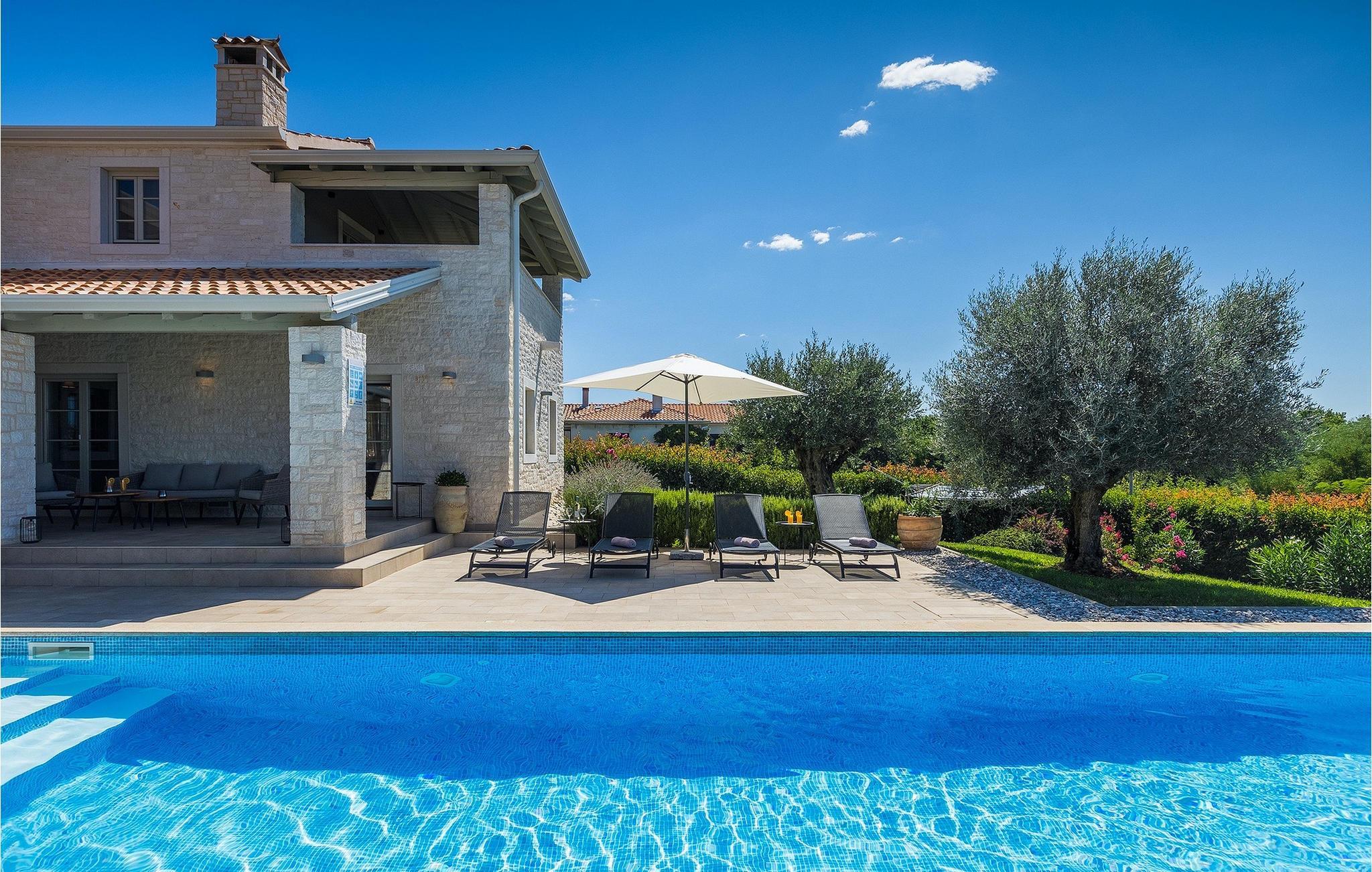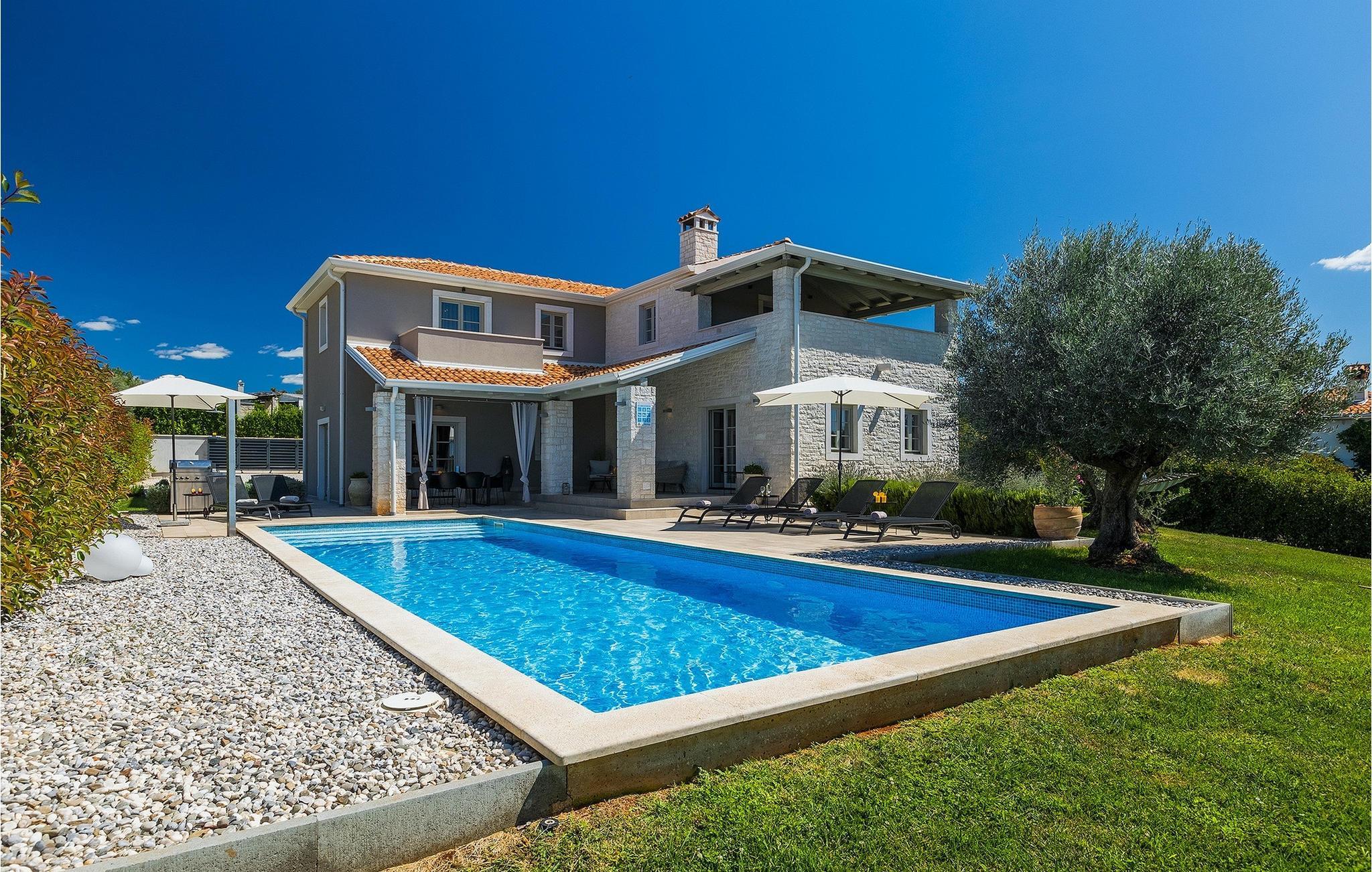 Leter du etter det perfekte overnattingsstedet for din neste ferie i nærheten av Pore? Da bør du vurdere den fantastiske Villa Pietra. Så snart du ankommer eiendommen, som er omgitt av grøntområder, vil du bli fylt av en positiv følelse som vil fortsette i hele villaen. Den romslige stuen er innredet i lyse farger og er perfekt for koselige stunder inne. I tillegg gir en peis et ekstra romantisk preg på kaldere dager. Kjøkkenet og spisestuen i villaen er utformet som en åpen planløsning. Blikkfanget i dette rommet, som kombinerer kjøkkenets moderne stil med rustikke elementer, er uten tvil det massive spisebordet i tre. I første etasje finner du også ett av de tre dobbeltrommene, som har direkte utgang til hagen. De to andre dobbeltrommene ligger i øverste etasje og har balkonger hvorfra du kan nyte utsikten over havet. I tillegg til dobbeltrommene har villaen et soverom med to enkeltsenger i øverste etasje. Alle soverommene i villaen har eget bad. Selv om villaen er vakker på innsiden, betyr ikke det at den ikke har like mye å by på på utsiden. Det store bassenget innbyr til forfriskninger og noen svømmeturer. Etterpå kan du slappe av på solsengene rett ved bassenget. Du kan også benytte anledningen til å slappe av i det skyggefulle loungeområdet på terrassen eller i hengekøyen mellom to oliventrær. Sist, men ikke minst, kan du tilberede deilige istriske retter og nyte dem i uteserveringen, ettersom det er en grill utenfor. Tilbring en uforglemmelig tid i Istria og bestill Villa Pietra til din neste ferie.i Vinjan, en landsby i nærheten av Pore, kan du spasere gjennom gamlebyen og se den historiske arven der. Lokalbefolkningen forteller deg gjerne legender om landsbyen sin - det er bare å spørre. Rundt Vinjan finner du tradisjonelle tavernaer hvor du absolutt bør prøve lokale spesialiteter fra det istriske kjøkkenet. Noen tavernaer tilbyr kun sine egne gårdsprodukter, noe som plasserer dem i kategorien agriturisme. Ikke nøl med å besøke to spesielt populære steder på Istrias kyst - Pore og Novigrad. Begge stedene innbyr til avslapping på stranden eller en koselig kveld i bykjernen.