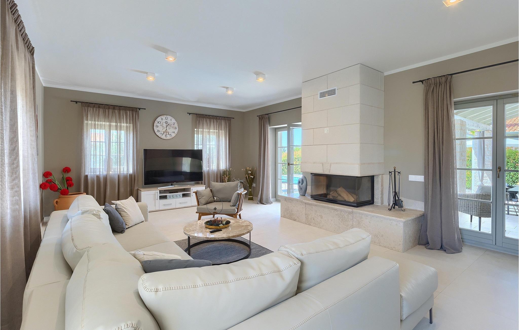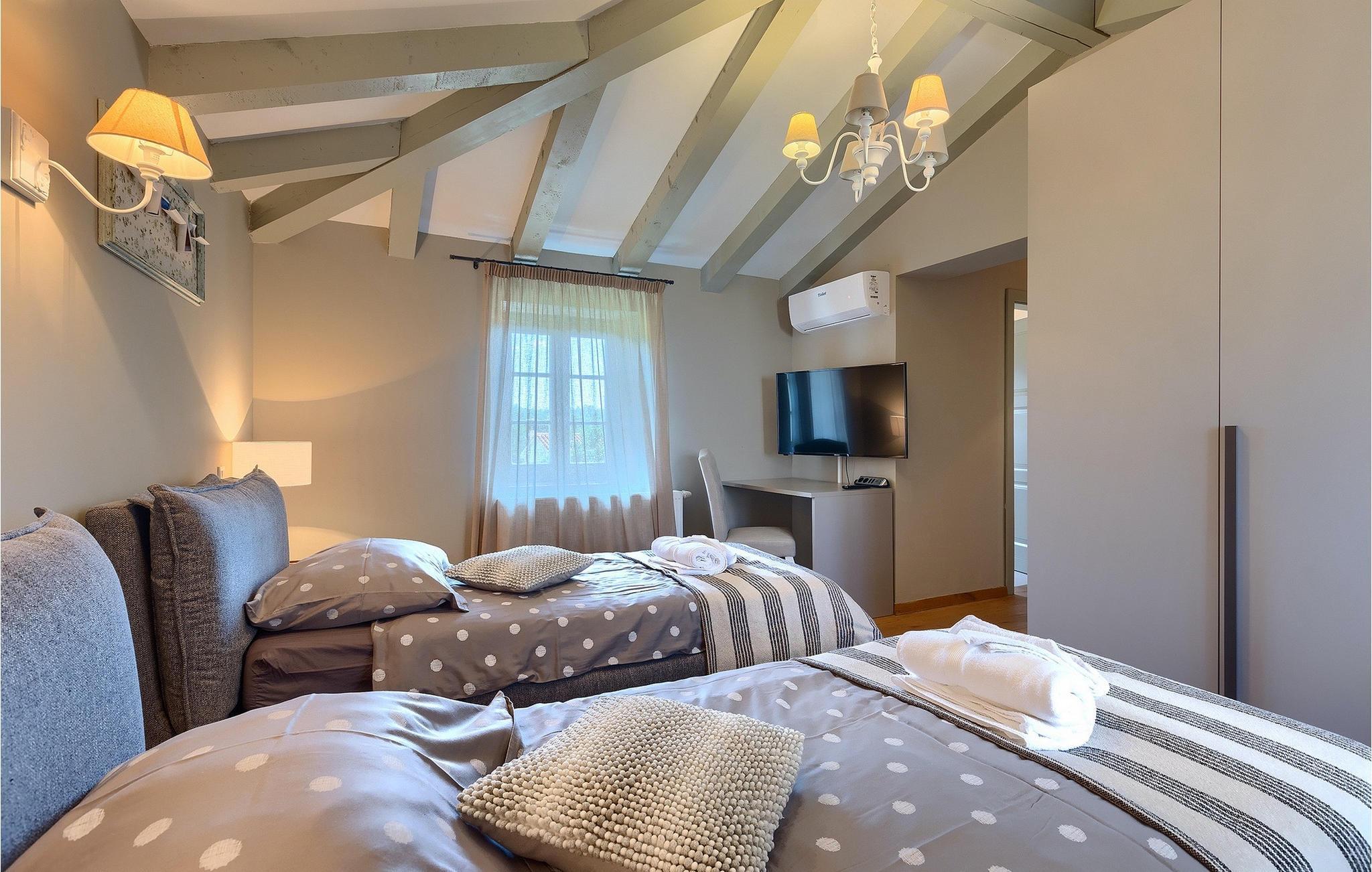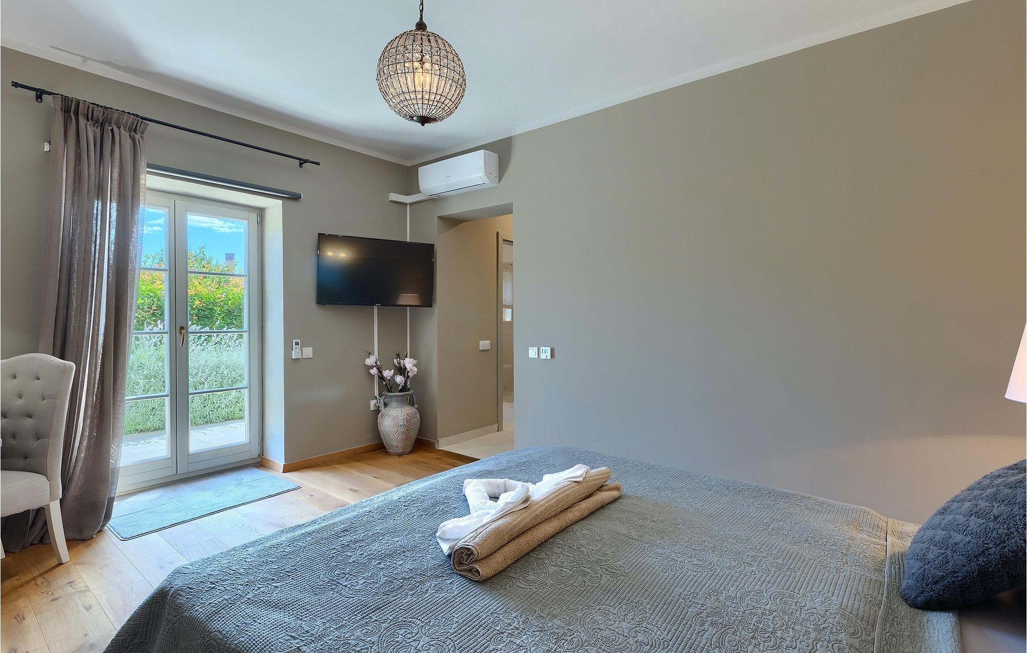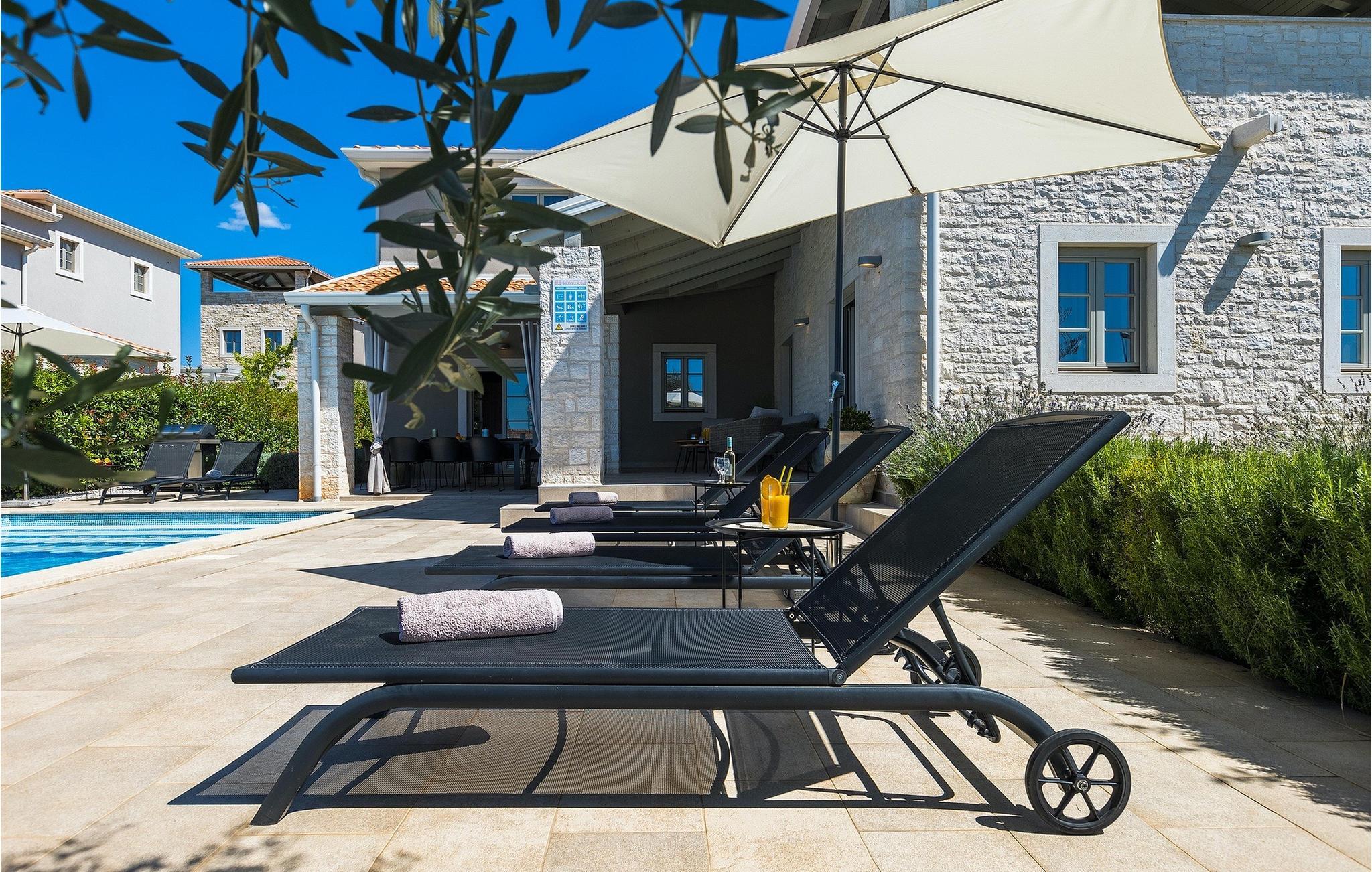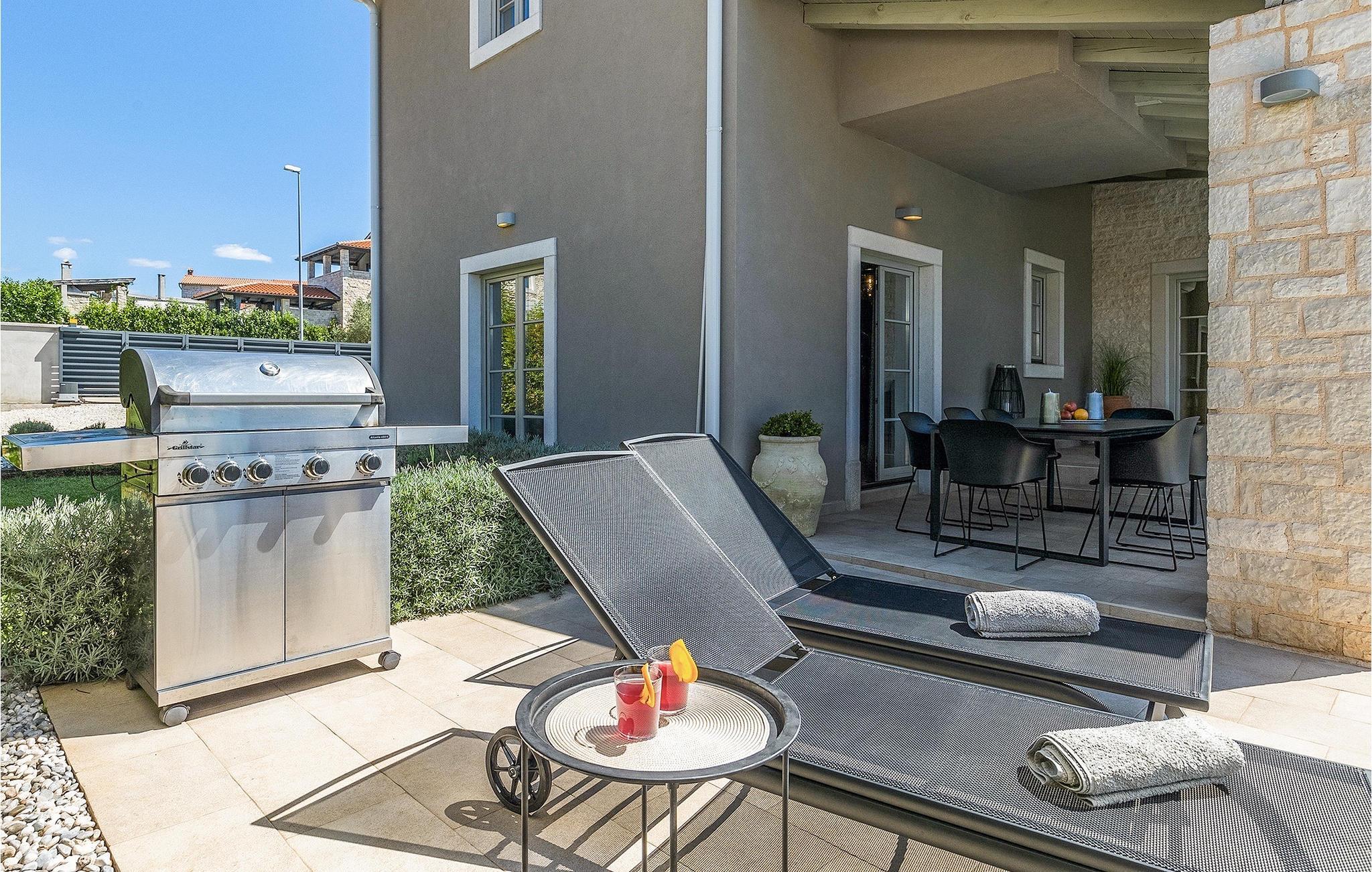 Leter du etter det perfekte overnattingsstedet for din neste ferie i nærheten av Pore? Da bør du vurdere den fantastiske Villa Pietra. Så snart du ankommer eiendommen, som er omgitt av grøntområder, vil du bli fylt av en positiv følelse som vil fortsette i hele villaen. Den romslige stuen er innredet i lyse farger og er perfekt for koselige stunder inne. I tillegg gir en peis et ekstra romantisk preg på kaldere dager. Kjøkkenet og spisestuen i villaen er utformet som en åpen planløsning. Blikkfanget i dette rommet, som kombinerer kjøkkenets moderne stil med rustikke elementer, er uten tvil det massive spisebordet i tre. I første etasje finner du også ett av de tre dobbeltrommene, som har direkte utgang til hagen. De to andre dobbeltrommene ligger i øverste etasje og har balkonger hvorfra du kan nyte utsikten over havet. I tillegg til dobbeltrommene har villaen et soverom med to enkeltsenger i øverste etasje. Alle soverommene i villaen har eget bad. Selv om villaen er vakker på innsiden, betyr ikke det at den ikke har like mye å by på på utsiden. Det store bassenget innbyr til forfriskninger og noen svømmeturer. Etterpå kan du slappe av på solsengene rett ved bassenget. Du kan også benytte anledningen til å slappe av i det skyggefulle loungeområdet på terrassen eller i hengekøyen mellom to oliventrær. Sist, men ikke minst, kan du tilberede deilige istriske retter og nyte dem i uteserveringen, ettersom det er en grill utenfor. Tilbring en uforglemmelig tid i Istria og bestill Villa Pietra til din neste ferie.i Vinjan, en landsby i nærheten av Pore, kan du spasere gjennom gamlebyen og se den historiske arven der. Lokalbefolkningen forteller deg gjerne legender om landsbyen sin - det er bare å spørre. Rundt Vinjan finner du tradisjonelle tavernaer hvor du absolutt bør prøve lokale spesialiteter fra det istriske kjøkkenet. Noen tavernaer tilbyr kun sine egne gårdsprodukter, noe som plasserer dem i kategorien agriturisme. Ikke nøl med å besøke to spesielt populære steder på Istrias kyst - Pore og Novigrad. Begge stedene innbyr til avslapping på stranden eller en koselig kveld i bykjernen.