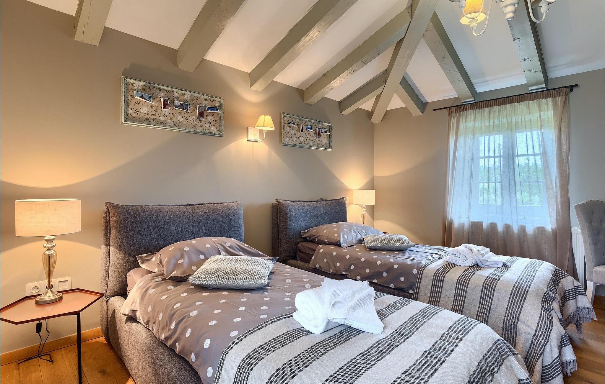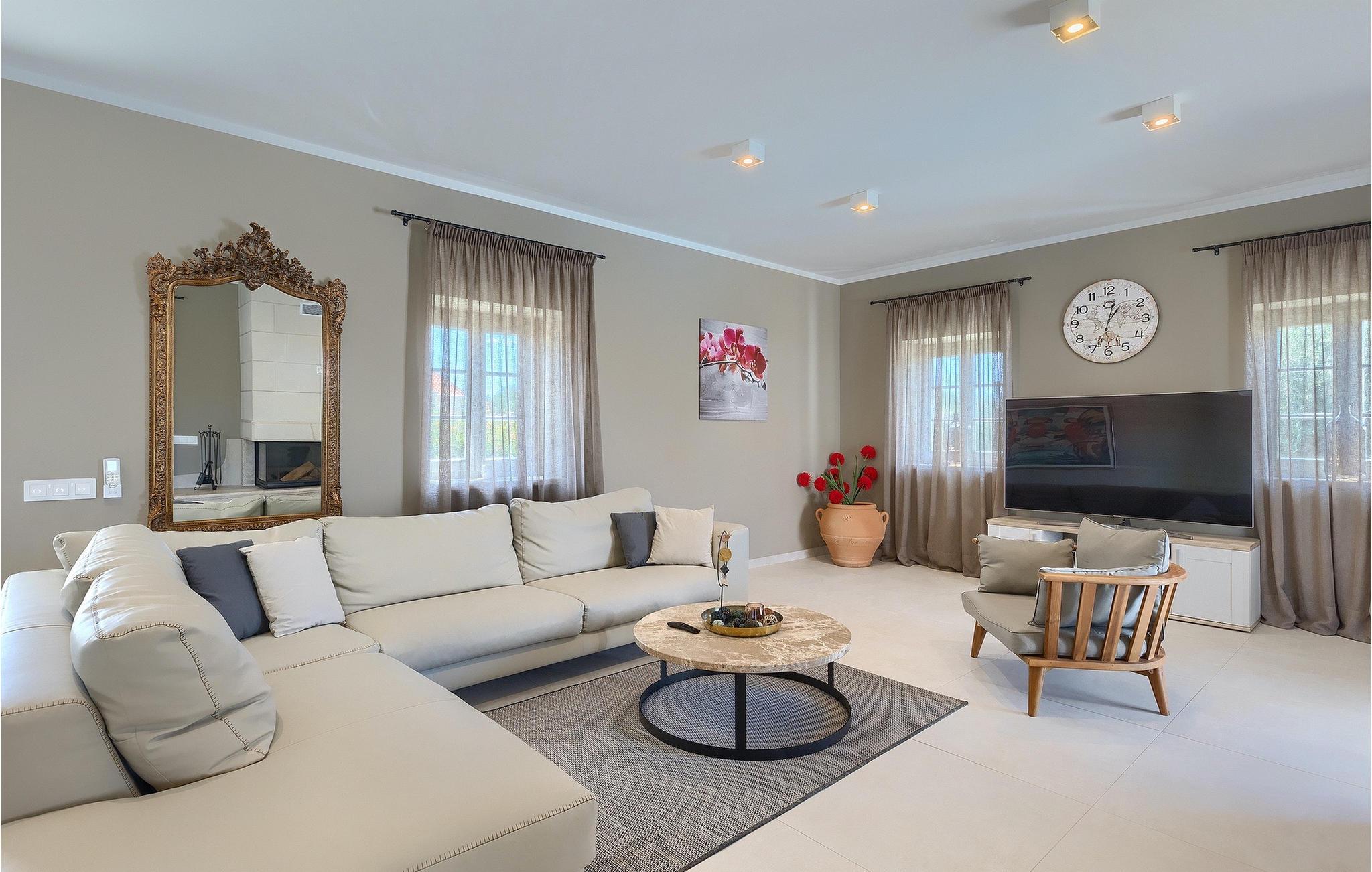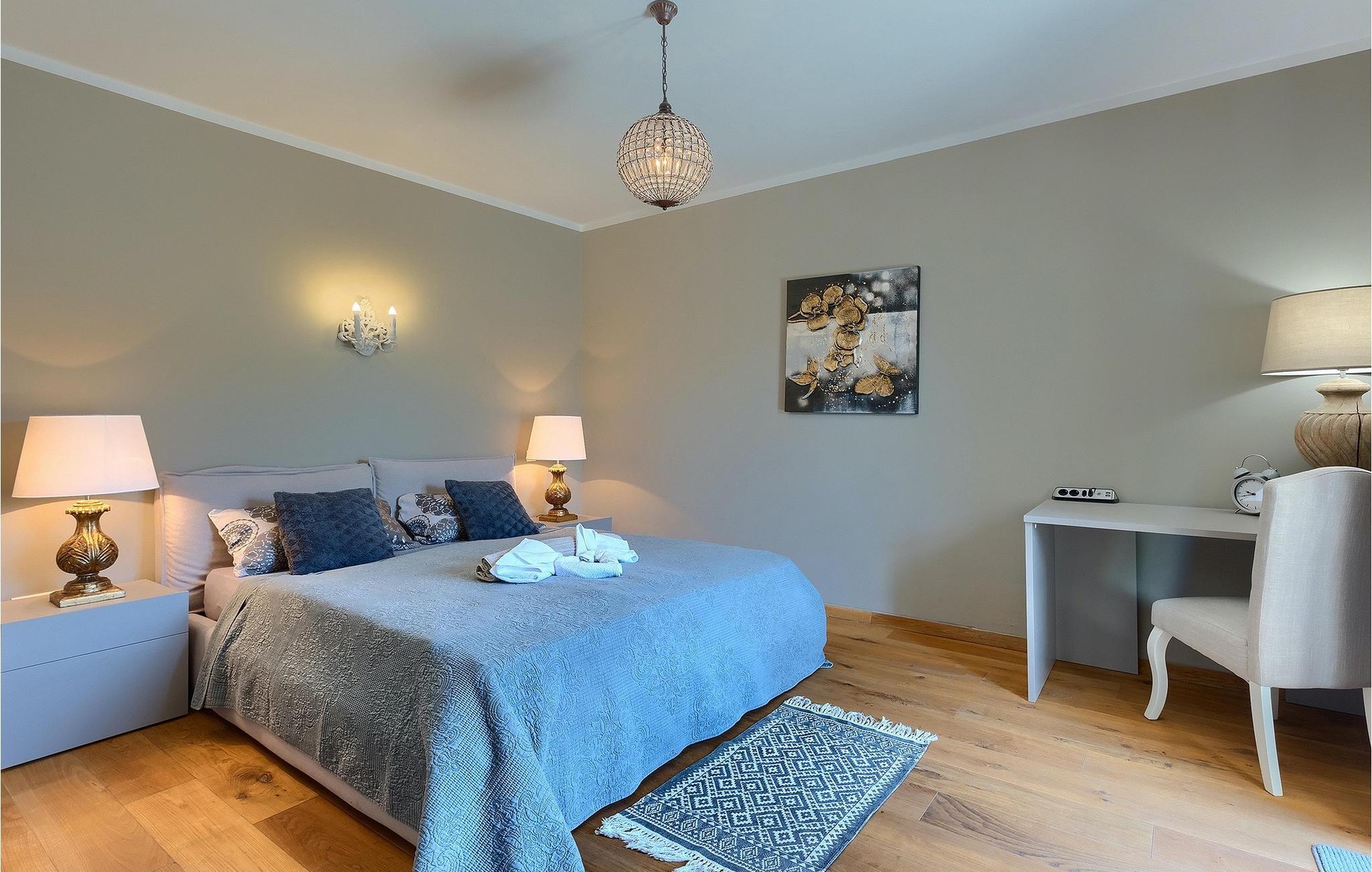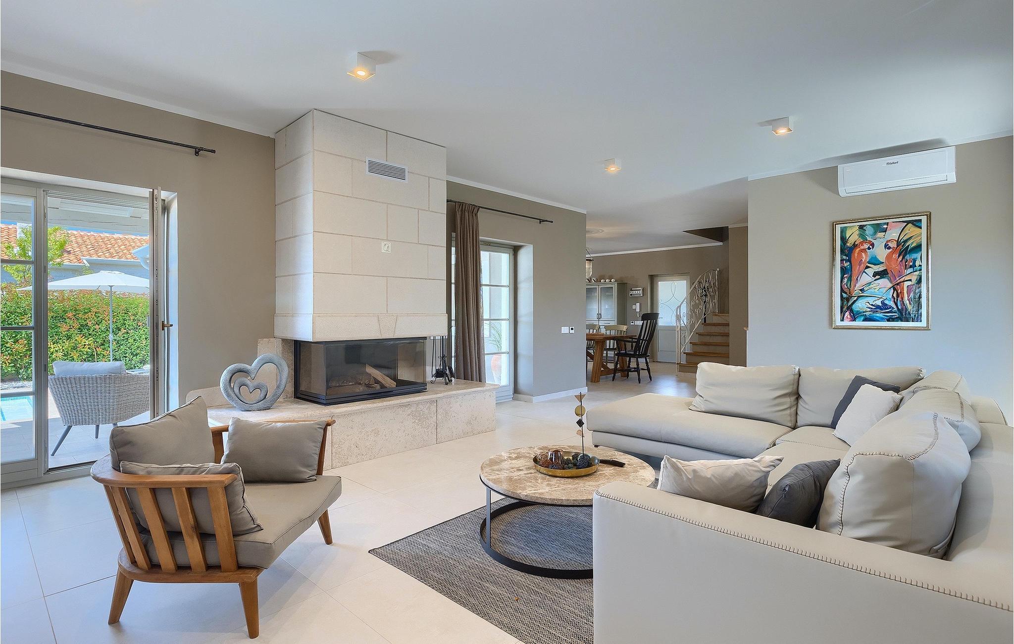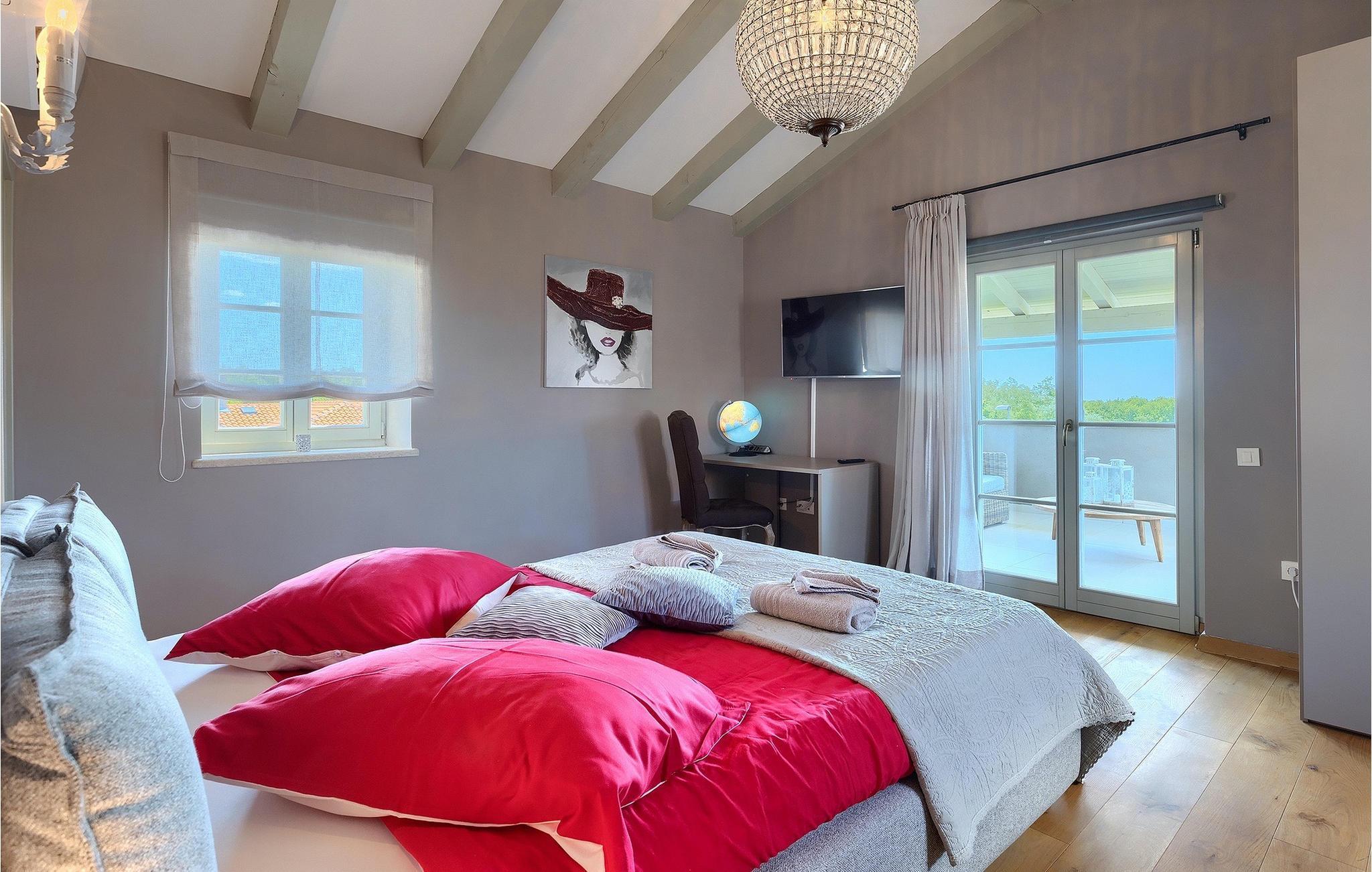 Leter du etter det perfekte overnattingsstedet for din neste ferie i nærheten av Pore? Da bør du vurdere den fantastiske Villa Pietra. Så snart du ankommer eiendommen, som er omgitt av grøntområder, vil du bli fylt av en positiv følelse som vil fortsette i hele villaen. Den romslige stuen er innredet i lyse farger og er perfekt for koselige stunder inne. I tillegg gir en peis et ekstra romantisk preg på kaldere dager. Kjøkkenet og spisestuen i villaen er utformet som en åpen planløsning. Blikkfanget i dette rommet, som kombinerer kjøkkenets moderne stil med rustikke elementer, er uten tvil det massive spisebordet i tre. I første etasje finner du også ett av de tre dobbeltrommene, som har direkte utgang til hagen. De to andre dobbeltrommene ligger i øverste etasje og har balkonger hvorfra du kan nyte utsikten over havet. I tillegg til dobbeltrommene har villaen et soverom med to enkeltsenger i øverste etasje. Alle soverommene i villaen har eget bad. Selv om villaen er vakker på innsiden, betyr ikke det at den ikke har like mye å by på på utsiden. Det store bassenget innbyr til forfriskninger og noen svømmeturer. Etterpå kan du slappe av på solsengene rett ved bassenget. Du kan også benytte anledningen til å slappe av i det skyggefulle loungeområdet på terrassen eller i hengekøyen mellom to oliventrær. Sist, men ikke minst, kan du tilberede deilige istriske retter og nyte dem i uteserveringen, ettersom det er en grill utenfor. Tilbring en uforglemmelig tid i Istria og bestill Villa Pietra til din neste ferie.i Vinjan, en landsby i nærheten av Pore, kan du spasere gjennom gamlebyen og se den historiske arven der. Lokalbefolkningen forteller deg gjerne legender om landsbyen sin - det er bare å spørre. Rundt Vinjan finner du tradisjonelle tavernaer hvor du absolutt bør prøve lokale spesialiteter fra det istriske kjøkkenet. Noen tavernaer tilbyr kun sine egne gårdsprodukter, noe som plasserer dem i kategorien agriturisme. Ikke nøl med å besøke to spesielt populære steder på Istrias kyst - Pore og Novigrad. Begge stedene innbyr til avslapping på stranden eller en koselig kveld i bykjernen.