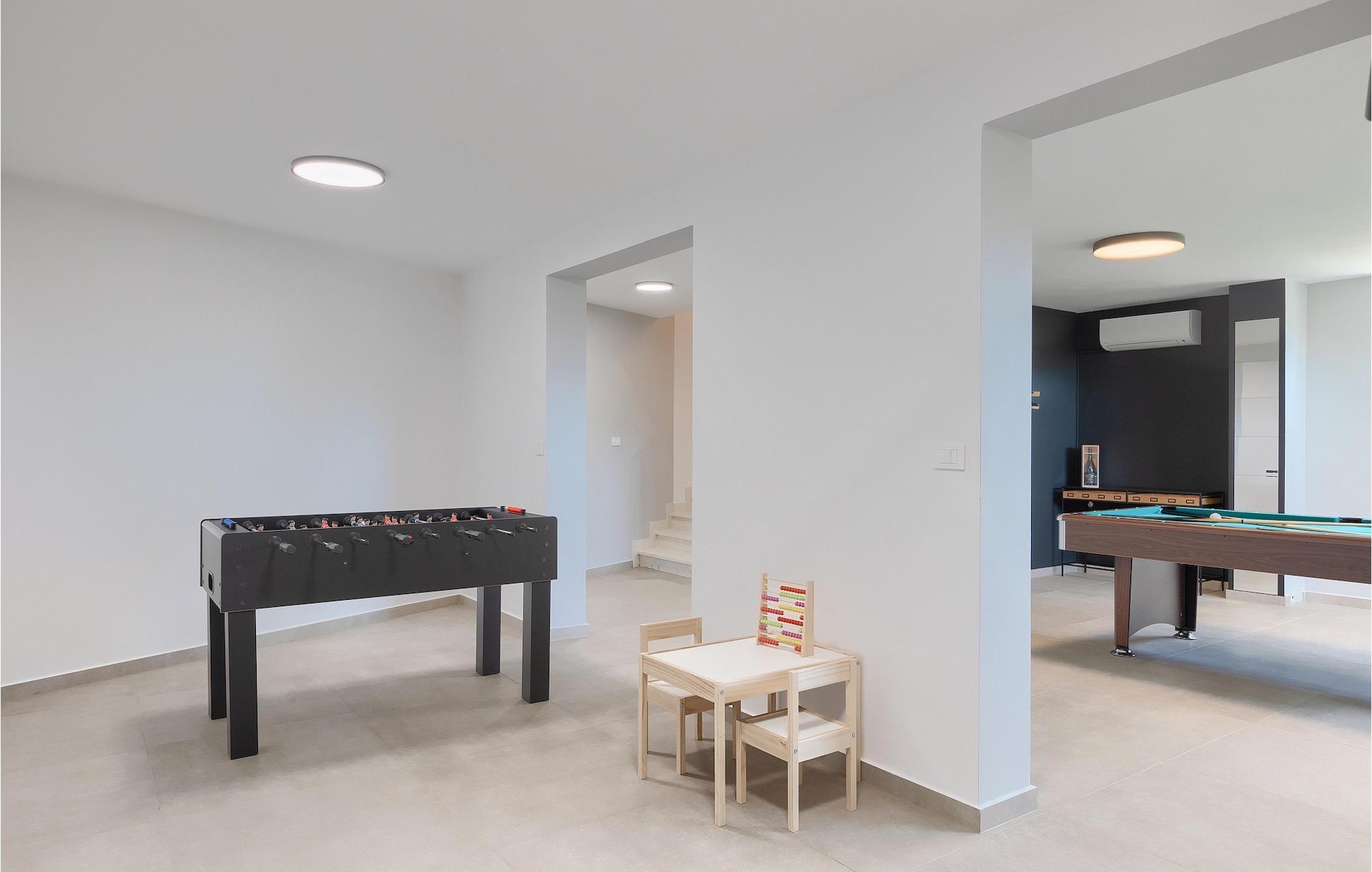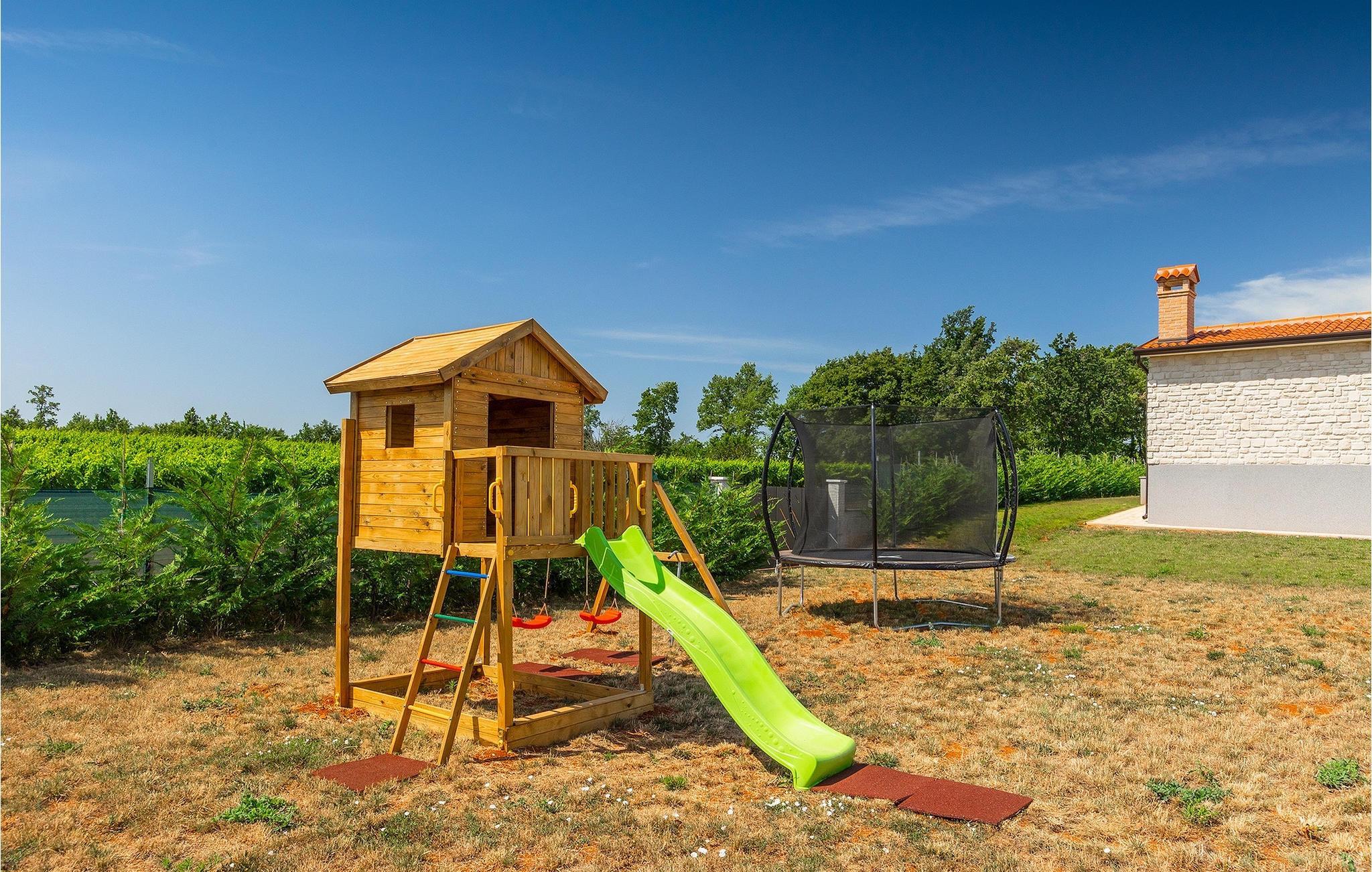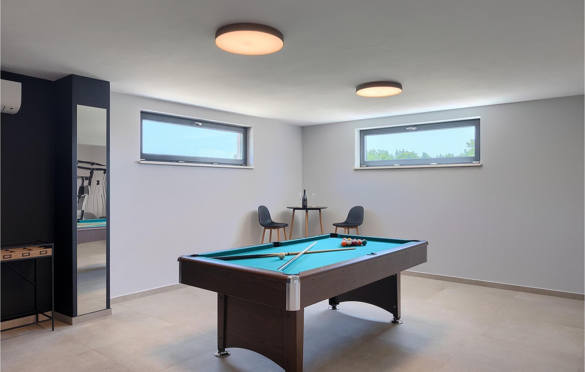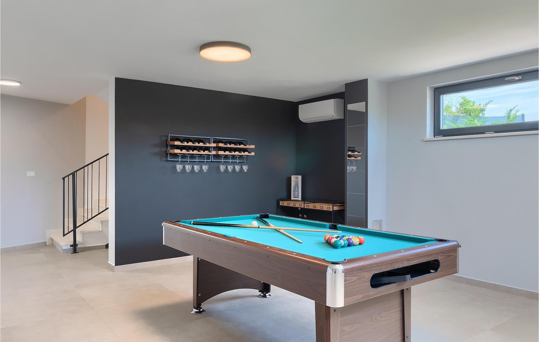 I kjelleren på villaen er det et rom hvor du kan slappe av med biljard eller bordfotball. Det er også et treningshjørne for gjester som ønsker å holde seg aktive på ferie. Ved siden av huset er det en overbygd terrasse, og i hagen finner du også et overbygd område med et spisebord hvor du kan nyte deilige retter tilberedt på kullgrillen som står til din disposisjon. I hagen til villaen finner du et basseng og solsenger hvor du kan slappe av med en bok eller en forfriskende drink eller nyte et slag badminton. For våre yngre gjester er det en lekeplass og en trampoline i hagen. Eiendommen er helt inngjerdet og har en privat parkeringsplass for 6 biler. Bestill overnatting på Villa Sun Istria og tilbring en uforglemmelig ferie med familie og venner.Villa Sun Istria ligger i nærheten av Vinjan, en istrisk by som ligger på en høyde. De svingete gatene i denne sjarmerende byen vitner om stedets rike historiske arv, samtidig som du kan nyte den spektakulære utsikten over havet fra den gamle terrassen på torget, som du kommer inn i gjennom en venetiansk bue. Vinjan er kjent for sitt observatorium og sin eksepsjonelle tradisjonelle gastronomi, som du kan nyte på de mange restaurantene og gårdsbrukene i området. Det finnes mange tur- og sykkelstier, og en av de vakreste er den historiske Parenzana-stien langs den gamle jernbanen, som også tilbyr en unik tur med et turisttog langs ruten. Den gamle romerske byen Pore, 10 kilometer fra villaen, byr på mer liv og røre, med himmelske strender, utmerkede restauranter og kafeer og et rikt natteliv. Gå ikke glipp av å besøke den berømte Eufrasius-basilikaen, som er Pores varemerke, og som er grunnen til at byen også kalles "mosaikkens by". Besøk Baredine-grotten eller et av de nærliggende badelandene, og få den beste ferien noensinne!