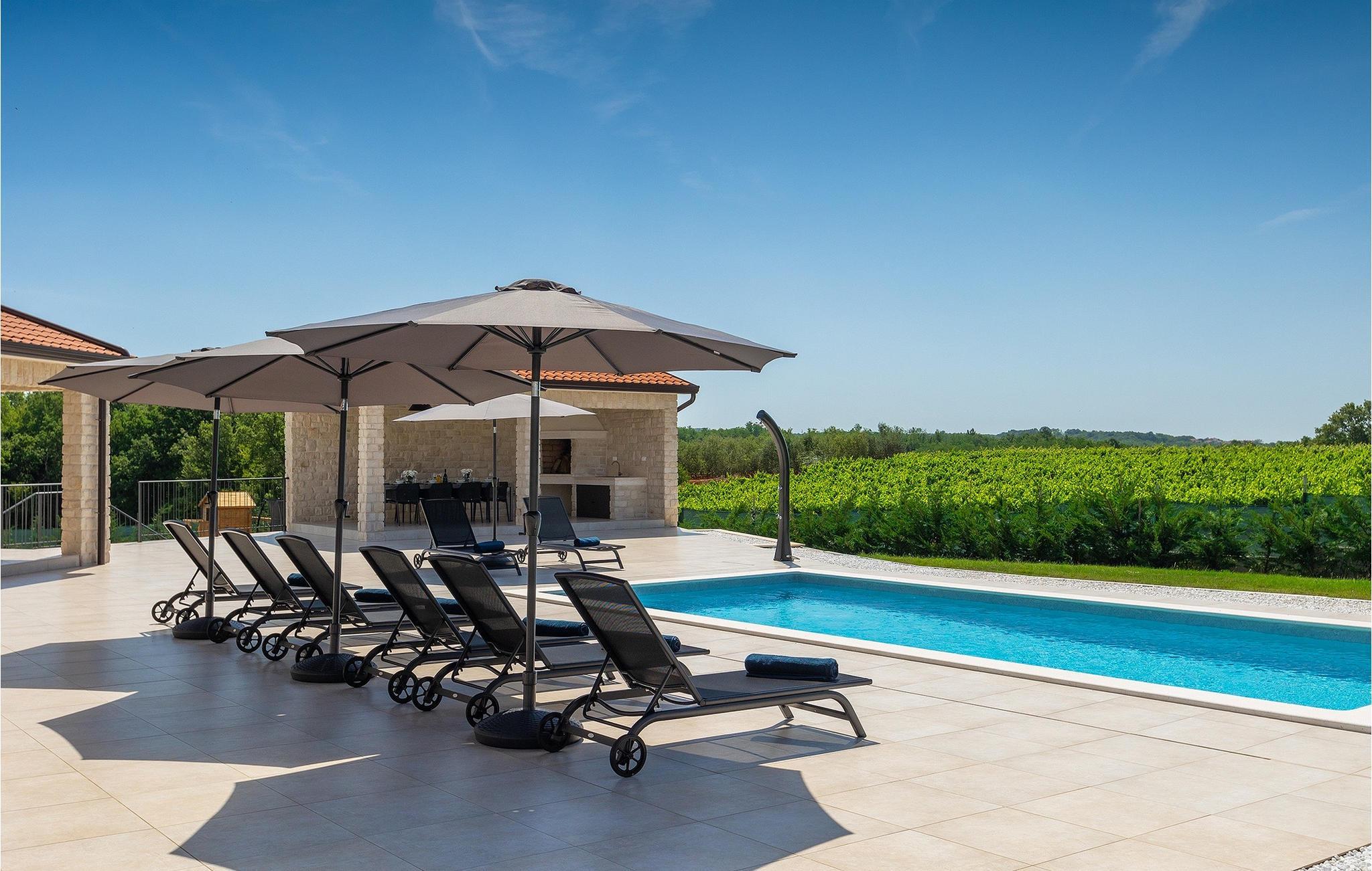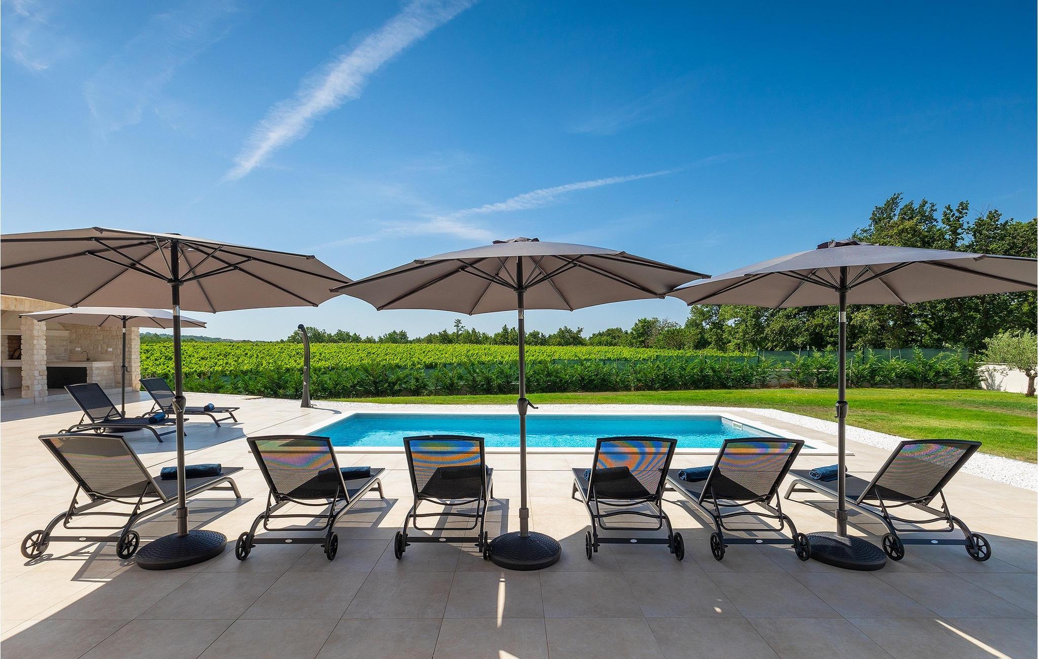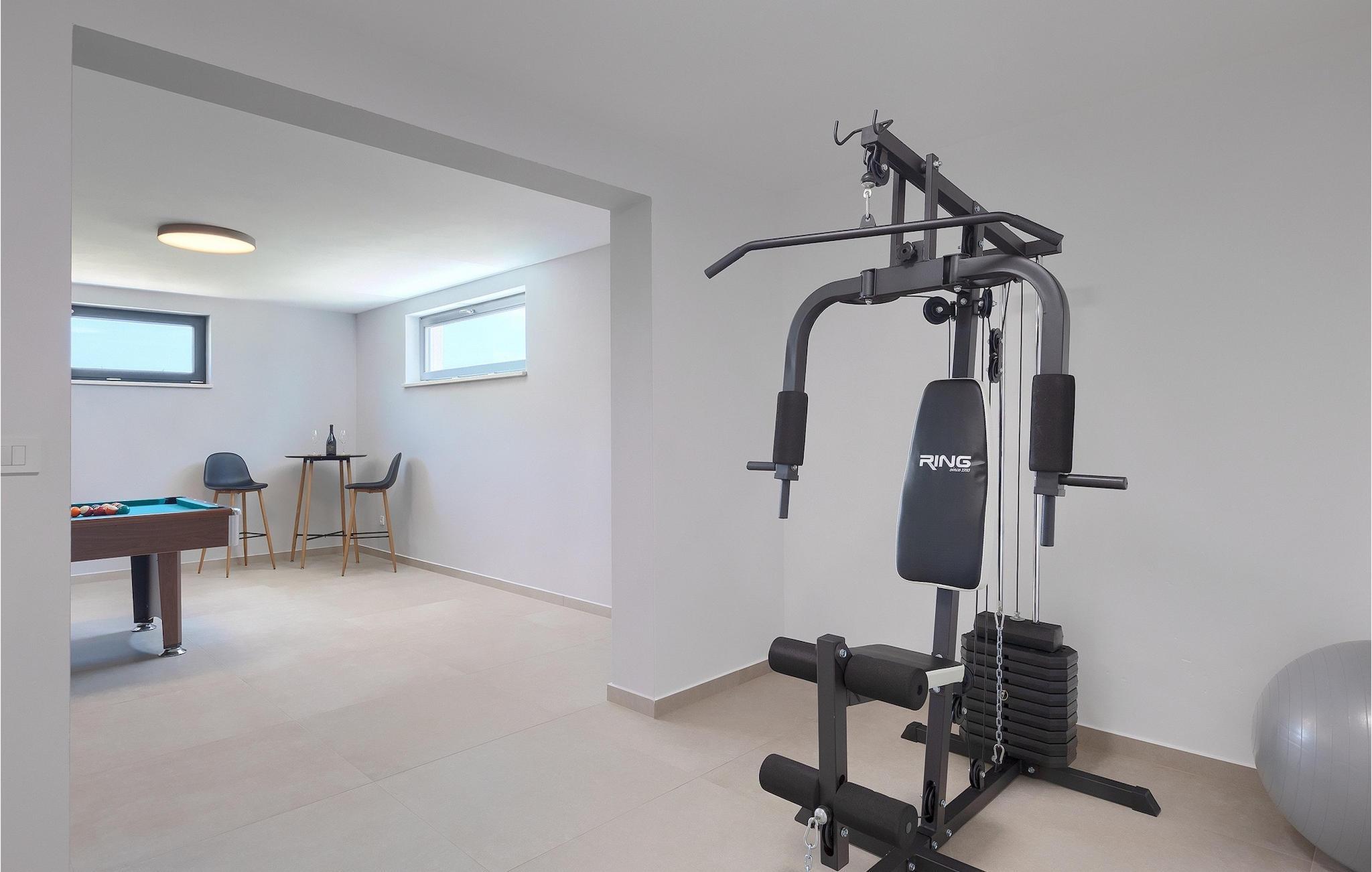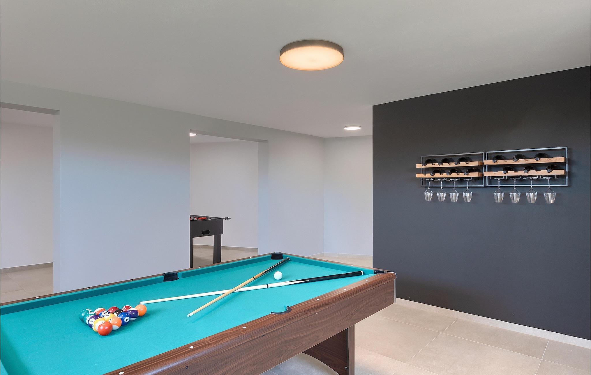 I kjelleren på villaen er det et rom hvor du kan slappe av med biljard eller bordfotball. Det er også et treningshjørne for gjester som ønsker å holde seg aktive på ferie. Ved siden av huset er det en overbygd terrasse, og i hagen finner du også et overbygd område med et spisebord hvor du kan nyte deilige retter tilberedt på kullgrillen som står til din disposisjon. I hagen til villaen finner du et basseng og solsenger hvor du kan slappe av med en bok eller en forfriskende drink eller nyte et slag badminton. For våre yngre gjester er det en lekeplass og en trampoline i hagen. Eiendommen er helt inngjerdet og har en privat parkeringsplass for 6 biler. Bestill overnatting på Villa Sun Istria og tilbring en uforglemmelig ferie med familie og venner.Villa Sun Istria ligger i nærheten av Vinjan, en istrisk by som ligger på en høyde. De svingete gatene i denne sjarmerende byen vitner om stedets rike historiske arv, samtidig som du kan nyte den spektakulære utsikten over havet fra den gamle terrassen på torget, som du kommer inn i gjennom en venetiansk bue. Vinjan er kjent for sitt observatorium og sin eksepsjonelle tradisjonelle gastronomi, som du kan nyte på de mange restaurantene og gårdsbrukene i området. Det finnes mange tur- og sykkelstier, og en av de vakreste er den historiske Parenzana-stien langs den gamle jernbanen, som også tilbyr en unik tur med et turisttog langs ruten. Den gamle romerske byen Pore, 10 kilometer fra villaen, byr på mer liv og røre, med himmelske strender, utmerkede restauranter og kafeer og et rikt natteliv. Gå ikke glipp av å besøke den berømte Eufrasius-basilikaen, som er Pores varemerke, og som er grunnen til at byen også kalles "mosaikkens by". Besøk Baredine-grotten eller et av de nærliggende badelandene, og få den beste ferien noensinne!