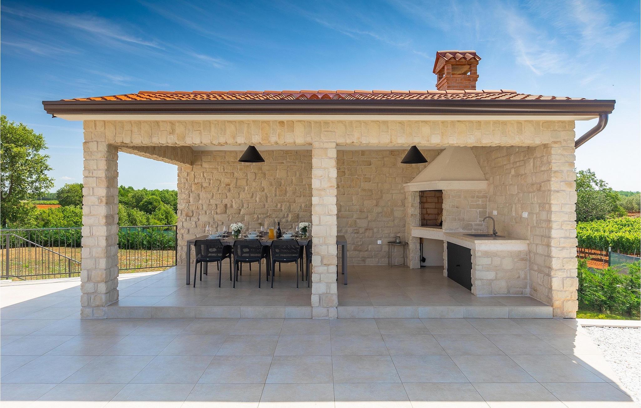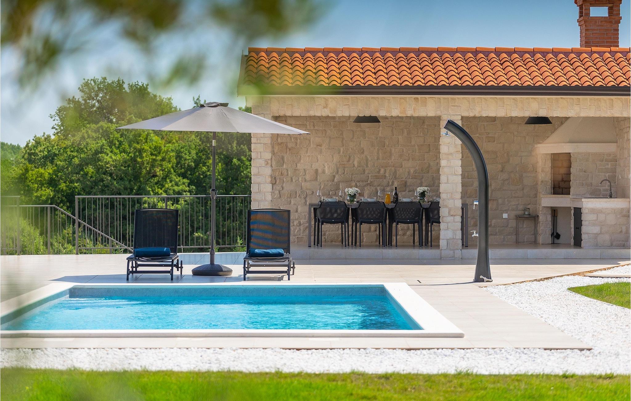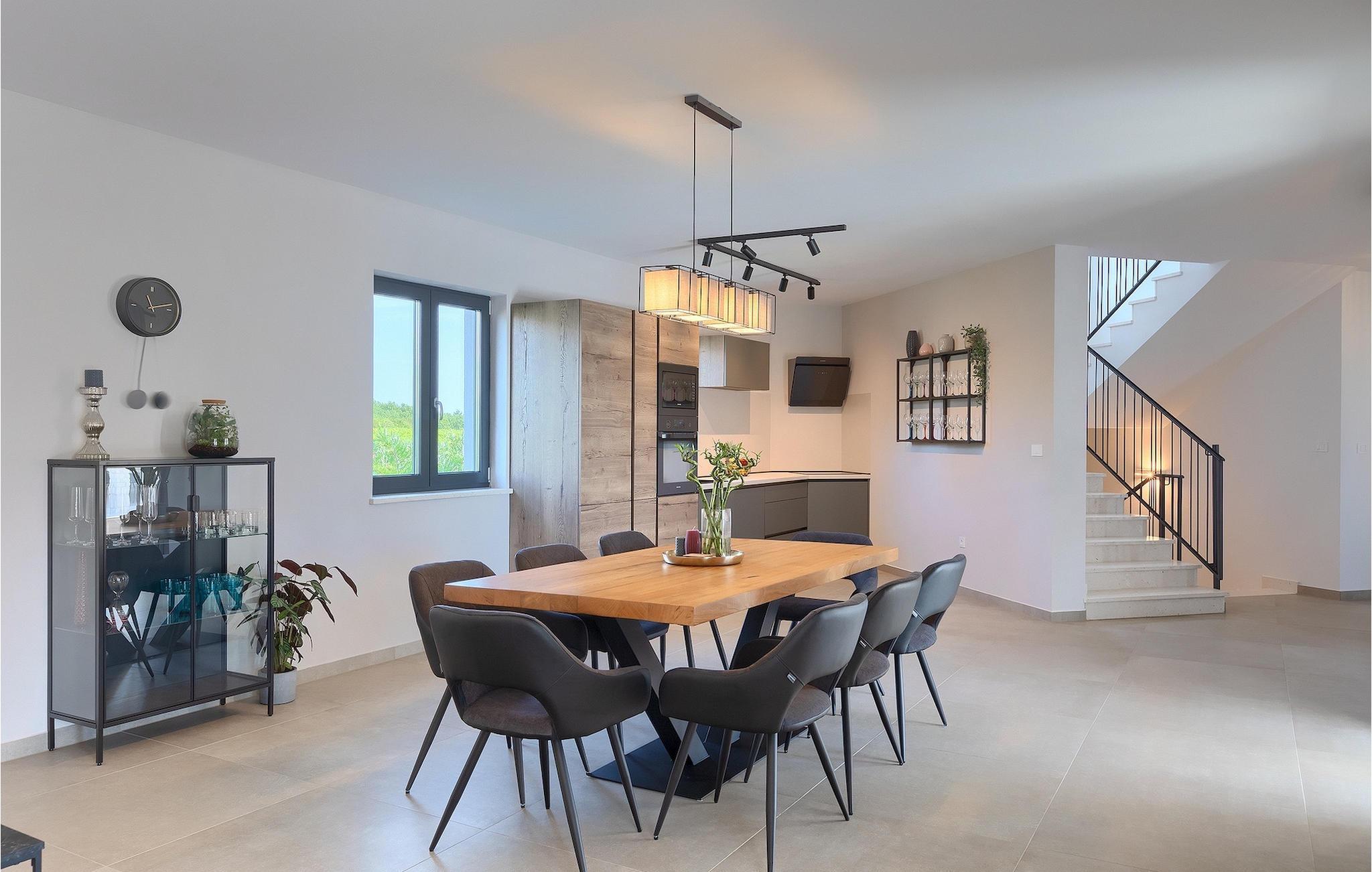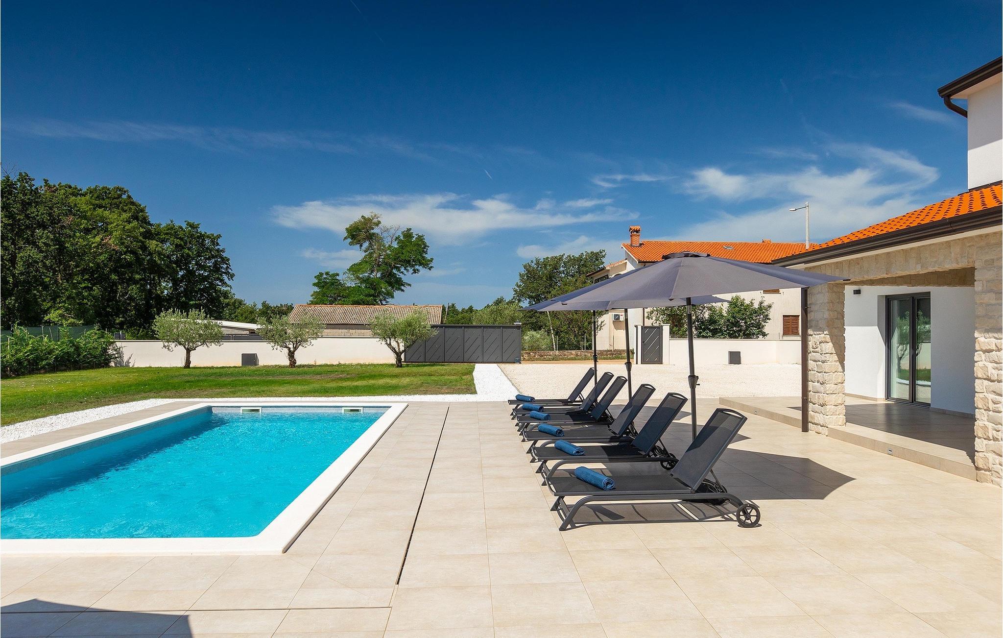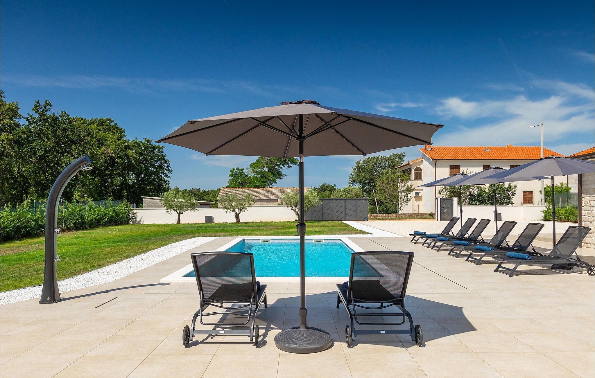 I kjelleren på villaen er det et rom hvor du kan slappe av med biljard eller bordfotball. Det er også et treningshjørne for gjester som ønsker å holde seg aktive på ferie. Ved siden av huset er det en overbygd terrasse, og i hagen finner du også et overbygd område med et spisebord hvor du kan nyte deilige retter tilberedt på kullgrillen som står til din disposisjon. I hagen til villaen finner du et basseng og solsenger hvor du kan slappe av med en bok eller en forfriskende drink eller nyte et slag badminton. For våre yngre gjester er det en lekeplass og en trampoline i hagen. Eiendommen er helt inngjerdet og har en privat parkeringsplass for 6 biler. Bestill overnatting på Villa Sun Istria og tilbring en uforglemmelig ferie med familie og venner.Villa Sun Istria ligger i nærheten av Vinjan, en istrisk by som ligger på en høyde. De svingete gatene i denne sjarmerende byen vitner om stedets rike historiske arv, samtidig som du kan nyte den spektakulære utsikten over havet fra den gamle terrassen på torget, som du kommer inn i gjennom en venetiansk bue. Vinjan er kjent for sitt observatorium og sin eksepsjonelle tradisjonelle gastronomi, som du kan nyte på de mange restaurantene og gårdsbrukene i området. Det finnes mange tur- og sykkelstier, og en av de vakreste er den historiske Parenzana-stien langs den gamle jernbanen, som også tilbyr en unik tur med et turisttog langs ruten. Den gamle romerske byen Pore, 10 kilometer fra villaen, byr på mer liv og røre, med himmelske strender, utmerkede restauranter og kafeer og et rikt natteliv. Gå ikke glipp av å besøke den berømte Eufrasius-basilikaen, som er Pores varemerke, og som er grunnen til at byen også kalles "mosaikkens by". Besøk Baredine-grotten eller et av de nærliggende badelandene, og få den beste ferien noensinne!