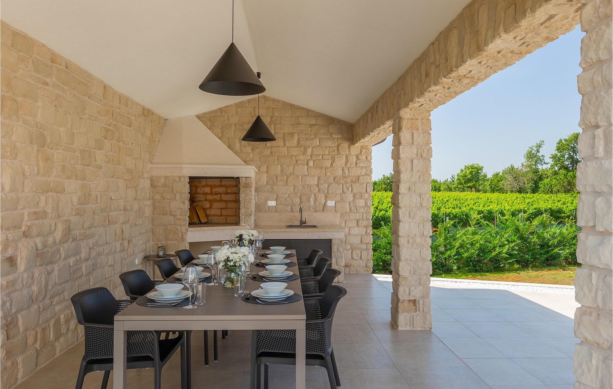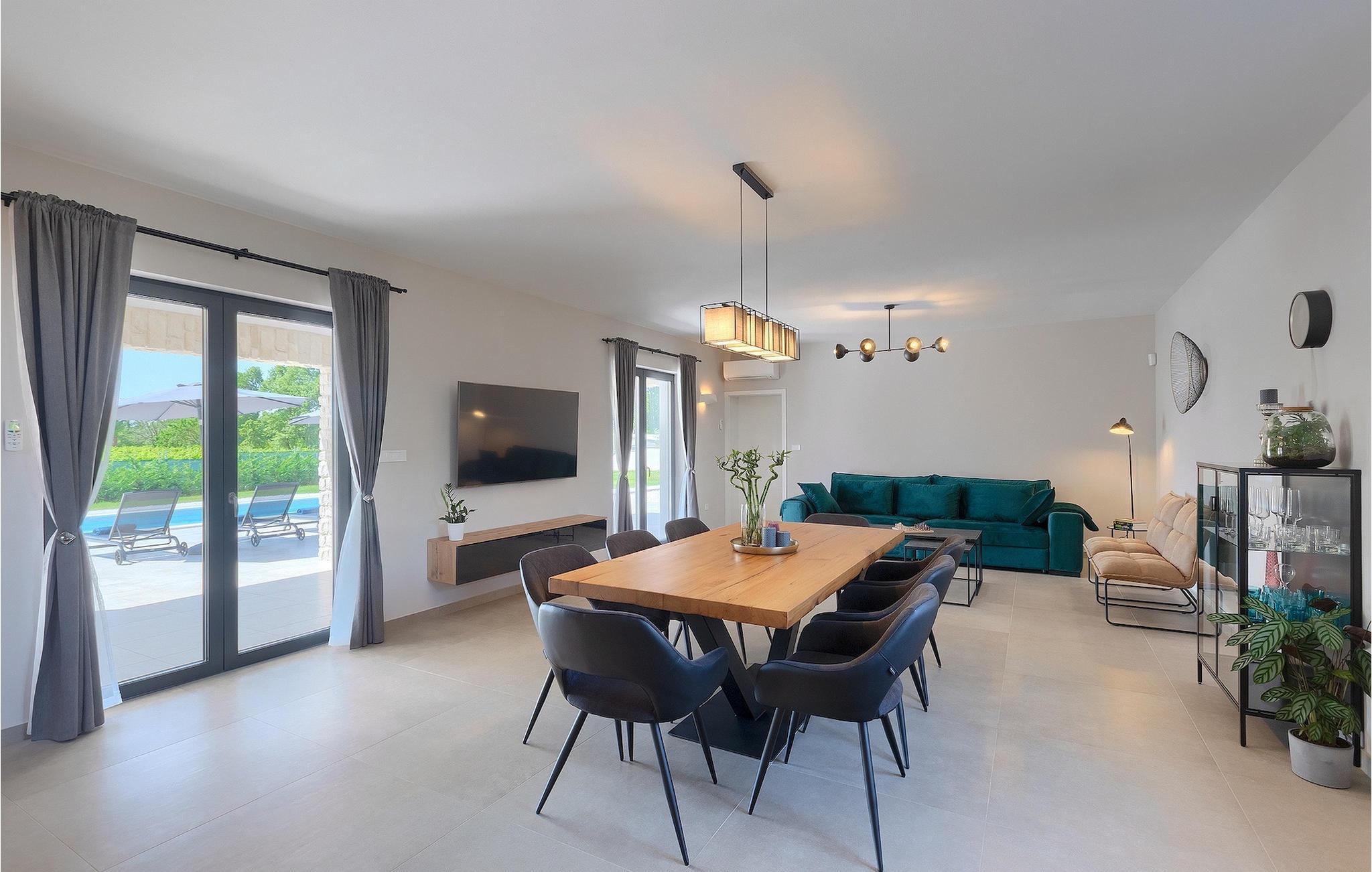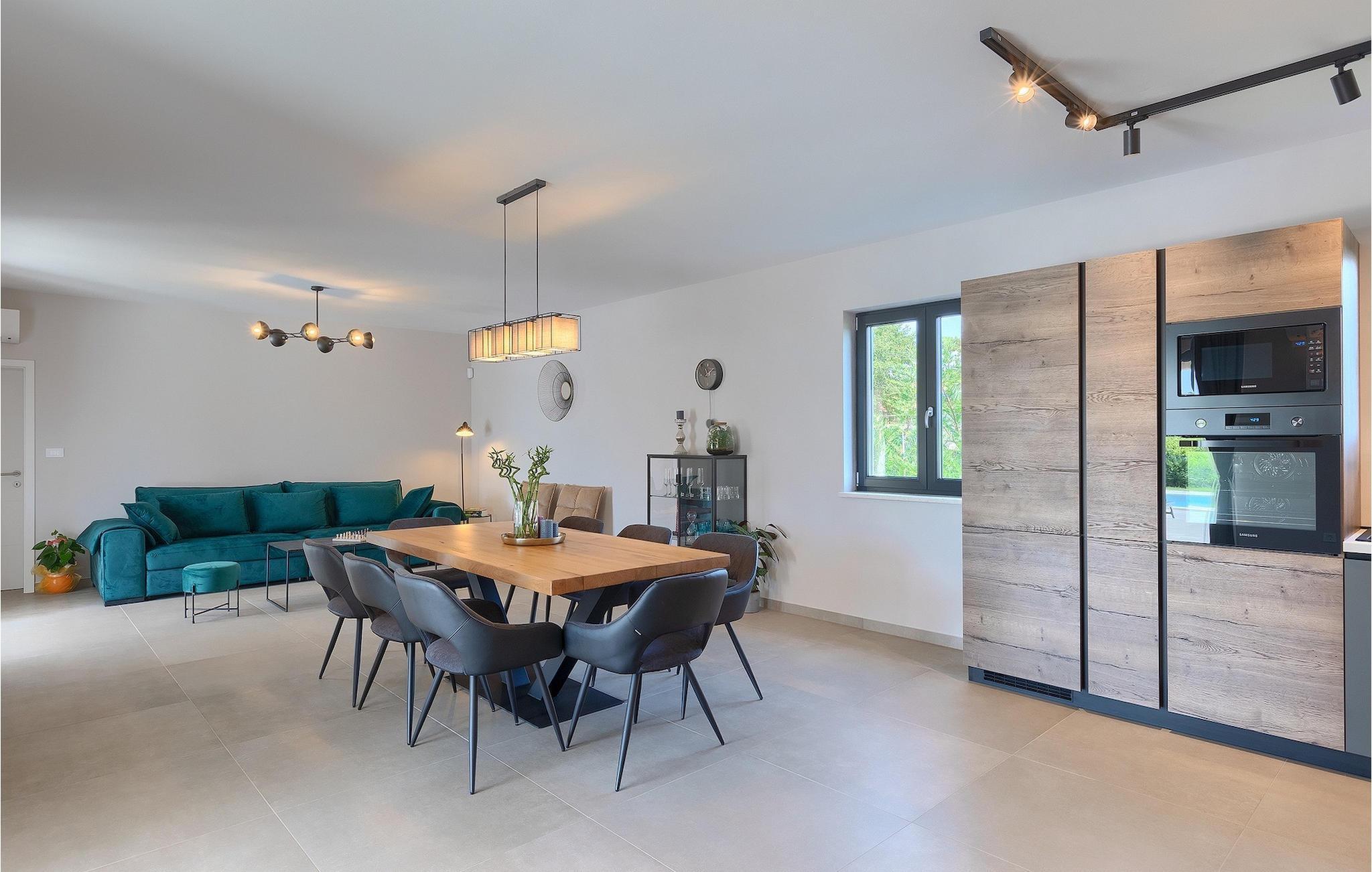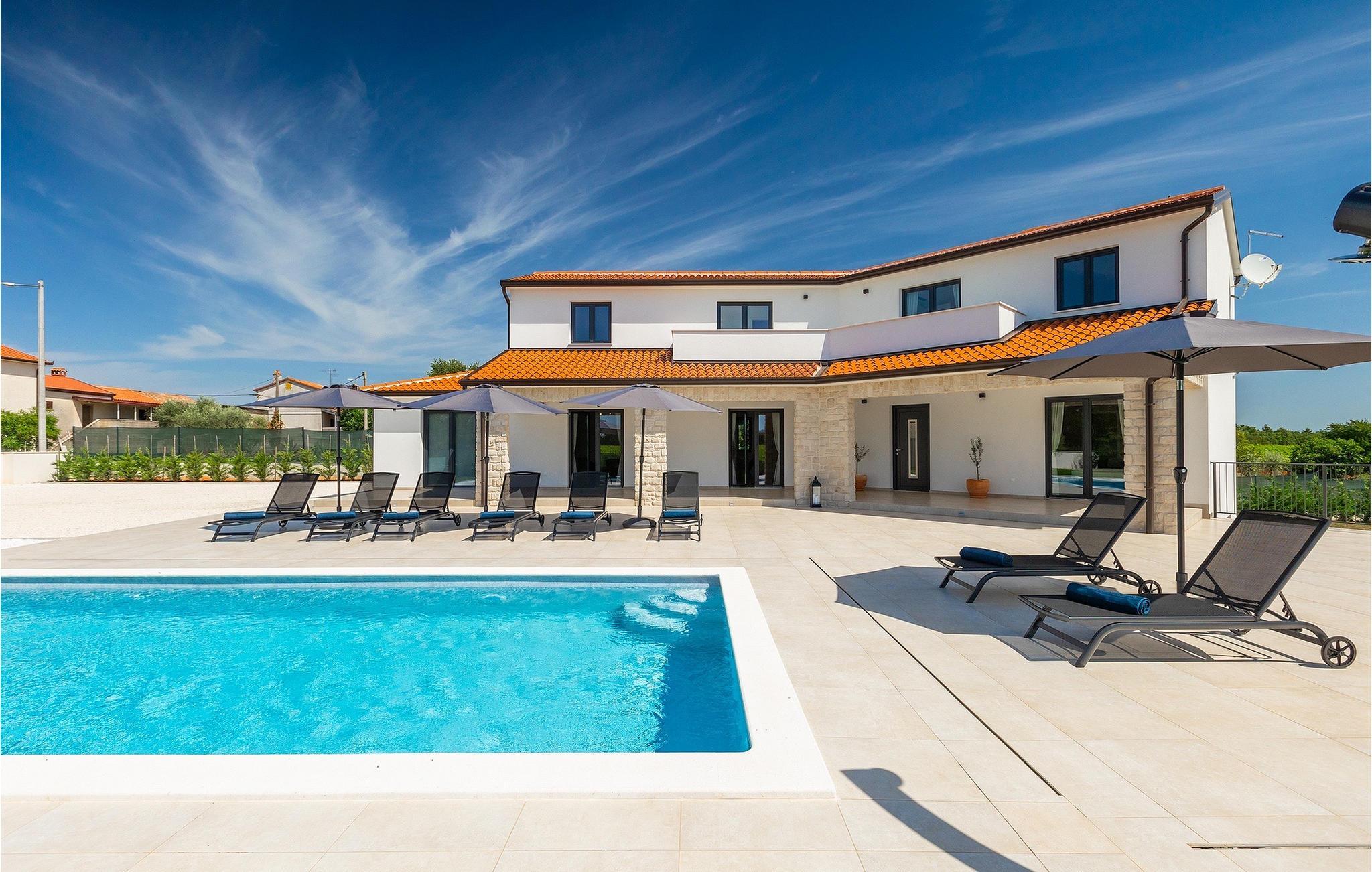 I kjelleren på villaen er det et rom hvor du kan slappe av med biljard eller bordfotball. Det er også et treningshjørne for gjester som ønsker å holde seg aktive på ferie. Ved siden av huset er det en overbygd terrasse, og i hagen finner du også et overbygd område med et spisebord hvor du kan nyte deilige retter tilberedt på kullgrillen som står til din disposisjon. I hagen til villaen finner du et basseng og solsenger hvor du kan slappe av med en bok eller en forfriskende drink eller nyte et slag badminton. For våre yngre gjester er det en lekeplass og en trampoline i hagen. Eiendommen er helt inngjerdet og har en privat parkeringsplass for 6 biler. Bestill overnatting på Villa Sun Istria og tilbring en uforglemmelig ferie med familie og venner.Villa Sun Istria ligger i nærheten av Vinjan, en istrisk by som ligger på en høyde. De svingete gatene i denne sjarmerende byen vitner om stedets rike historiske arv, samtidig som du kan nyte den spektakulære utsikten over havet fra den gamle terrassen på torget, som du kommer inn i gjennom en venetiansk bue. Vinjan er kjent for sitt observatorium og sin eksepsjonelle tradisjonelle gastronomi, som du kan nyte på de mange restaurantene og gårdsbrukene i området. Det finnes mange tur- og sykkelstier, og en av de vakreste er den historiske Parenzana-stien langs den gamle jernbanen, som også tilbyr en unik tur med et turisttog langs ruten. Den gamle romerske byen Pore, 10 kilometer fra villaen, byr på mer liv og røre, med himmelske strender, utmerkede restauranter og kafeer og et rikt natteliv. Gå ikke glipp av å besøke den berømte Eufrasius-basilikaen, som er Pores varemerke, og som er grunnen til at byen også kalles "mosaikkens by". Besøk Baredine-grotten eller et av de nærliggende badelandene, og få den beste ferien noensinne!