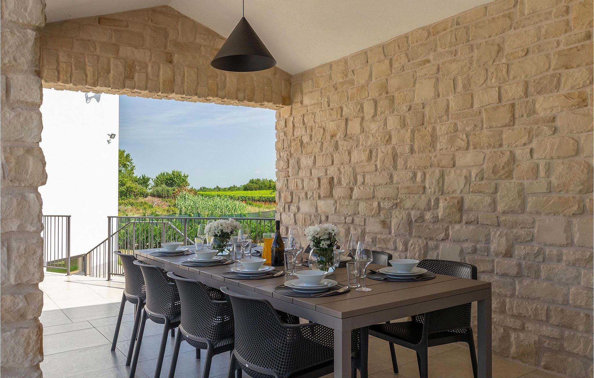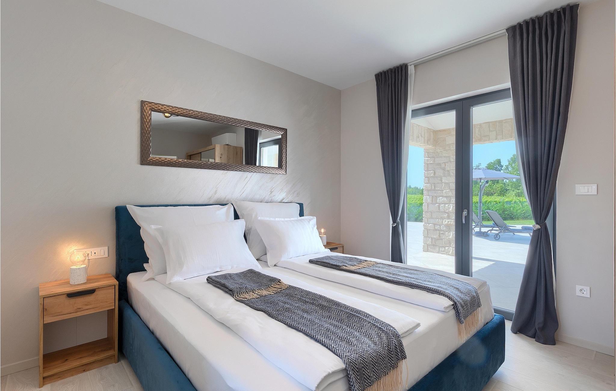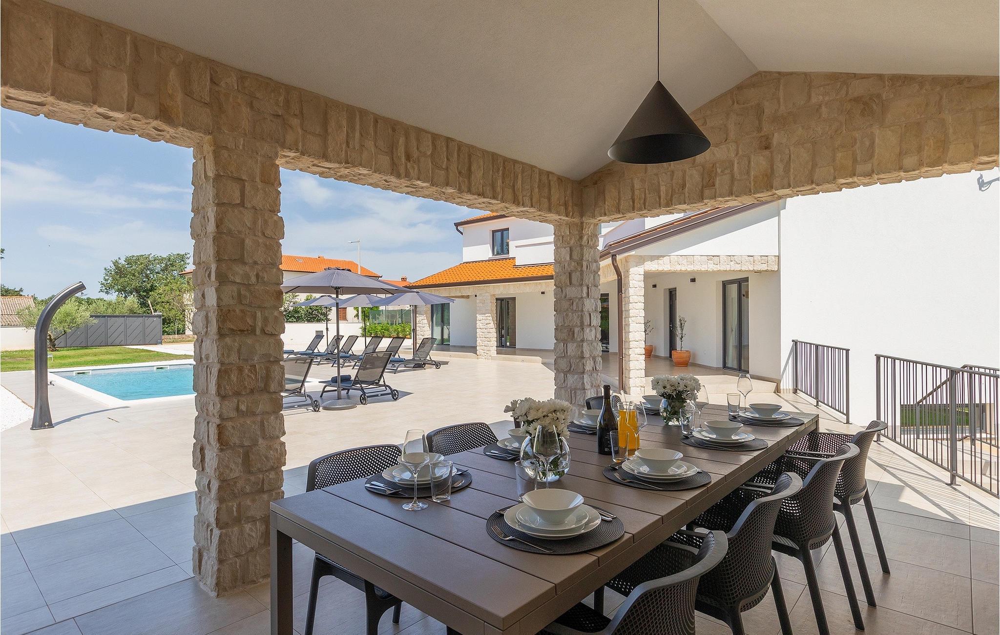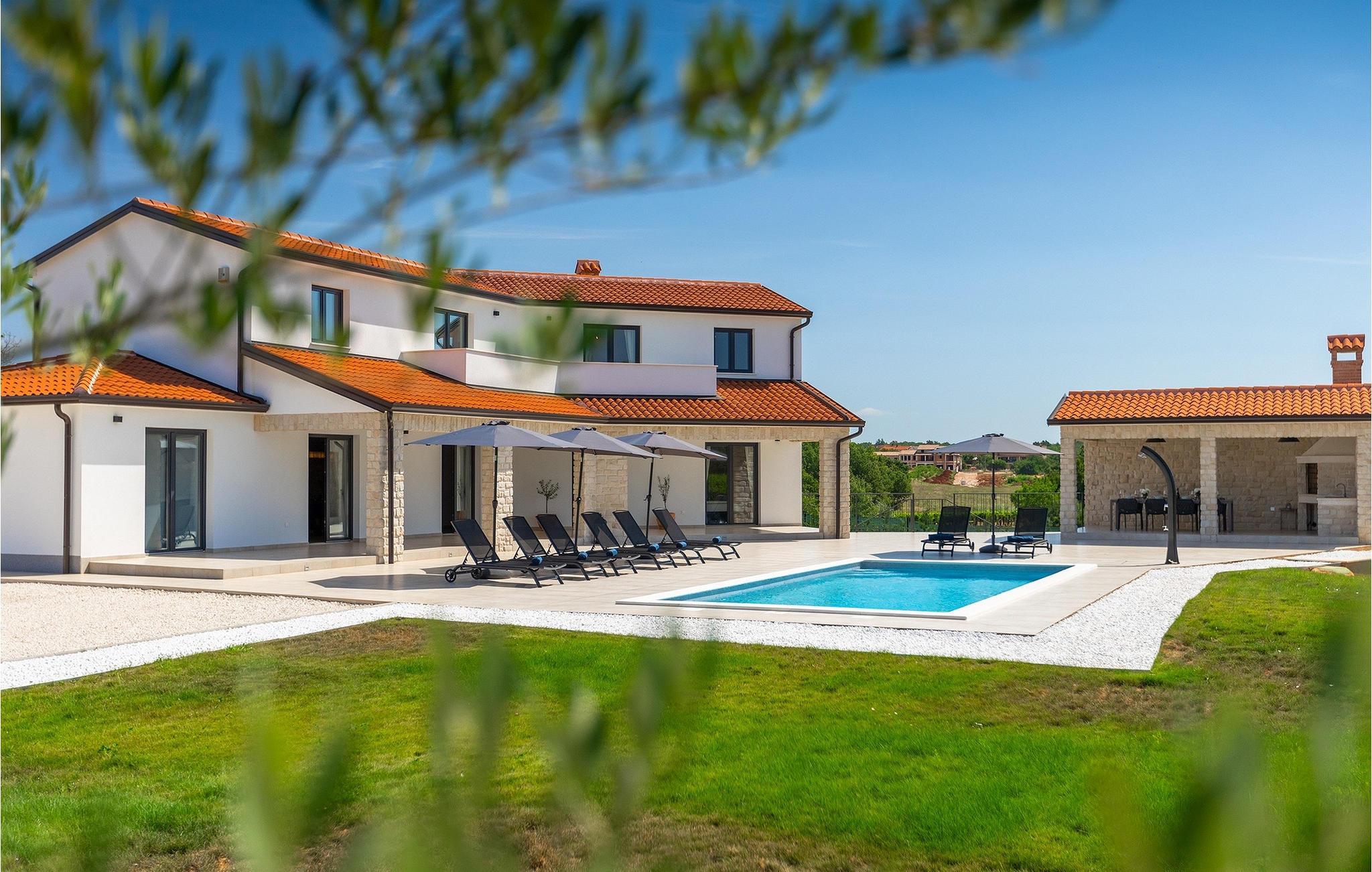 I kjelleren på villaen er det et rom hvor du kan slappe av med biljard eller bordfotball. Det er også et treningshjørne for gjester som ønsker å holde seg aktive på ferie. Ved siden av huset er det en overbygd terrasse, og i hagen finner du også et overbygd område med et spisebord hvor du kan nyte deilige retter tilberedt på kullgrillen som står til din disposisjon. I hagen til villaen finner du et basseng og solsenger hvor du kan slappe av med en bok eller en forfriskende drink eller nyte et slag badminton. For våre yngre gjester er det en lekeplass og en trampoline i hagen. Eiendommen er helt inngjerdet og har en privat parkeringsplass for 6 biler. Bestill overnatting på Villa Sun Istria og tilbring en uforglemmelig ferie med familie og venner.Villa Sun Istria ligger i nærheten av Vinjan, en istrisk by som ligger på en høyde. De svingete gatene i denne sjarmerende byen vitner om stedets rike historiske arv, samtidig som du kan nyte den spektakulære utsikten over havet fra den gamle terrassen på torget, som du kommer inn i gjennom en venetiansk bue. Vinjan er kjent for sitt observatorium og sin eksepsjonelle tradisjonelle gastronomi, som du kan nyte på de mange restaurantene og gårdsbrukene i området. Det finnes mange tur- og sykkelstier, og en av de vakreste er den historiske Parenzana-stien langs den gamle jernbanen, som også tilbyr en unik tur med et turisttog langs ruten. Den gamle romerske byen Pore, 10 kilometer fra villaen, byr på mer liv og røre, med himmelske strender, utmerkede restauranter og kafeer og et rikt natteliv. Gå ikke glipp av å besøke den berømte Eufrasius-basilikaen, som er Pores varemerke, og som er grunnen til at byen også kalles "mosaikkens by". Besøk Baredine-grotten eller et av de nærliggende badelandene, og få den beste ferien noensinne!