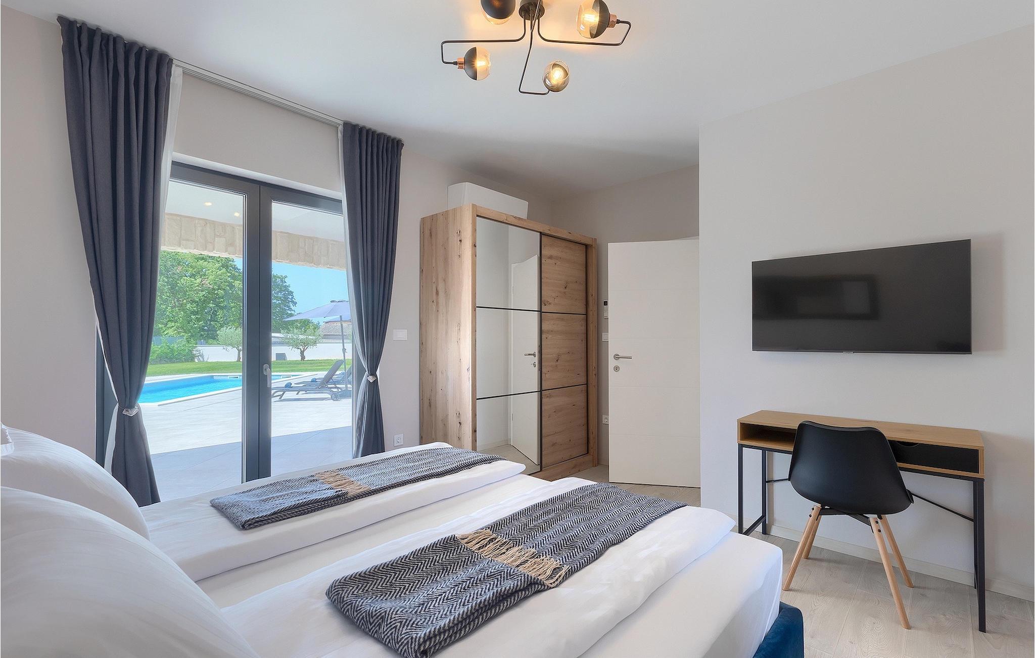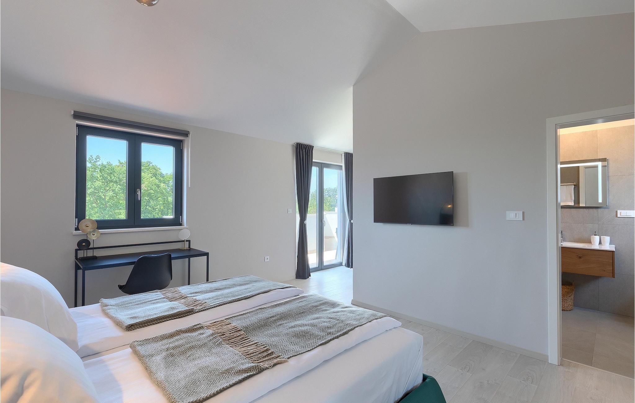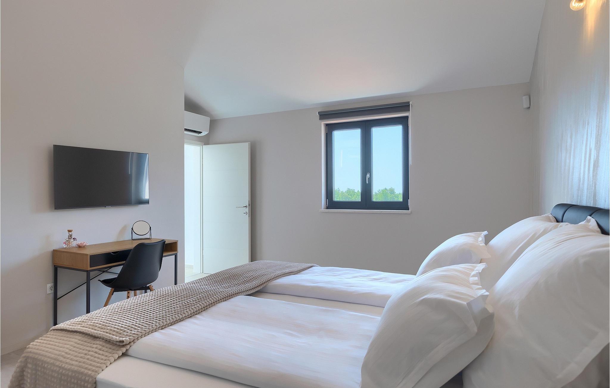 Hvis du er på utkikk etter en villa for en avslappende ferie, er Villa Sun Istria det ideelle valget for deg. Den sjarmerende villaen har fire soverom for opptil åtte personer. Tre av soverommene ligger i første etasje. Soverommene er lyse og komfortable. Hvert rom har en dobbeltseng, TV og klimaanlegg. Det ene soverommet har eget bad og utgang til balkongen. De to andre rommene deler et annet bad i samme etasje. Det fjerde soverommet ligger i første etasje og har eget bad, dobbeltseng, TV og klimaanlegg. I første etasje av villaen finner du en stue med sofa og TV, som er koblet til spisestuen og et fullt utstyrt kjøkken. Hele området har klimaanlegg.