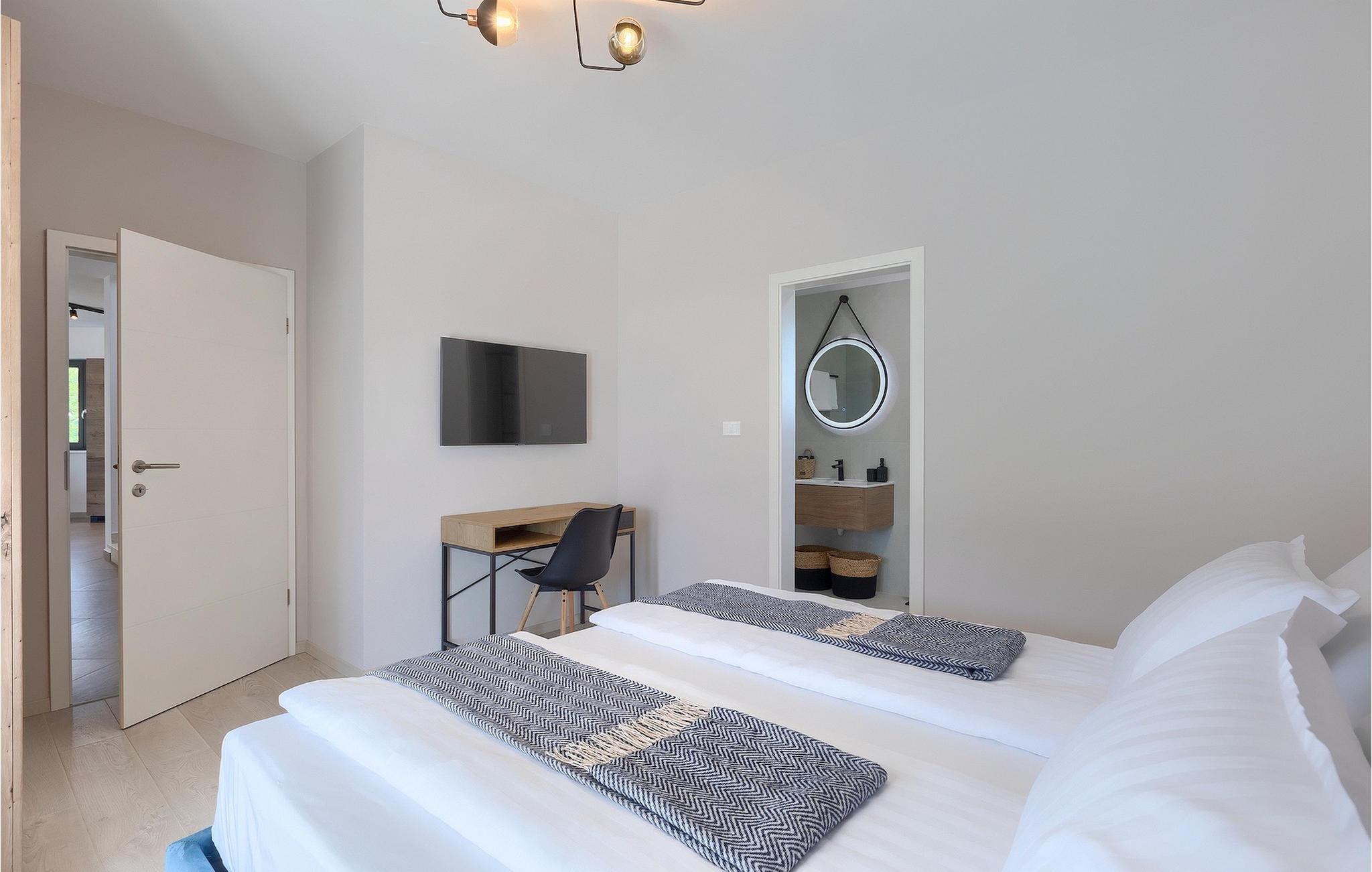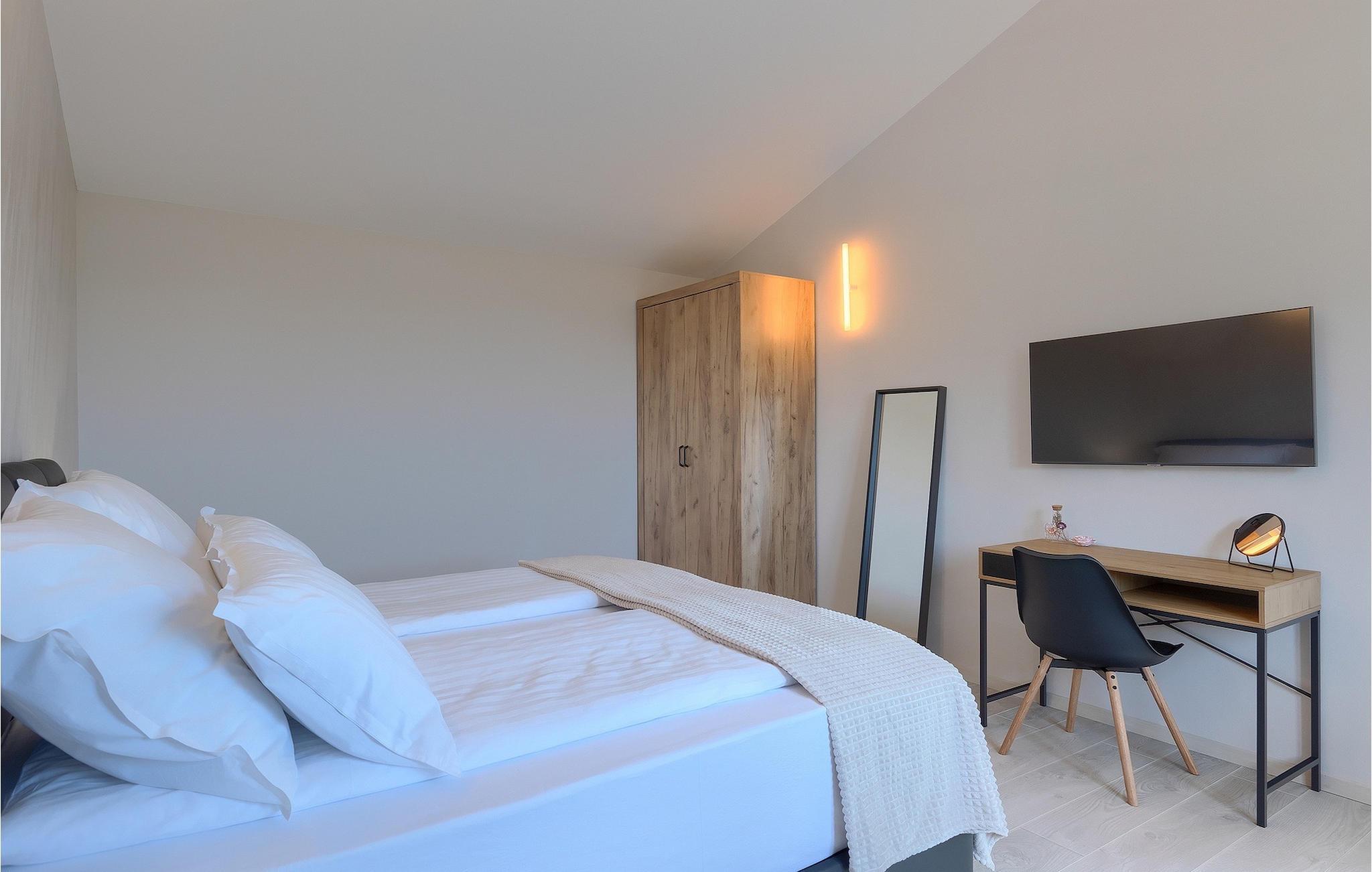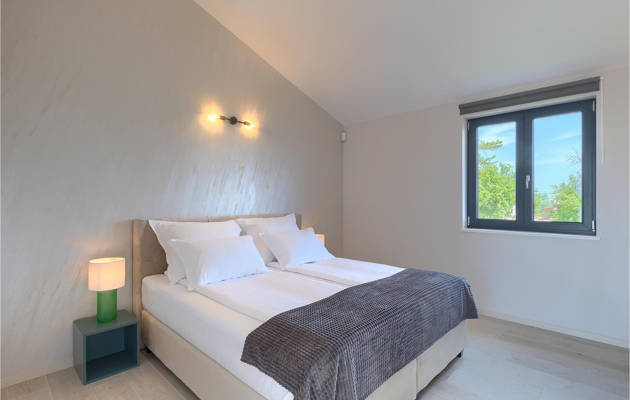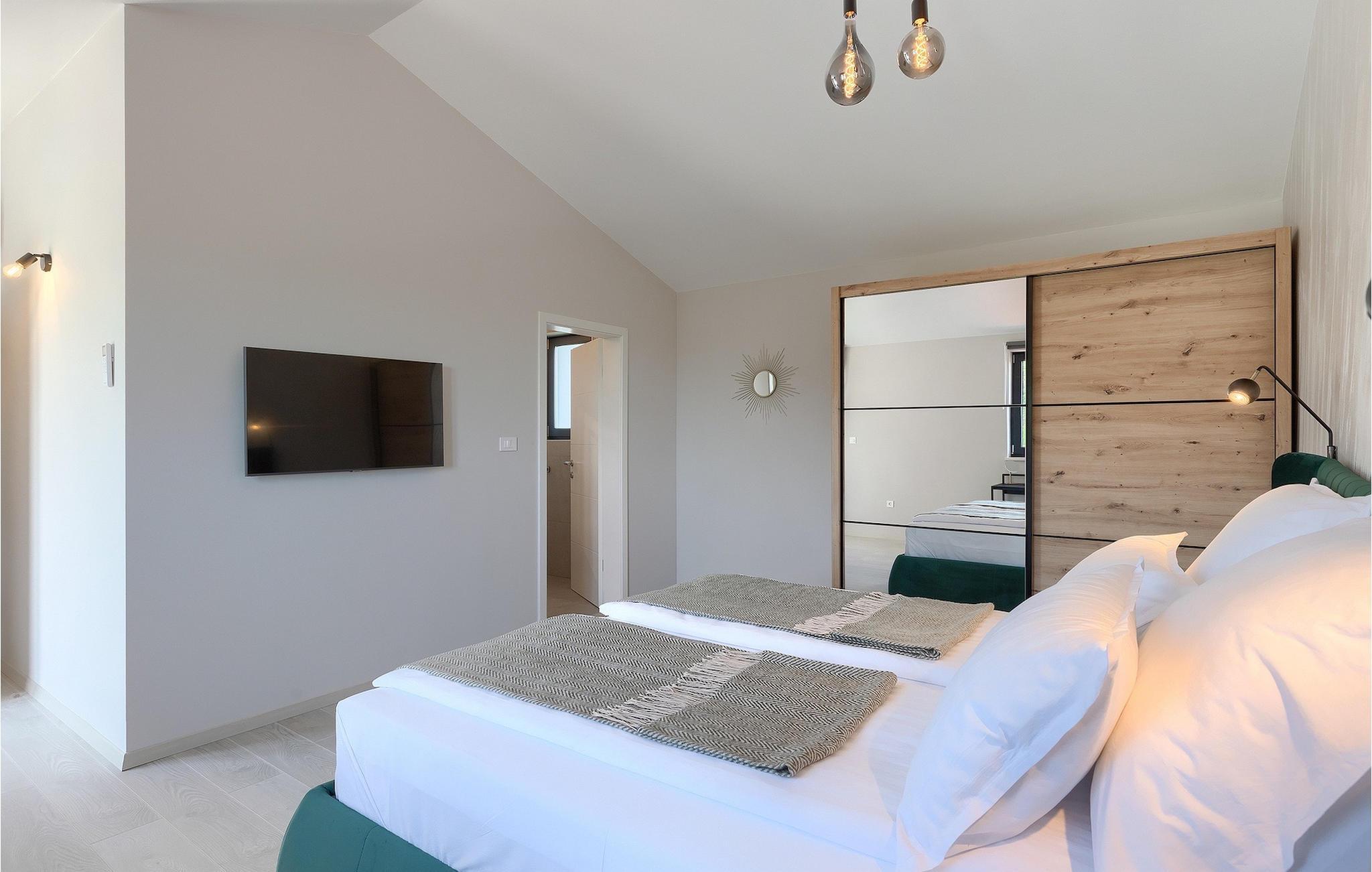 Hvis du er på utkikk etter en villa for en avslappende ferie, er Villa Sun Istria det ideelle valget for deg. Den sjarmerende villaen har fire soverom for opptil åtte personer. Tre av soverommene ligger i første etasje. Soverommene er lyse og komfortable. Hvert rom har en dobbeltseng, TV og klimaanlegg. Det ene soverommet har eget bad og utgang til balkongen. De to andre rommene deler et annet bad i samme etasje. Det fjerde soverommet ligger i første etasje og har eget bad, dobbeltseng, TV og klimaanlegg. I første etasje av villaen finner du en stue med sofa og TV, som er koblet til spisestuen og et fullt utstyrt kjøkken. Hele området har klimaanlegg.