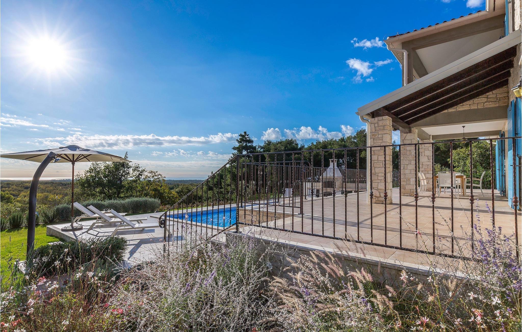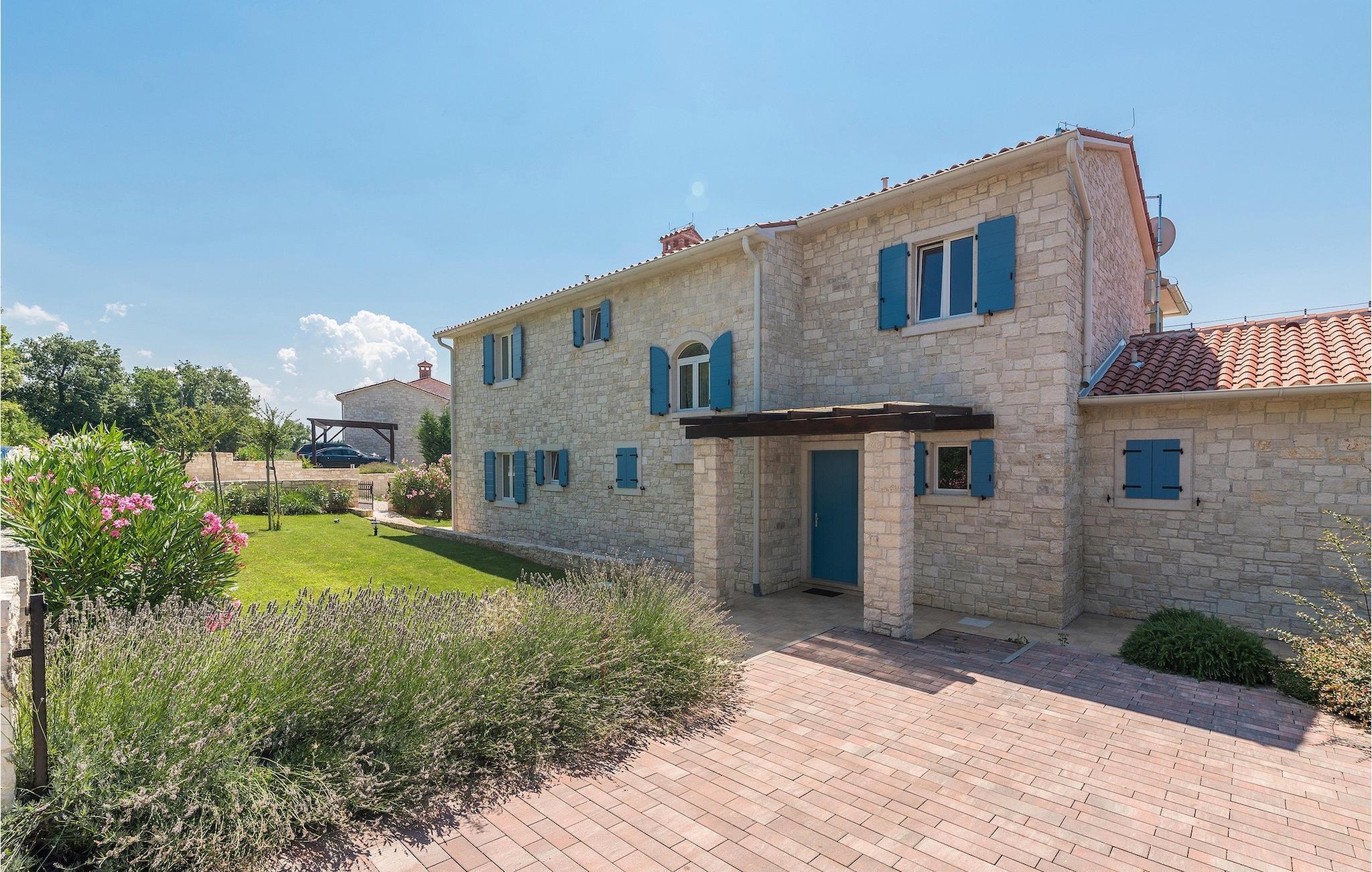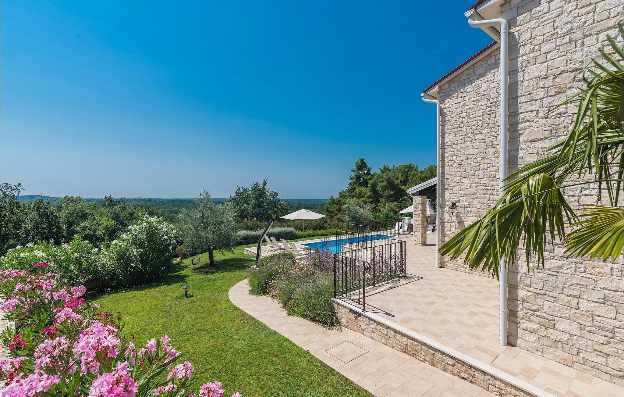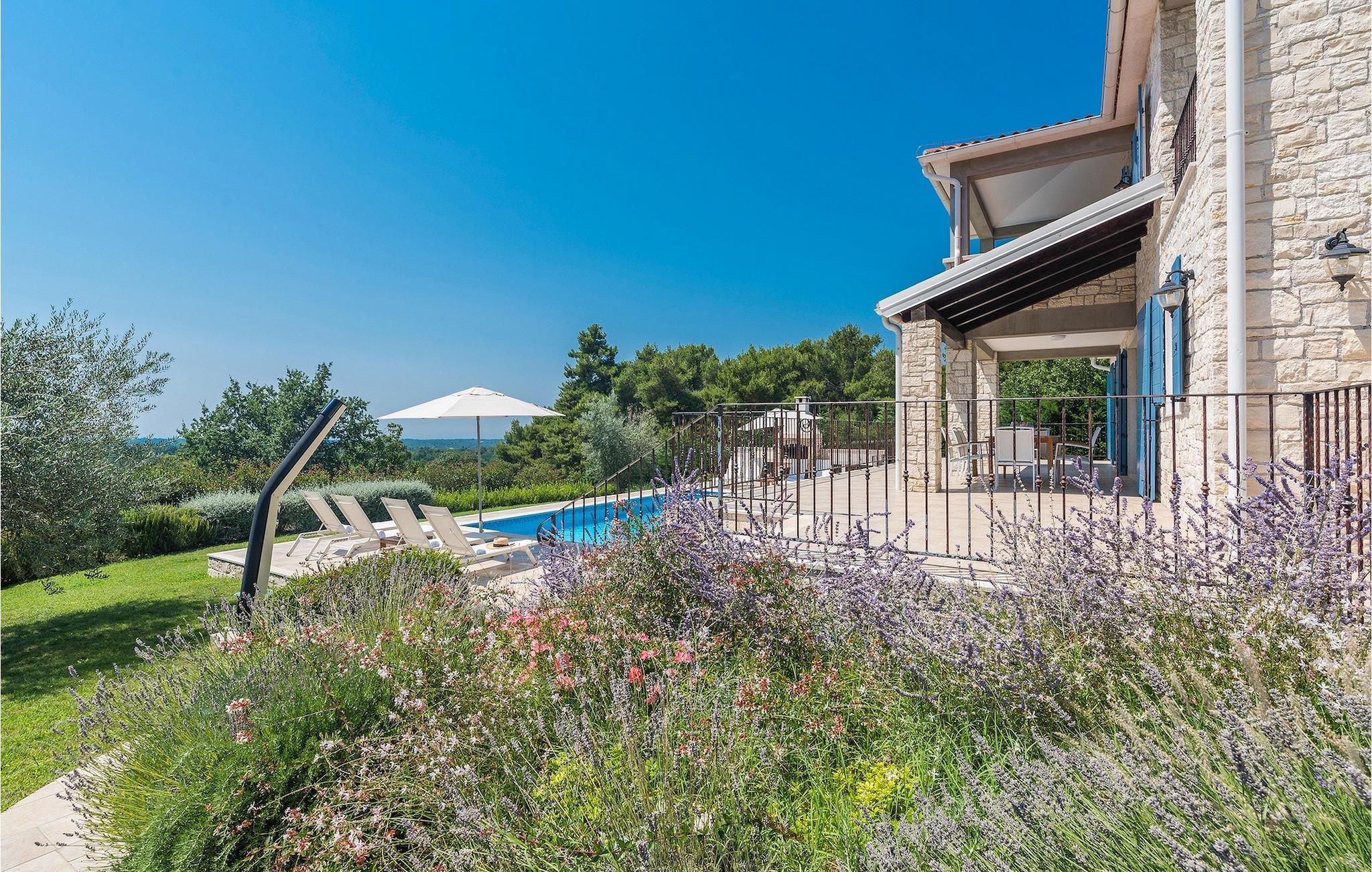 Villa Sterpazzi er en tradisjonell istrisk villa med steinfasade og blå skodder. Den er omgitt av grøntområder og blomster, noe du vil legge merke til spesielt ved duften av lavendel som sprer seg gjennom eiendommen.