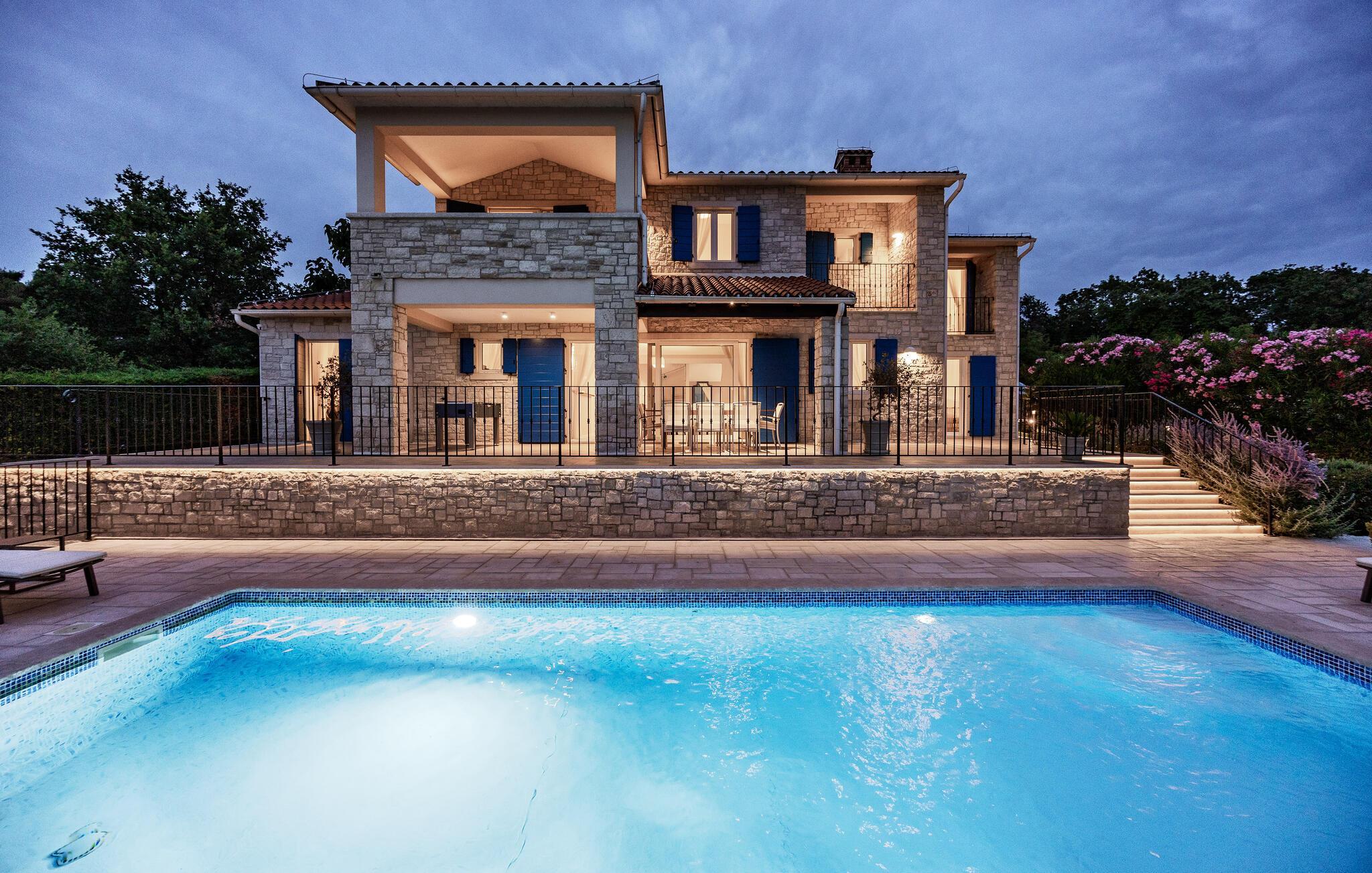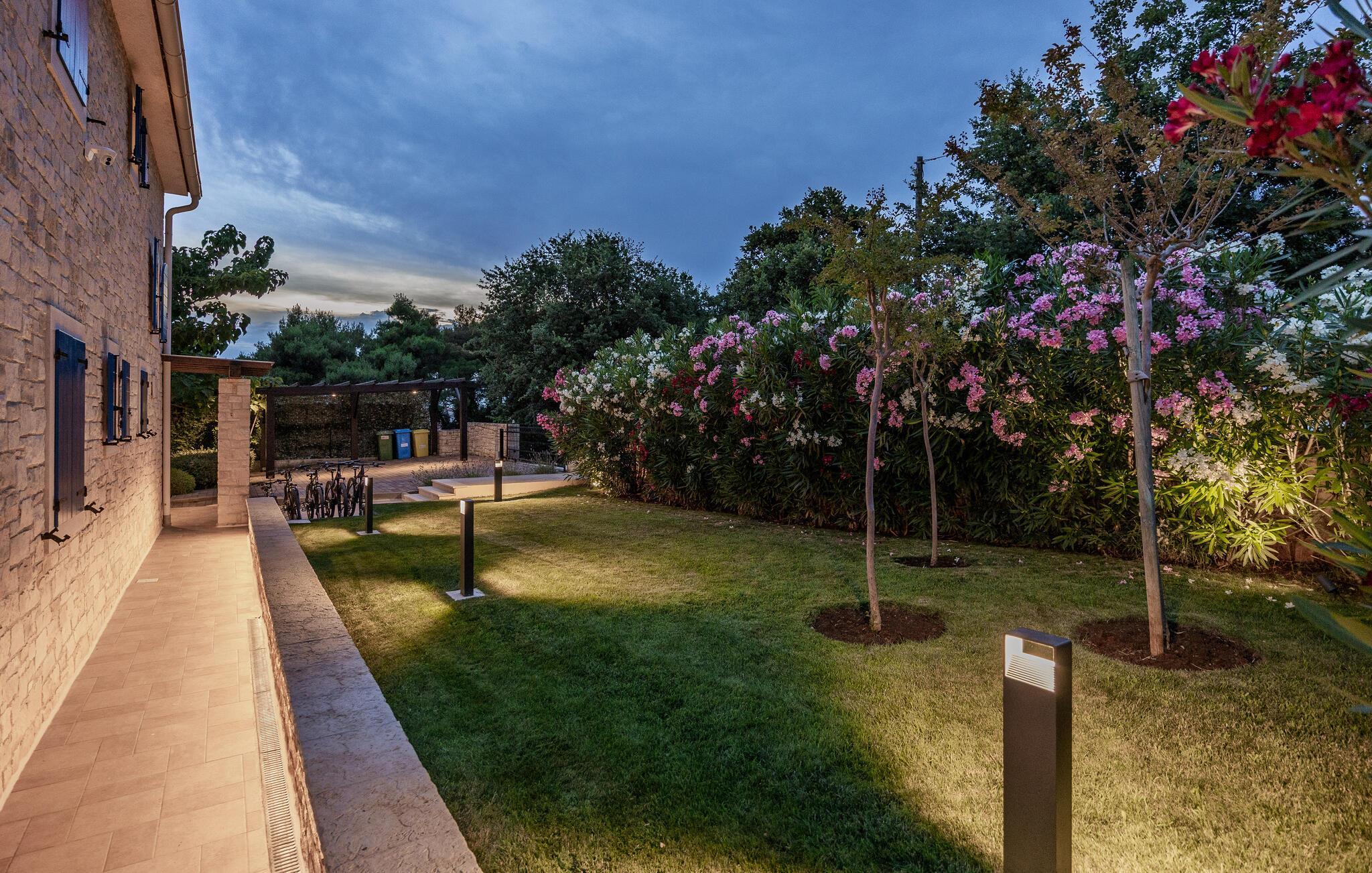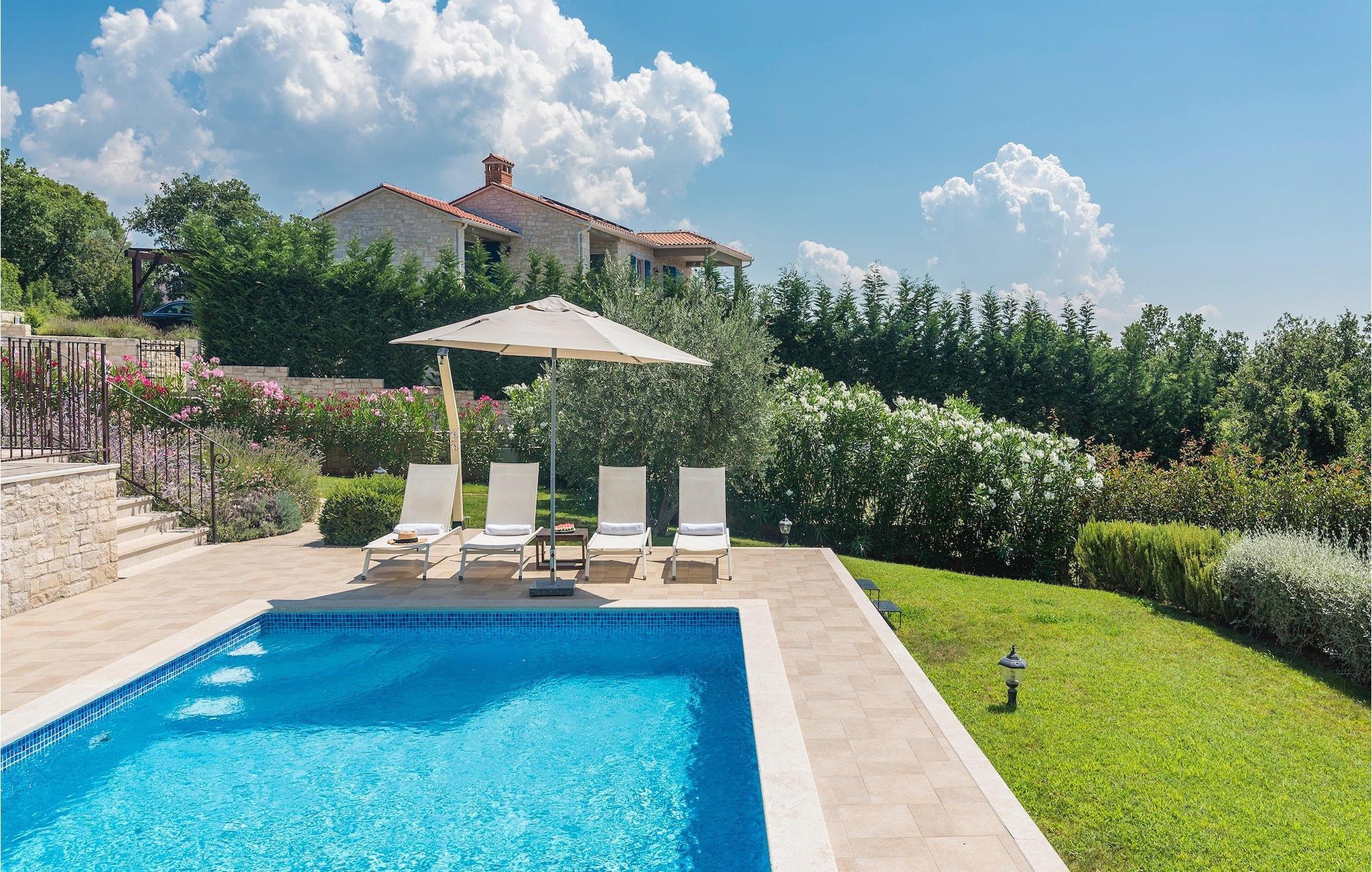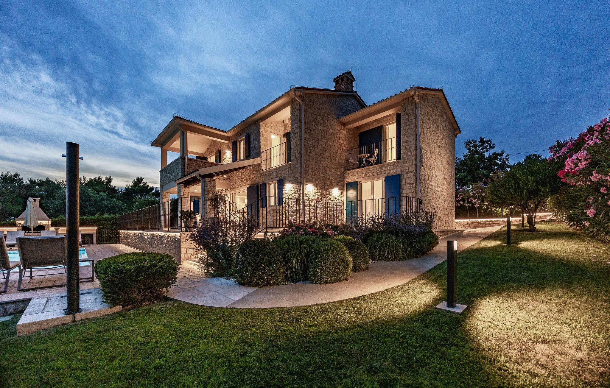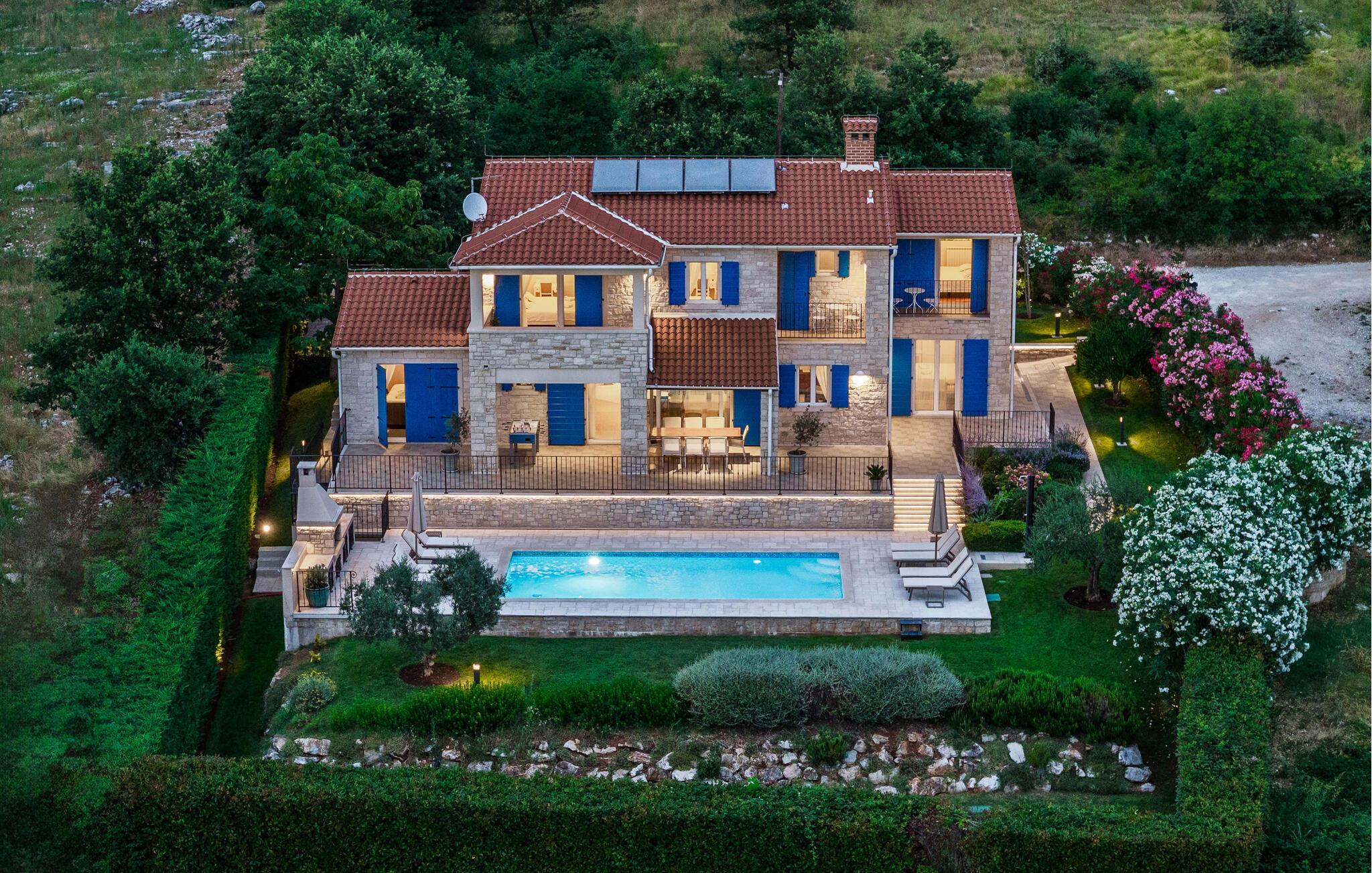 Villa Sterpazzi er en tradisjonell istrisk villa med steinfasade og blå skodder. Den er omgitt av grøntområder og blomster, noe du vil legge merke til spesielt ved duften av lavendel som sprer seg gjennom eiendommen.