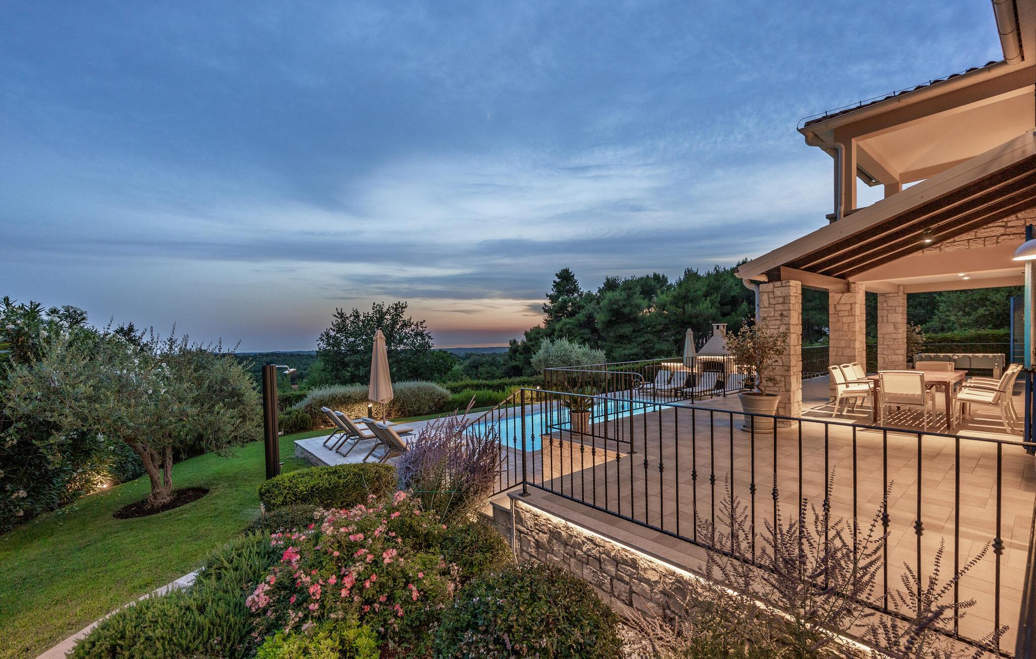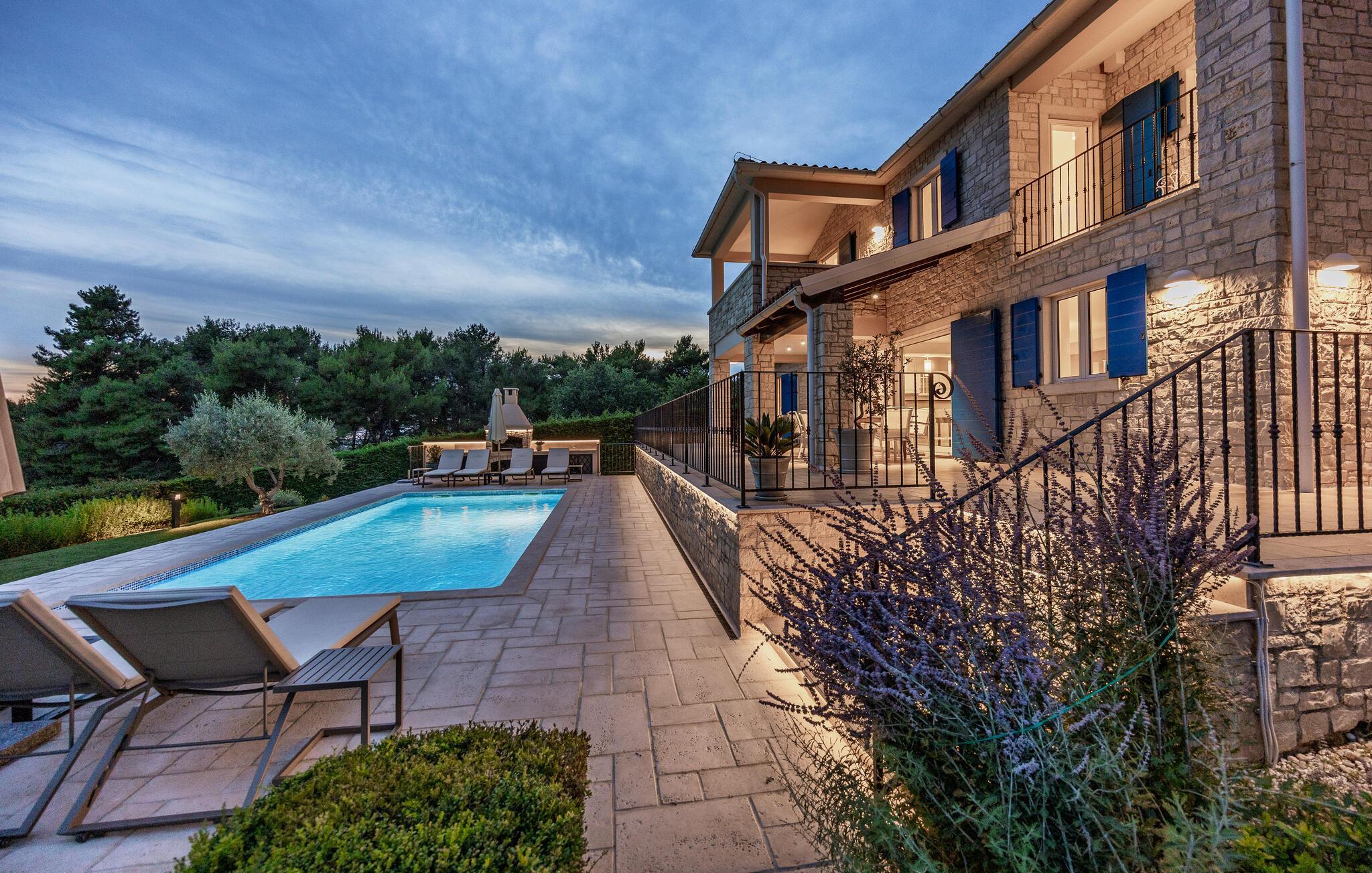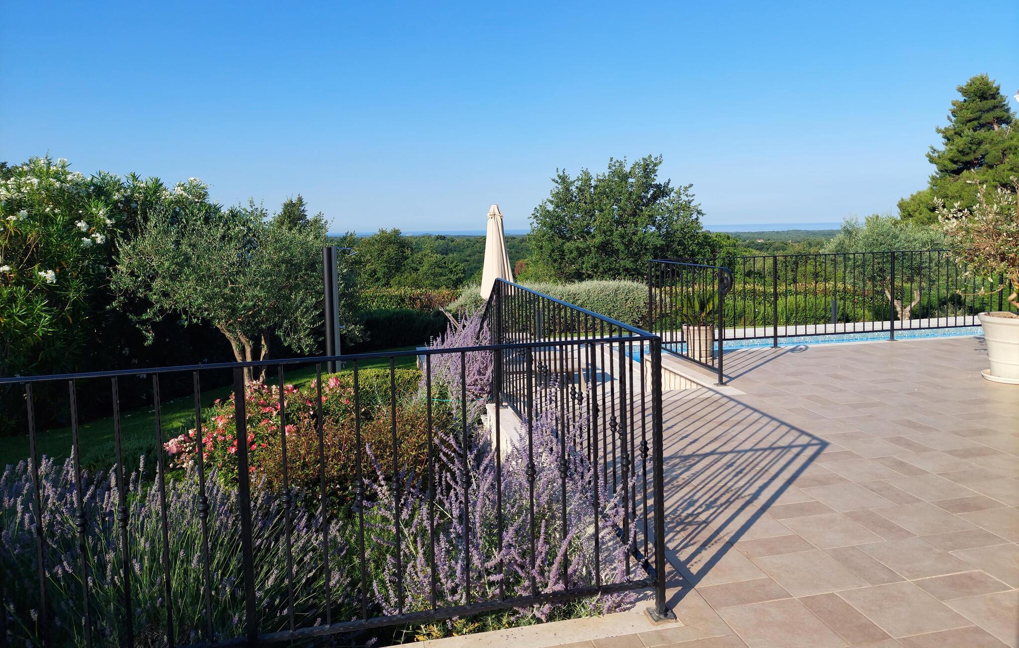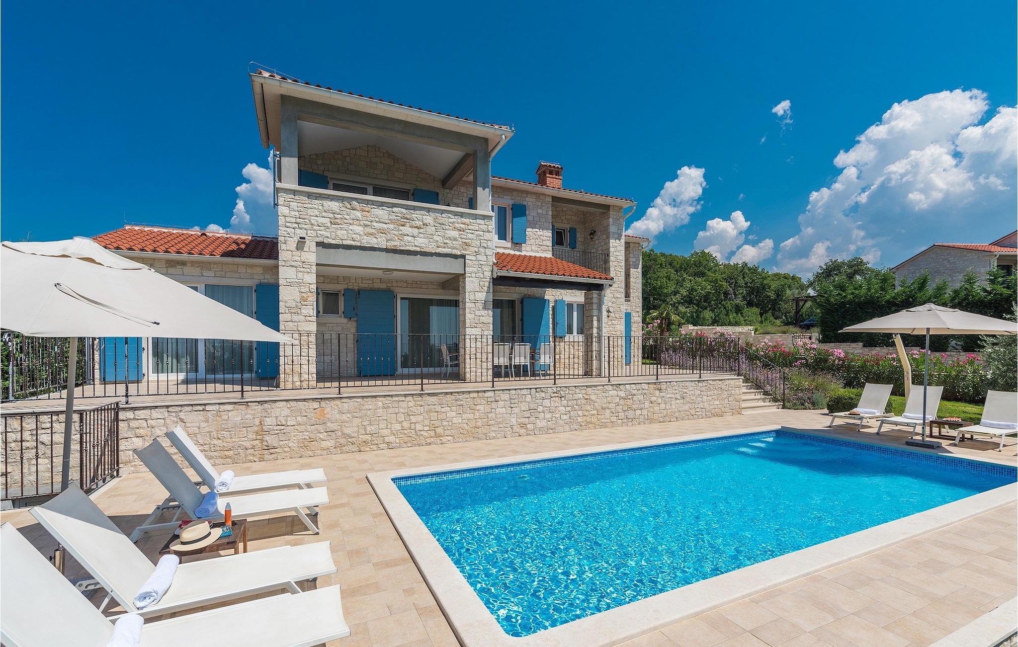 Villa Sterpazzi er en tradisjonell istrisk villa med steinfasade og blå skodder. Den er omgitt av grøntområder og blomster, noe du vil legge merke til spesielt ved duften av lavendel som sprer seg gjennom eiendommen.