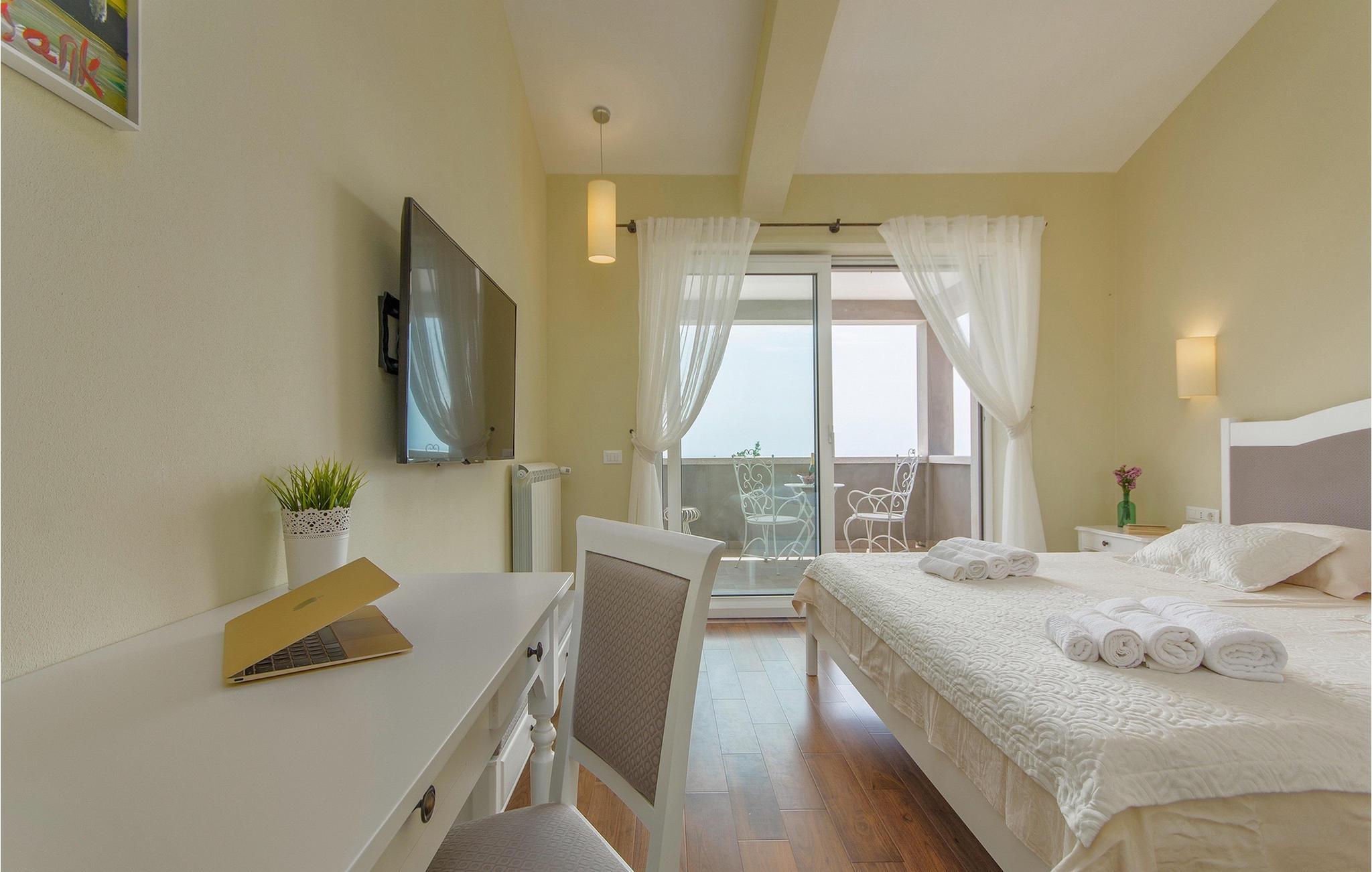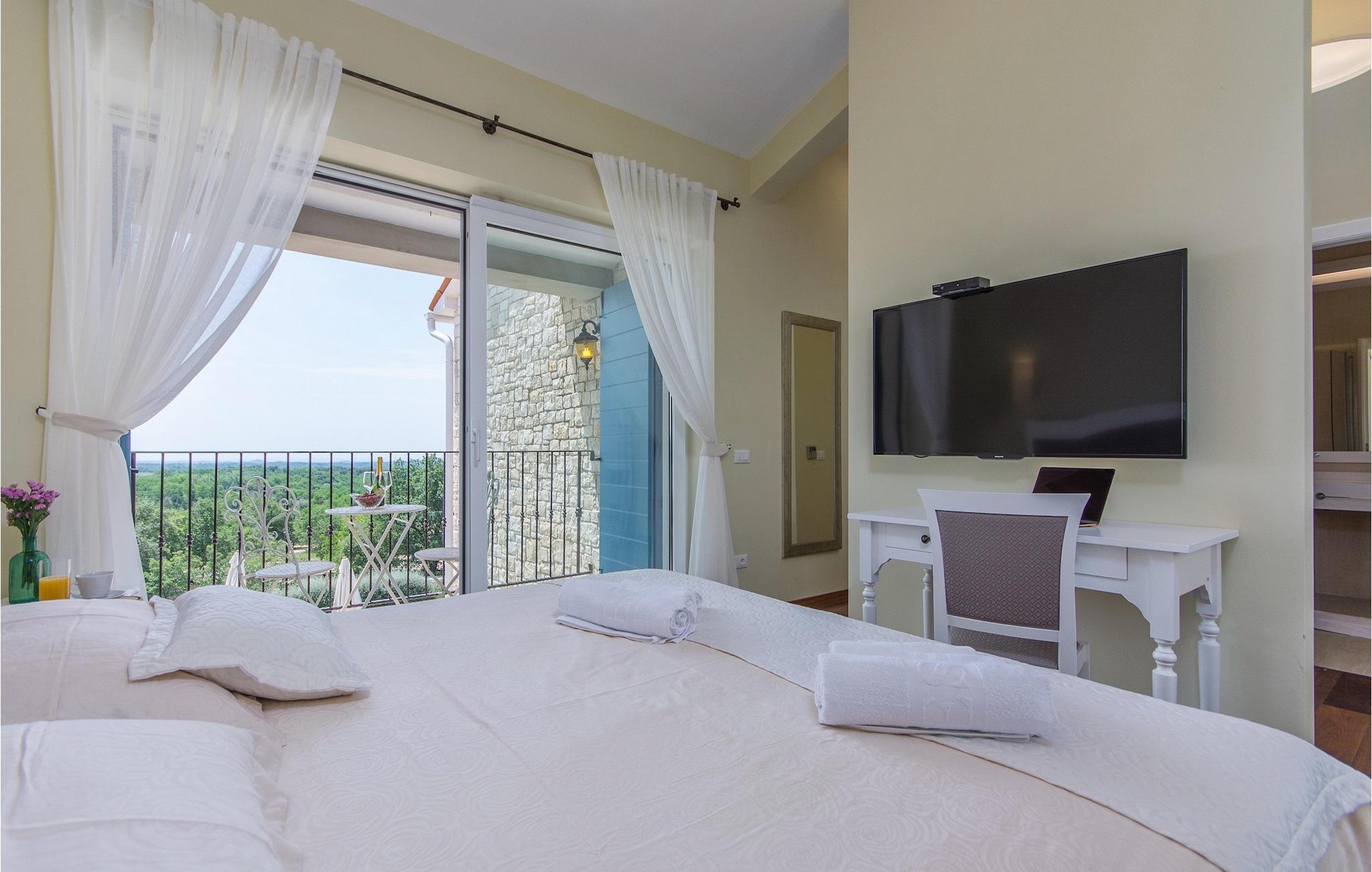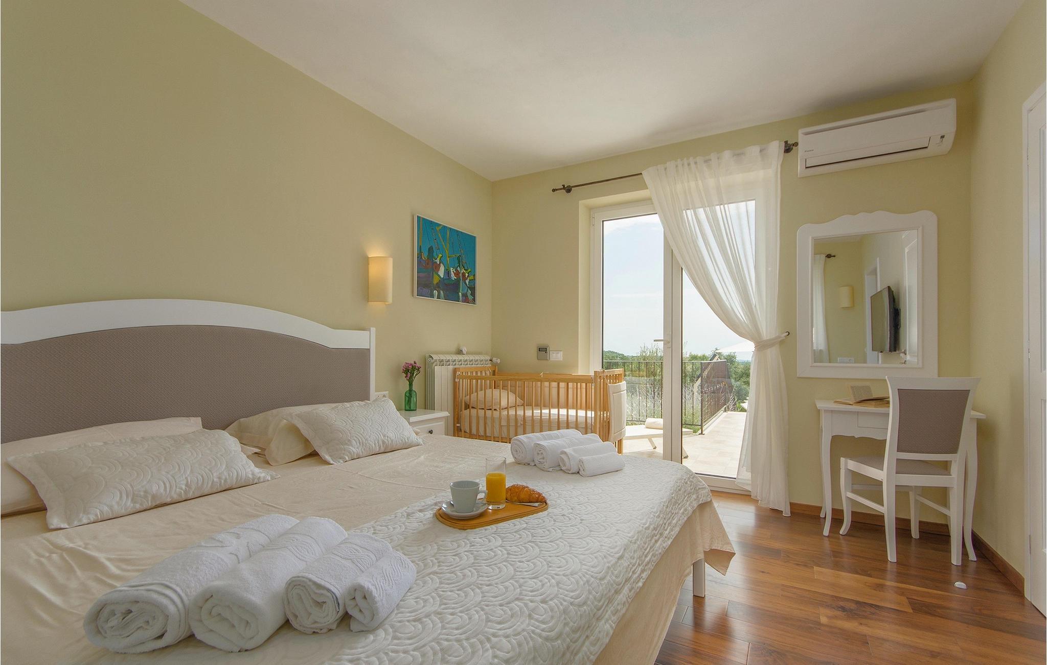 I øverste etasje finner du de resterende elegant innredede soverommene, som i likhet med soverommet i første etasje er fullt utstyrt med king-size-senger, TV og klimaanlegg. Det spesielle med denne villaen er at alle soverommene, i tillegg til det som er nevnt ovenfor, har eget bad og balkong. Tenk deg å drikke morgenkaffen på balkongen på rommet ditt med en beroligende og fantastisk utsikt!