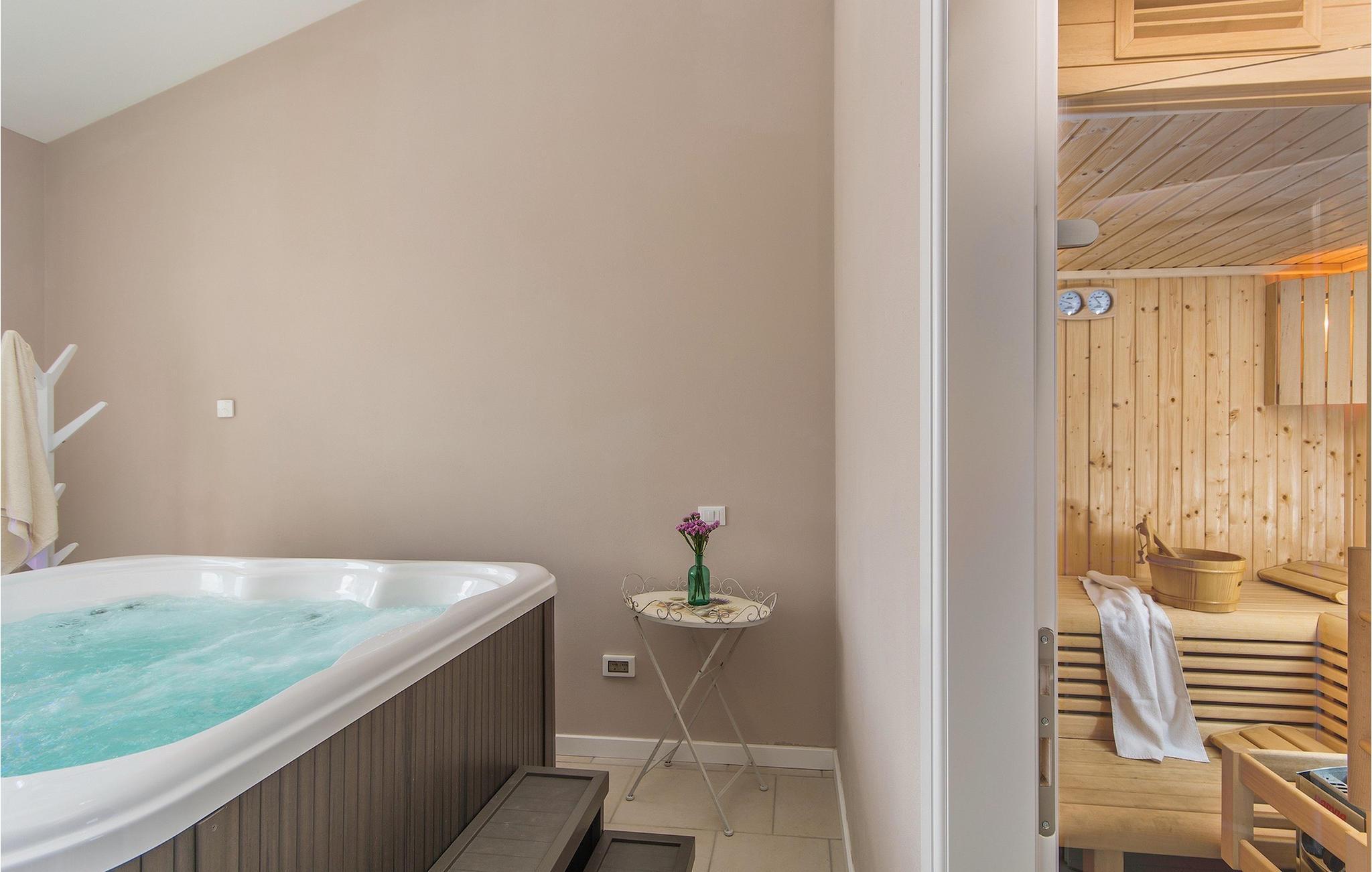Den beroligende atmosfæren på utsiden av dette huset strekker seg til interiøret, der din lille private velværeoase med badstue og boblebad venter på deg i første etasje. Slapp helt av og legg hverdagen bak deg i boblebadet med utsikt over de grønne omgivelsene.