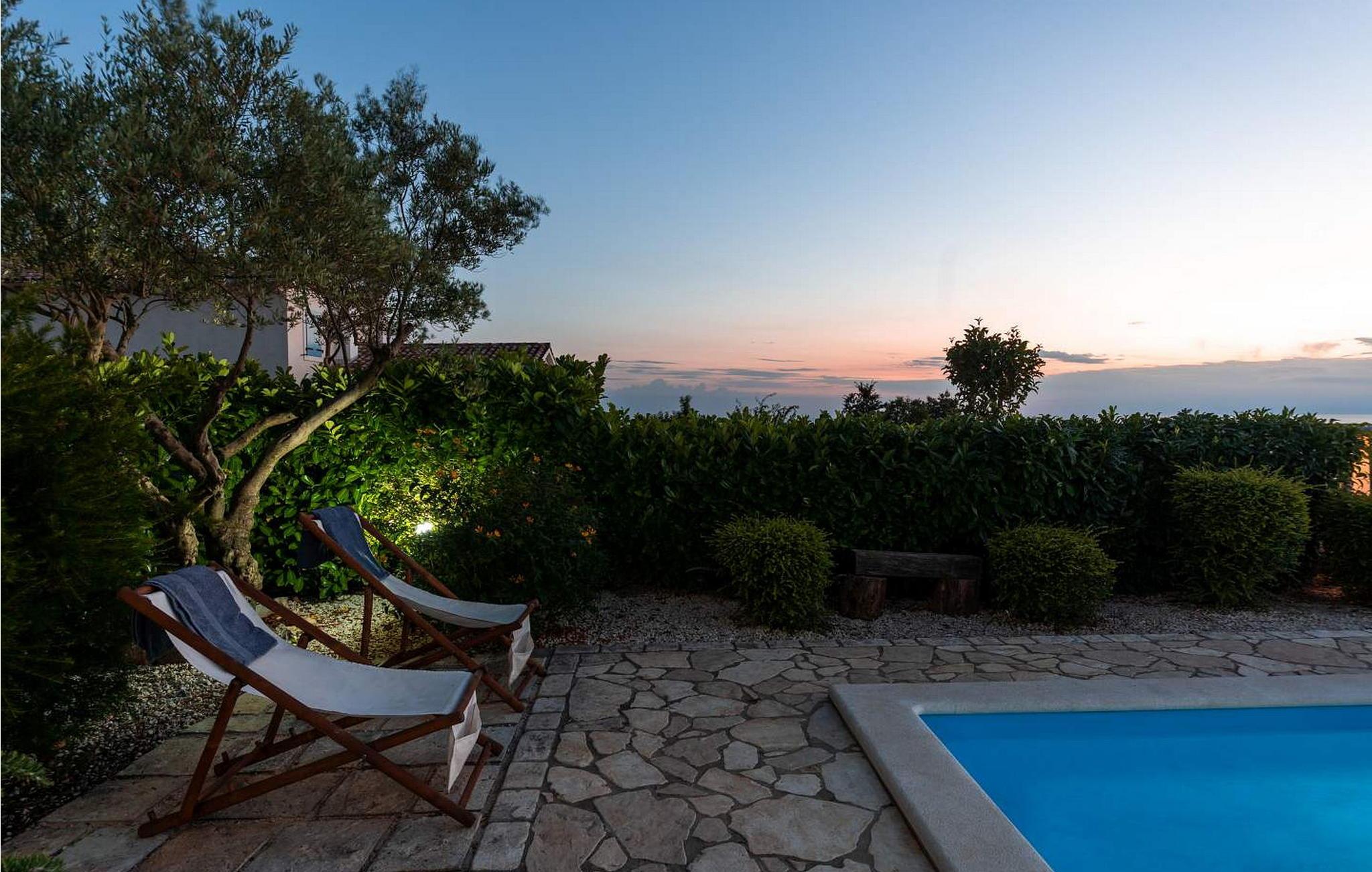 Villaen ble bygget i 2015 og har en egen tomt med en velstelt plen og olivenlund på ca. 2000 kvadratmeter, som ligger på et rolig sted med vakker panoramautsikt over havet, noe som understrekes ytterligere av glassveggene i alle rom. Landsbyen Barat ligger 3 km fra Visnjan, en pittoresk by med butikker, bakerier, restauranter/pizzeriaer, minibank og andre fasiliteter. Gjestene på Villa Nira har følgende utendørs fasiliteter til disposisjon: privat parkeringsplass for tre biler, svømmebasseng på 36 kvadratmeter med solsenger, overbygd terrasse med hagemøbler og grill.