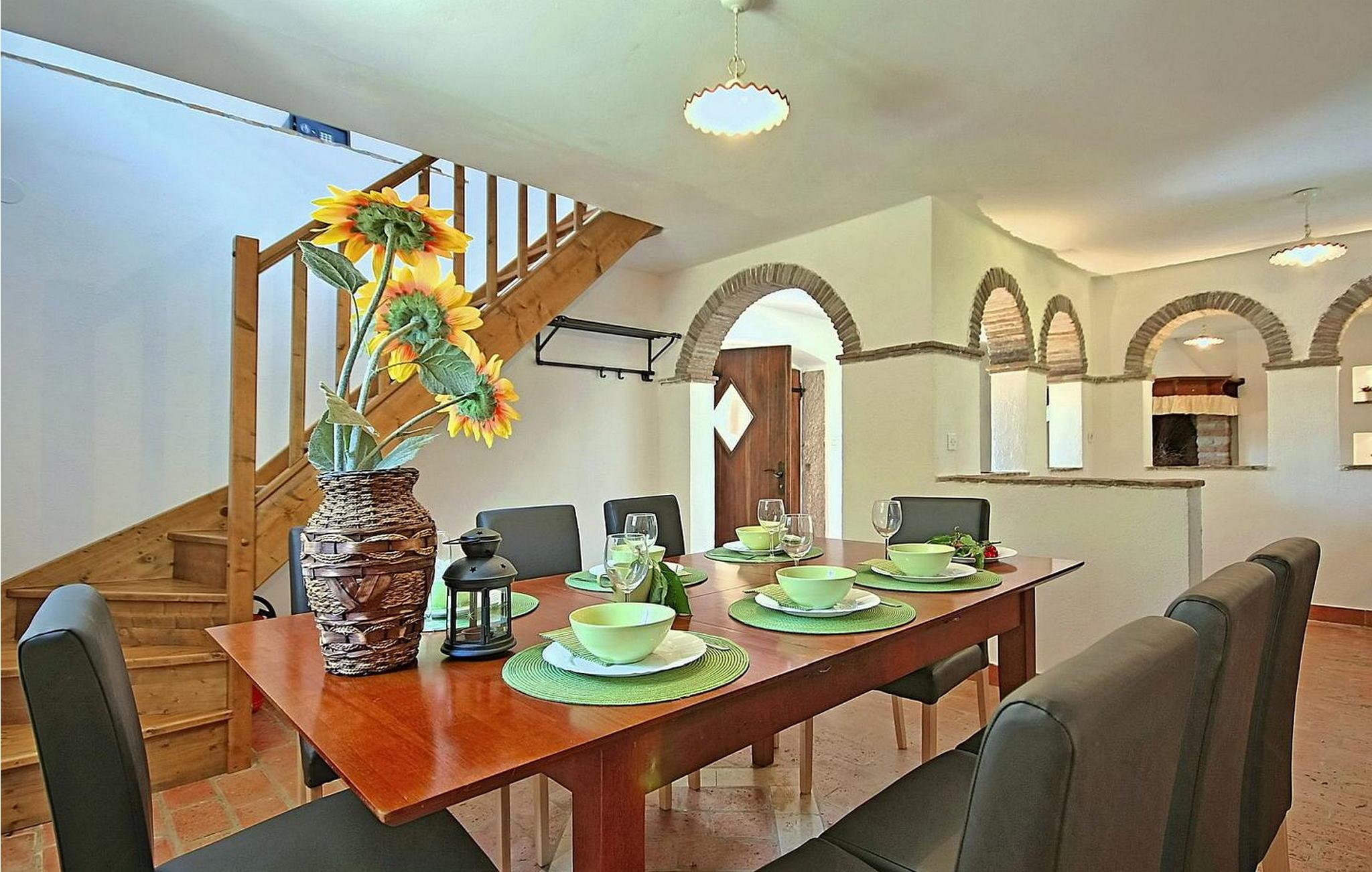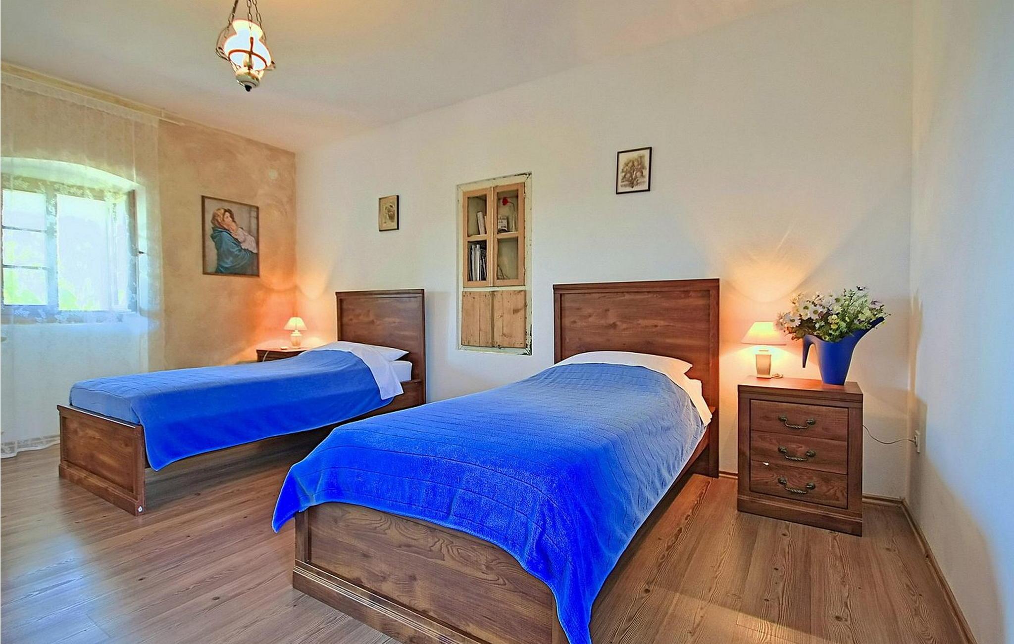 Casa Atilio og Ana er et sjarmerende gammelt istrisk steinhus i den rolige landsbyen Smolici, bare 19 kilometer fra Porec og de vakre strendene. Dette herlige tilfluktsstedet har en nydelig hage med et svømmebasseng, perfekt for avkjøling på varme dager. Nyt et måltid under åpen himmel på den overbygde terrassen, som er utstyrt med en mursteinsgrill og vask for tilberedning av måltider, eller slapp av med en drink på rottingmøblene, som er ideelle for å slappe av med en god bok. Feriehuset er fordelt over to etasjer. I første etasje er det en koselig stue med peis og et velutstyrt kjøkken med spisebord. Første etasje er delt i to deler: den første med to soverom (ett med to enkeltsenger, det andre med en dobbeltseng) og et bad/WC; den andre delen har to soverom med dobbeltseng og felles dusj/WC. Under oppholdet kan du utforske Porec i nærheten og den fantastiske Eufrasia-basilikaen, et mesterverk fra 600-tallet. Porec er rik på kulturarv, og inviterer deg til å reise tilbake i tid innenfor de gamle bymurene. Merk at dette overnattingsstedet ikke tar imot ungdomsgrupper eller utdrikningslag. En ungdomsgruppe på dette overnattingsstedet består av personer som er 26 år eller yngre.